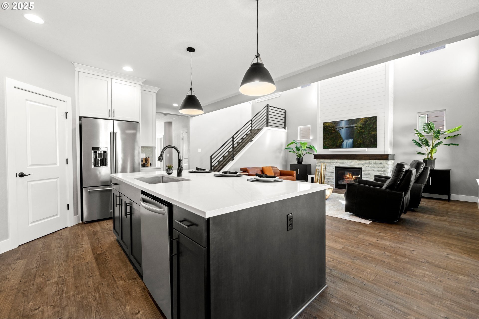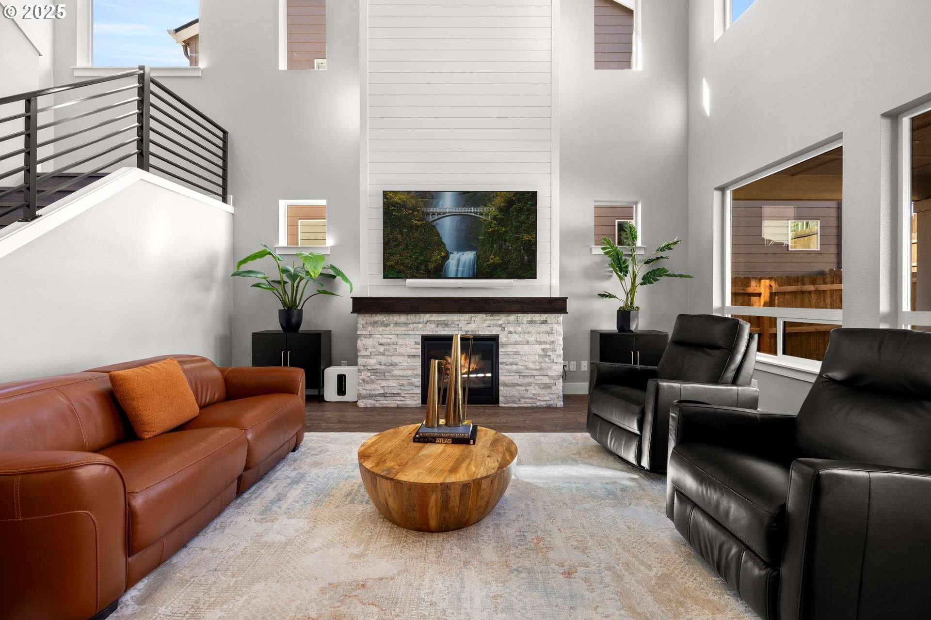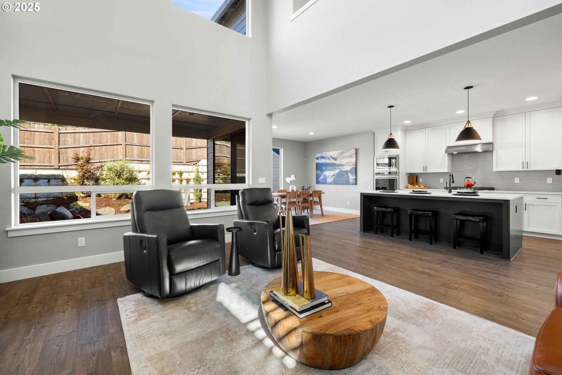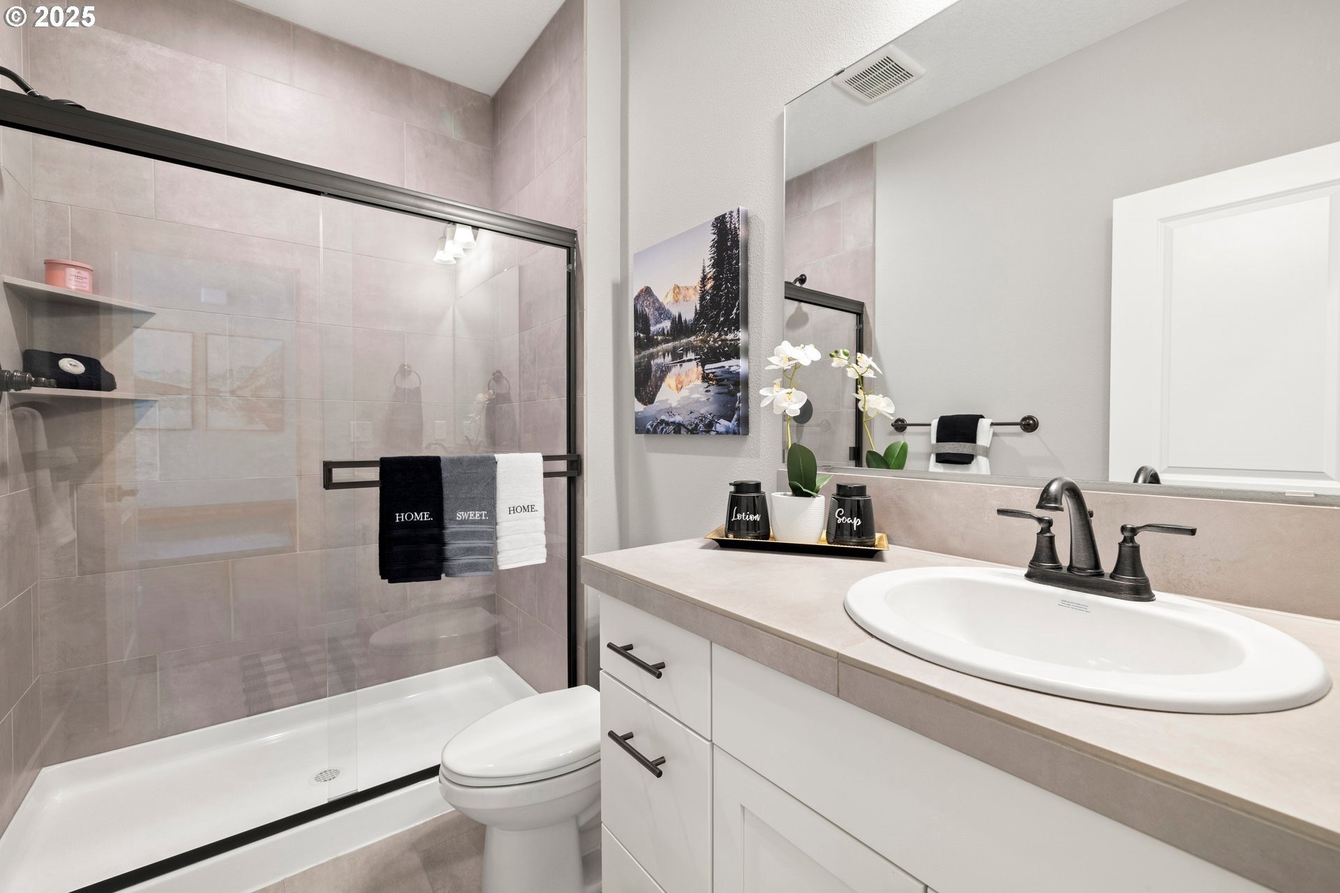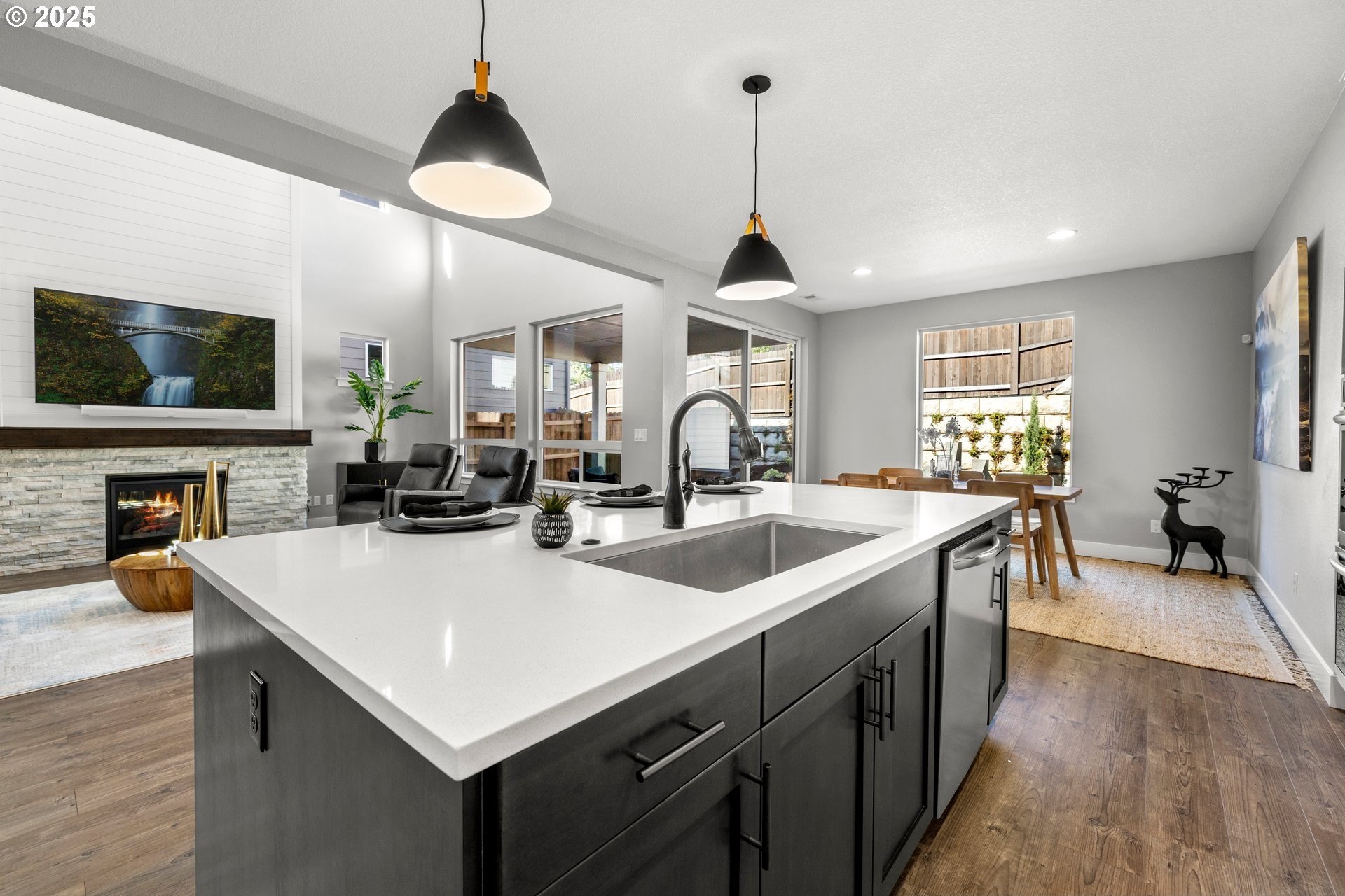 Experience modern luxury in this rare and highly sought-after ‘Rogue’ Craftsman-style home built in 2023 by Pac. Lifestyle Homes. Over $140K in construction and post-closing upgrades elevate the living experience well beyond builder standards. Luxury appliances, upgraded flooring, designer window treatments, custom closet organizers, and a gas fireplace with a custom stone-and-shiplap surround ensure every detail feels refined. The inviting 1st floor flows past the main-level bedroom/office and full bathroom, into a stunning great room with soaring 18-foot ceilings, tall windows, and a seamless open layout that unites the designer kitchen, dining area, and sun-filled living room, perfectly blending comfort and style. The upper level features 3 bedrooms and 2 full bathrooms, including an exceptional primary suite with a soaking tub, walk-in shower, and spacious closet space, along with a convenient laundry room with a utility sink, while expansive windows throughout the level offer stunning views of the beautiful community. Unlike similar homes, which are often limited to smaller garage spaces, this property offers a 3-car tandem garage, fully finished with epoxy floors—ideal for the most meticulous hobbyist or craftsman. Outdoors, the covered patio extends the living space, perfect for year-round entertaining and enjoying the professionally designed backyard landscape. The yard also includes a 120 sq/ft. Pro-Series Tough Shed, perfectly matched to the exterior of the home, that provides exceptional storage and utility. The home has been meticulously maintained, including a recent deep cleaning of carpets, windows, and exterior soft wash. Located in River Terrace, a vibrant community ideally situated between Beaverton, Tigard, and Oregon wine country. With upscale finishes, high-efficiency systems, a reputable builder, and a location that balances city access with natural charm, this home delivers extraordinary value and stands out as truly “better than new".
