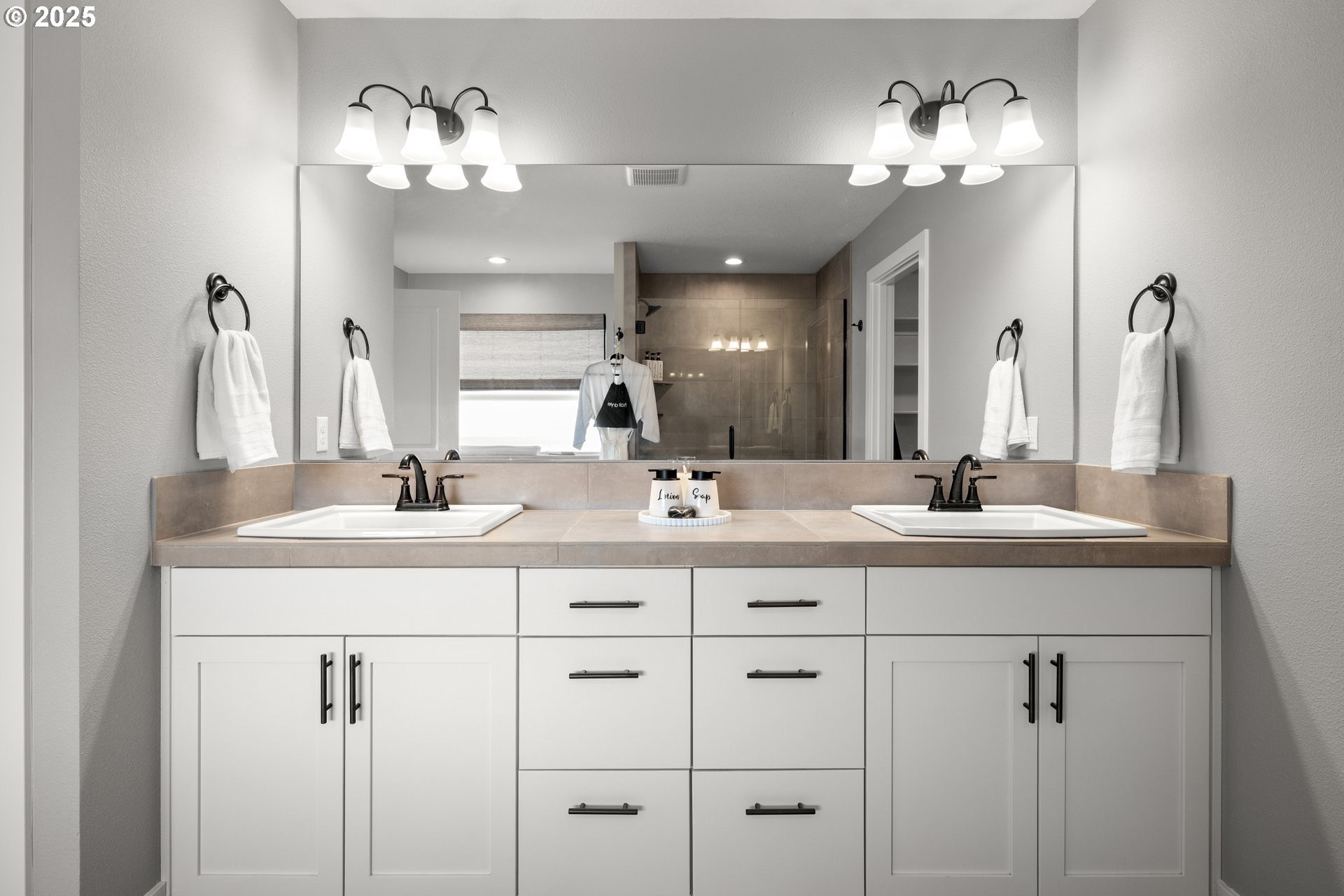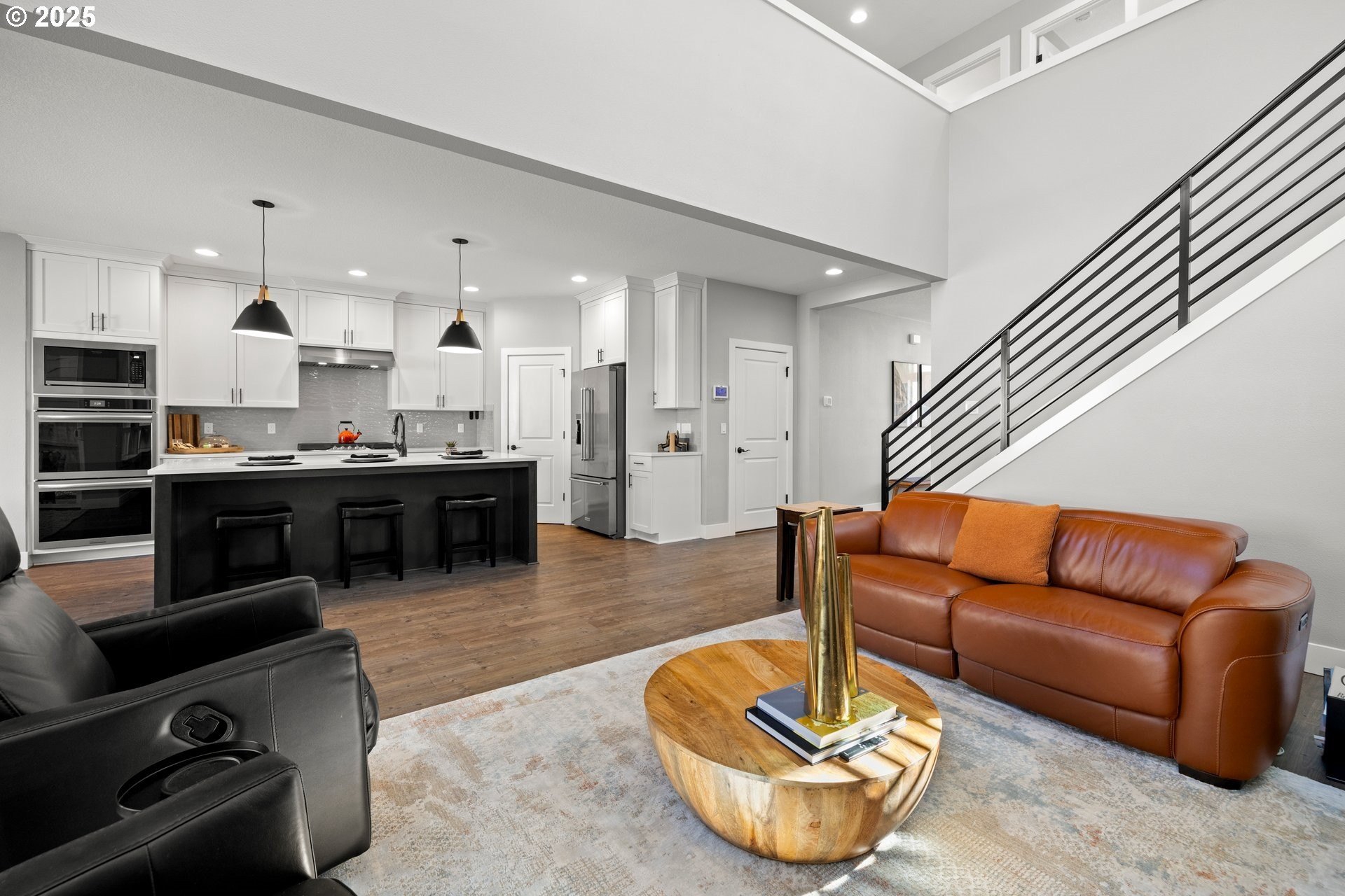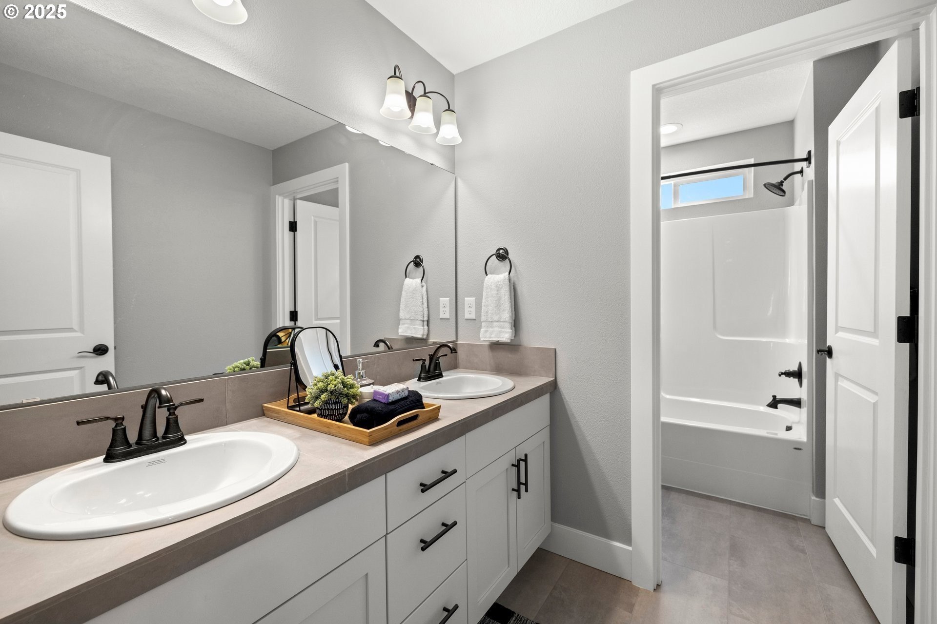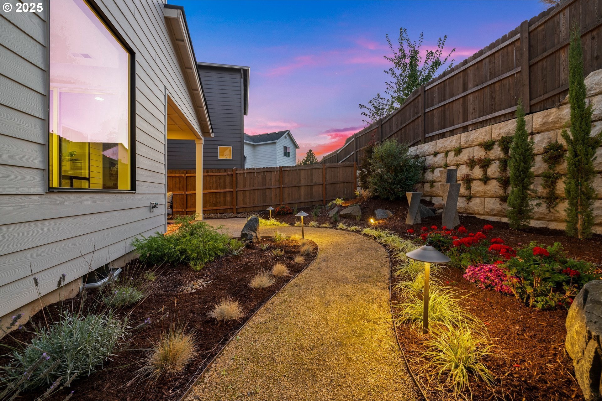 Experience modern luxury in this rare and highly sought-after ‘Rogue’ Craftsman-style home built in 2023 by Pac. Lifestyle Homes. Over $140K in construction and post-closing upgrades elevate the living experience well beyond builder standards. Luxury appliances, upgraded flooring, designer window treatments, custom closet organizers, and a gas fireplace with a custom stone-and-shiplap surround ensure every detail feels refined. The inviting 1st floor flows past the main-level bedroom/office and full bathroom, into a stunning great room with soaring 18-foot ceilings, tall windows, and a seamless open layout that unites the designer kitchen, dining area, and sun-filled living room, perfectly blending comfort and style. The upper level features 3 bedrooms and 2 full bathrooms, including an exceptional primary suite with a soaking tub, walk-in shower, and spacious closet space, along with a convenient laundry room with a utility sink, while expansive windows throughout the level offer stunning views of the beautiful community. Unlike similar homes, which are often limited to smaller garage spaces, this property offers a 3-car tandem garage, fully finished with epoxy floors—ideal for the most meticulous hobbyist or craftsman. Outdoors, the covered patio extends the living space, perfect for year-round entertaining and enjoying the professionally designed backyard landscape. The yard also includes a 120 sq/ft. Pro-Series Tough Shed, perfectly matched to the exterior of the home, that provides exceptional storage and utility. The home has been meticulously maintained, including a recent deep cleaning of carpets, windows, and exterior soft wash. Located in River Terrace, a vibrant community ideally situated between Beaverton, Tigard, and Oregon wine country. With upscale finishes, high-efficiency systems, a reputable builder, and a location that balances city access with natural charm, this home delivers extraordinary value and stands out as truly “better than new".