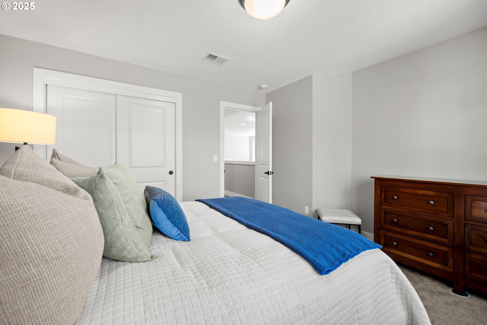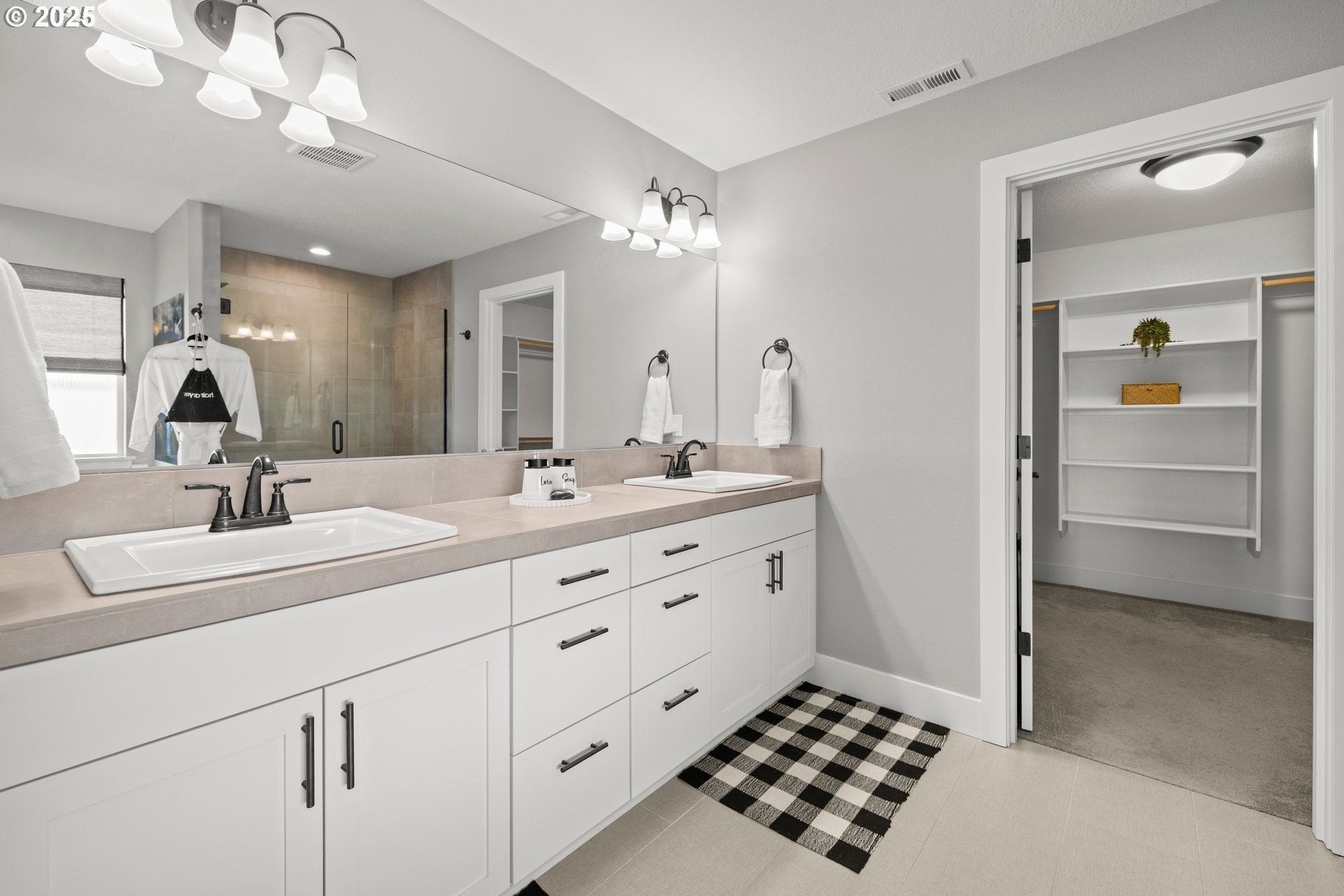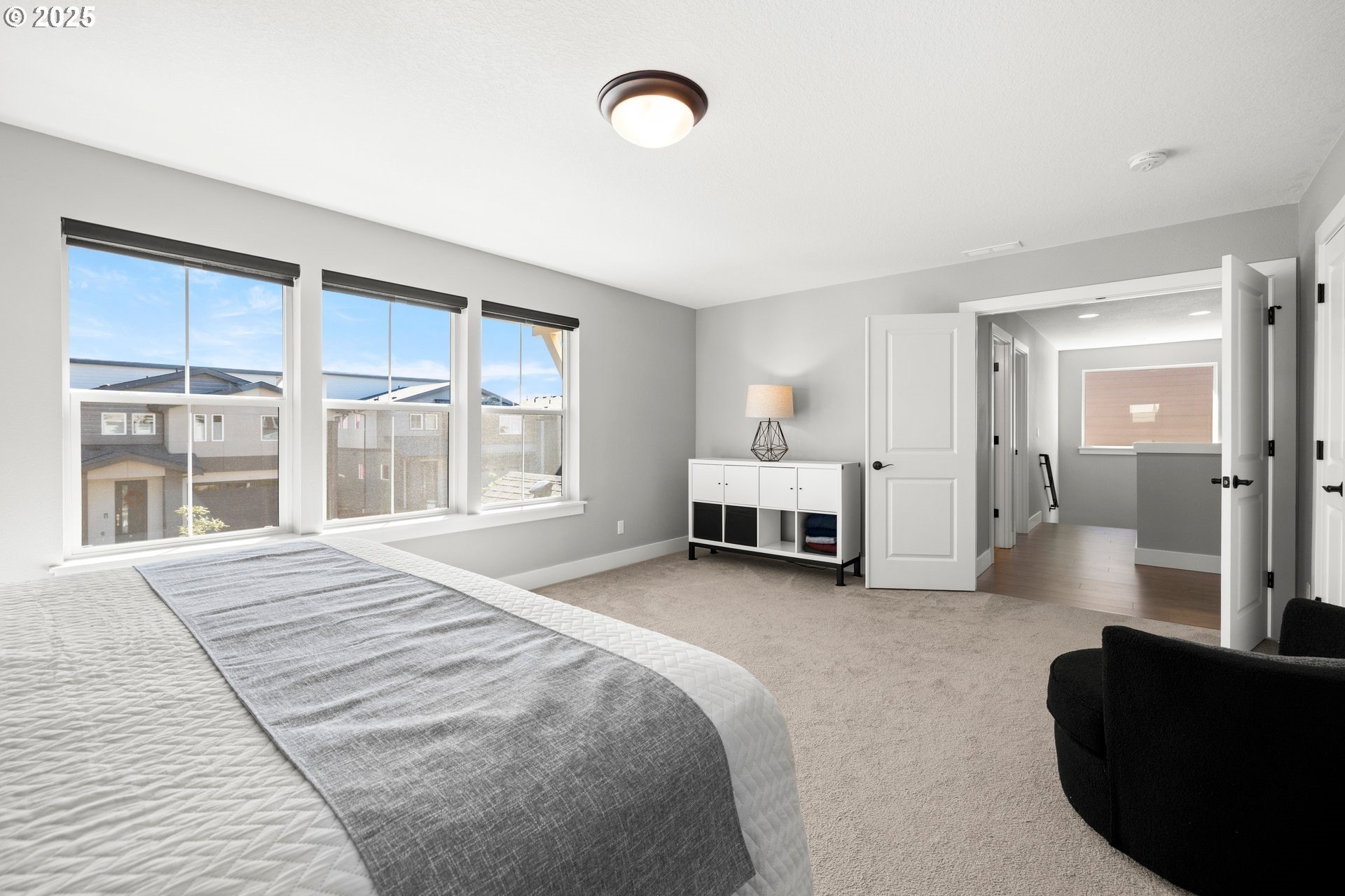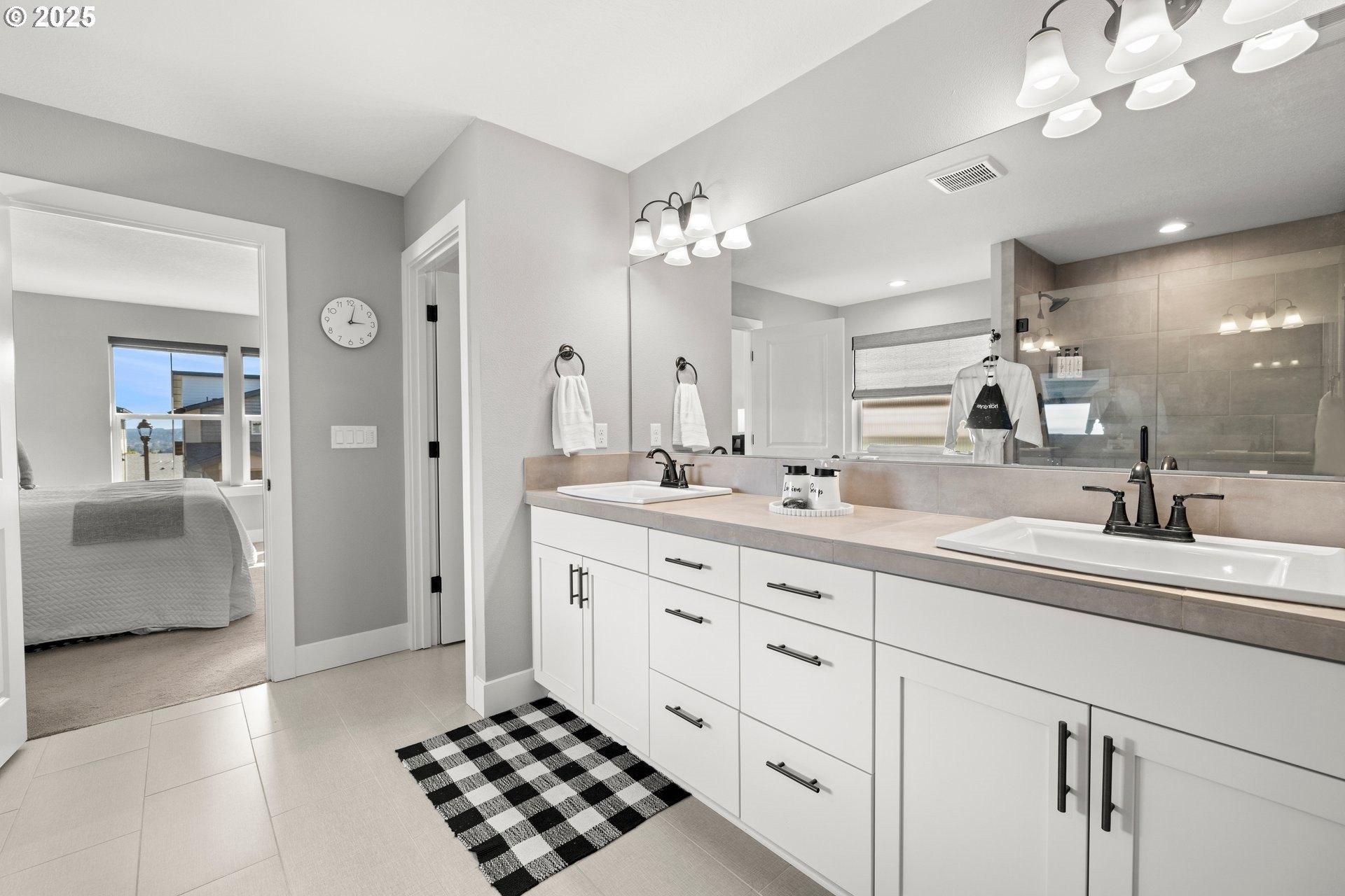 Experience modern luxury in this rare and highly sought-after ‘Rogue’ Craftsman-style home built in 2023 by Pac. Lifestyle Homes. Over $140K in construction and post-closing upgrades elevate the living experience well beyond builder standards. Luxury appliances, upgraded flooring, designer window treatments, custom closet organizers, and a gas fireplace with a custom stone-and-shiplap surround ensure every detail feels refined. The inviting 1st floor flows past the main-level bedroom/office and full bathroom, into a stunning great room with soaring 18-foot ceilings, tall windows, and a seamless open layout that unites the designer kitchen, dining area, and sun-filled living room, perfectly blending comfort and style. The upper level features 3 bedrooms and 2 full bathrooms, including an exceptional primary suite with a soaking tub, walk-in shower, and spacious closet space, along with a convenient laundry room with a utility sink, while expansive windows throughout the level offer stunning views of the beautiful community. Unlike similar homes, which are often limited to smaller garage spaces, this property offers a 3-car tandem garage, fully finished with epoxy floors—ideal for the most meticulous hobbyist or craftsman. Outdoors, the covered patio extends the living space, perfect for year-round entertaining and enjoying the professionally designed backyard landscape. The yard also includes a 120 sq/ft. Pro-Series Tough Shed, perfectly matched to the exterior of the home, that provides exceptional storage and utility. The home has been meticulously maintained, including a recent deep cleaning of carpets, windows, and exterior soft wash. Located in River Terrace, a vibrant community ideally situated between Beaverton, Tigard, and Oregon wine country. With upscale finishes, high-efficiency systems, a reputable builder, and a location that balances city access with natural charm, this home delivers extraordinary value and stands out as truly “better than new".