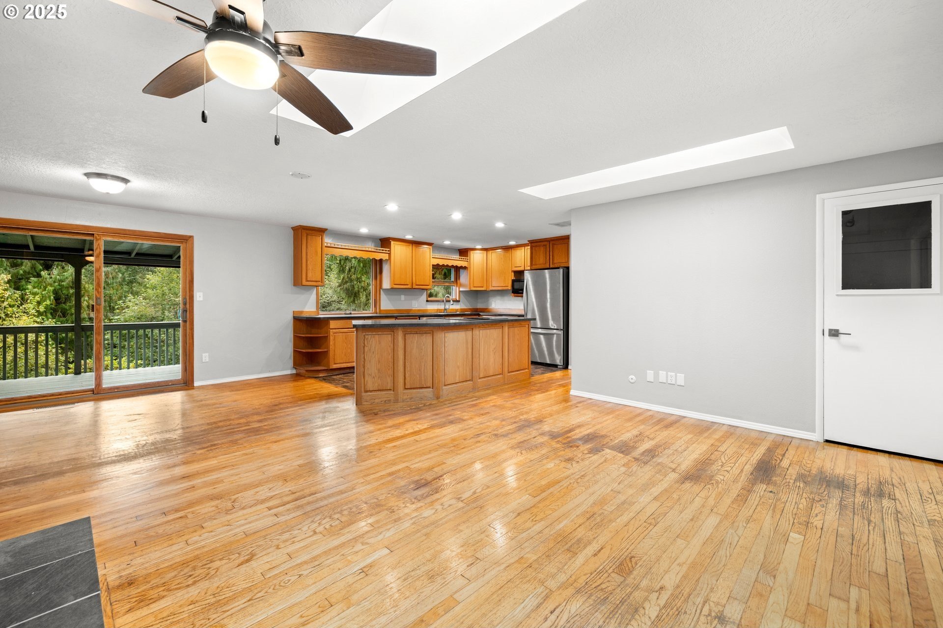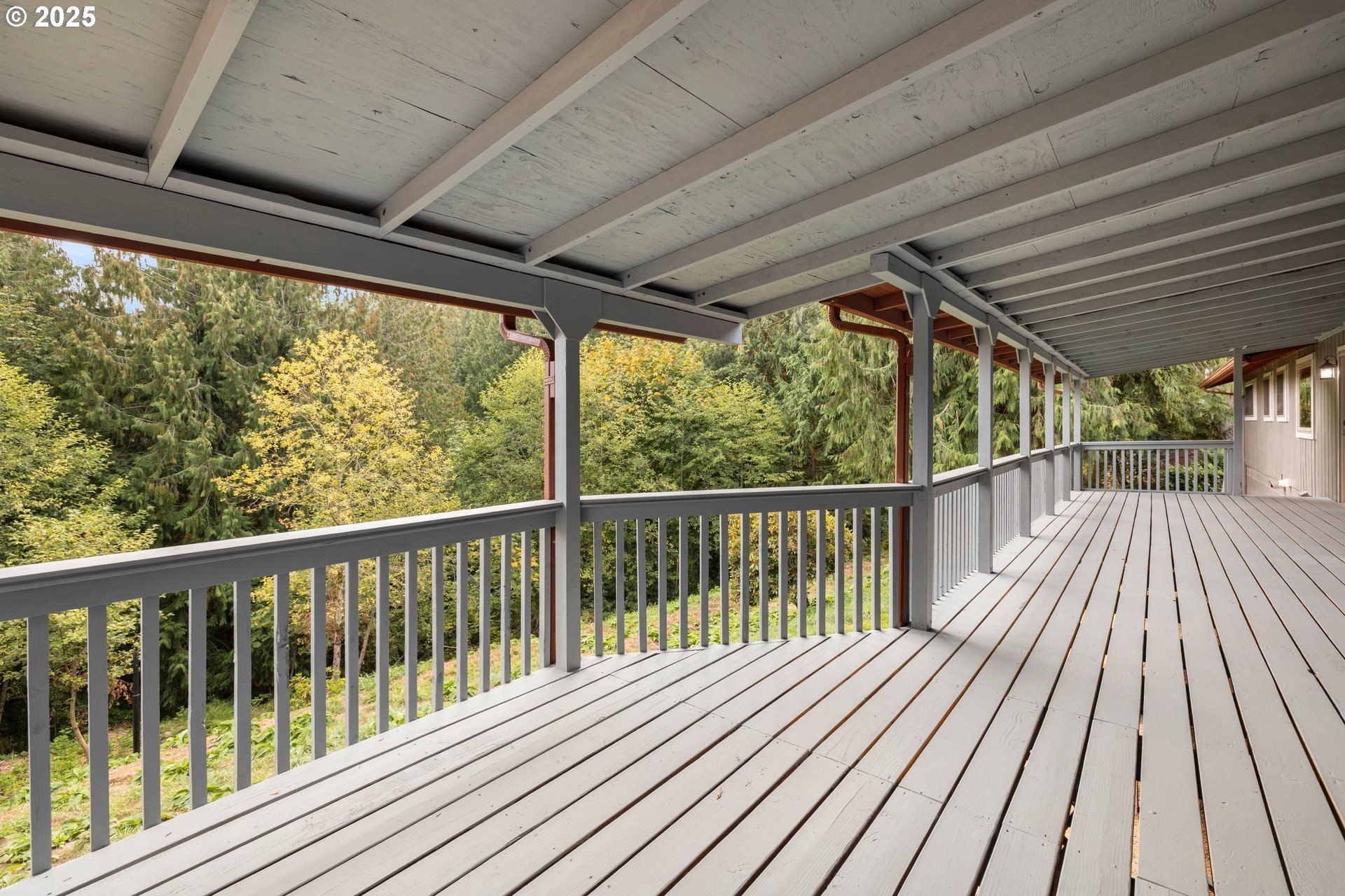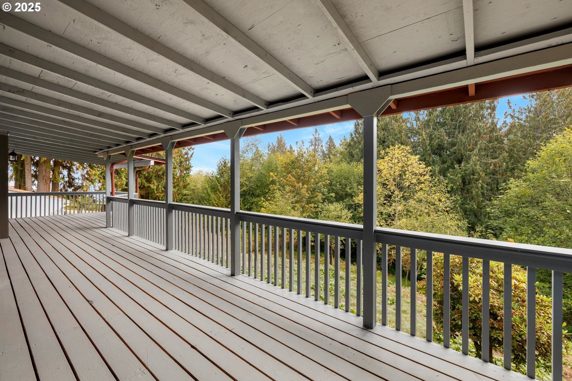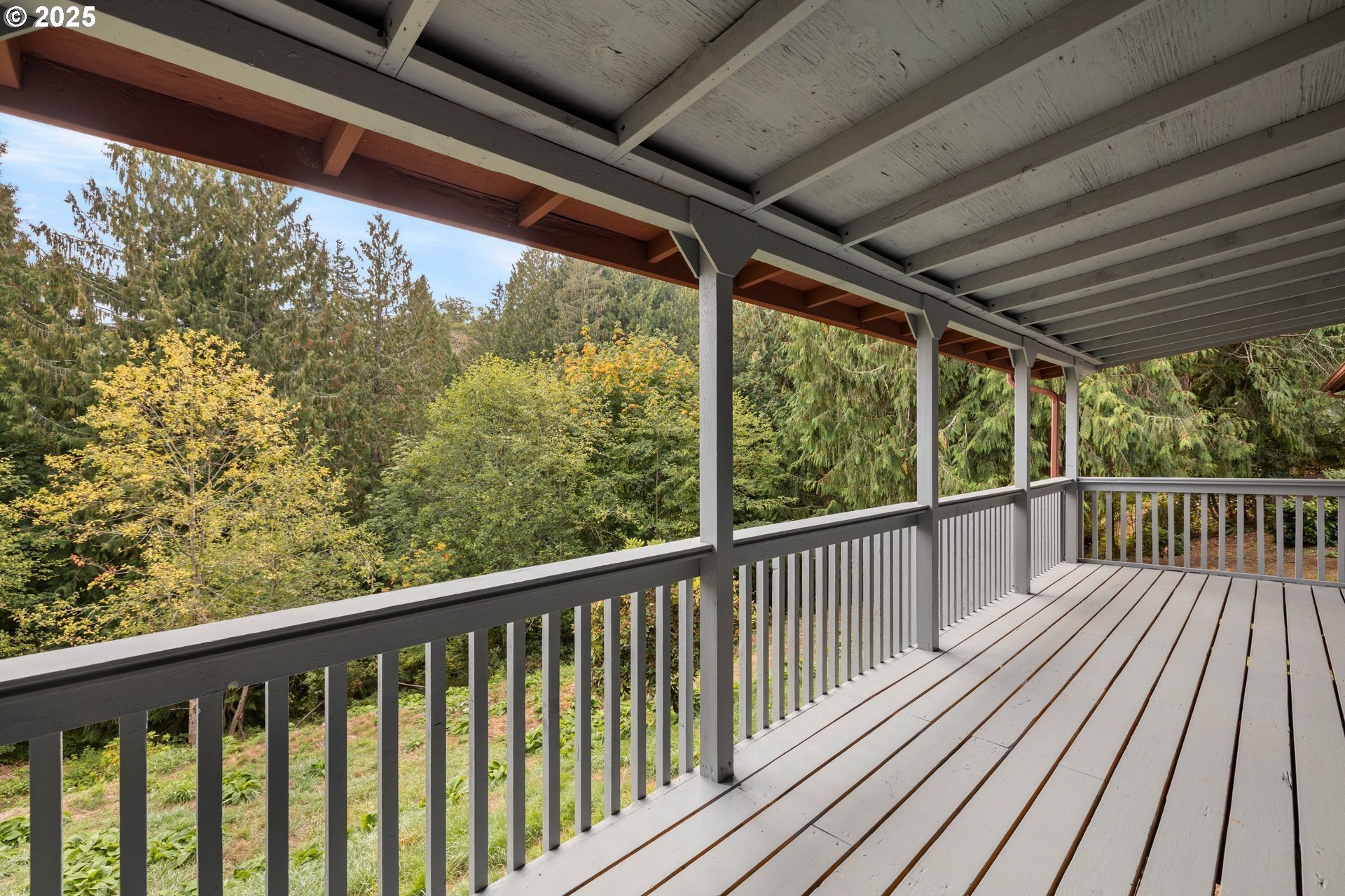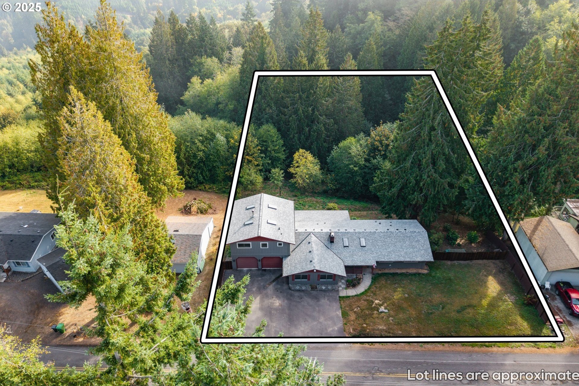 Updated 5 Bedroom Home with Apartment on Nearly an Acre! Enjoy peaceful forest views from this updated 5 bedroom, 3 bathroom home on 0.92 acres. A separate 1 bedroom, 1 bath apartment above the oversized 3-car garage is perfect for guests, multigenerational living, or rental income. Inside, you’ll find fresh paint, new flooring, and a comfortable layout. The living room with wood stove insert opens to the dining area and kitchen with wood cabinetry, stainless steel appliances, and island cooktop. A slider leads to the covered back deck for year round use. The main level primary suite has a private bath. Large family room can serve as a theater room, or office. Upstairs, the apartment or 5th bedroom includes a kitchen, full bathroom, living room, bedroom, private balcony, and separate entry. The secluded backyard offers a quiet setting for relaxing or entertaining.