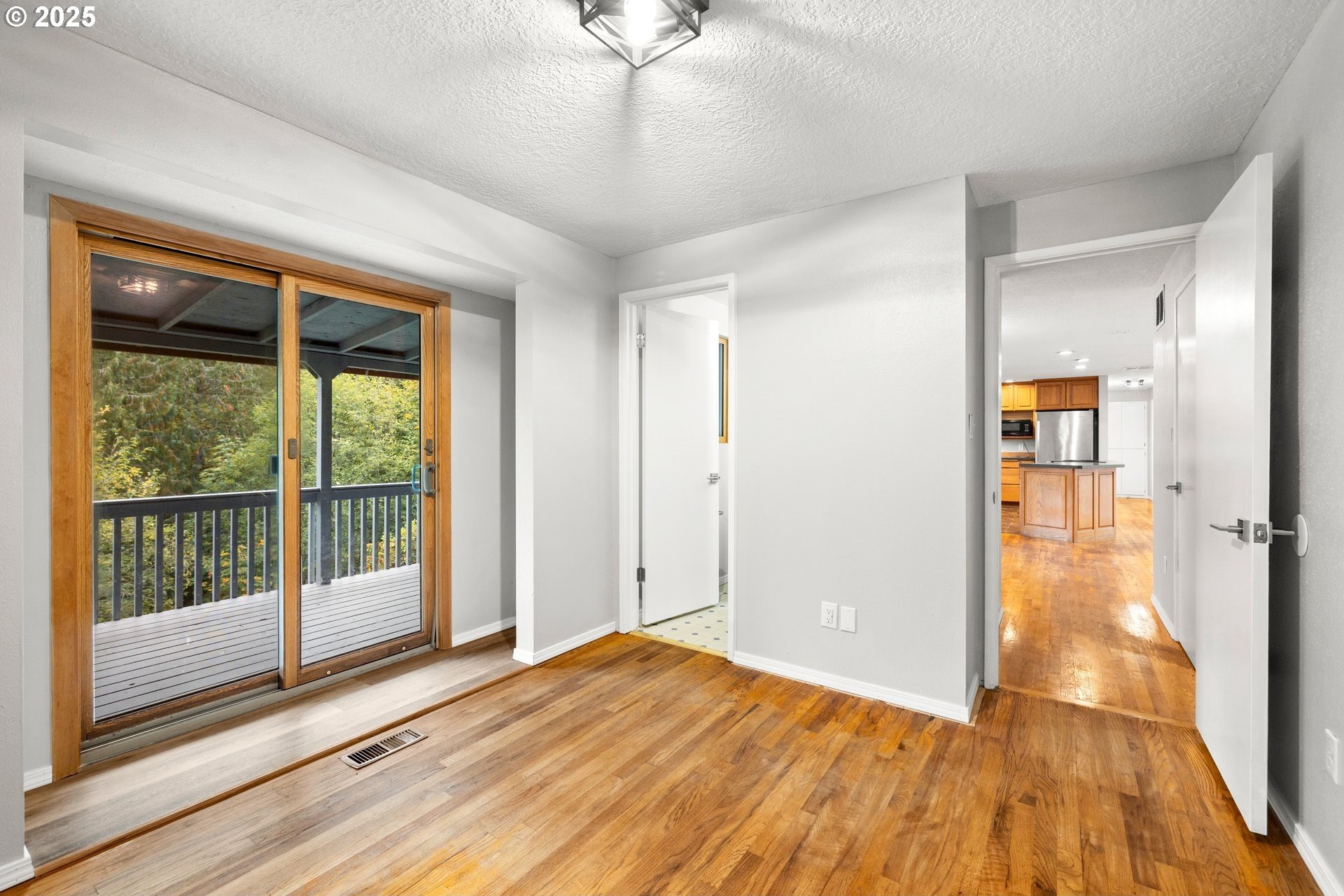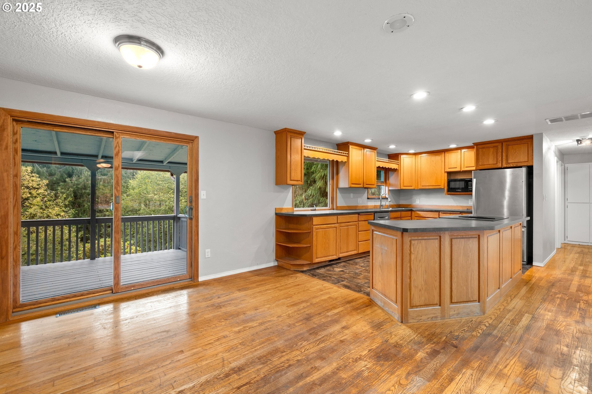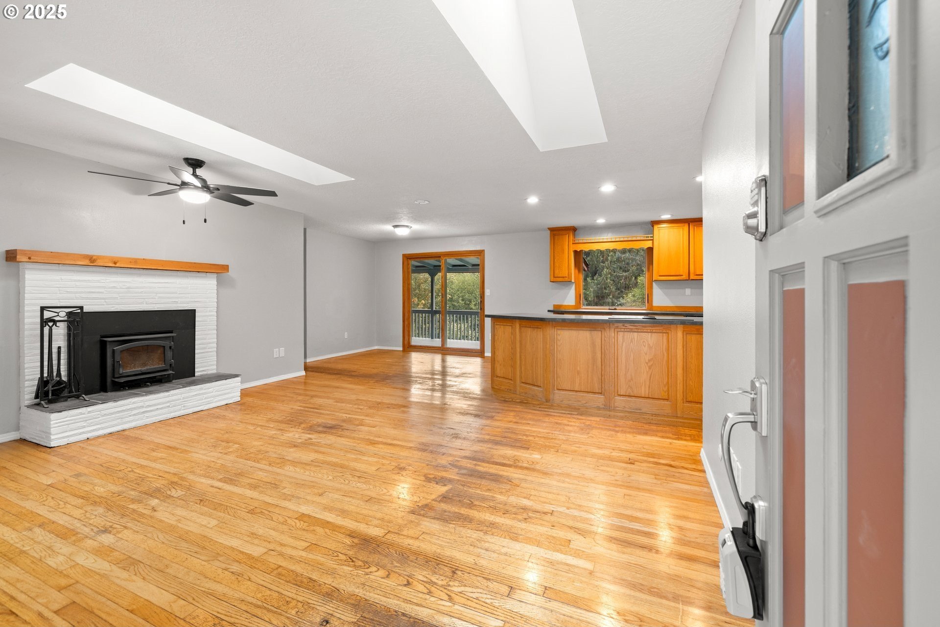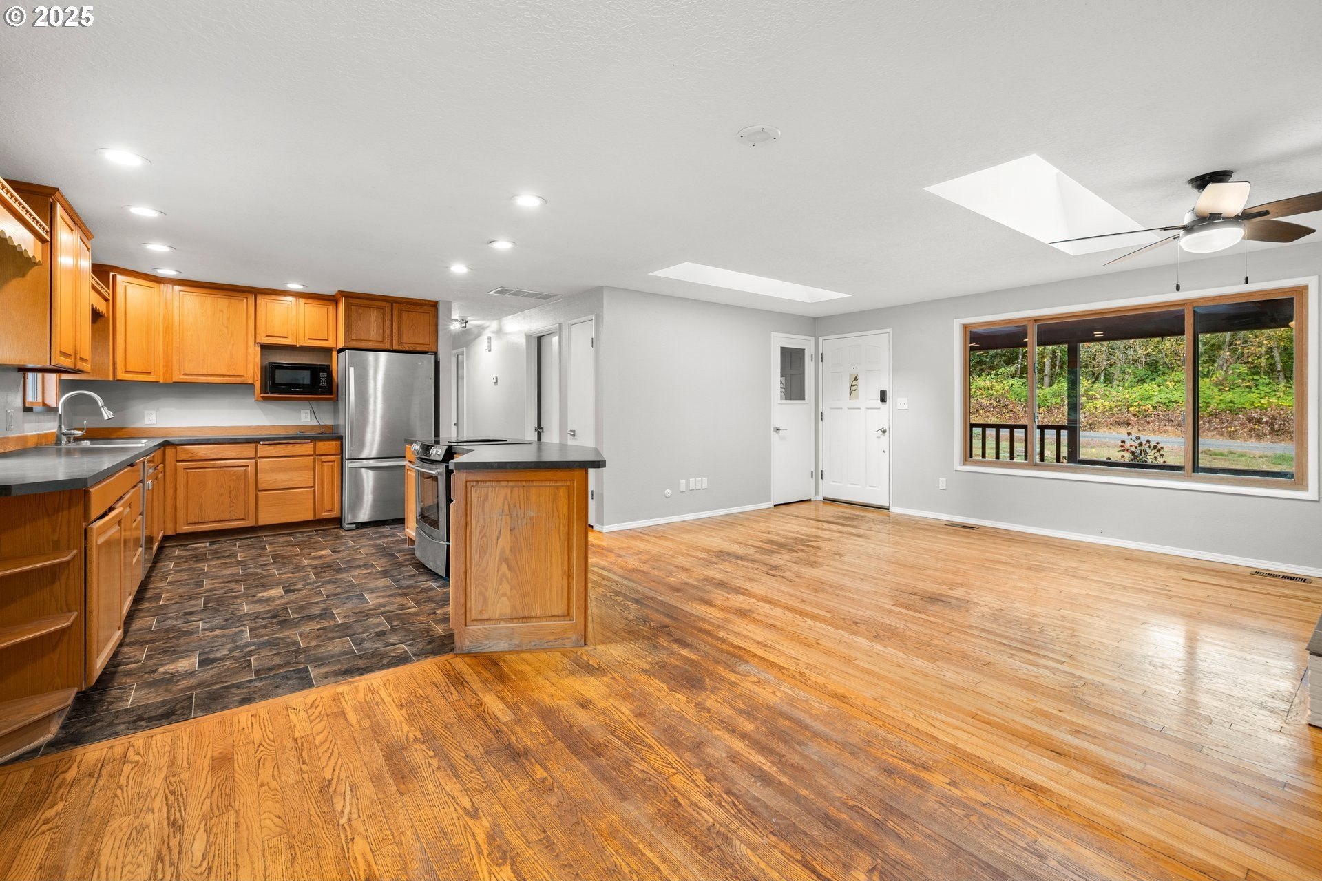 Updated 5 Bedroom Home with Apartment on Nearly an Acre! Enjoy peaceful forest views from this updated 5 bedroom, 3 bathroom home on 0.92 acres. A separate 1 bedroom, 1 bath apartment above the oversized 3-car garage is perfect for guests, multigenerational living, or rental income. Inside, you’ll find fresh paint, new flooring, and a comfortable layout. The living room with wood stove insert opens to the dining area and kitchen with wood cabinetry, stainless steel appliances, and island cooktop. A slider leads to the covered back deck for year round use. The main level primary suite has a private bath. Large family room can serve as a theater room, or office. Upstairs, the apartment or 5th bedroom includes a kitchen, full bathroom, living room, bedroom, private balcony, and separate entry. The secluded backyard offers a quiet setting for relaxing or entertaining.