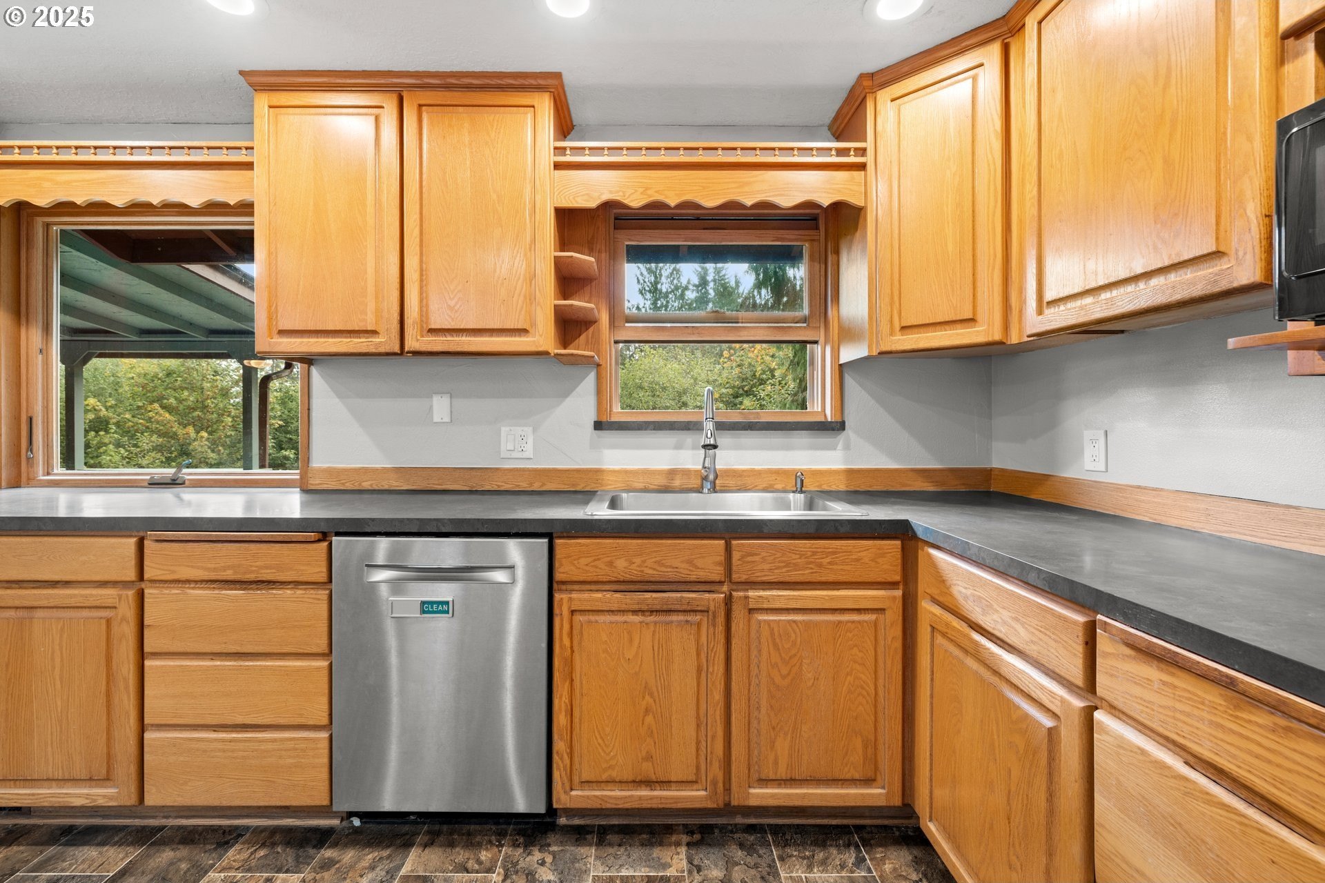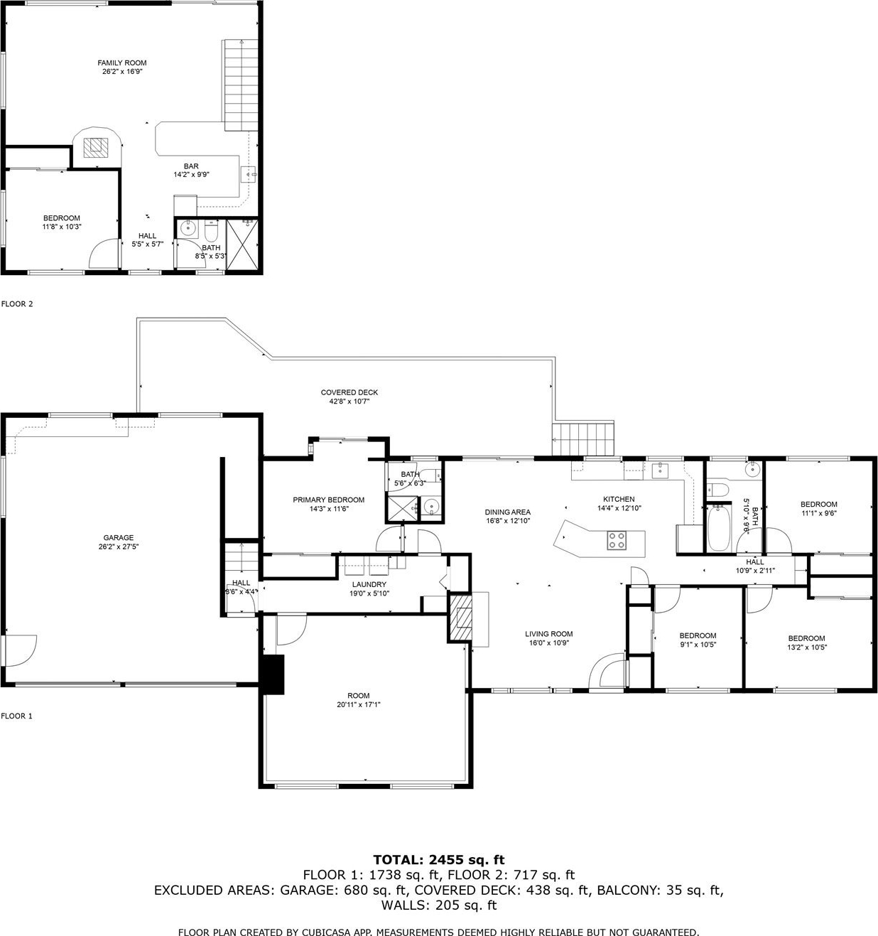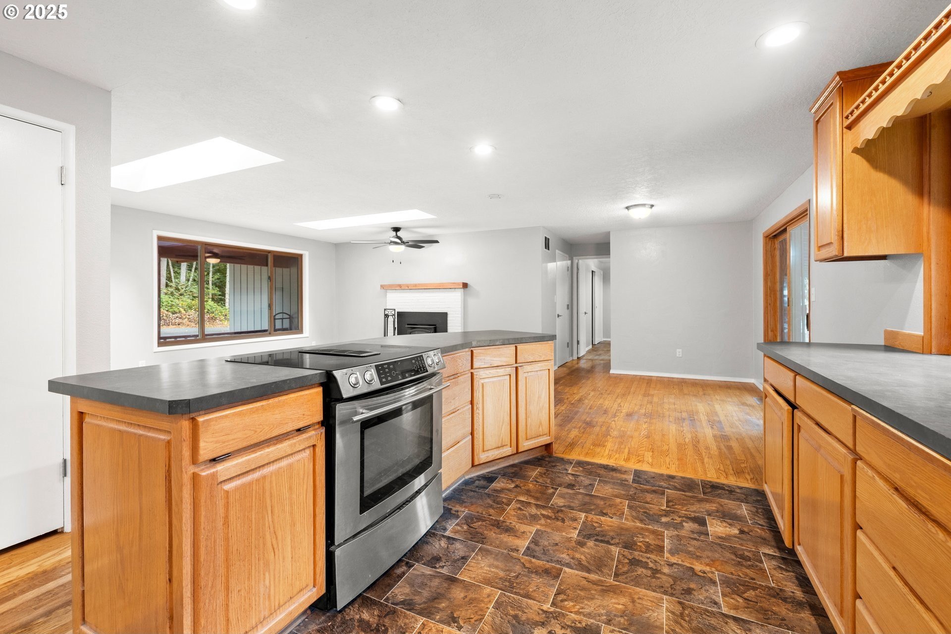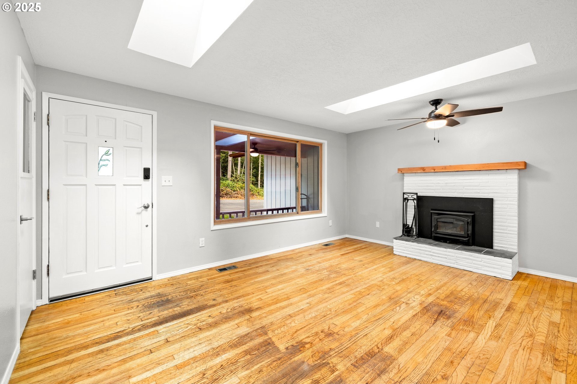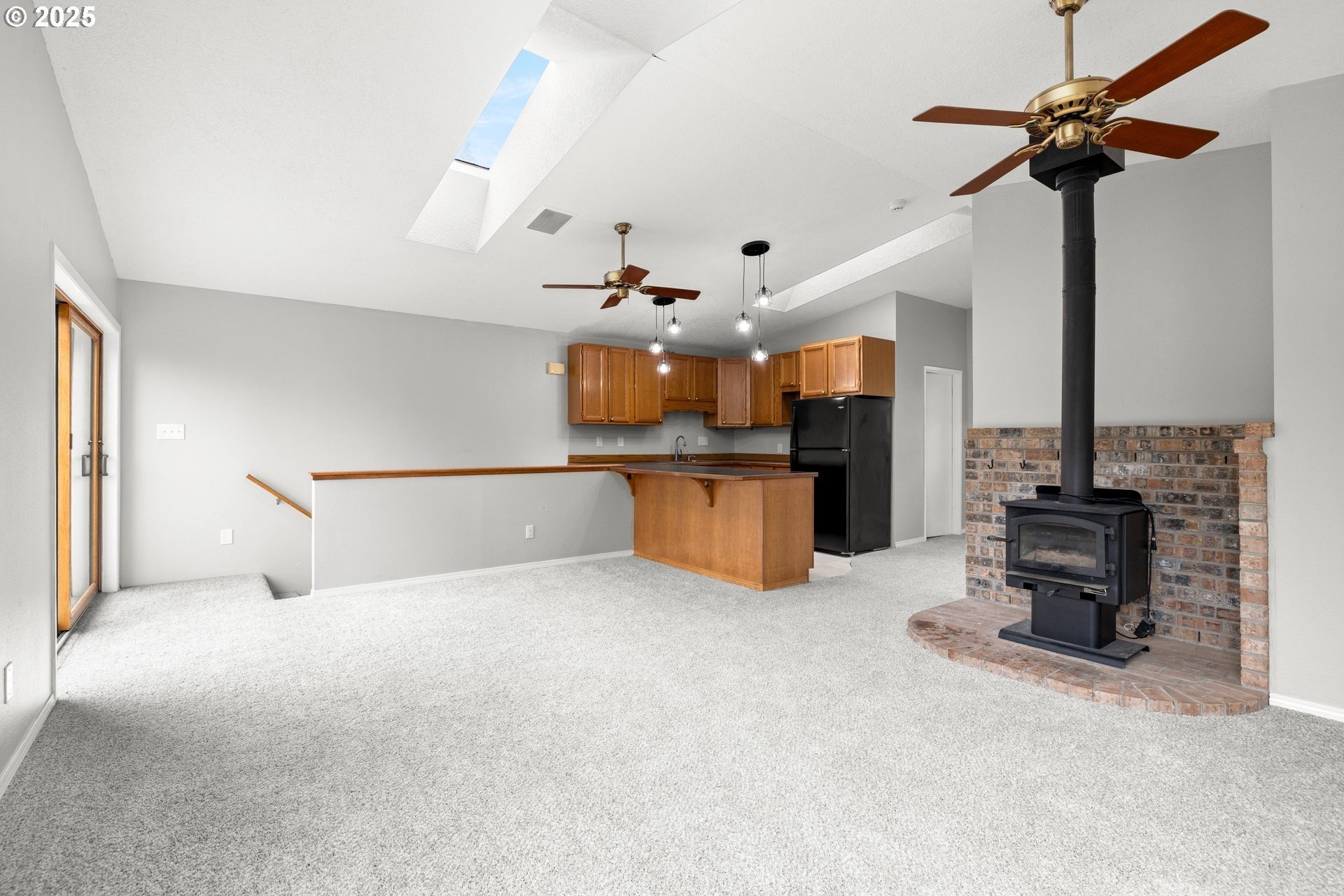 Updated 5 Bedroom Home with Apartment on Nearly an Acre! Enjoy peaceful forest views from this updated 5 bedroom, 3 bathroom home on 0.92 acres. A separate 1 bedroom, 1 bath apartment above the oversized 3-car garage is perfect for guests, multigenerational living, or rental income. Inside, you’ll find fresh paint, new flooring, and a comfortable layout. The living room with wood stove insert opens to the dining area and kitchen with wood cabinetry, stainless steel appliances, and island cooktop. A slider leads to the covered back deck for year round use. The main level primary suite has a private bath. Large family room can serve as a theater room, or office. Upstairs, the apartment or 5th bedroom includes a kitchen, full bathroom, living room, bedroom, private balcony, and separate entry. The secluded backyard offers a quiet setting for relaxing or entertaining.