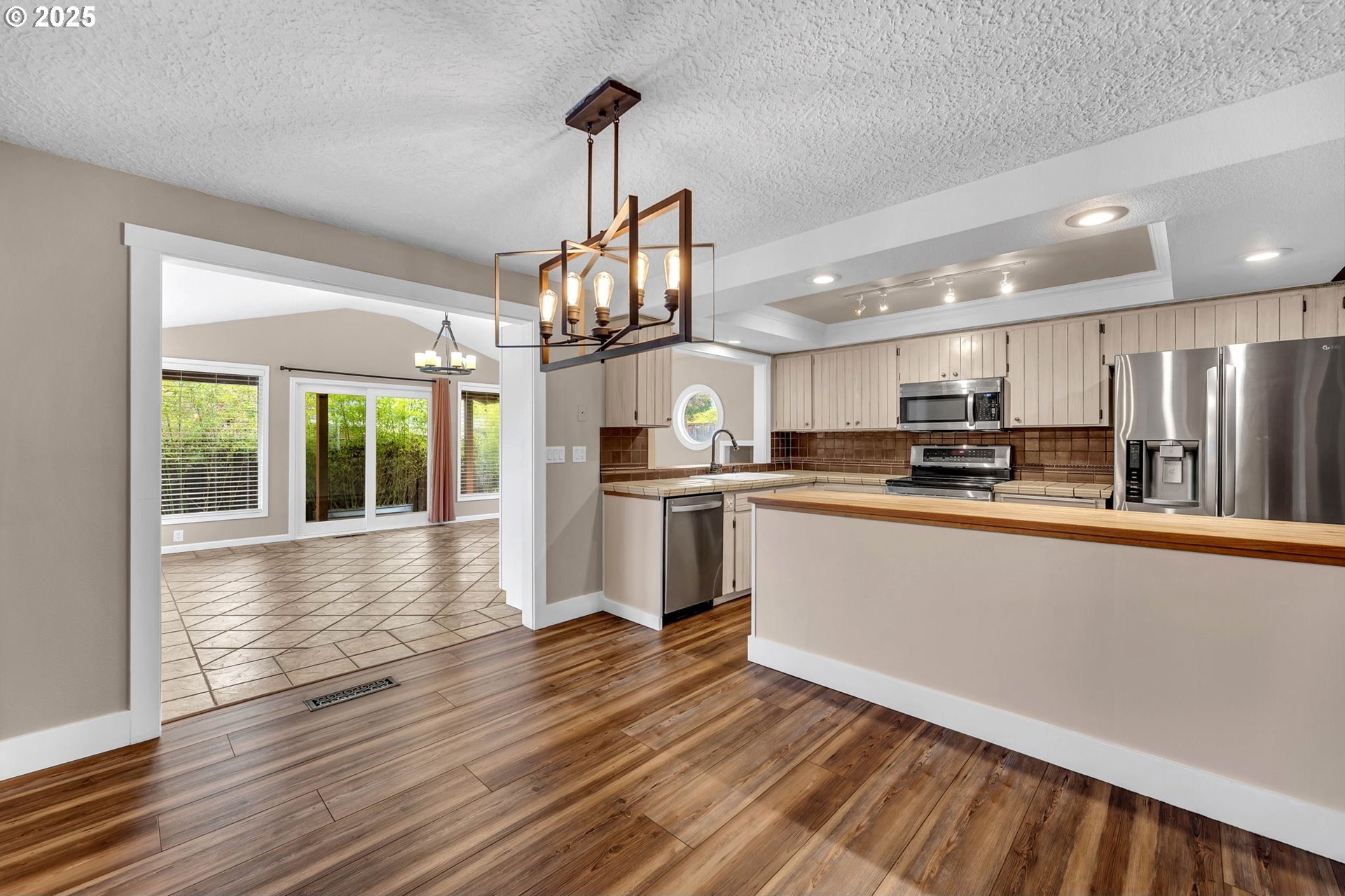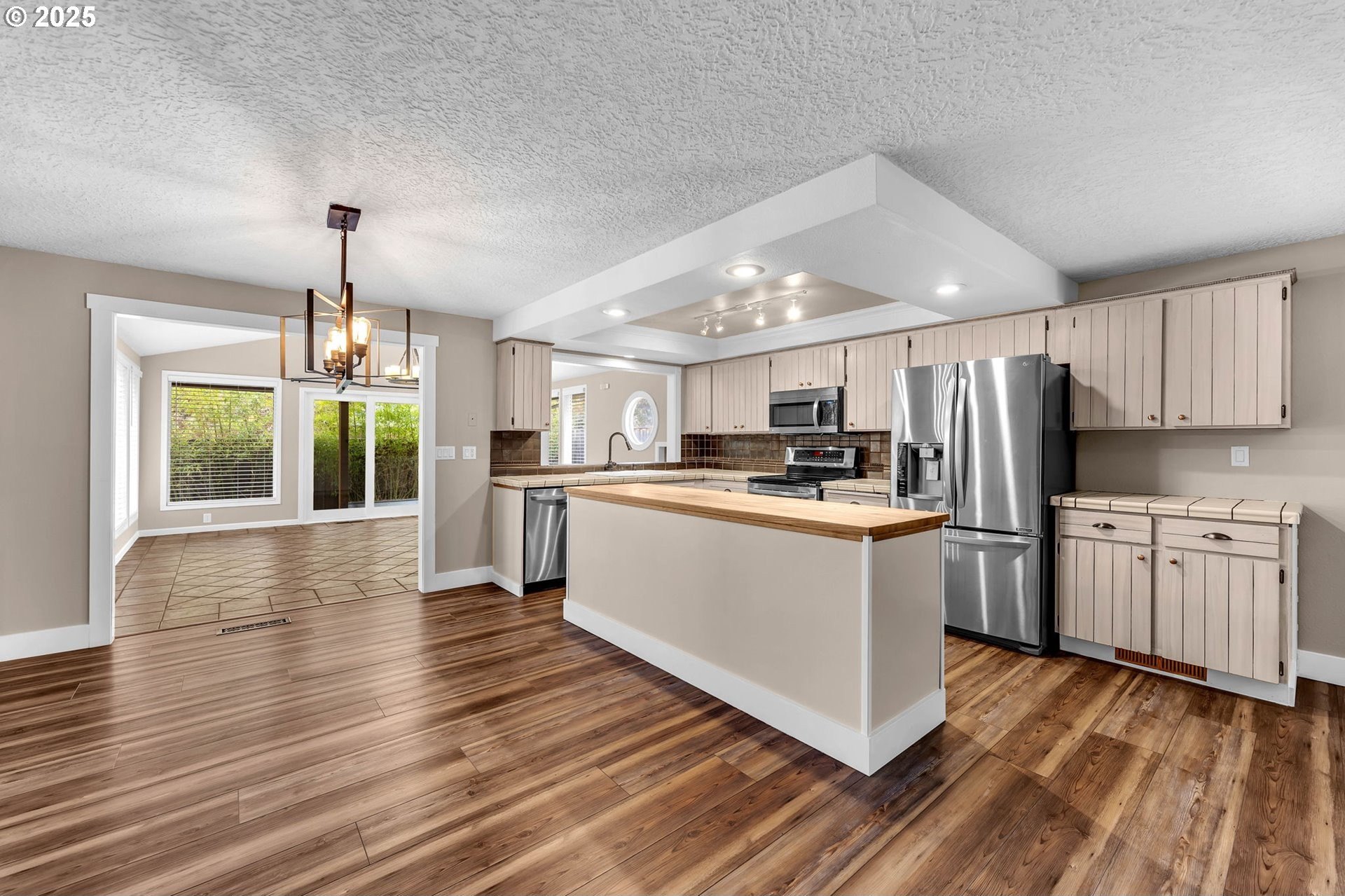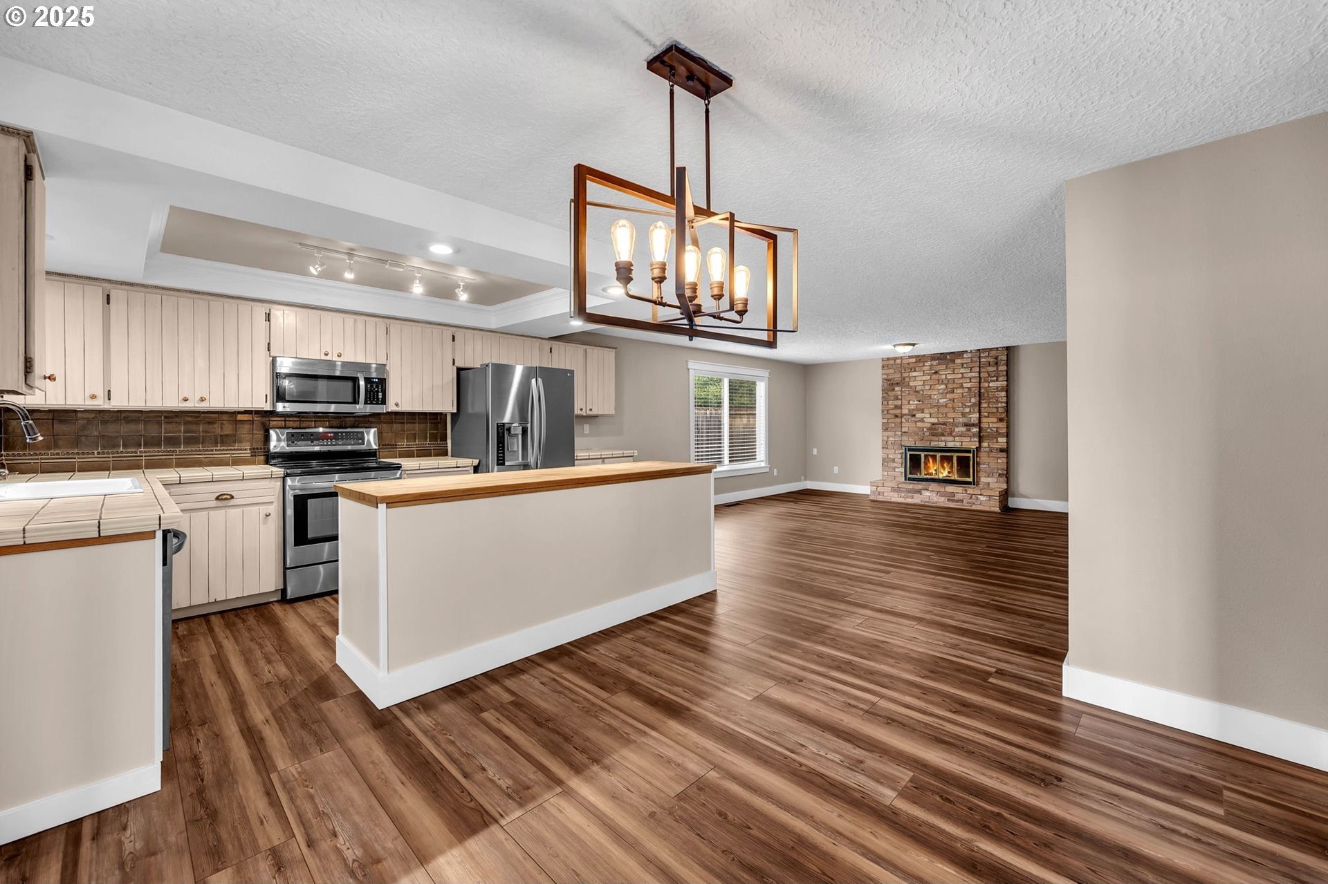 Located in the desirable Riveridge neighborhood in The Heights, this well-maintained 1978 ranch-style home offers comfortable single-level living with three bedrooms and two bathrooms. The beautifully landscaped front yard and strong curb appeal create a welcoming first impression for both residents and guests.The oversized driveway and spacious 420+ sq ft garage provide ample parking and storage options. Inside, the open-concept kitchen, dining, and family room create an expansive area ideal for entertaining. The kitchen features a butcher block island, matching stainless steel appliances, and generous counter space—perfect for the home chef. A cozy wood-burning fireplace in the family room adds warmth and character, while a stylish light fixture in the dining area adds a modern touch.Just off the entryway, the separate living room offers a quiet retreat—ideal for reading or relaxed conversation. An additional sunroom/bonus space fills the home with natural light and offers year-round views of the backyard. Step out onto the 18x8 covered deck, perfect for outdoor dining or relaxing with a cup of coffee.Privately situated at the opposite end of the home, the three bedrooms offer peace and quiet. The primary suite includes an updated en-suite bathroom with a walk-in shower and sliding doors that open to a private deck overlooking the serene backyard. Bedrooms two and three feature stylish barn-style closet doors that enhance both design and function.The 12x5 laundry room includes a high-quality washer and dryer set for added convenience.Don’t miss the opportunity to experience all that this home has to offer—schedule your visit today.Note: Room measurements have been rounded to the nearest foot.