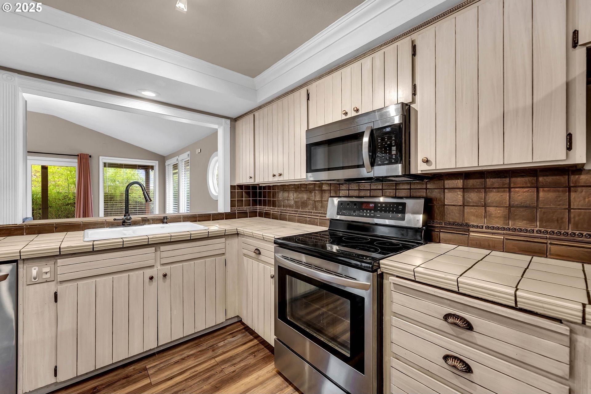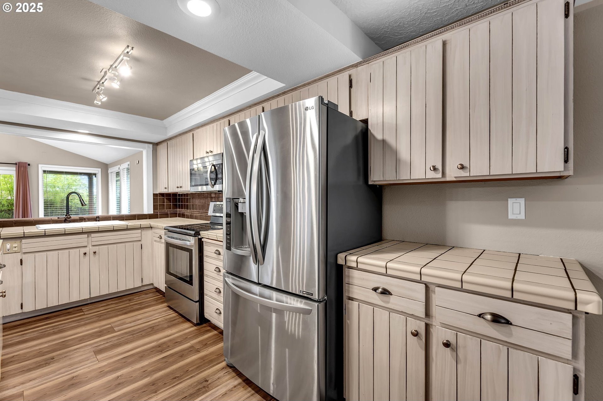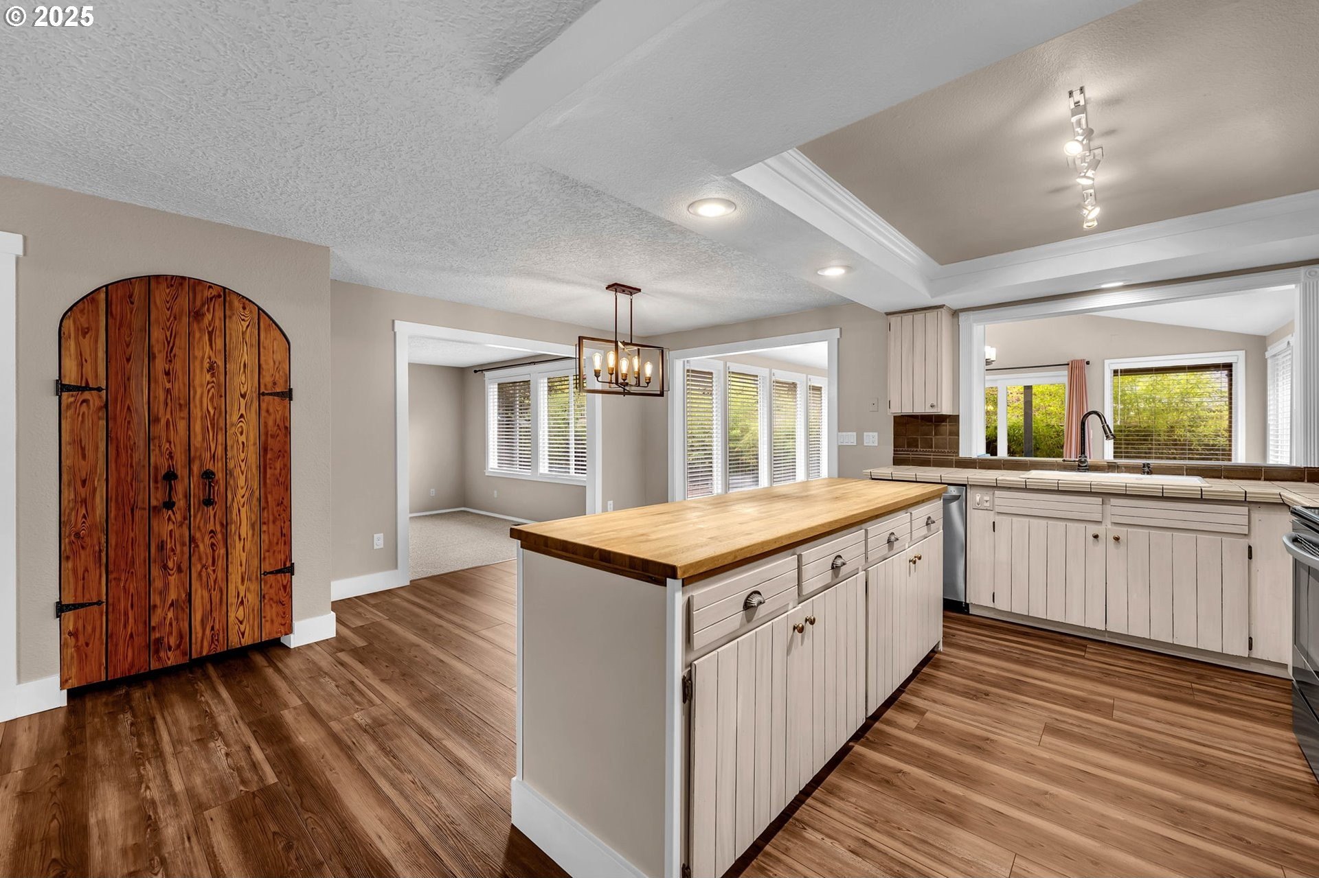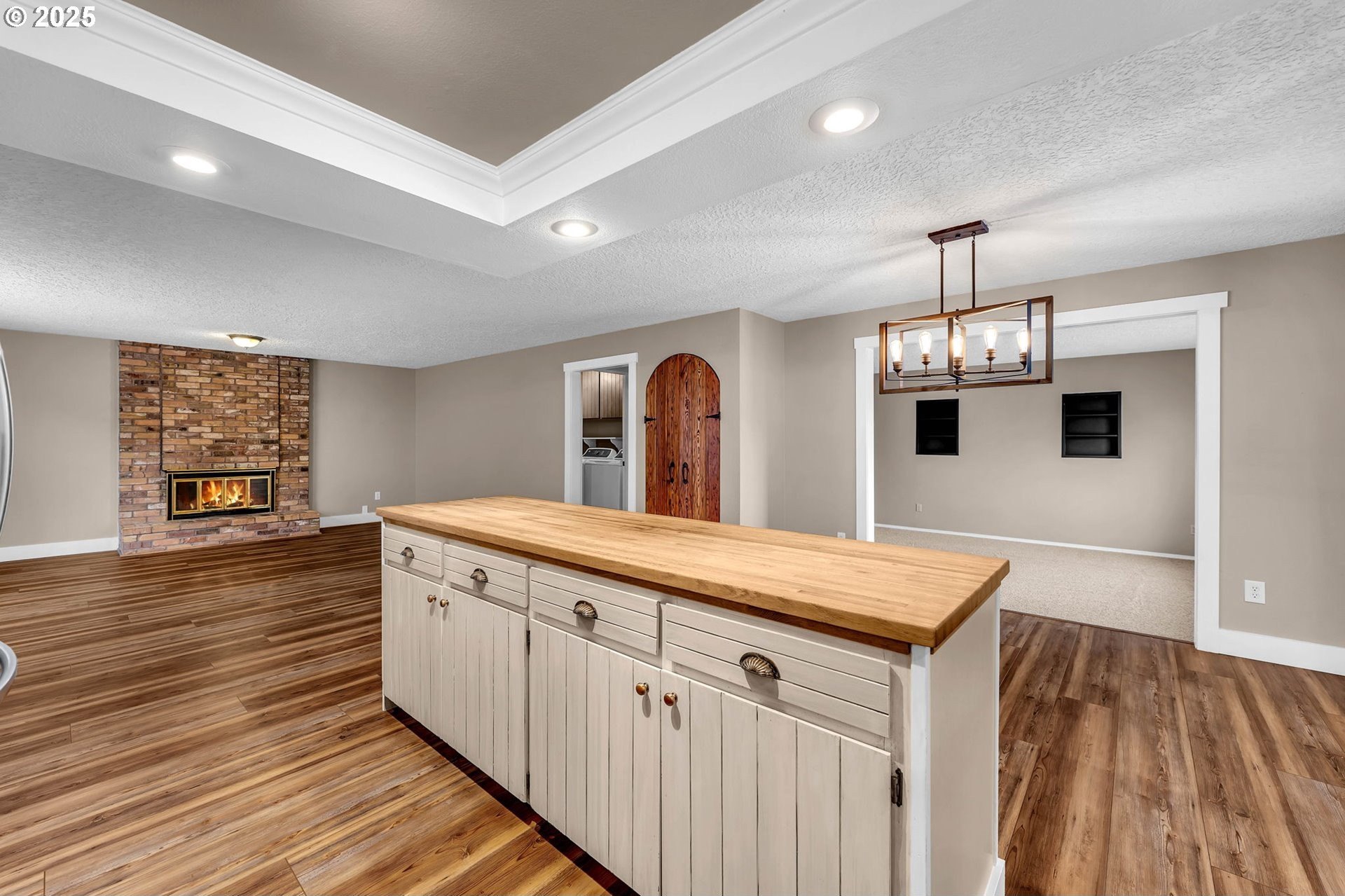 Located in the desirable Riveridge neighborhood in The Heights, this well-maintained 1978 ranch-style home offers comfortable single-level living with three bedrooms and two bathrooms. The beautifully landscaped front yard and strong curb appeal create a welcoming first impression for both residents and guests.The oversized driveway and spacious 420+ sq ft garage provide ample parking and storage options. Inside, the open-concept kitchen, dining, and family room create an expansive area ideal for entertaining. The kitchen features a butcher block island, matching stainless steel appliances, and generous counter space—perfect for the home chef. A cozy wood-burning fireplace in the family room adds warmth and character, while a stylish light fixture in the dining area adds a modern touch.Just off the entryway, the separate living room offers a quiet retreat—ideal for reading or relaxed conversation. An additional sunroom/bonus space fills the home with natural light and offers year-round views of the backyard. Step out onto the 18x8 covered deck, perfect for outdoor dining or relaxing with a cup of coffee.Privately situated at the opposite end of the home, the three bedrooms offer peace and quiet. The primary suite includes an updated en-suite bathroom with a walk-in shower and sliding doors that open to a private deck overlooking the serene backyard. Bedrooms two and three feature stylish barn-style closet doors that enhance both design and function.The 12x5 laundry room includes a high-quality washer and dryer set for added convenience.Don’t miss the opportunity to experience all that this home has to offer—schedule your visit today.Note: Room measurements have been rounded to the nearest foot.