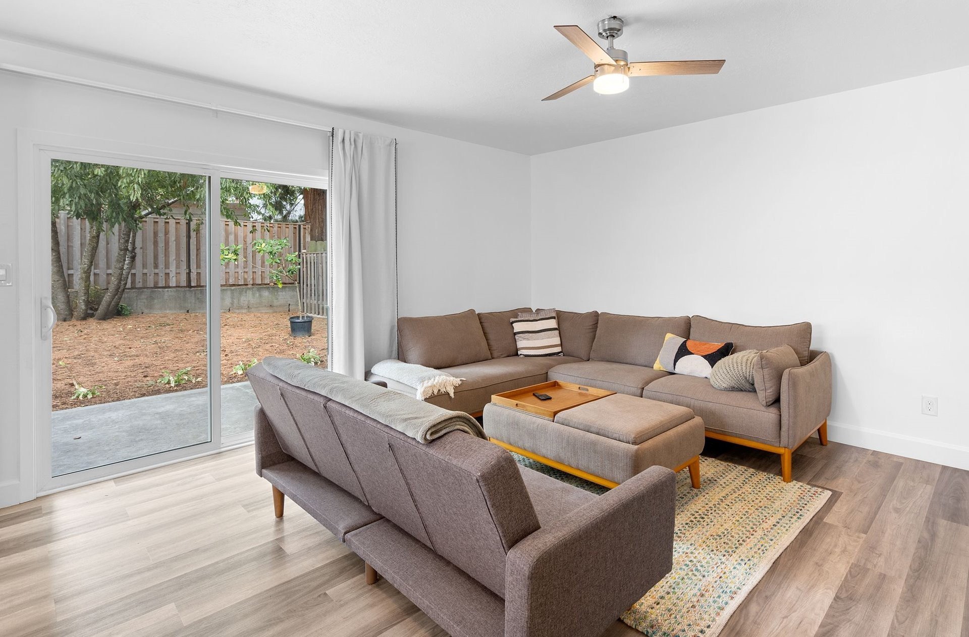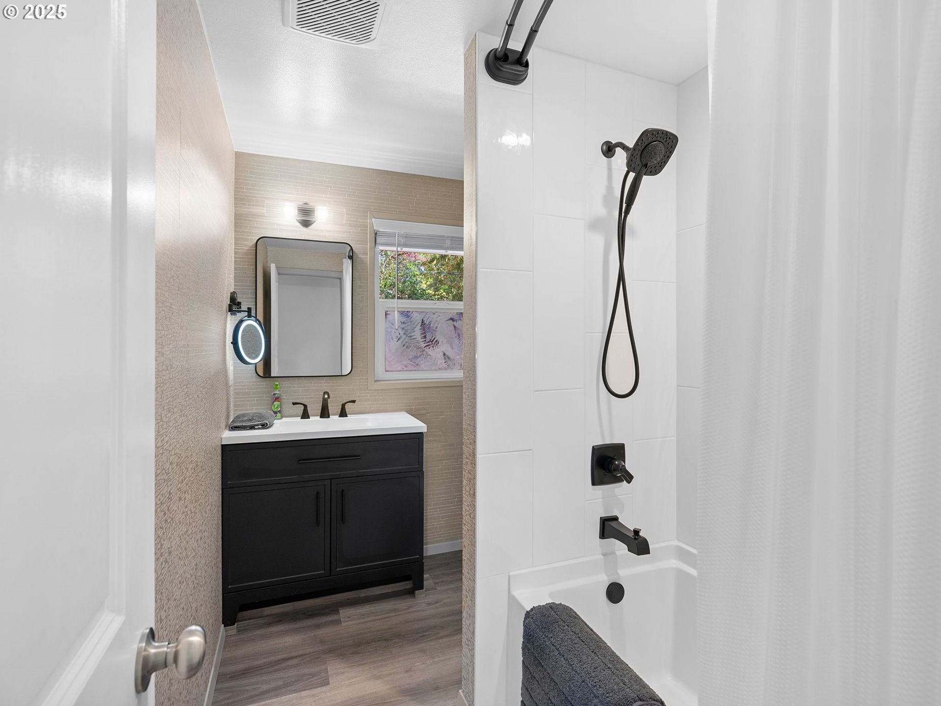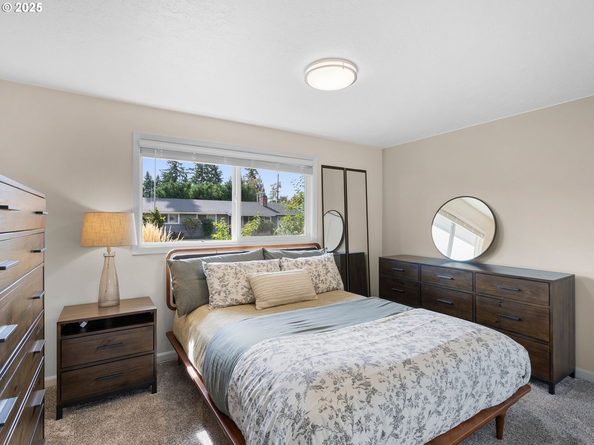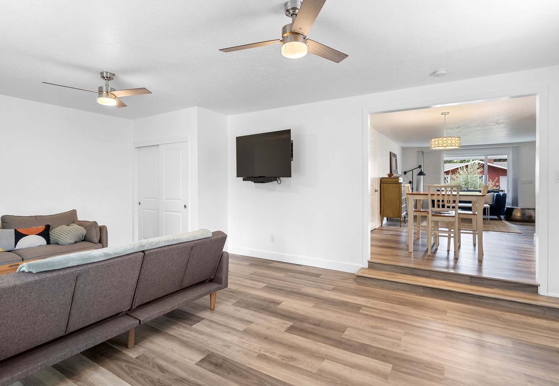 Renovated ranch in Centennial with no detail missed! White soft-close cabinets and backsplash tile in the kitchen artistically complement the black quartz countertops, accented by stainless steel appliances. A wood-burning fireplace keeps the living room cozy. Throughout you'll find Evoke LVP flooring seamlessly connecting each room, “electrician's special” dimming switches, and vinyl windows. Solar panels greatly reduce the electric bill, and new PEX plumbing and a new water main provide peace of mind. Creative bathroom renovation features soaker tub, tub-to-ceiling tile, floor-to-ceiling tile accent wall, hardwired makeup mirror, recessed medicine cabinet, and vanity lighting on dimmer switch. Plush carpet in the 13x10 primary bedroom and second bedroom. Expansive bonus room with ceiling fans and a slider leading to the stamped patio in the backyard. A new cedar fence with rigid metal posts provides durability and privacy. New gutters and water collection barrels are eco-friendly and a gardener's delight. Eye-catching front landscaping and low-maintenance backyard with room for your vision. Attached garage with laundry area. Conveniently located near the refreshed Parklane Park and Fred Meyer.