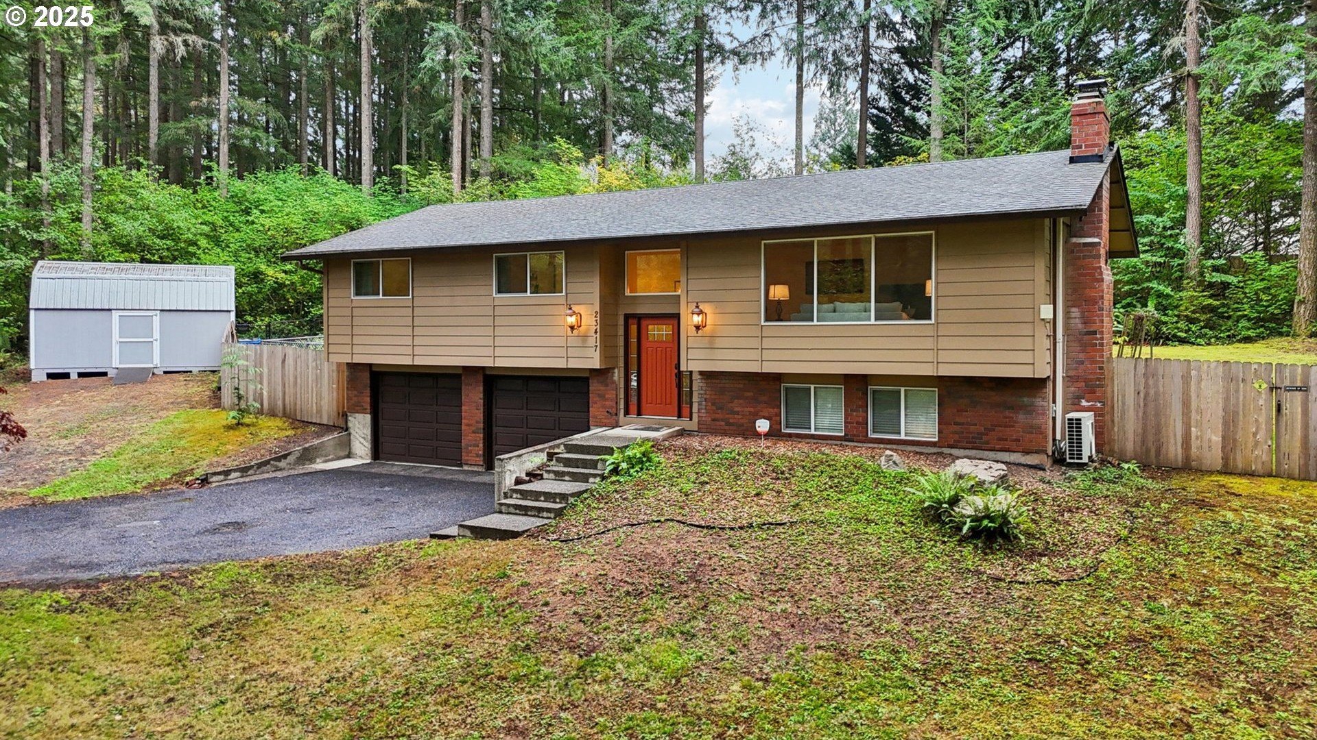 Come home to your private retreat minutes from town! This spacious 3-bdrm, 3-bath split-level home nestled on over an acre of serene wooded beauty. Step inside to a newly updated kitchen featuring SS appl, Great room living & spacious dining. New windows fill the home w/ natural light & picturesque views. The versatile lower level offers its own bathroom, F/P & Bar area—perfect as guest space, or a cozy entertainment retreat. Outdoors, relax on the deck surrounded by nature, soak in the hot tub under the stars, or take advantage of the generous yard, Walking trails, & partially fenced w/room to build a shop. Additional highlights include Tuff Shed for extra storage & plenty of space for RV parking. Enjoy the perfect balance of tranquility & convenience—peaceful living just minutes from town.