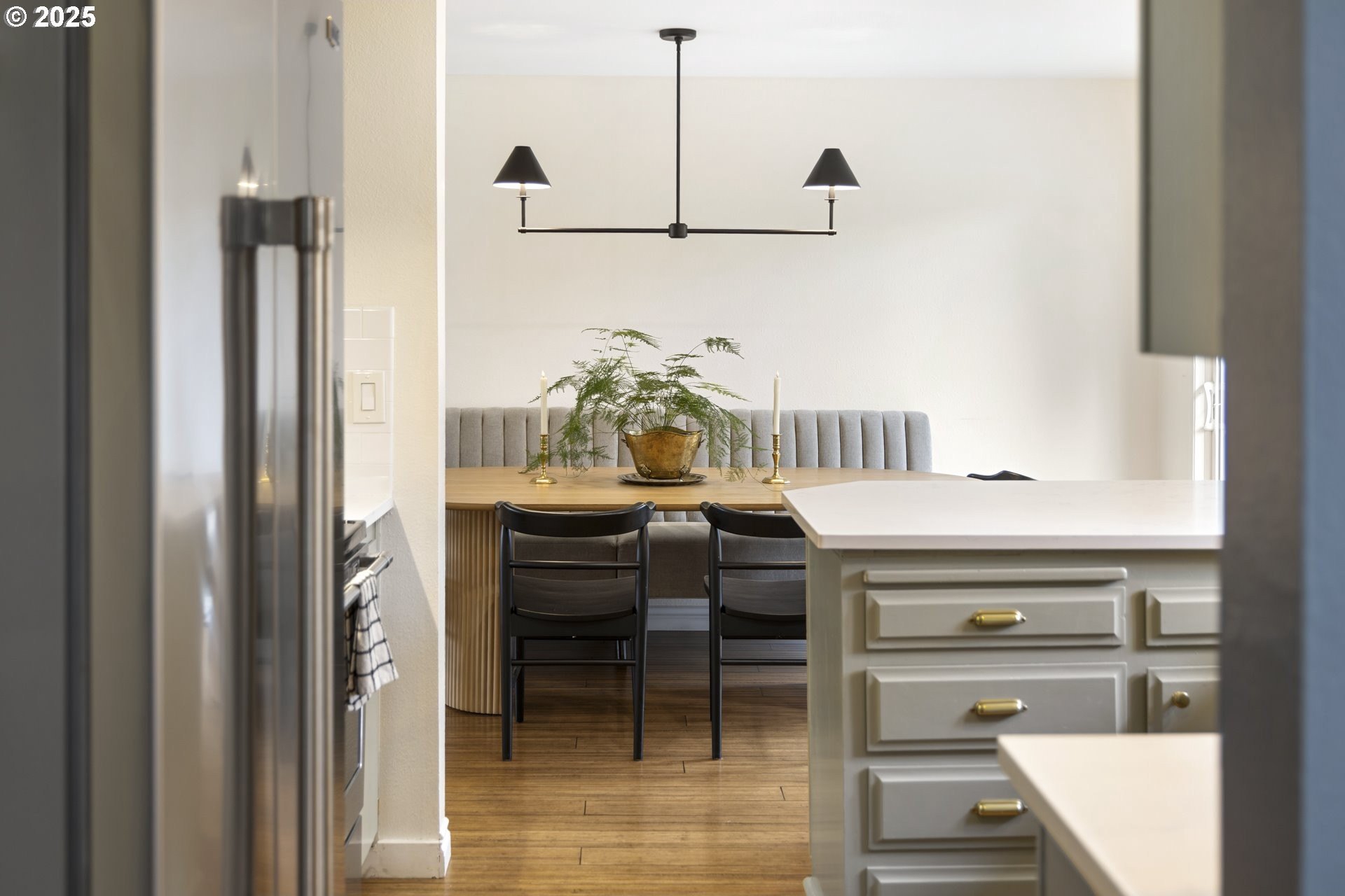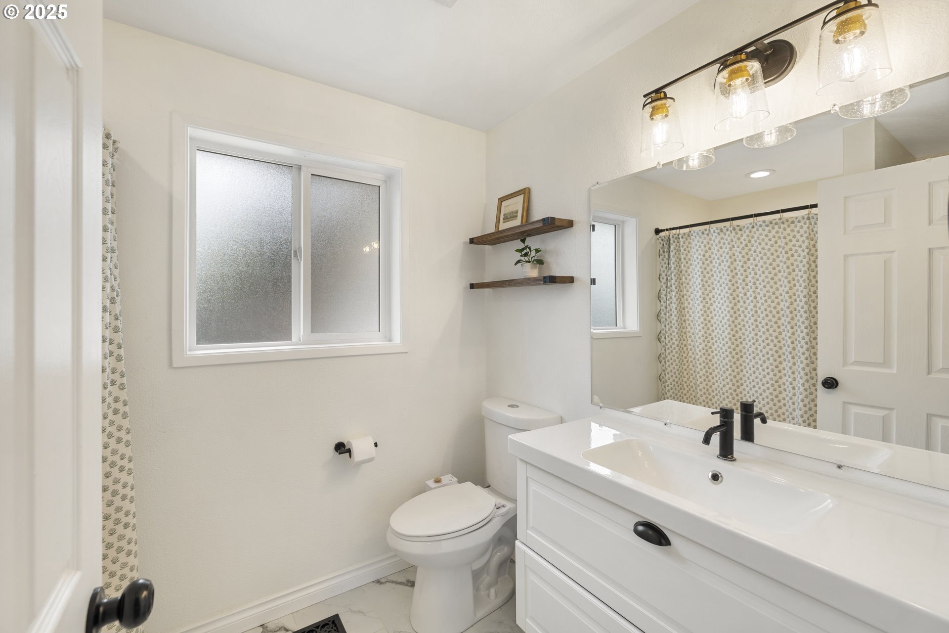 Single-level living at its finest in this extensively updated Newberg ranch! Step inside and you’ll immediately experience the friendly flow and charm, where bamboo floors and abundant windows create a light and welcoming environment. As you enter, the living room is anchored by a cozy wood stove and built-in reading bench that looks out onto the graceful front yard. Down the hall, you’ll find two bedrooms and an updated main bathroom, providing comfortable spaces for all. Walk through the dining room to the recently updated kitchen, which is perfectly positioned to receive an abundance of natural light. Continue through to the family room, a true highlight of the home, where custom built-in cabinetry and a wall of windows framing views of the backyard add beauty and utility. The primary bedroom is tucked privately beyond the family room and features an updated ensuite bath and slider to the backyard. Thoughtfully designed and beautifully integrated, the backyard is easily accessible from three points: a slider from the kitchen onto the deck, a door from the family room, and the slider from the primary suite. The large deck provides the perfect area for al fresco dining and relaxing, still leaving ample space for lawn games, gardening, and entertaining. A shed keeps garden tools neatly stored, and a full RV pad adds exceptional versatility and value! Major updates include new exterior paint (2025), interior paint (2022), a new roof (2019), furnace (2020), built-in cabinetry in the family room, an EV charger in the garage, a new electrical panel (2021), and more. Ideally located in a well established neighborhood in one of the region’s most desirable and growing communities. You’ll be just minutes from downtown Newberg’s incredible restaurants, nearby parks like Chehalem Aquatic Center Park and Spring Meadow Park, The Allison Inn, George Fox University, and of course the thriving Oregon wine country!