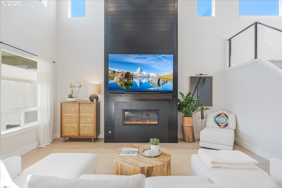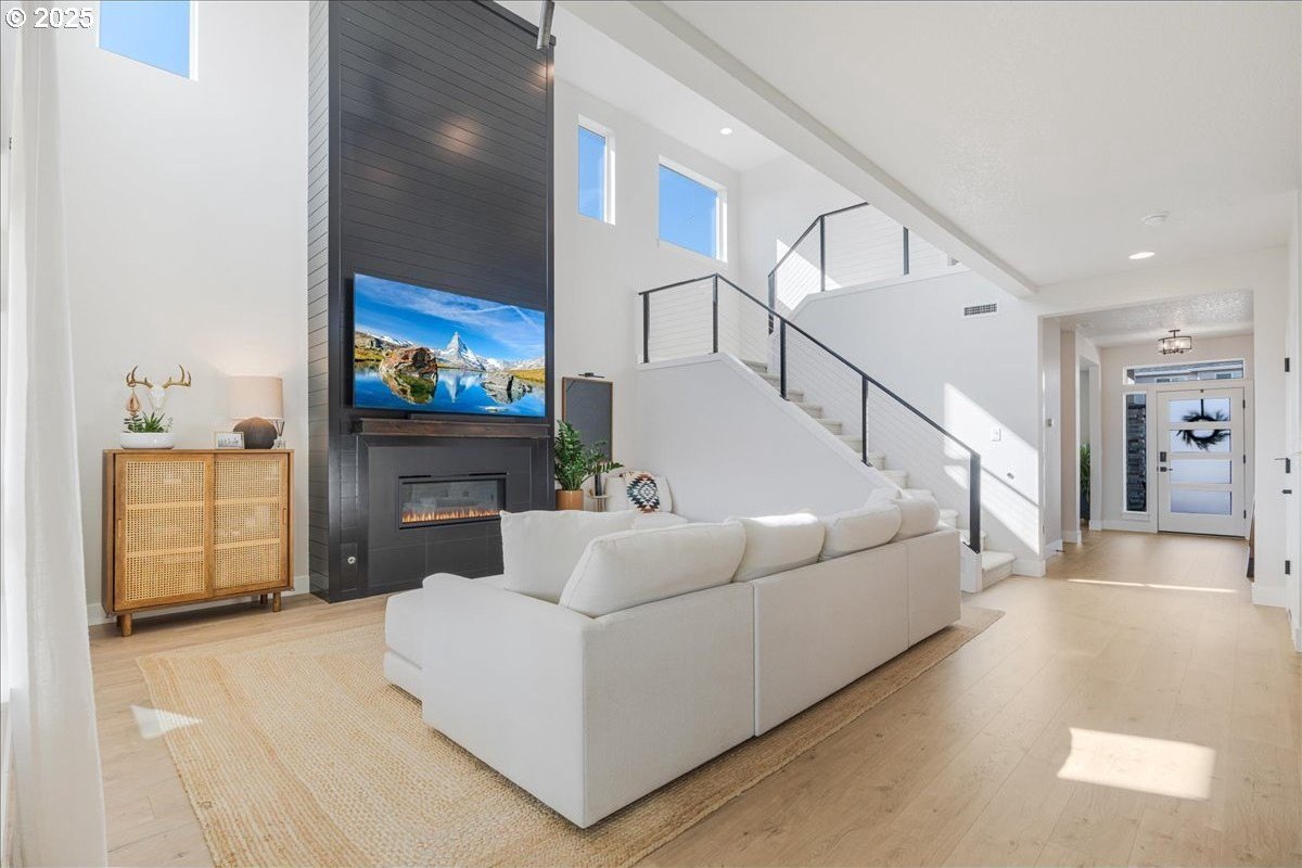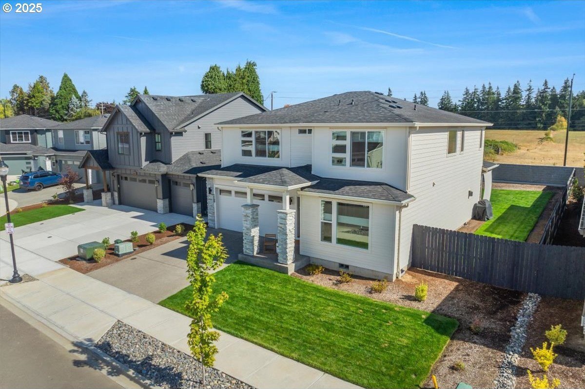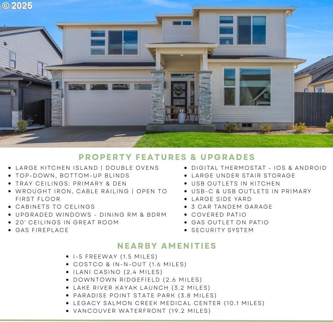 Step into modern living with this stunning one year old home that feels better than new. From the moment you enter, soaring 20-foot ceilings and oversized windows fill the space with natural light. The sleek kitchen boasts ceiling height cabinets, double ovens, under cabinet lights and built in USB outlets. A modern cable stair railing leads upstairs, where the open design allows you to take in views of the space below. Every detail has been designed for style and function, from the up down blinds to the contemporary finishes throughout. The tandem three car garage offers plenty of room for vehicles, storage, or a home gym. Modern, light-filled, and thoughtfully designed, this is your forever home.