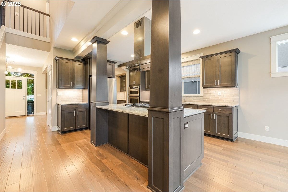 Backing onto an expansive greenspace, this Arbor home in Findley Heights offers the perfect blend of comfort, style, and versatility, with 3,644 square feet, five bedrooms, four full baths, a bonus room, and a den. The main level bedroom and bath create an ideal setup for multigenerational living or use as a private home office. The spacious chef’s kitchen with breakfast nook flows seamlessly into the great room, where soaring ceilings and a wall of windows bring in abundant natural light and serene views. Step outside to the large back deck, perfect for entertaining, cooking and relaxing. Upstairs, the expansive primary suite provides a private retreat with beautiful views, along with three additional bedrooms and another full bath. The lower level extends the living space with a generous bonus room, an additional bedroom, and a full bath, making it perfect for recreation and guests. This home combines thoughtful design with a flexible layout to meet all your lifestyle needs. The location is ideal for those looking for a quiet street and low-maintenance yard, close to top-ranked Findley Elementary, Nike, Intel, retail, restaurants, health clubs, and so much more. The home’s condition, layout, and price make this a must-see opportunity in one of the area’s most coveted locations!