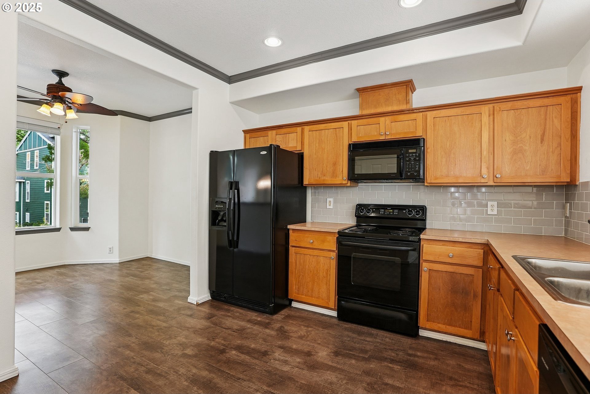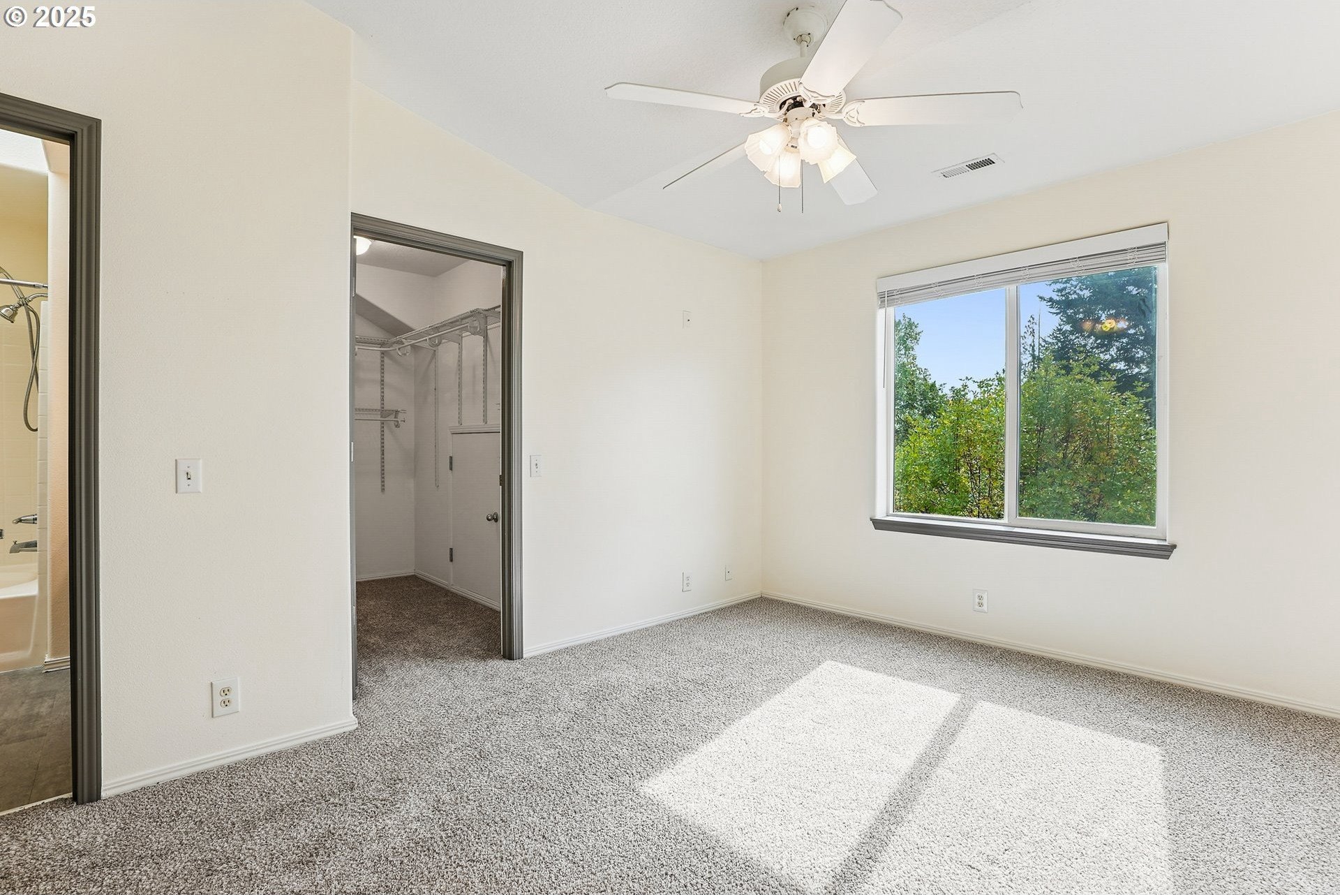 OPEN HOUSE, SATURDAY, 10/4, FROM 1-3! Welcome to easy living in one of Beaverton’s most connected and convenient neighborhoods. Just a short distance from Nike Corporate HQs, Intel RA3, Orenco Station, Tanasbourne, and the Reed’s Crossing Town Center, this move-in ready end unit offers easy access to top dining spots, coffee shops, parks, public transit, and a wide variety of shopping. Inside, the main level boasts an open-concept layout with soaring ceilings and expansive windows that flood the space with natural light. The seamless flow between the kitchen, dining, and living areas makes everyday living and entertaining a breeze. The spacious kitchen offers LVP flooring, FS range + refrigerator, a pantry, and bar seating. Adjacent to the kitchen is a rare, separate dining room. The living room has a cozy gas fireplace, built-in features and sliding doors out onto the private deck. Upstairs, you'll find two generous bedrooms, each with its own walk-in closet and one with an ensuite bathroom. There is a second full bath and the laundry closet, conveniently located on the upper level. Downstairs, the third bedroom and half bathroom offer a private space perfect for guests, a home office, work out space, or hobby room. Outside, enjoy a fully fenced backyard in a forested setting with a spacious patio, and a rare, gated side yard access. The tandem, two car parking garage comes with an EV charging station and interior access to the unit!