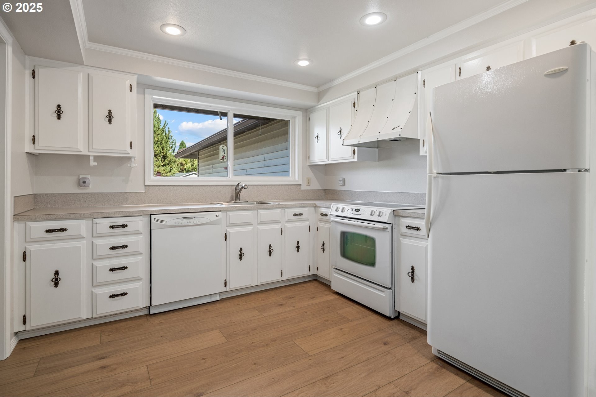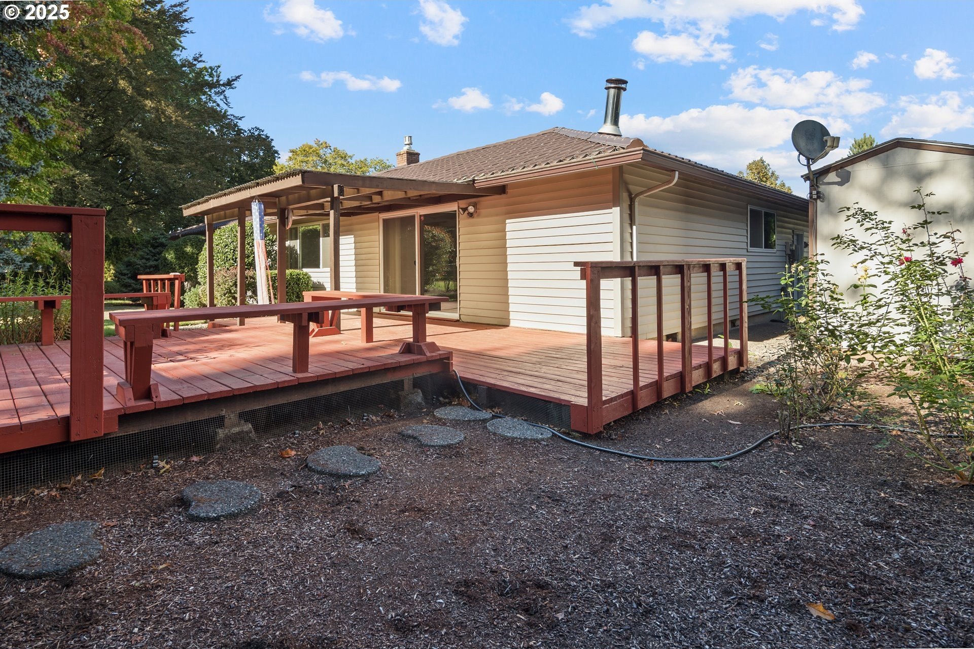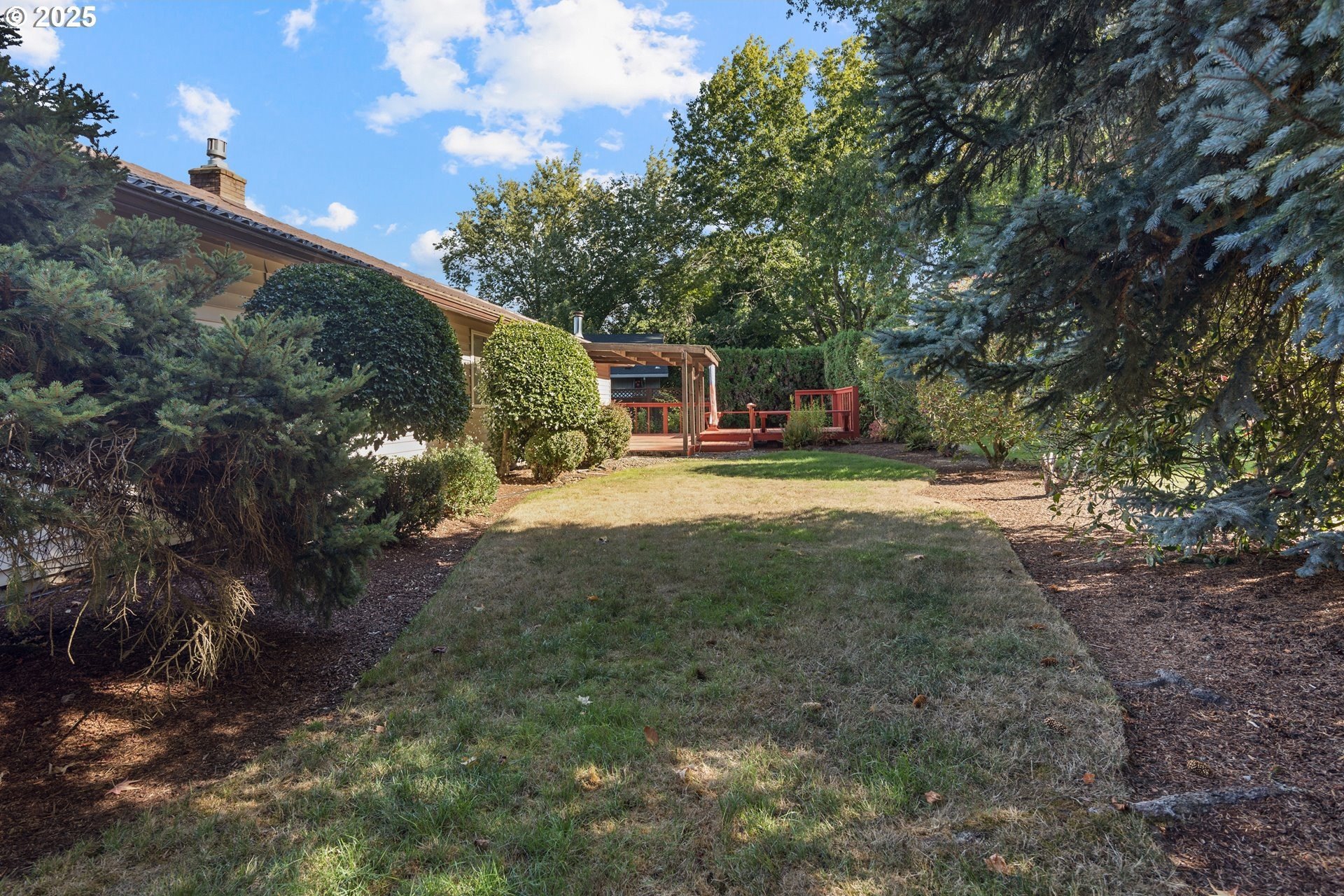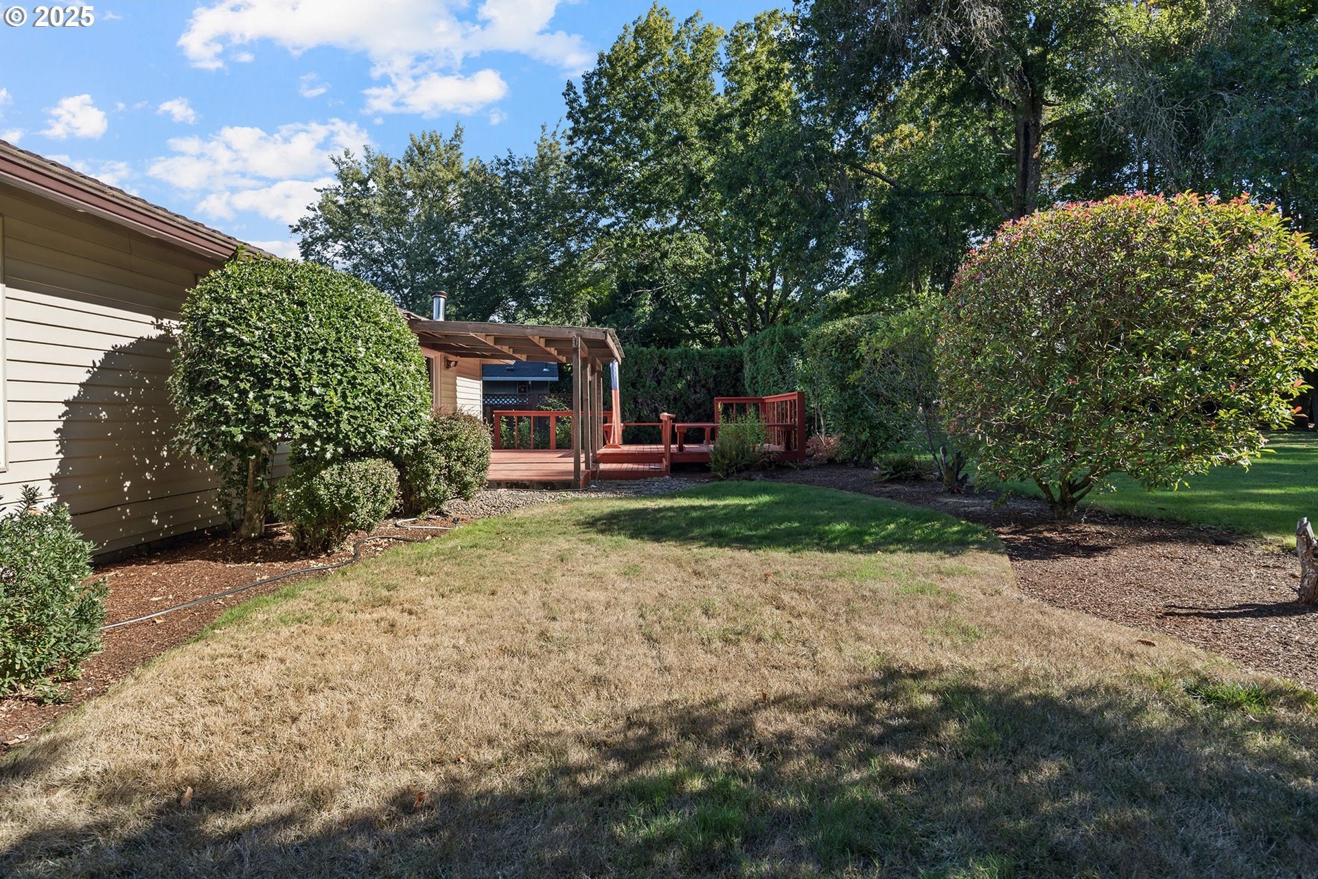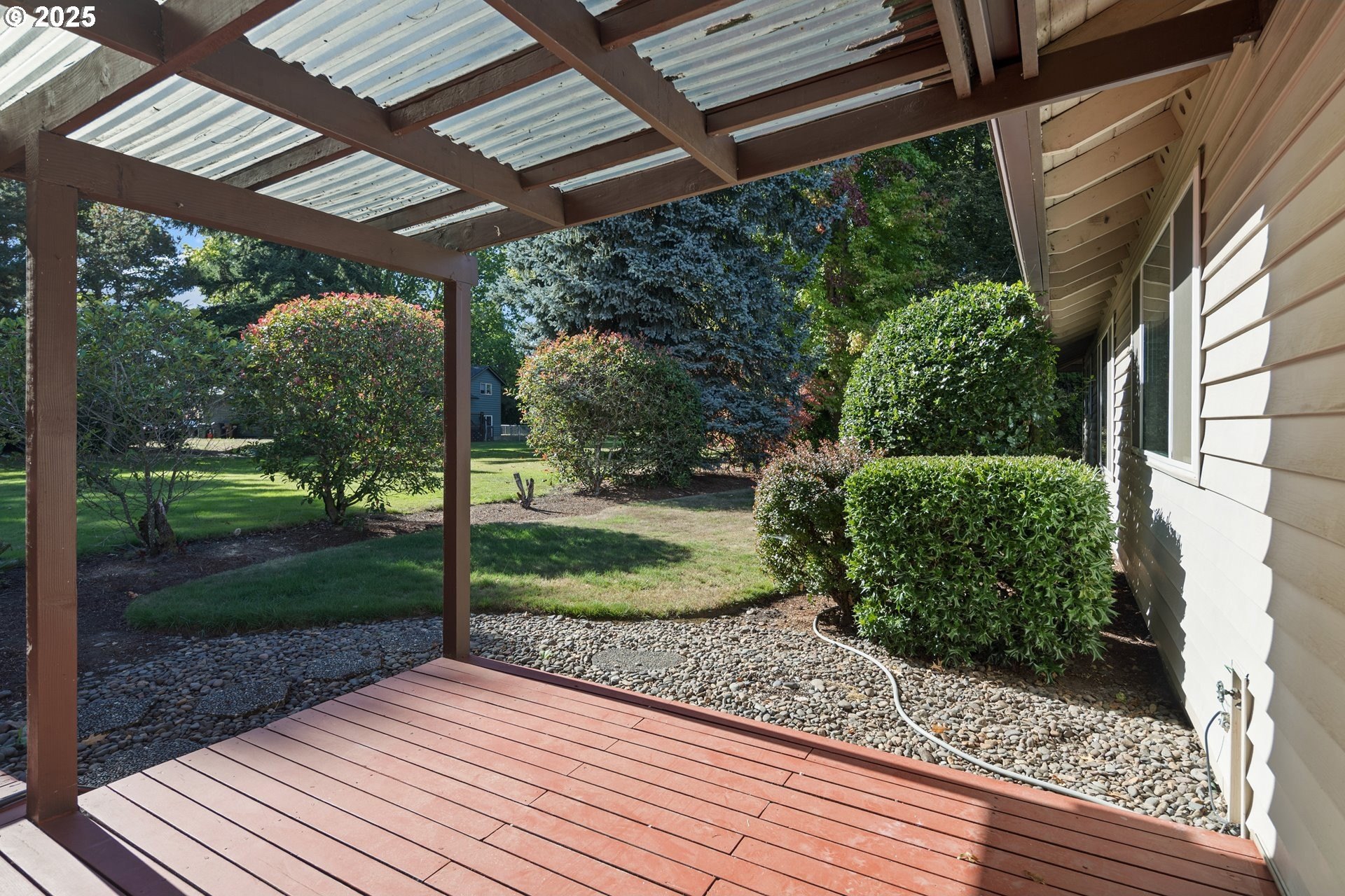 Rare single-level 4-bedroom home! Step inside to find fresh new carpet and luxury vinyl plank flooring throughout. The open-concept living and dining rooms boast soaring vaulted ceilings, creating an airy, light-filled space perfect for entertaining. The spacious primary suite offers a private ensuite bath, while the 4th bedroom is thoughtfully situated on the opposite side of the home—ideal for guests, multi-generational living, or a private office. A cozy family/media room flows seamlessly to the backyard, where a covered deck overlooks a tranquil greenspace for year-round enjoyment. Nestled in a desirable community with walking trails, a pool, and a clubhouse, this home offers the perfect blend of comfort, privacy, and neighborhood amenities.