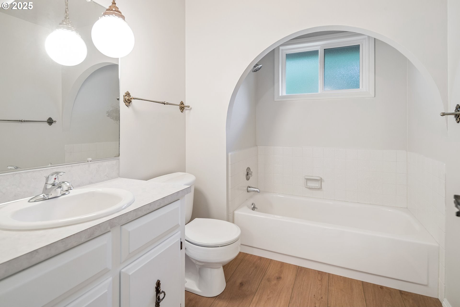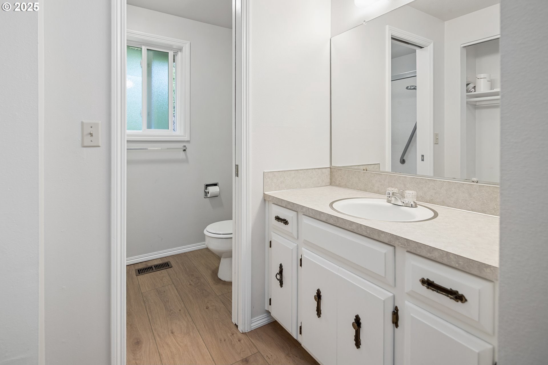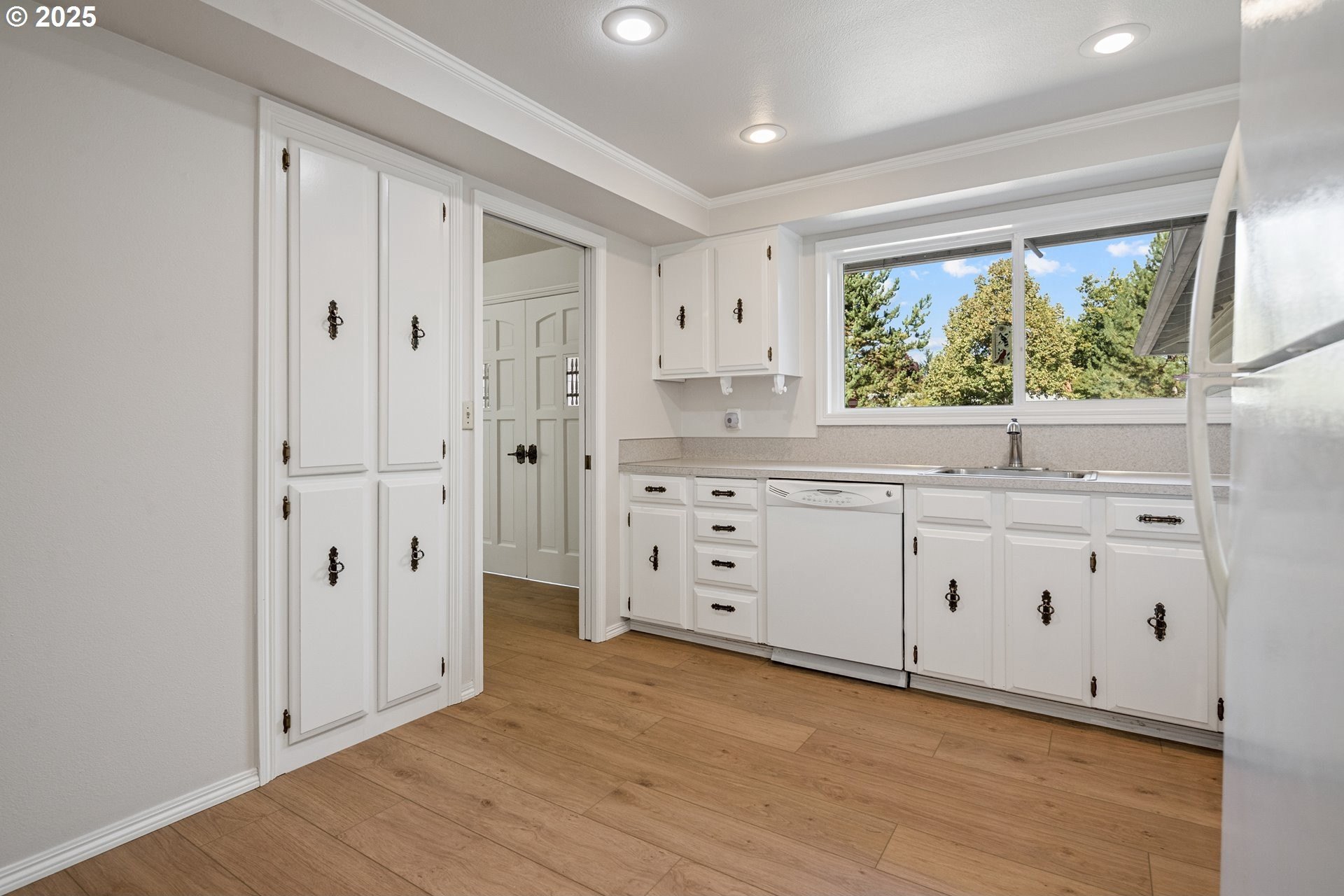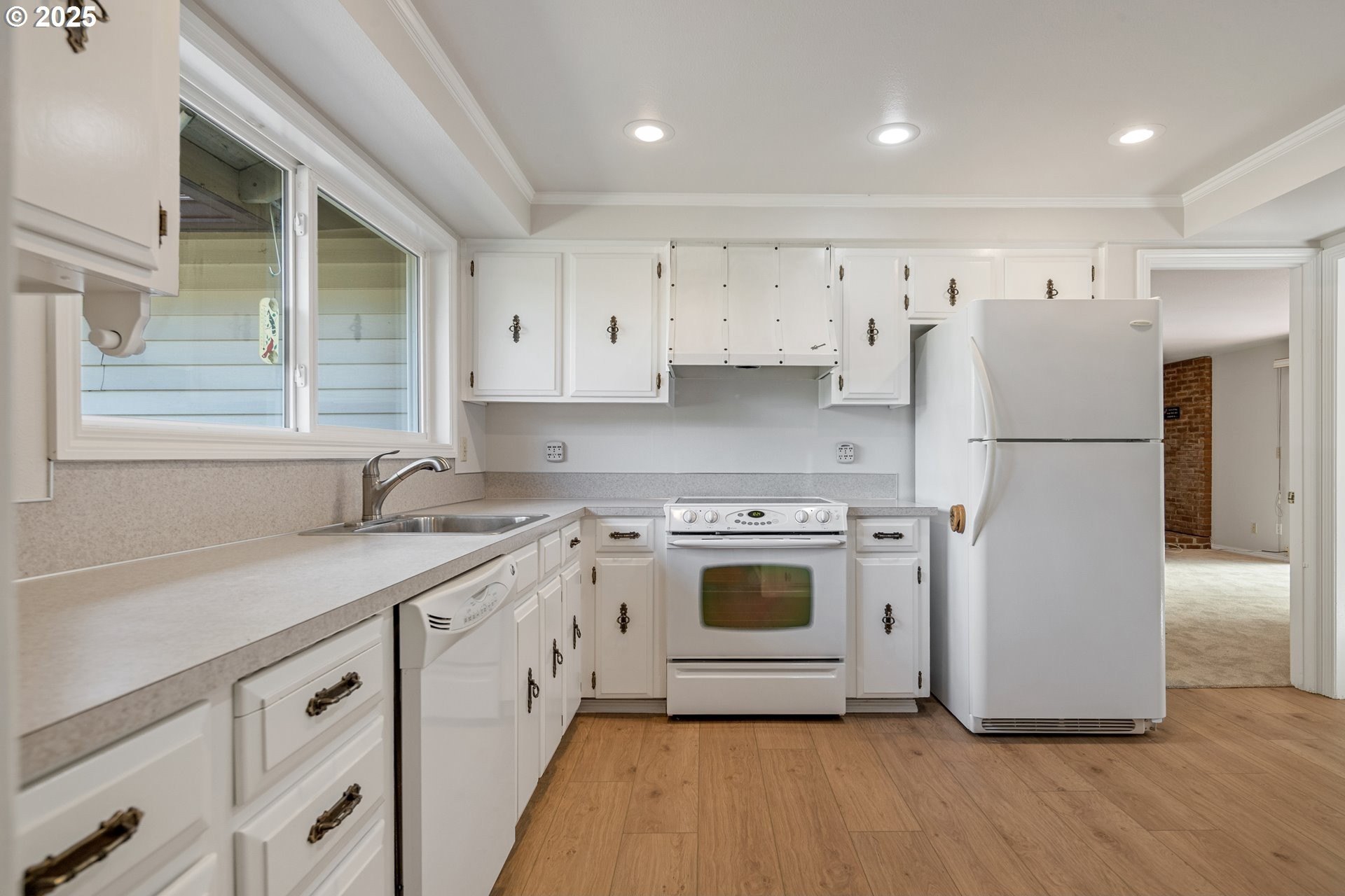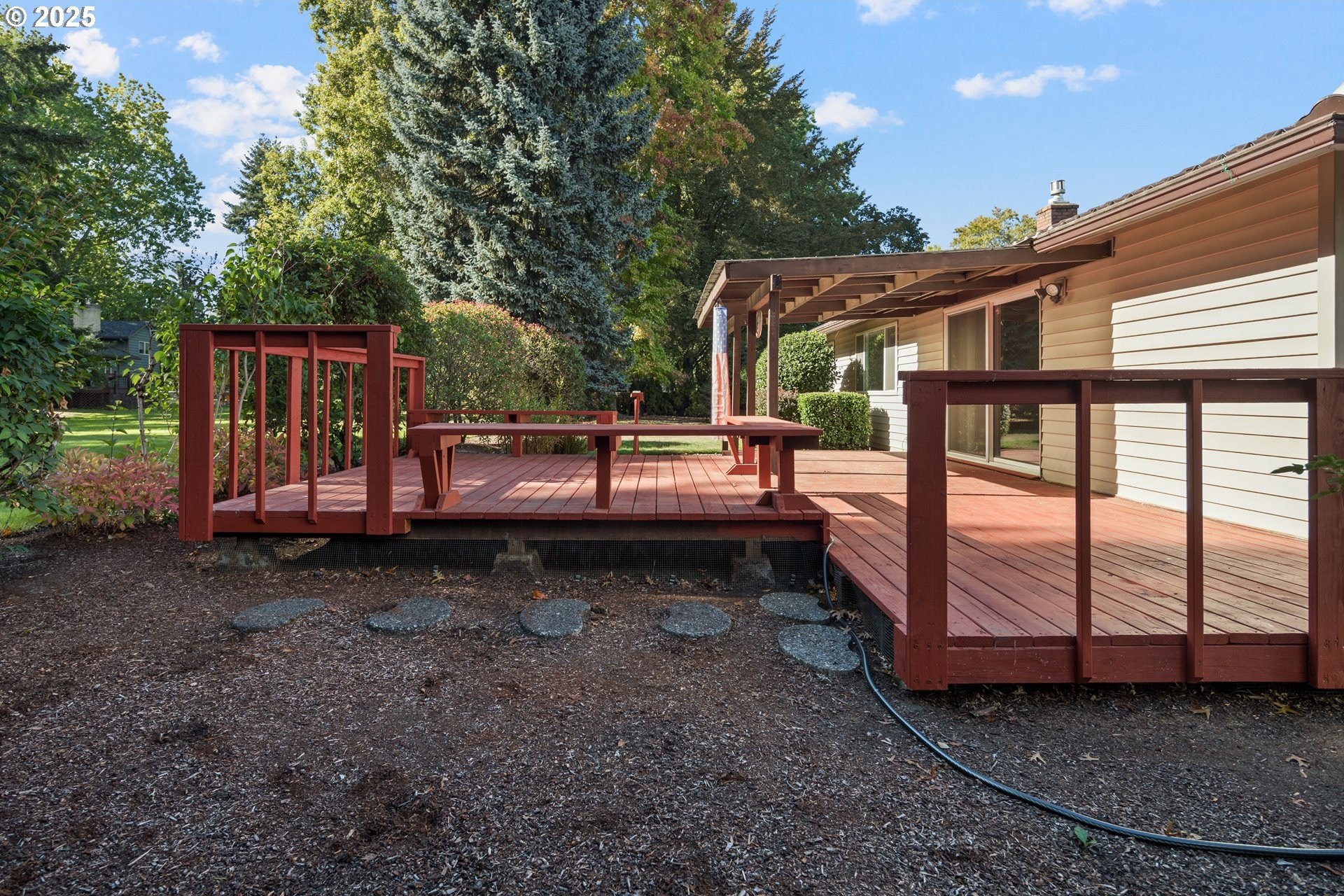 Rare single-level 4-bedroom home! Step inside to find fresh new carpet and luxury vinyl plank flooring throughout. The open-concept living and dining rooms boast soaring vaulted ceilings, creating an airy, light-filled space perfect for entertaining. The spacious primary suite offers a private ensuite bath, while the 4th bedroom is thoughtfully situated on the opposite side of the home—ideal for guests, multi-generational living, or a private office. A cozy family/media room flows seamlessly to the backyard, where a covered deck overlooks a tranquil greenspace for year-round enjoyment. Nestled in a desirable community with walking trails, a pool, and a clubhouse, this home offers the perfect blend of comfort, privacy, and neighborhood amenities.