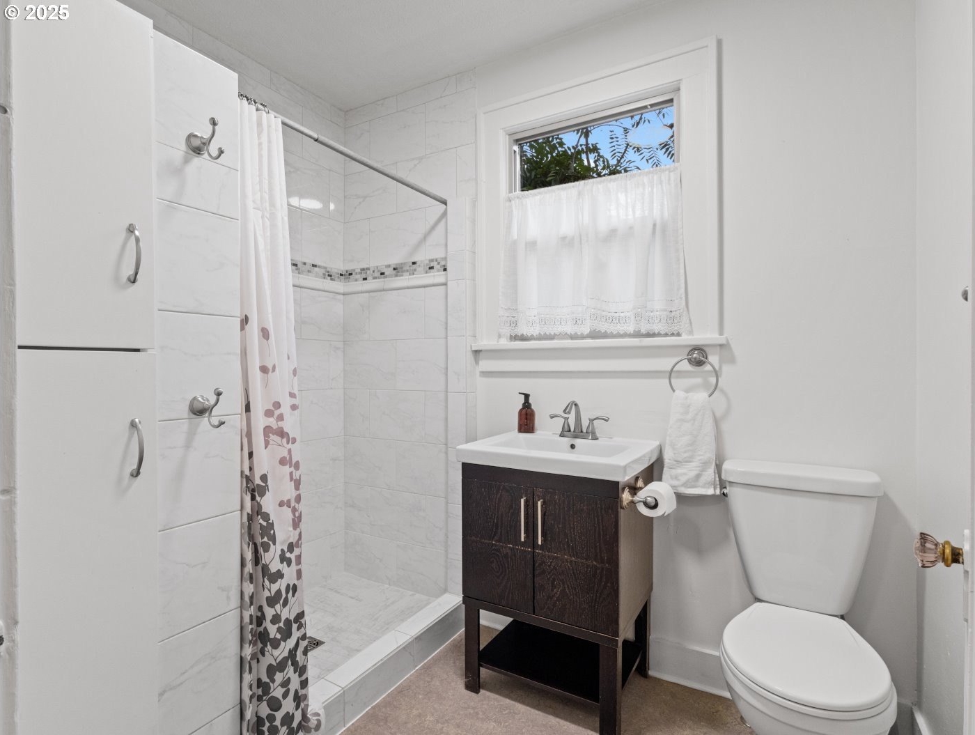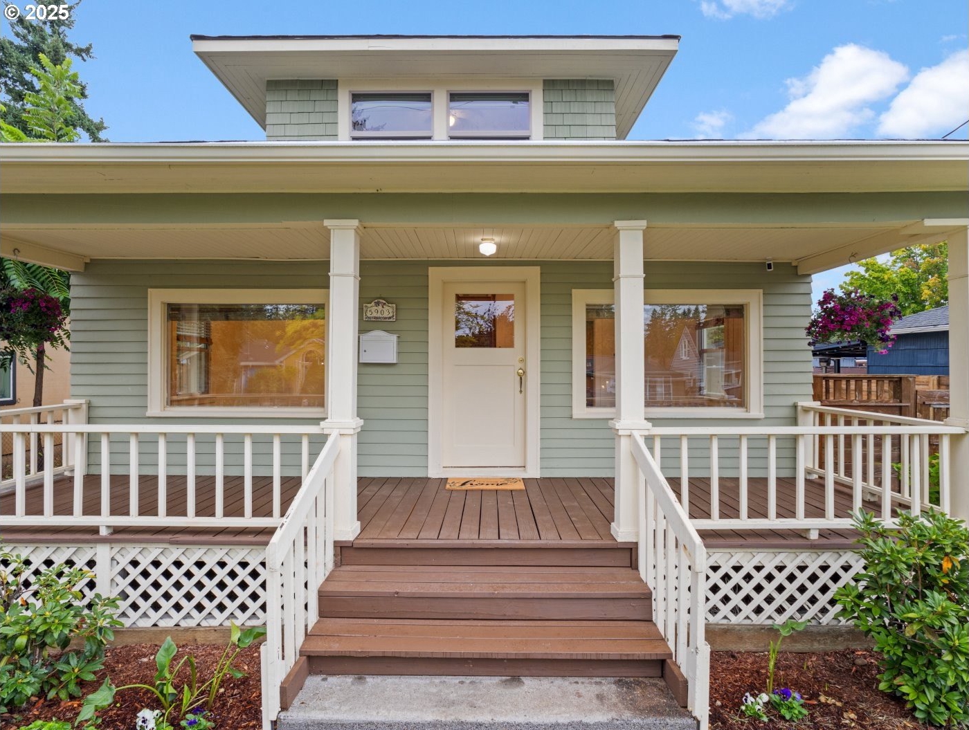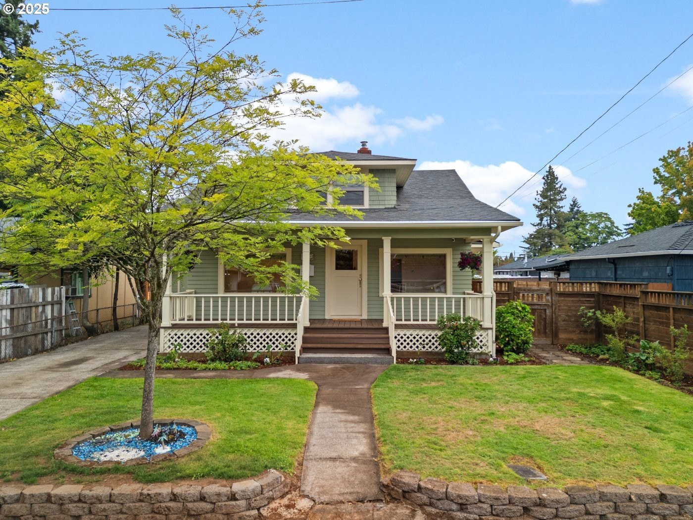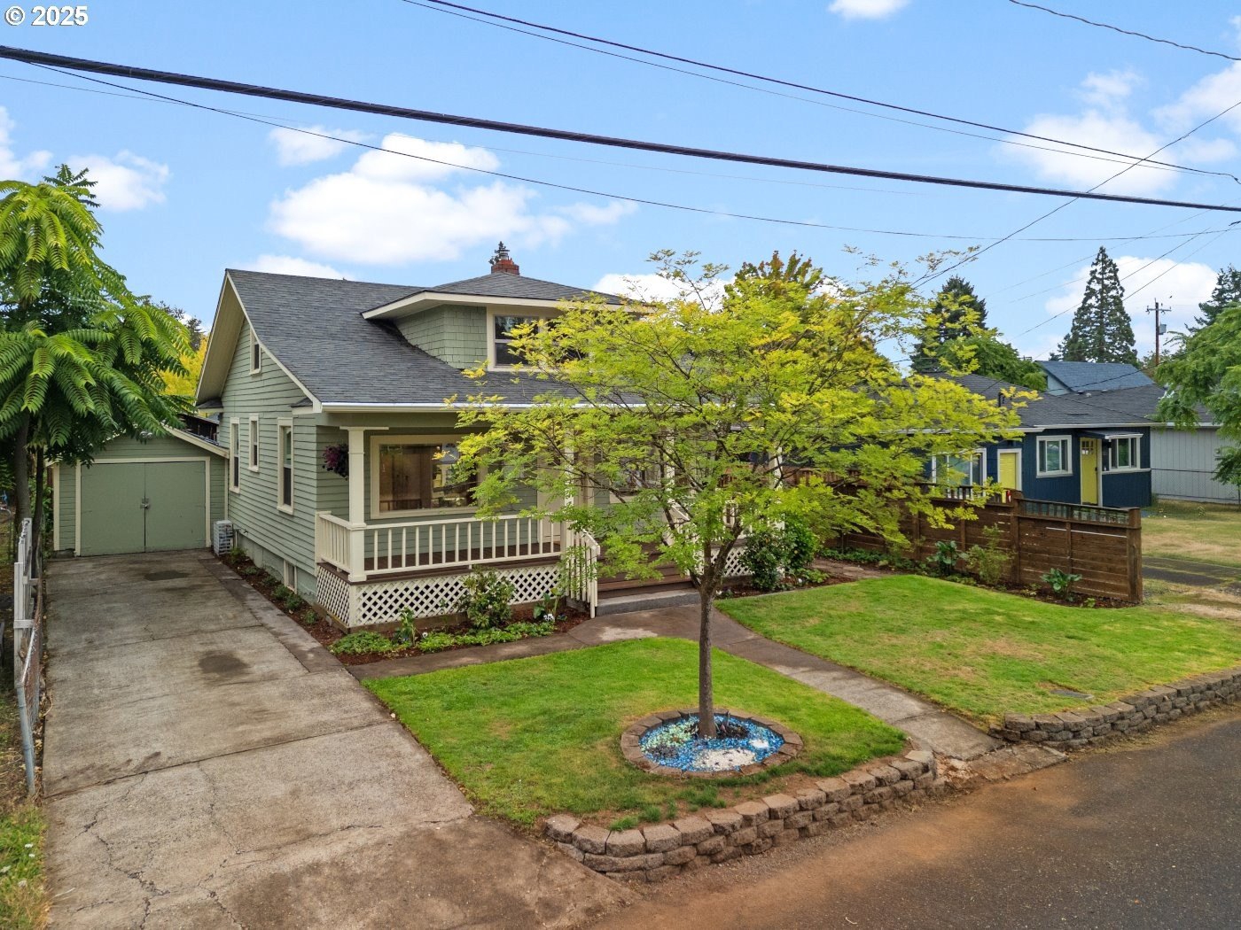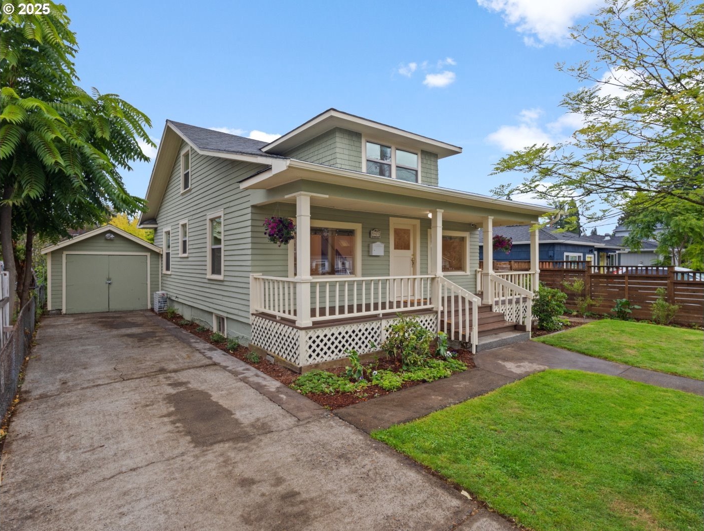 Welcome to this beautifully maintained 1925 Craftsman in the heart of SE Portland. With 4 bedrooms, 2 full baths, and over 2,000 sq. ft. of space, this home pairs timeless character with thoughtful updates for modern living. A classic covered front porch sets the stage for morning coffee or evening relaxation. Inside, the spacious living room features hardwood floors, fresh paint, and large front windows that flood the home with natural light. The main level includes an updated kitchen with natural wood cabinetry, quartz countertops, stainless steel appliances, and new flooring, with plenty of storage and space for a cozy breakfast nook. A primary bedroom and full bath on this level add comfort and flexibility. The upper level is neatly divided between three bedrooms and a second full bathroom. The lower level is partially finished and provides an abundance of flex space and storage options. Step outside to enjoy the covered back patio and fully fenced yard, complete with flower beds and a vegetable garden. The detached garage with electricity offers excellent storage or workshop potential, and a dedicated electrical hookup is ready for your future hot tub. And there’s no shortage of parking with the extra deep driveway. Notable upgrades include double-pane windows, PEX water piping, a 200-amp panel, earthquake bolting, and a radon mitigation unit. For year-round comfort, the home is equipped with a high-efficiency natural gas furnace and central A/C. This move-in ready Craftsman is the perfect blend of historic charm and modern convenience—don’t miss the chance to make it yours.