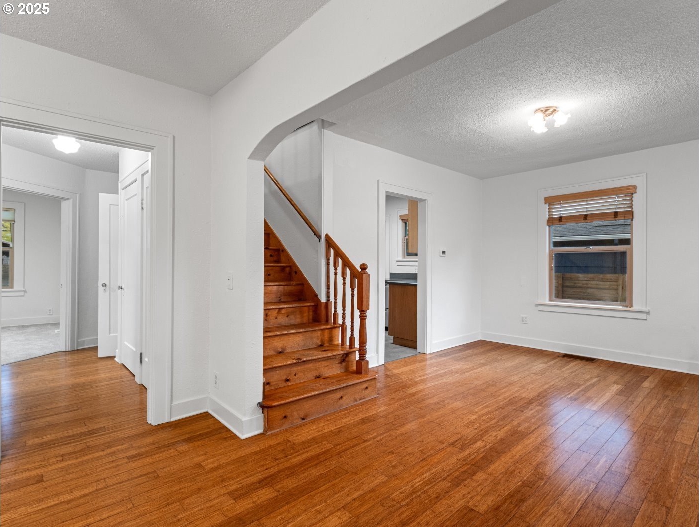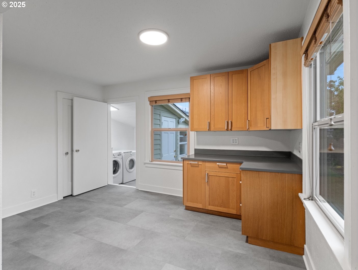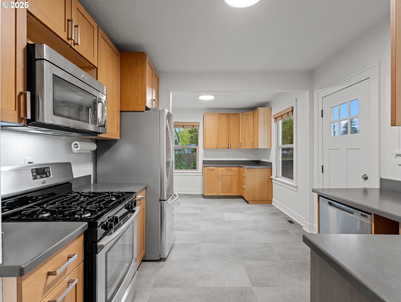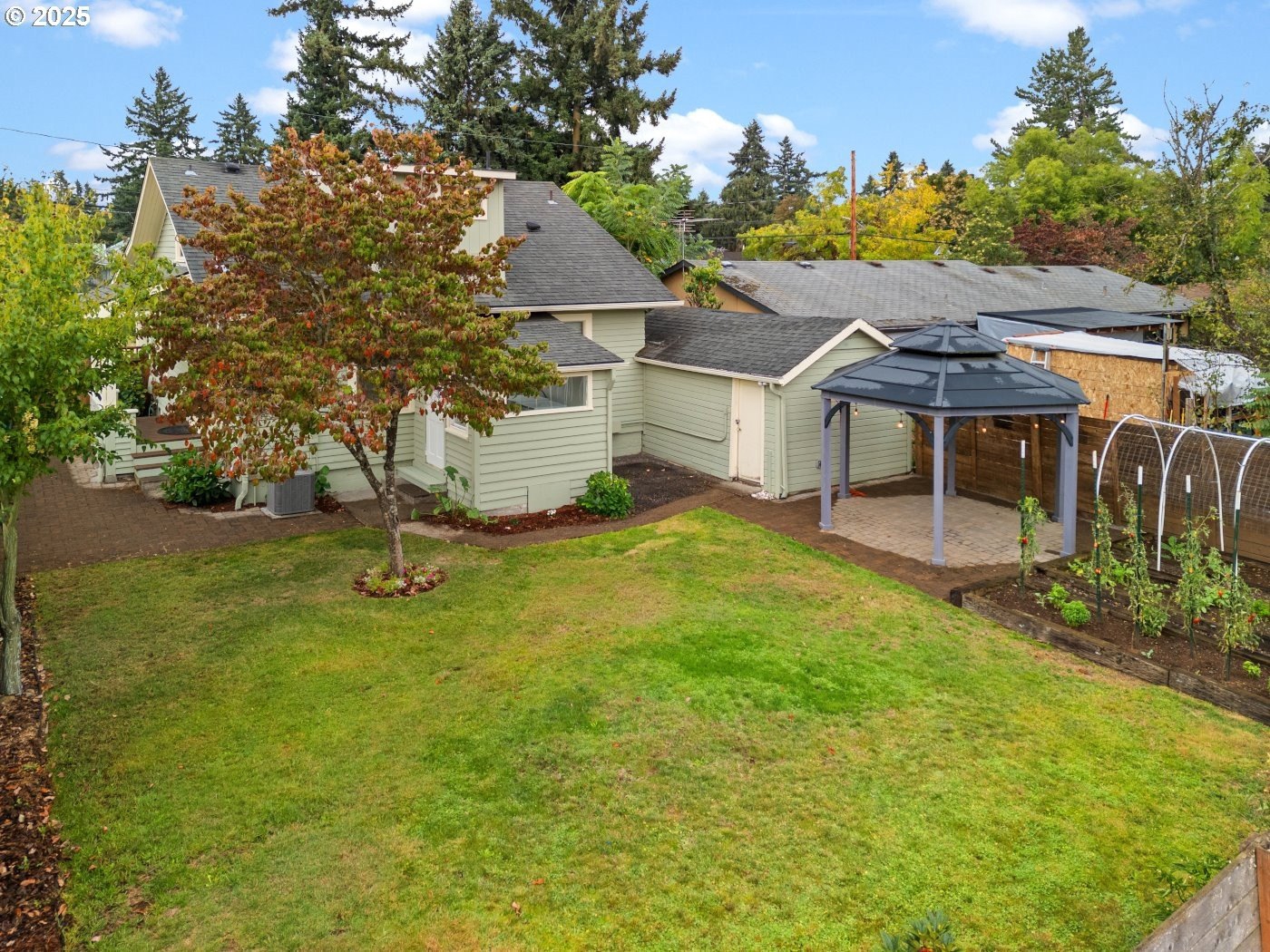 Welcome to this beautifully maintained 1925 Craftsman in the heart of SE Portland. With 4 bedrooms, 2 full baths, and over 2,000 sq. ft. of space, this home pairs timeless character with thoughtful updates for modern living. A classic covered front porch sets the stage for morning coffee or evening relaxation. Inside, the spacious living room features hardwood floors, fresh paint, and large front windows that flood the home with natural light. The main level includes an updated kitchen with natural wood cabinetry, quartz countertops, stainless steel appliances, and new flooring, with plenty of storage and space for a cozy breakfast nook. A primary bedroom and full bath on this level add comfort and flexibility. The upper level is neatly divided between three bedrooms and a second full bathroom. The lower level is partially finished and provides an abundance of flex space and storage options. Step outside to enjoy the covered back patio and fully fenced yard, complete with flower beds and a vegetable garden. The detached garage with electricity offers excellent storage or workshop potential, and a dedicated electrical hookup is ready for your future hot tub. And there’s no shortage of parking with the extra deep driveway. Notable upgrades include double-pane windows, PEX water piping, a 200-amp panel, earthquake bolting, and a radon mitigation unit. For year-round comfort, the home is equipped with a high-efficiency natural gas furnace and central A/C. This move-in ready Craftsman is the perfect blend of historic charm and modern convenience—don’t miss the chance to make it yours.