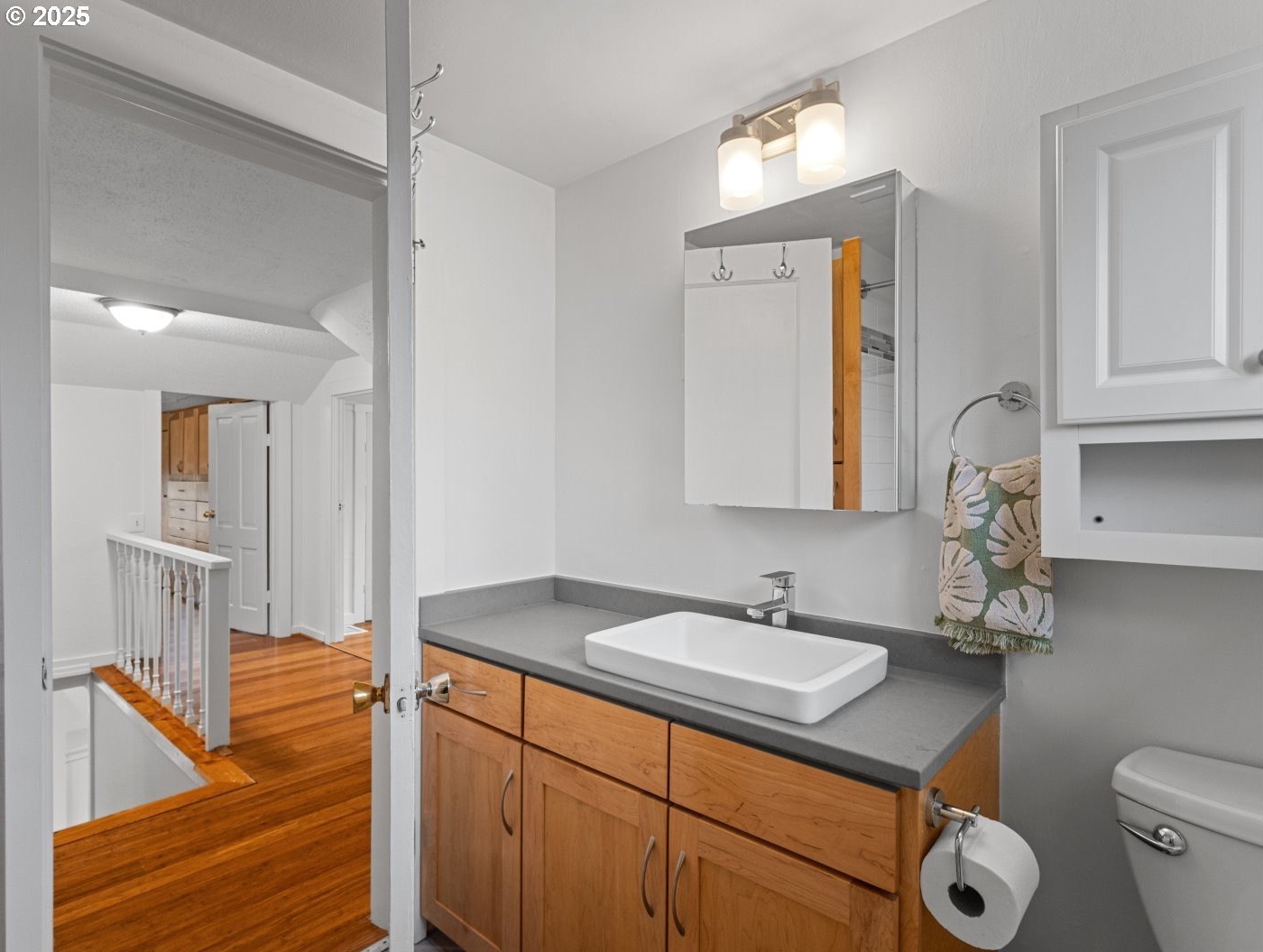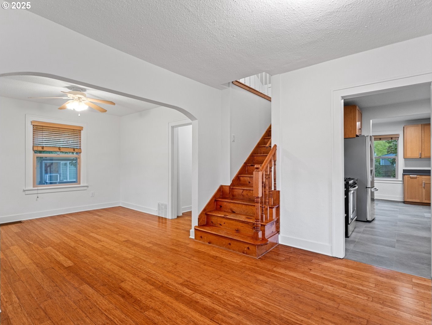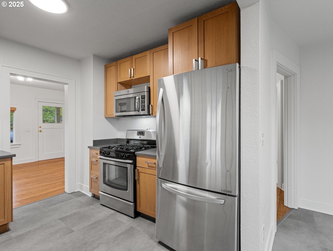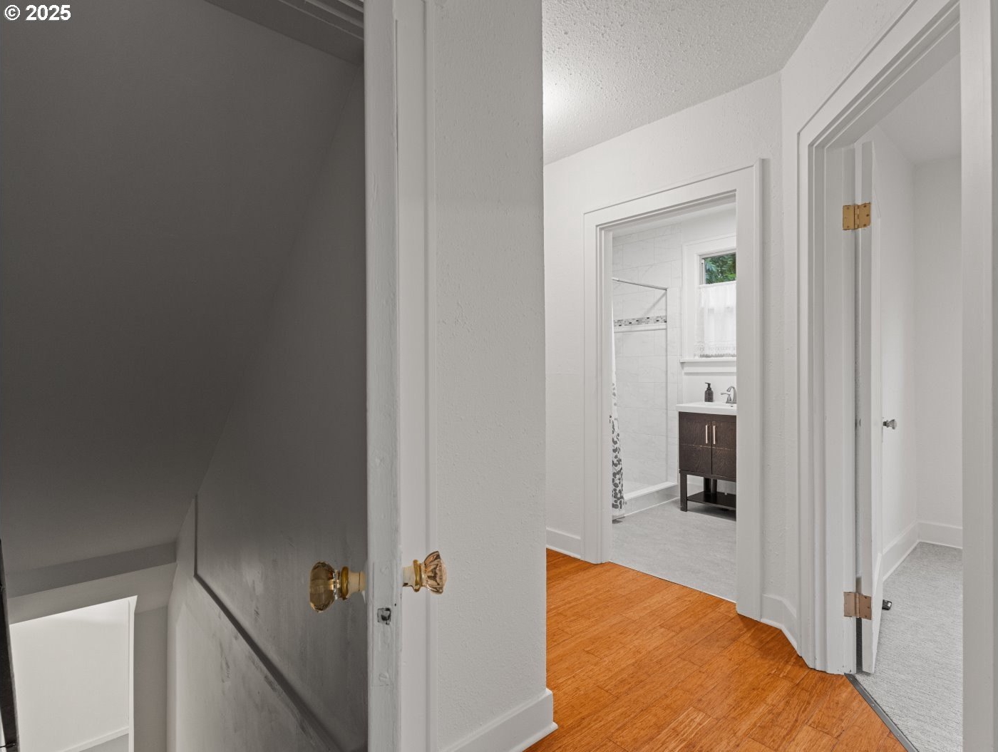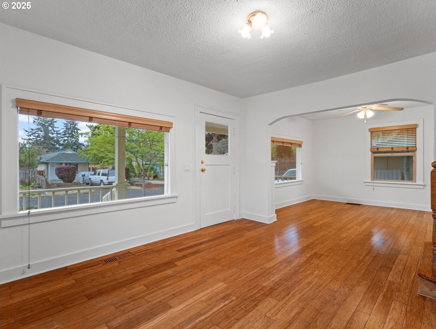 Welcome to this beautifully maintained 1925 Craftsman in the heart of SE Portland. With 4 bedrooms, 2 full baths, and over 2,000 sq. ft. of space, this home pairs timeless character with thoughtful updates for modern living. A classic covered front porch sets the stage for morning coffee or evening relaxation. Inside, the spacious living room features hardwood floors, fresh paint, and large front windows that flood the home with natural light. The main level includes an updated kitchen with natural wood cabinetry, quartz countertops, stainless steel appliances, and new flooring, with plenty of storage and space for a cozy breakfast nook. A primary bedroom and full bath on this level add comfort and flexibility. The upper level is neatly divided between three bedrooms and a second full bathroom. The lower level is partially finished and provides an abundance of flex space and storage options. Step outside to enjoy the covered back patio and fully fenced yard, complete with flower beds and a vegetable garden. The detached garage with electricity offers excellent storage or workshop potential, and a dedicated electrical hookup is ready for your future hot tub. And there’s no shortage of parking with the extra deep driveway. Notable upgrades include double-pane windows, PEX water piping, a 200-amp panel, earthquake bolting, and a radon mitigation unit. For year-round comfort, the home is equipped with a high-efficiency natural gas furnace and central A/C. This move-in ready Craftsman is the perfect blend of historic charm and modern convenience—don’t miss the chance to make it yours.