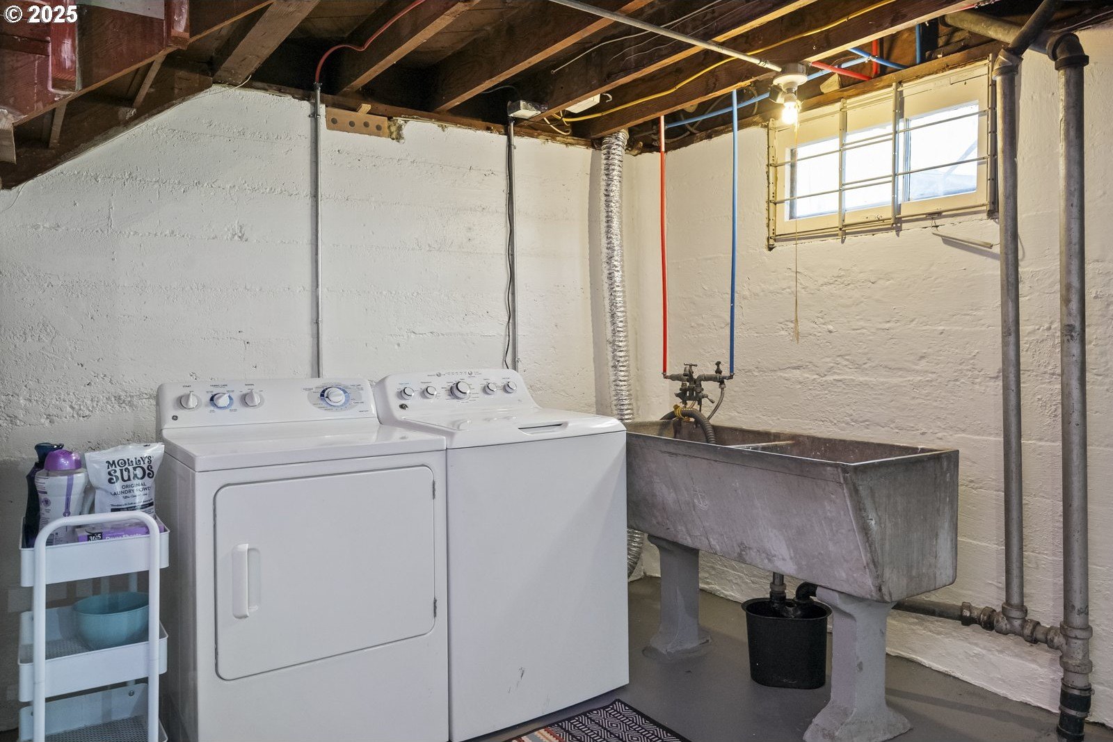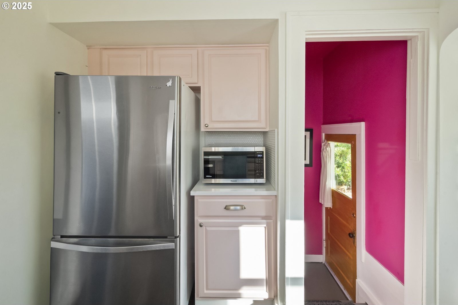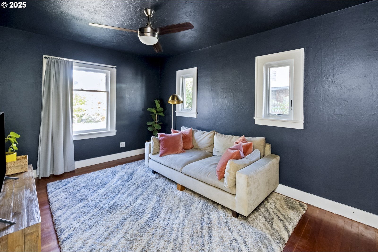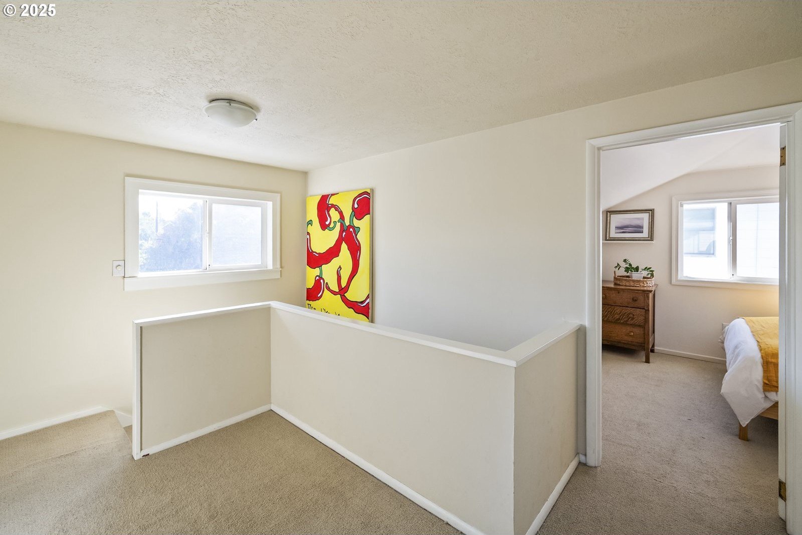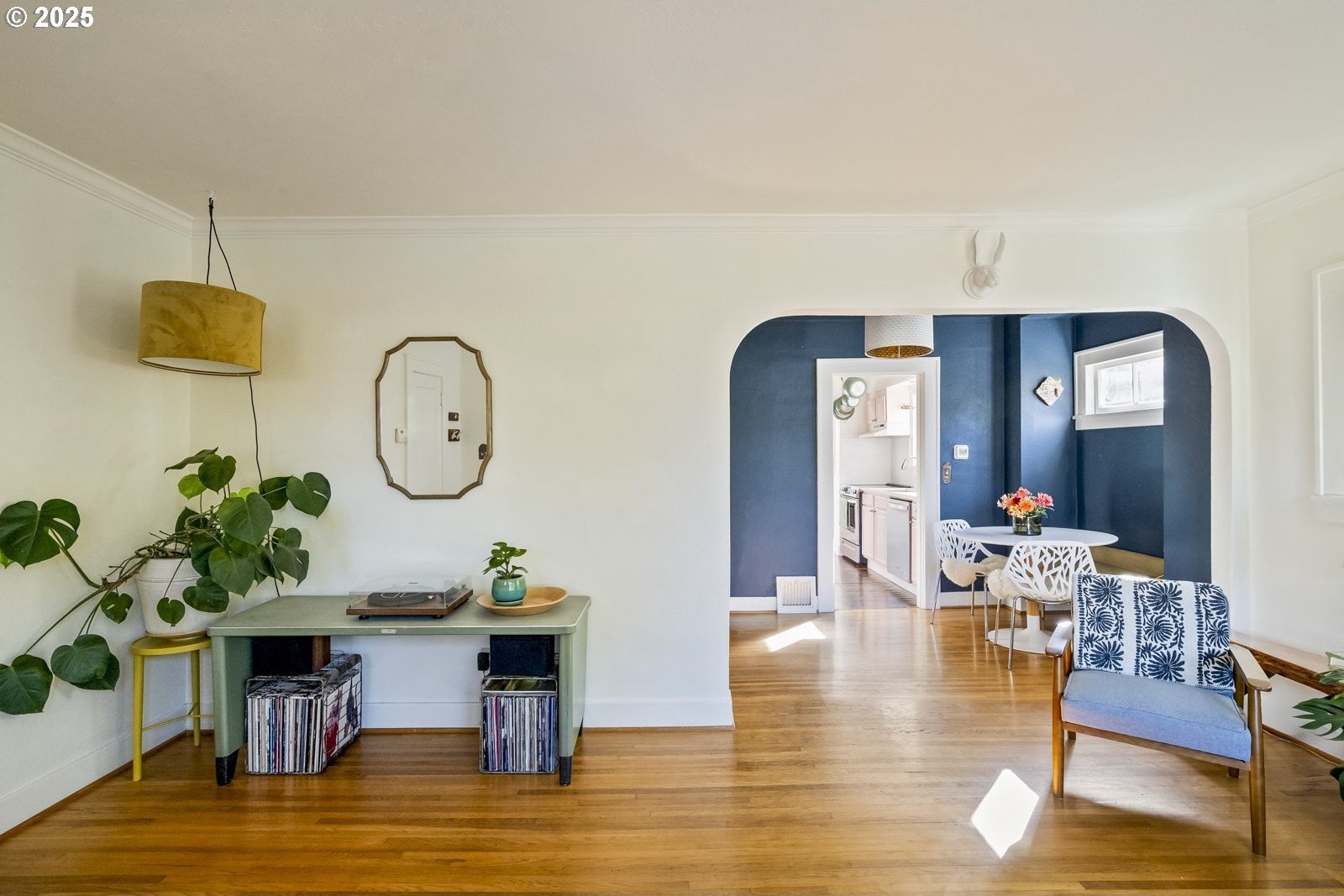 Discover this exceptional 1927 stucco home, exuding charm and elegance with its newly painted exterior in a timeless essential white, with just the right touch of creamy warmth. Upon the approach, prepare to be greeted by a landscaped front + the fenced backyard as a more private retreat. Embrace the essence of Portland living in this charming home, with beautiful oak hardwood floors that extend through the inviting living + dining room, complete with a cozy wood-burning fireplace. With coved details, quaint nooks, and a serene atmosphere, this home offers a unique sanctuary ready for its next fortunate owners. 2 bedrooms on the main and 2 on the upper level with an adjacent bonus space. Find a spot to tuck away and read, stretch + options for sleeping and a home office. On the main floor, in the private hall there is a large bathroom with double sink, expansive counter, plenty of storage and a shower/ tub combo. Find the joy of outdoor living in the fenced backyard, offering plenty of room for gardening + enjoying the beauty of each season as it unfolds. A unique copper cold plunge will remain with the home, providing a refreshing way to stay energized year-round. For added convenience, a covered outdoor dining and lounge area is situated near the back door, seamlessly connecting to the kitchen for entertaining.