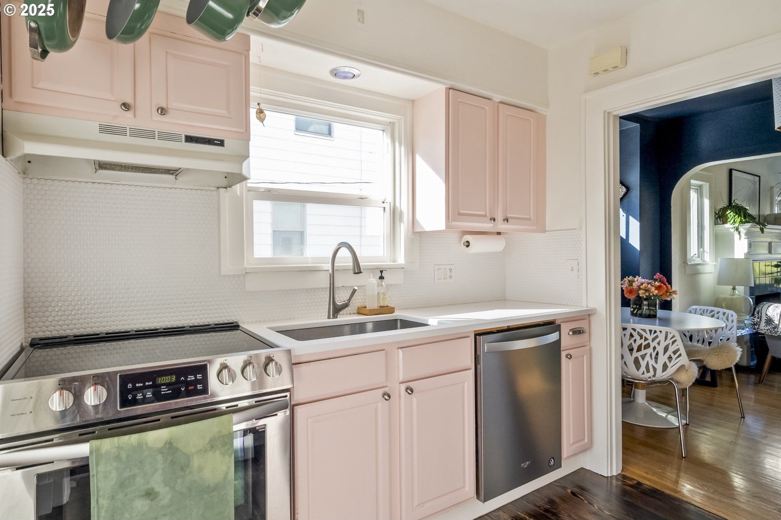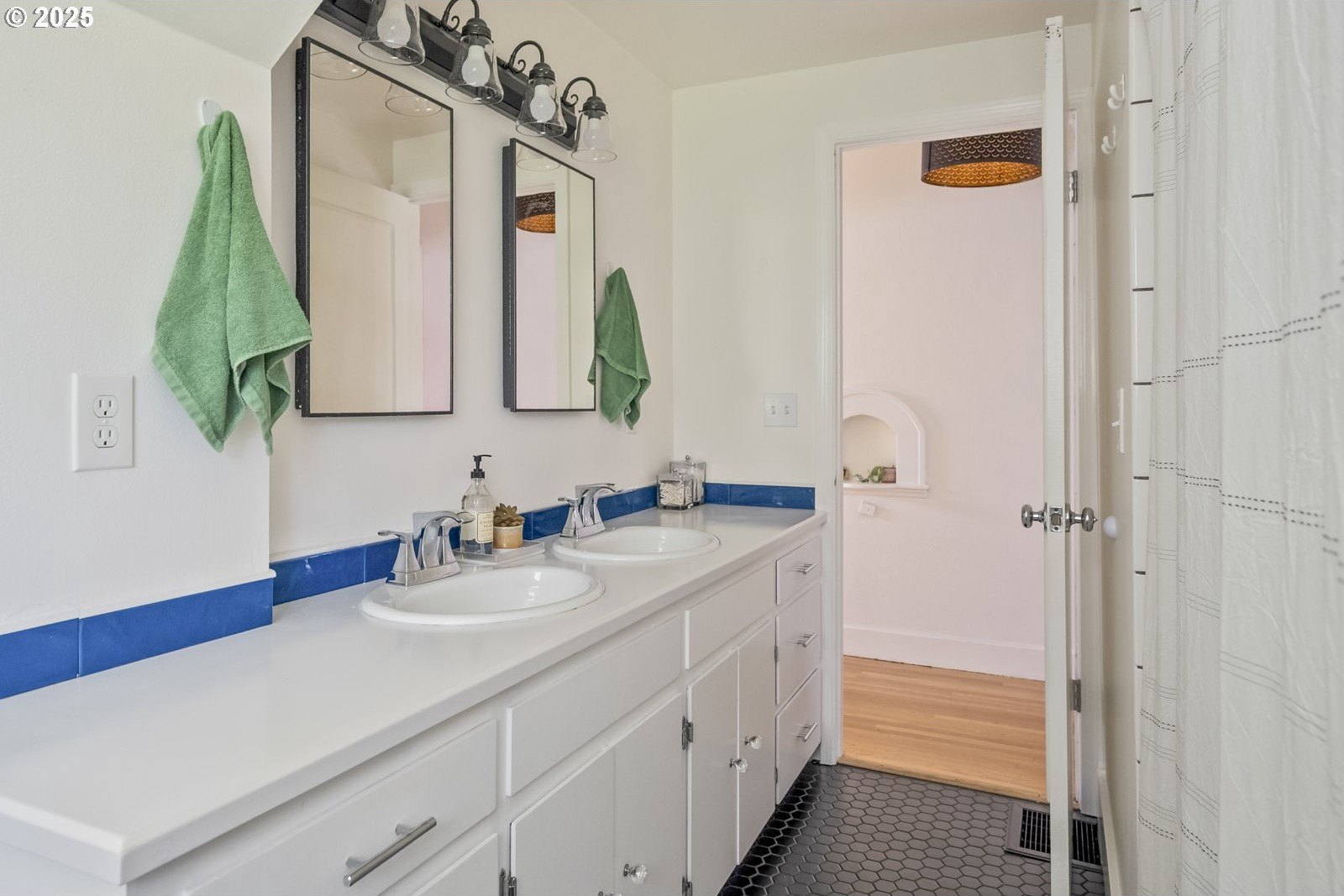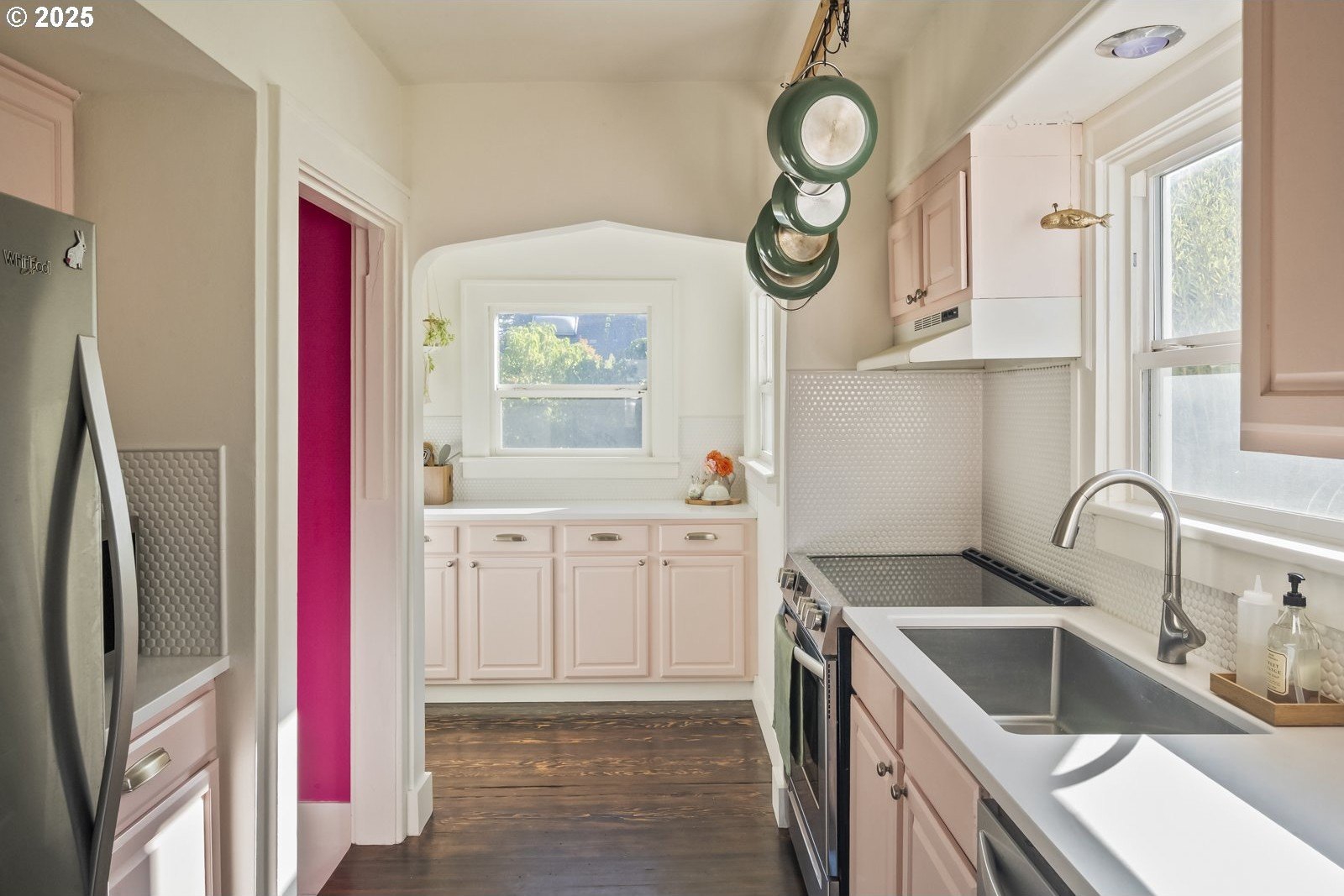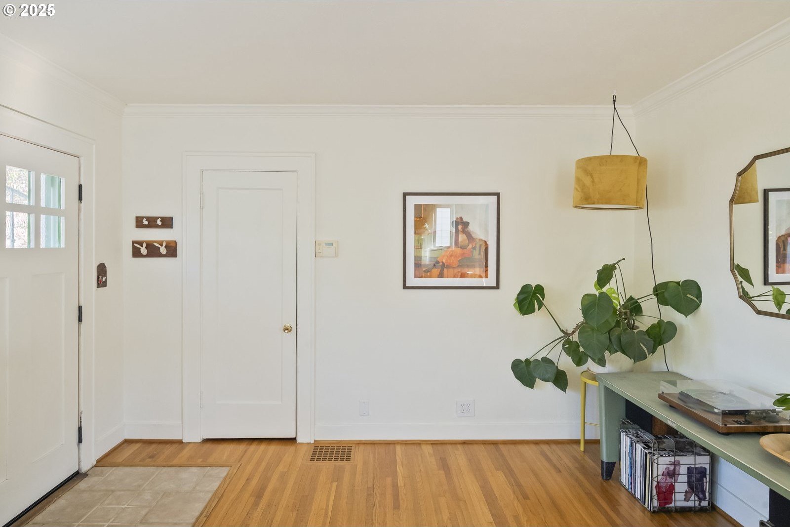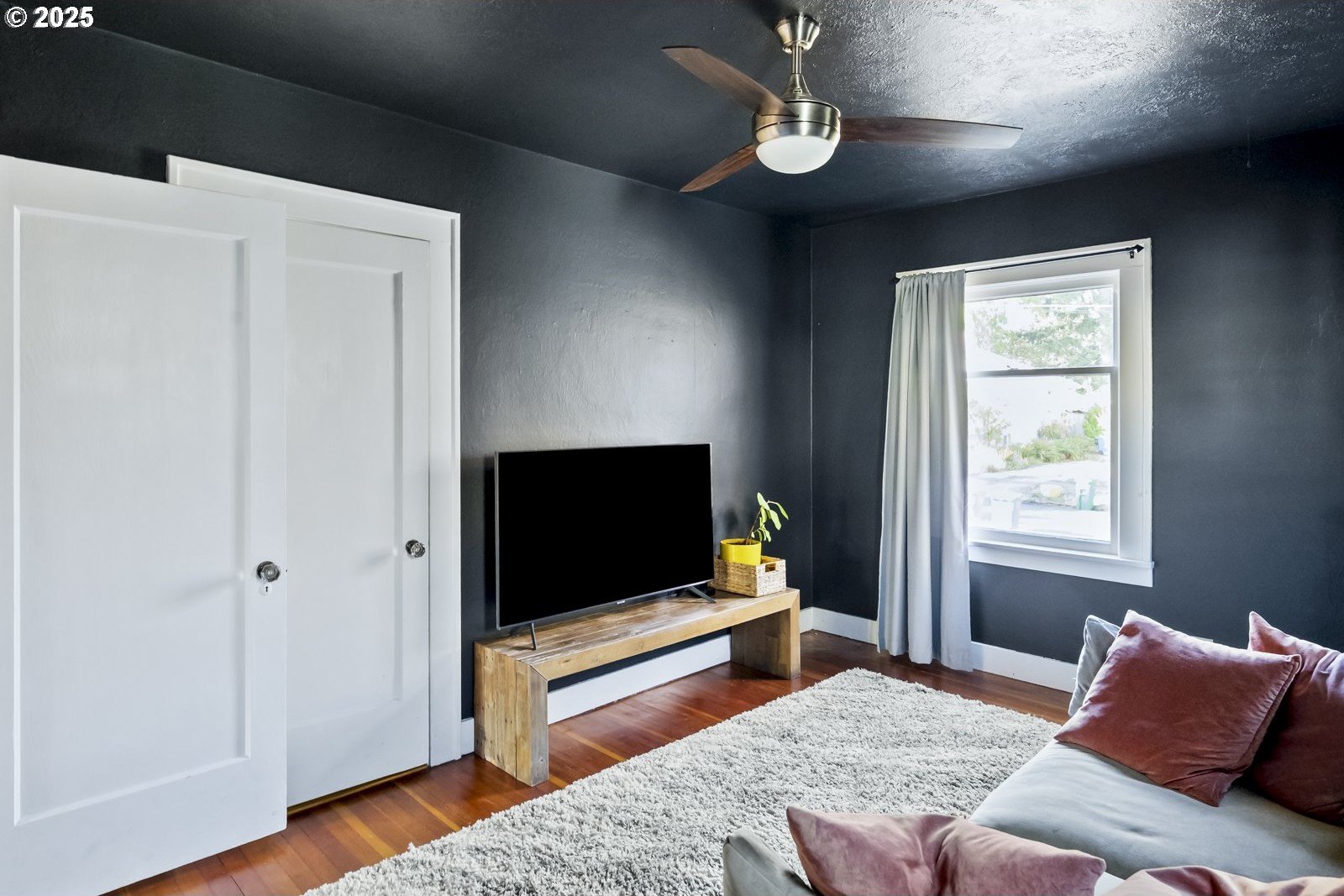 Discover this exceptional 1927 stucco home, exuding charm and elegance with its newly painted exterior in a timeless essential white, with just the right touch of creamy warmth. Upon the approach, prepare to be greeted by a landscaped front + the fenced backyard as a more private retreat. Embrace the essence of Portland living in this charming home, with beautiful oak hardwood floors that extend through the inviting living + dining room, complete with a cozy wood-burning fireplace. With coved details, quaint nooks, and a serene atmosphere, this home offers a unique sanctuary ready for its next fortunate owners. 2 bedrooms on the main and 2 on the upper level with an adjacent bonus space. Find a spot to tuck away and read, stretch + options for sleeping and a home office. On the main floor, in the private hall there is a large bathroom with double sink, expansive counter, plenty of storage and a shower/ tub combo. Find the joy of outdoor living in the fenced backyard, offering plenty of room for gardening + enjoying the beauty of each season as it unfolds. A unique copper cold plunge will remain with the home, providing a refreshing way to stay energized year-round. For added convenience, a covered outdoor dining and lounge area is situated near the back door, seamlessly connecting to the kitchen for entertaining.