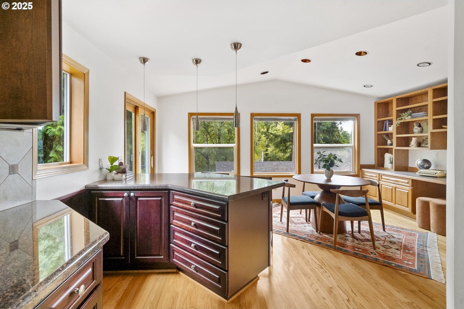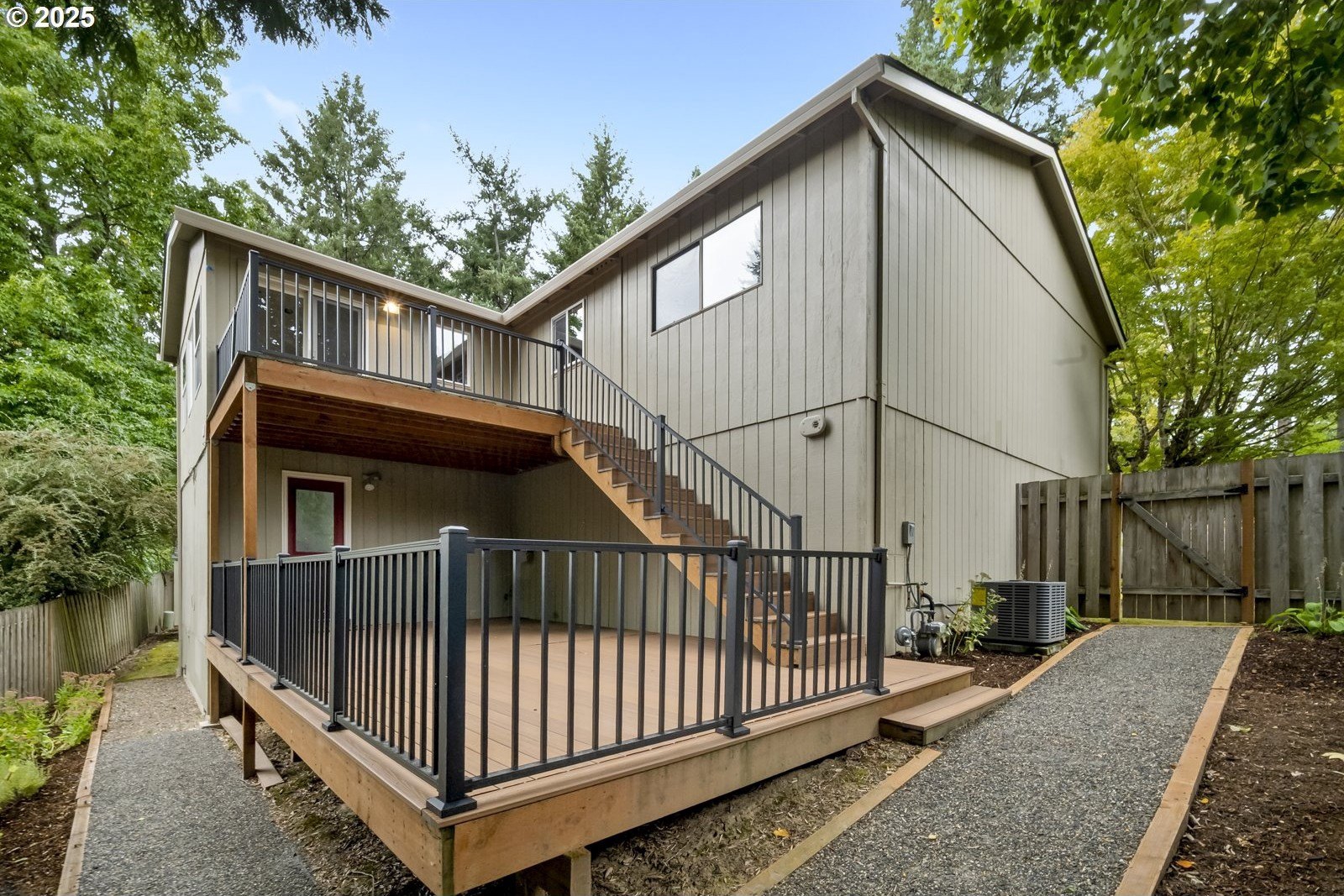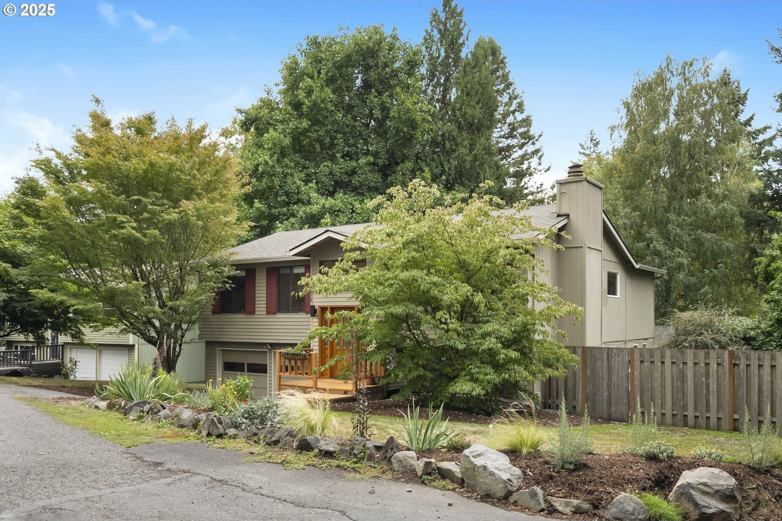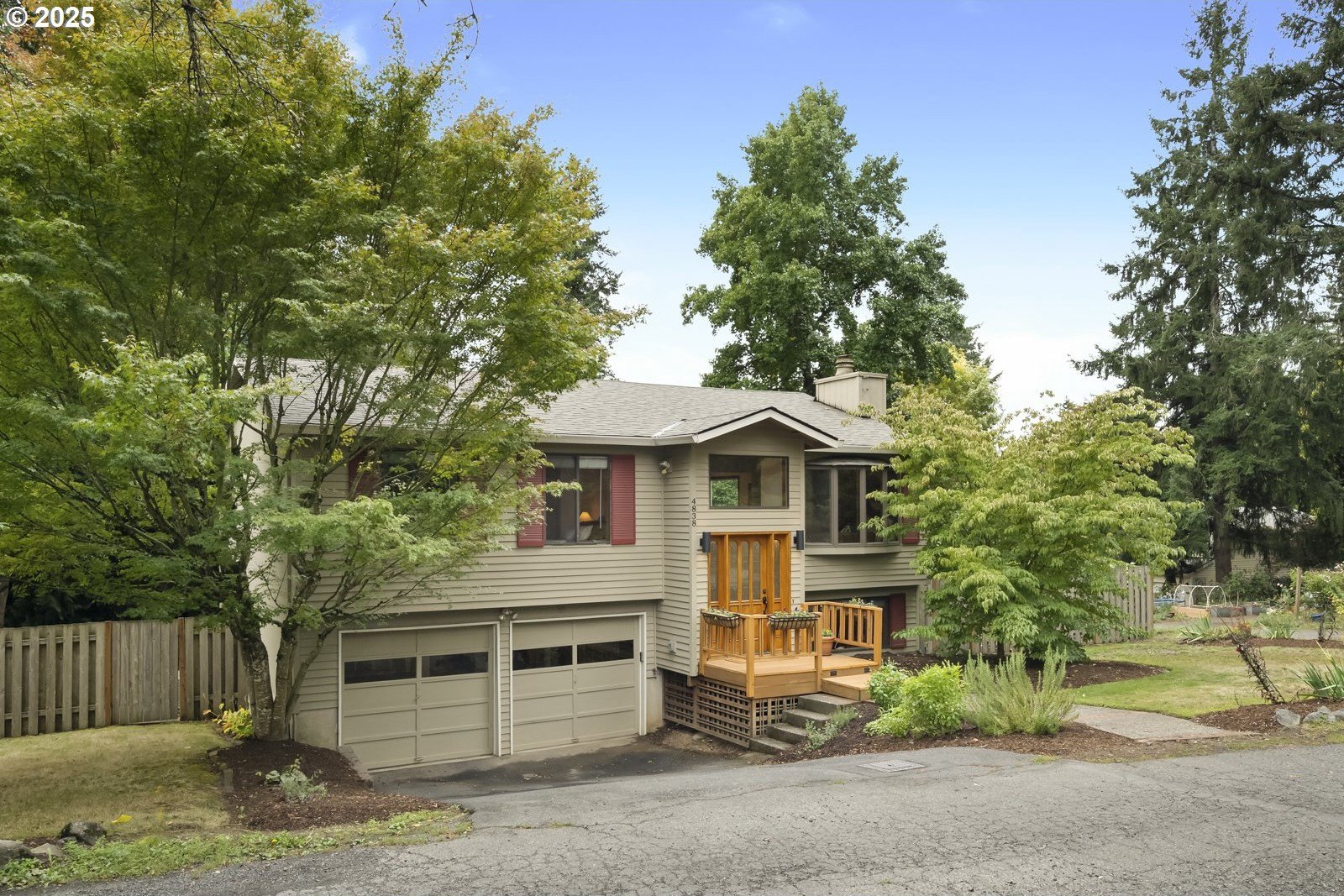 Tucked away on a quiet cul-de-sac, just minutes to Bridlemile Elementary & Hamilton Park, this charming abode is on the market for the first time! With a versatile floorplan and updates galore, she awaits her next stewards. Lovingly maintained by the original owners, this is not your typical split! This home has seen multiple iterations and thoughtful updates over the years, each one enhancing daily livability and peace of mind. The generous entryway facilitates an easeful flow and creates an inviting ambiance. Conjoining living spaces interface beautifully while preserving defined areas, so you can do your own thing, together. Relax in the cozy-yet-expansive living room, with its wood-burning fireplace, vaulted ceilings, and bay window. The kitchen, remodeled in 2005, showcases an impressive and efficient amount of storage, with cherry cabinets, granite counters, vaulted ceiling with skylight, hardwood floors with custom tile inlays, and an eat bar. The eating nook with built-in shelving doubles as a workspace, while the adjacent dining room provides for a sit-down meal with loved ones. With three bedrooms and two full baths on the main level, plus an additional primary bedroom set-up and family room down (plus 2 exterior entries!), this flexible layout is perfect for multigenerational living or those seeking a dedicated home office, art studio, home gym, or entertainment room. Upper and lower Trex decks, raised garden beds, and a fully fenced yard offer various settings for enjoying the Pacific NW year-round. An extra-deep 2-car garage and clean storage shed offer ample overflow storage. Updates include: roof 2021, high efficiency furnace + AC 2018, front porch 2025, Trex back decks and back siding 2023, new driveway drainfield 2023, water heater 2022, new carpet in downstairs bedroom and on stairs, & new accent lighting in entryway and dining room. It’s a rare opportunity to inherit such a well-kept, single-owner gem. Come plant your roots. [Home Energy Score = 5. HES Report at https://rpt.greenbuildingregistry.com/hes/OR10241870]
