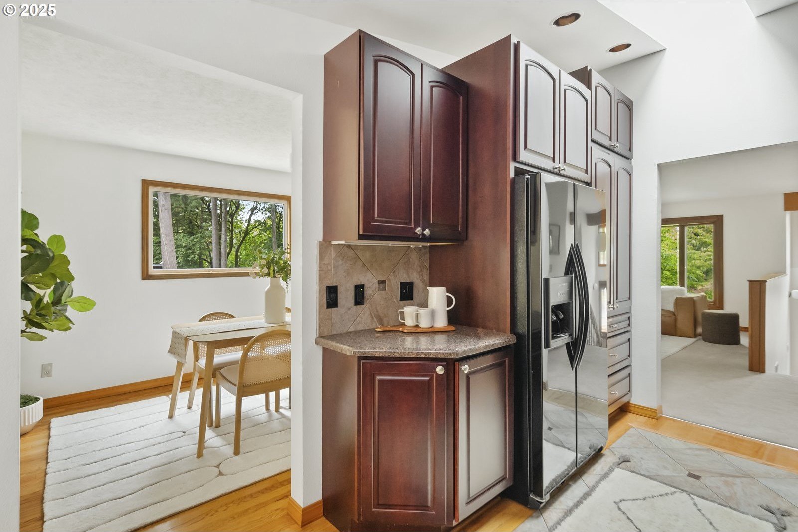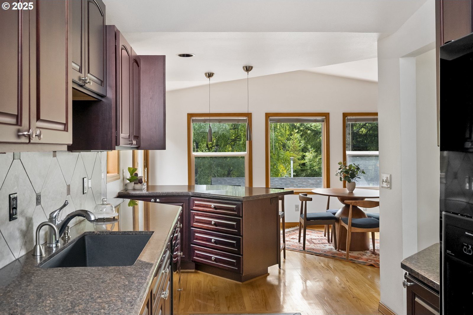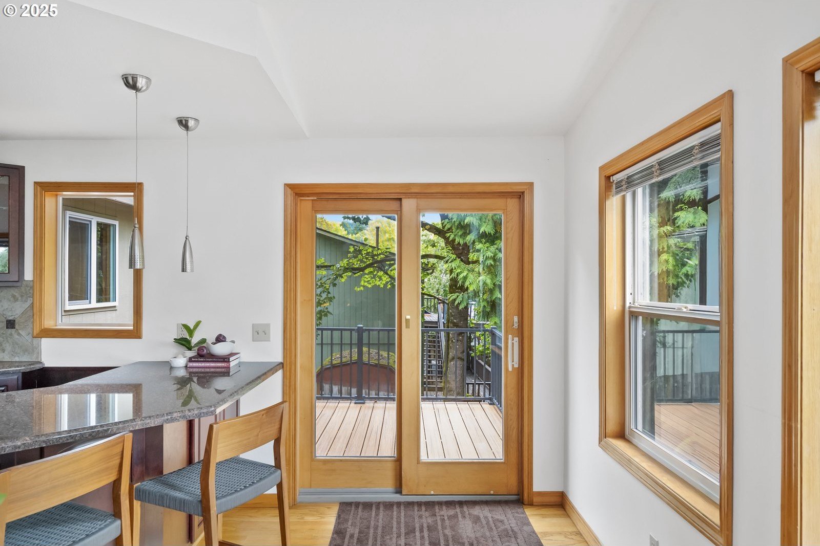Tucked away on a quiet cul-de-sac, just minutes to Bridlemile Elementary & Hamilton Park, this charming abode is on the market for the first time! With a versatile floorplan and updates galore, she awaits her next stewards. Lovingly maintained by the original owners, this is not your typical split! This home has seen multiple iterations and thoughtful updates over the years, each one enhancing daily livability and peace of mind. The generous entryway facilitates an easeful flow and creates an inviting ambiance. Conjoining living spaces interface beautifully while preserving defined areas, so you can do your own thing, together. Relax in the cozy-yet-expansive living room, with its wood-burning fireplace, vaulted ceilings, and bay window. The kitchen, remodeled in 2005, showcases an impressive and efficient amount of storage, with cherry cabinets, granite counters, vaulted ceiling with skylight, hardwood floors with custom tile inlays, and an eat bar. The eating nook with built-in shelving doubles as a workspace, while the adjacent dining room provides for a sit-down meal with loved ones. With three bedrooms and two full baths on the main level, plus an additional primary bedroom set-up and family room down (plus 2 exterior entries!), this flexible layout is perfect for multigenerational living or those seeking a dedicated home office, art studio, home gym, or entertainment room. Upper and lower Trex decks, raised garden beds, and a fully fenced yard offer various settings for enjoying the Pacific NW year-round. An extra-deep 2-car garage and clean storage shed offer ample overflow storage. Updates include: roof 2021, high efficiency furnace + AC 2018, front porch 2025, Trex back decks and back siding 2023, new driveway drainfield 2023, water heater 2022, new carpet in downstairs bedroom and on stairs, & new accent lighting in entryway and dining room. It’s a rare opportunity to inherit such a well-kept, single-owner gem. Come plant your roots. [Home Energy Score = 5. HES Report at https://rpt.greenbuildingregistry.com/hes/OR10241870]