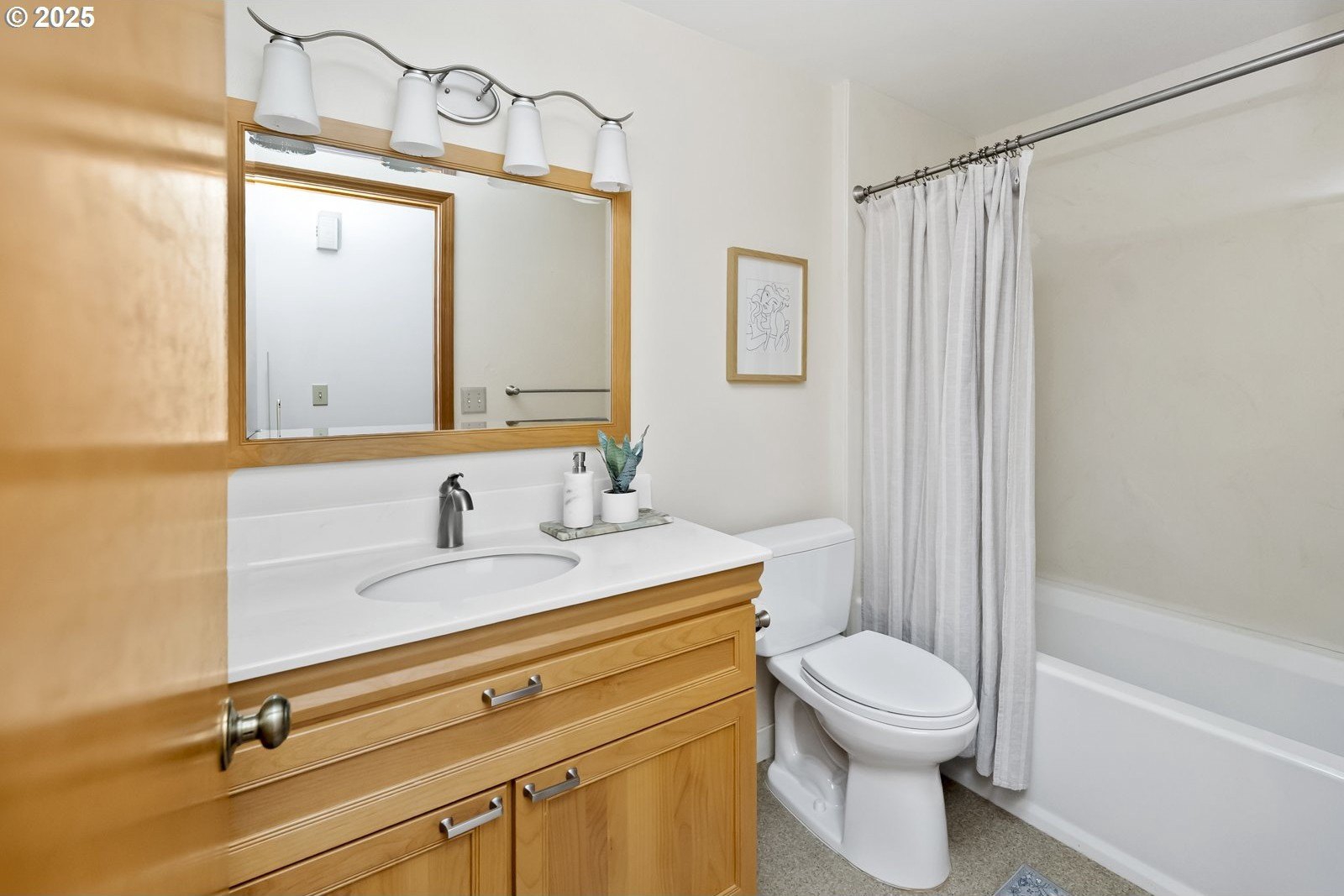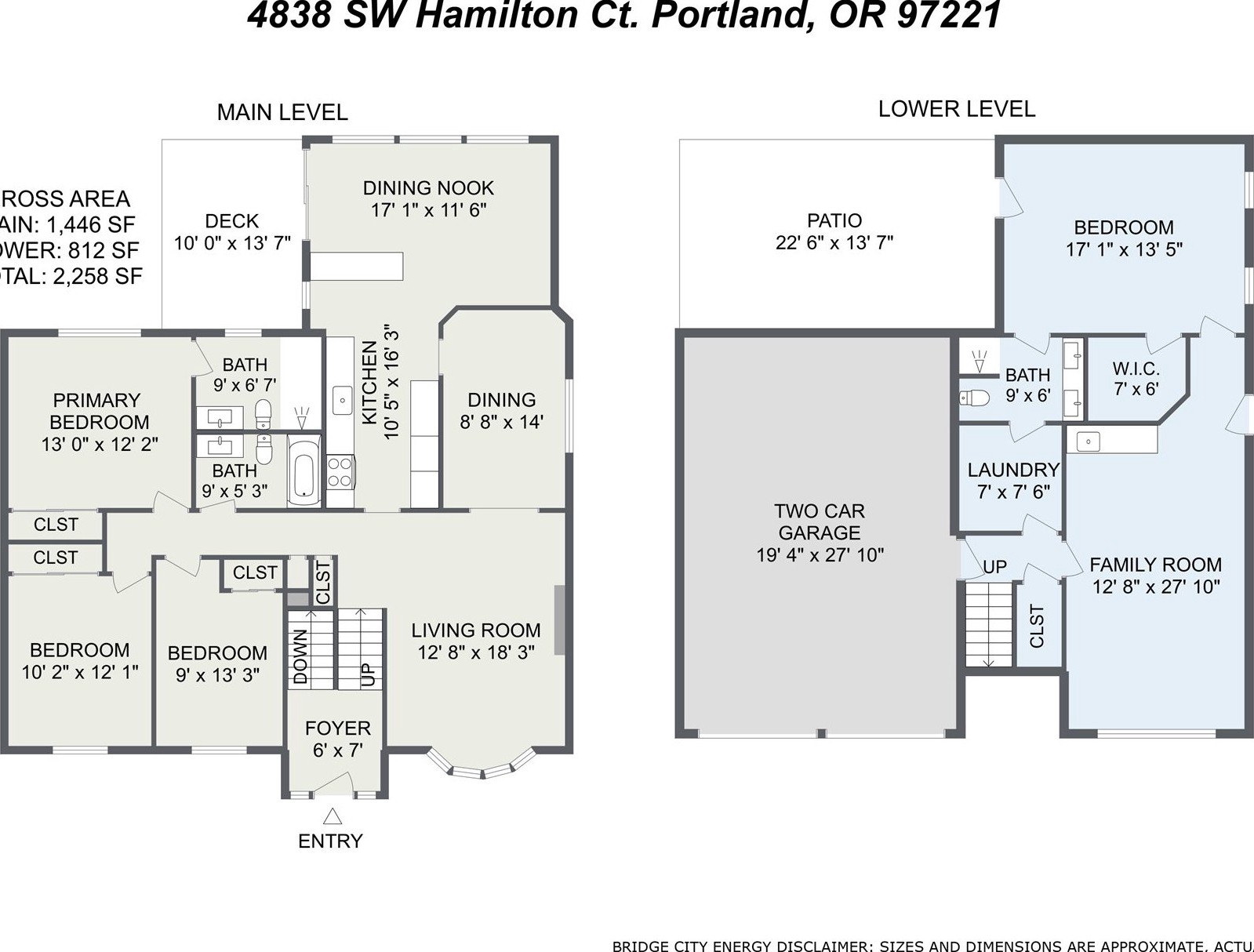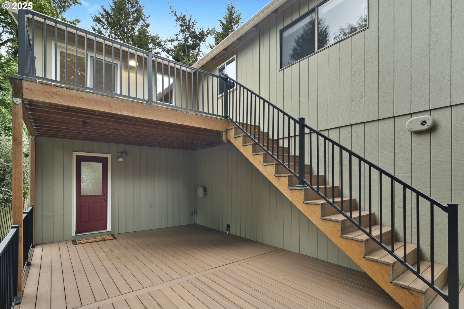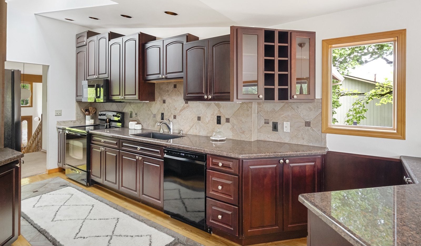 Tucked away on a quiet cul-de-sac, just minutes to Bridlemile Elementary & Hamilton Park, this charming abode is on the market for the first time! With a versatile floorplan and updates galore, she awaits her next stewards. Lovingly maintained by the original owners, this is not your typical split! This home has seen multiple iterations and thoughtful updates over the years, each one enhancing daily livability and peace of mind. The generous entryway facilitates an easeful flow and creates an inviting ambiance. Conjoining living spaces interface beautifully while preserving defined areas, so you can do your own thing, together. Relax in the cozy-yet-expansive living room, with its wood-burning fireplace, vaulted ceilings, and bay window. The kitchen, remodeled in 2005, showcases an impressive and efficient amount of storage, with cherry cabinets, granite counters, vaulted ceiling with skylight, hardwood floors with custom tile inlays, and an eat bar. The eating nook with built-in shelving doubles as a workspace, while the adjacent dining room provides for a sit-down meal with loved ones. With three bedrooms and two full baths on the main level, plus an additional primary bedroom set-up and family room down (plus 2 exterior entries!), this flexible layout is perfect for multigenerational living or those seeking a dedicated home office, art studio, home gym, or entertainment room. Upper and lower Trex decks, raised garden beds, and a fully fenced yard offer various settings for enjoying the Pacific NW year-round. An extra-deep 2-car garage and clean storage shed offer ample overflow storage. Updates include: roof 2021, high efficiency furnace + AC 2018, front porch 2025, Trex back decks and back siding 2023, new driveway drainfield 2023, water heater 2022, new carpet in downstairs bedroom and on stairs, & new accent lighting in entryway and dining room. It’s a rare opportunity to inherit such a well-kept, single-owner gem. Come plant your roots. [Home Energy Score = 5. HES Report at https://rpt.greenbuildingregistry.com/hes/OR10241870]