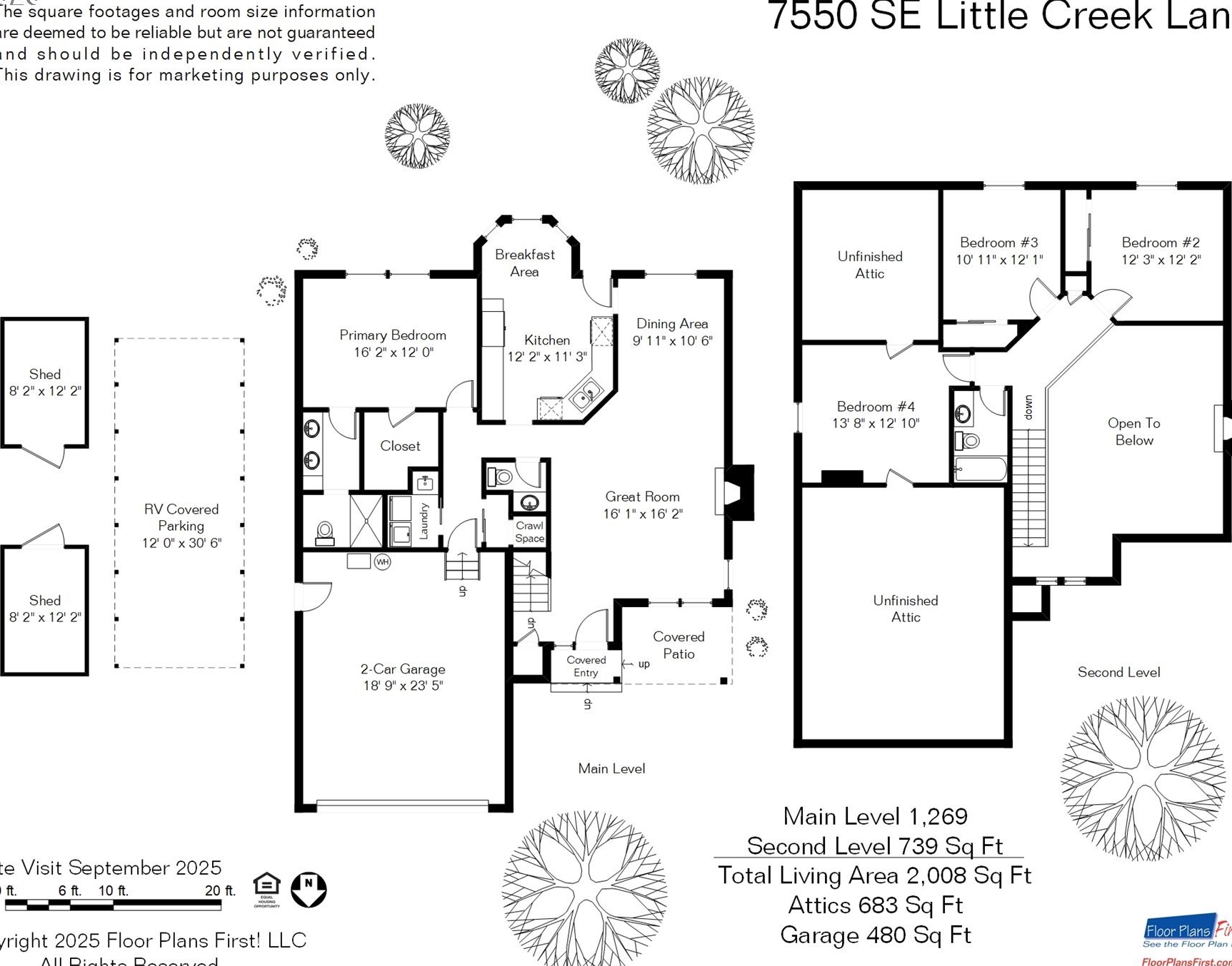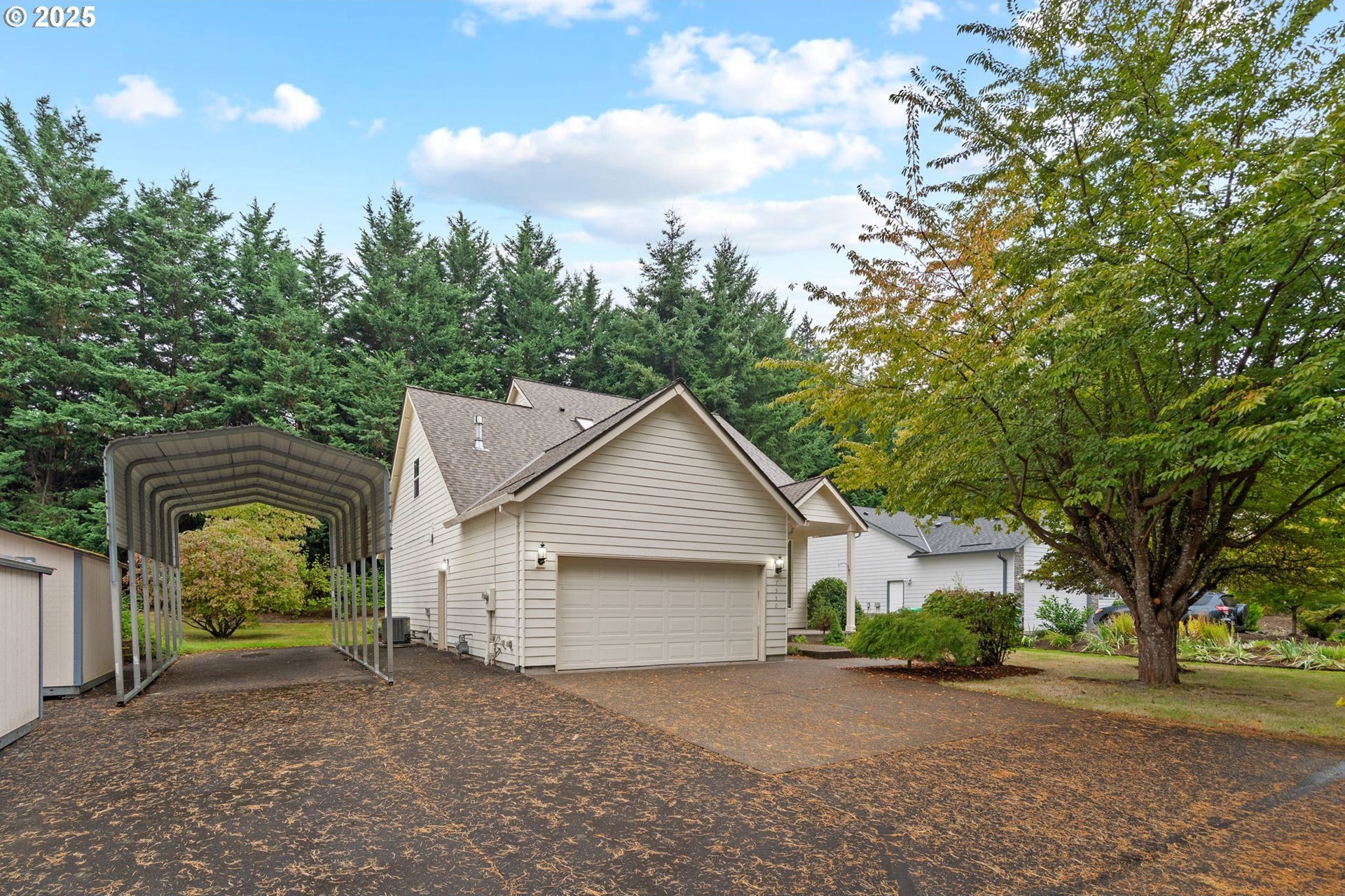Tucked away on a Little Creek Lane, a private road of five homes, you'll find this charming traditional. Pulling up to the property, it's impossible to miss the 30ft covered RV parking, paired perfectly with 30AMP and waste hook ups. Entering the home, the two floor vaulted ceilings and open stair case of the living room steal the show and the eat-in kitchen with adorable breakfast nook is the perfect place to start your Sunday morning. Also on the main floor, the primary suite with walk-in closet, walk-in shower and double sinks, along with the laundry room. Who needs upstairs anyway? But incase you do, there are two additional formal bedrooms with closets, and a fourth bedroom/bonus room with attic access to two large storage spaces and a second full bathroom. Recent major updates include a new 50 yr roof, gas furnace, and AC. Bring your toys, especially that boat or RV you'd been paying to store. Welcome home, on Little Creek Lane!