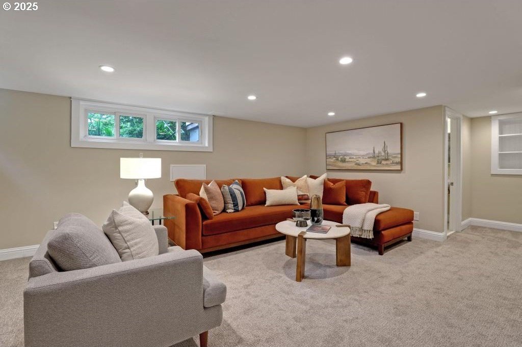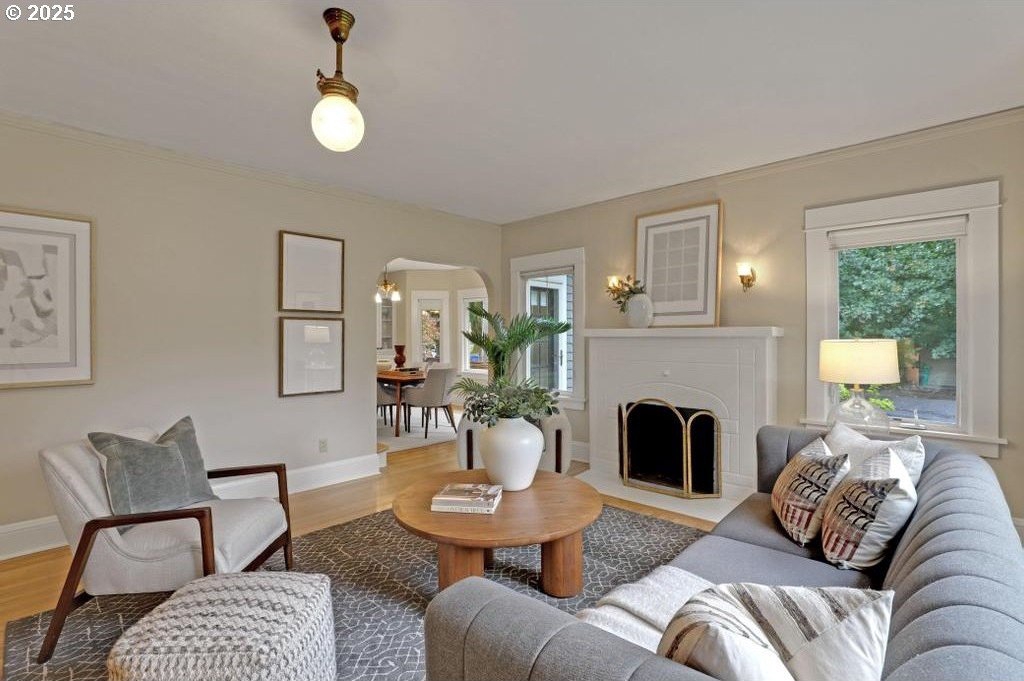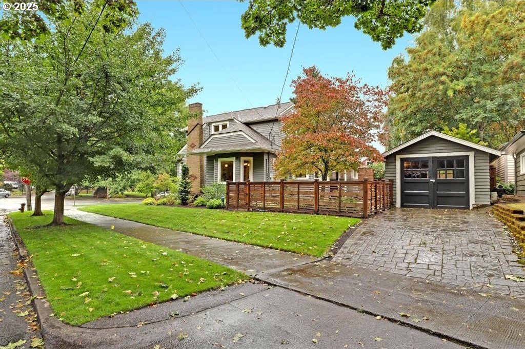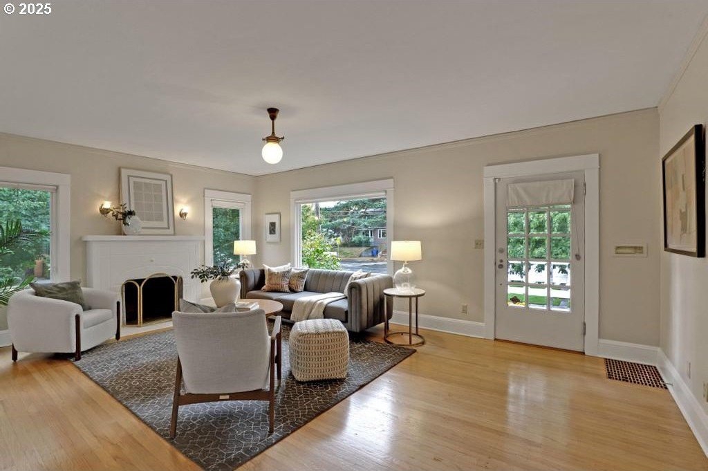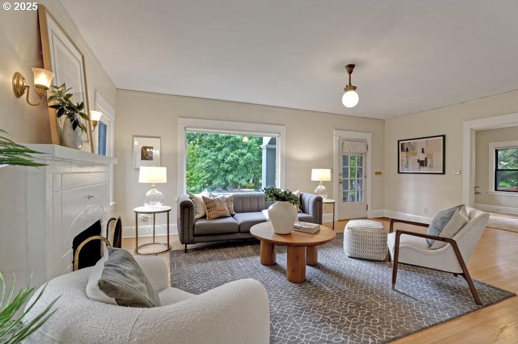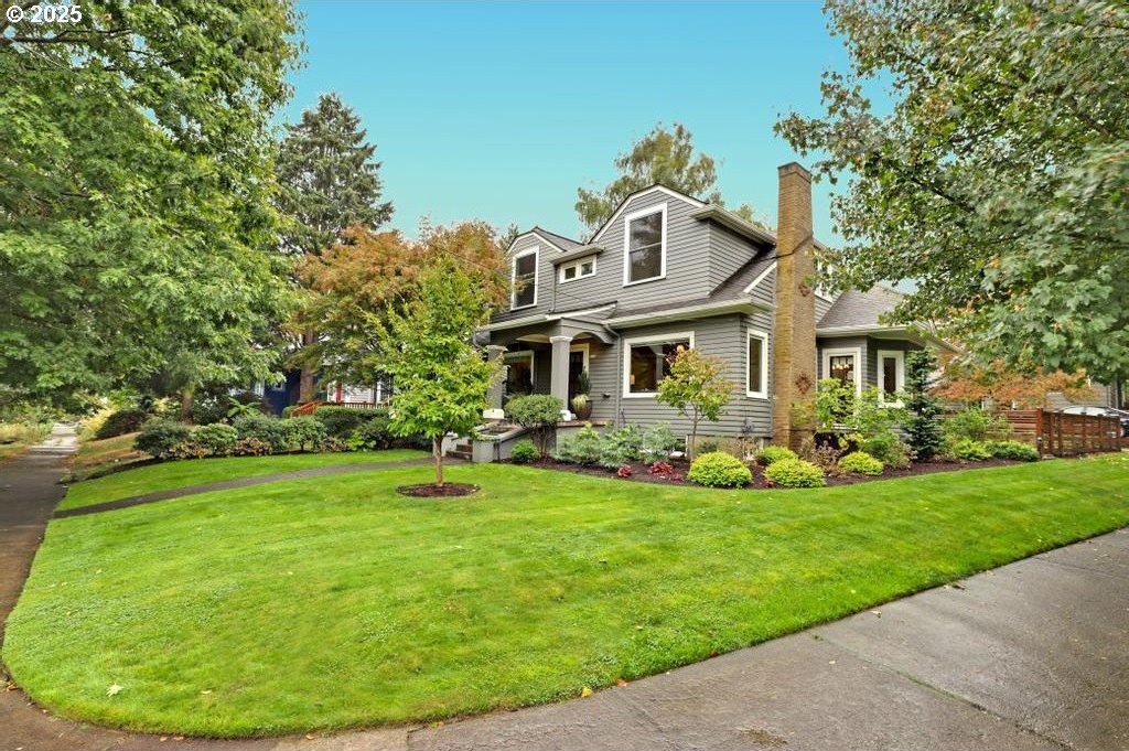 Stylishly remodeled bungalow lives large and beautifully! This light-filled Laurelhurst home on a gorgeous, sunny 6,200 SF corner lot checks all the boxes. Windows and natural light everywhere. Period charm blends seamlessly with modern updates throughout. A large, flexible floorplan includes a spacious living room with fireplace, dining room with pristine built-ins, beautifully remodeled, yet period-style kitchen with Thermador stainless appliances and soapstone counters, two bedrooms and a bath - all on the main floor! Three grand-sized bedrooms and impressively large, remodeled bathroom upstairs (two sinks and the shower of your dreams), spacious hallway with skylights, adorable desk nook, and a large landing. The warm and inviting finished family room in the lower level features a full bathroom, tons of storage, and great workshop. Truly beautiful, green, and lush professionally landscaped backyard patio is ideal for entertaining all year long. Fully fenced, covered back porch and mud room from driveway and garage, makes offloading easy. Like-new hot tub is tucked away for privacy and comes with the property. Please see the impressive “Updates” list, including newly remodeled bathroom, refinished hardwood and fir floors on two levels, exterior and interior paint, new basement carpeting, all in 2025. Truly turn-key and pristine! Epicenter to over 60+ fun restaurants, cafes, parks, and shopping. Please see carefully curated list. Just 1+ block from beloved Laurelhurst K-8 school. Walk score of 90 and Bike score of 91. Open Saturday and Sunday, 1-3 pm!