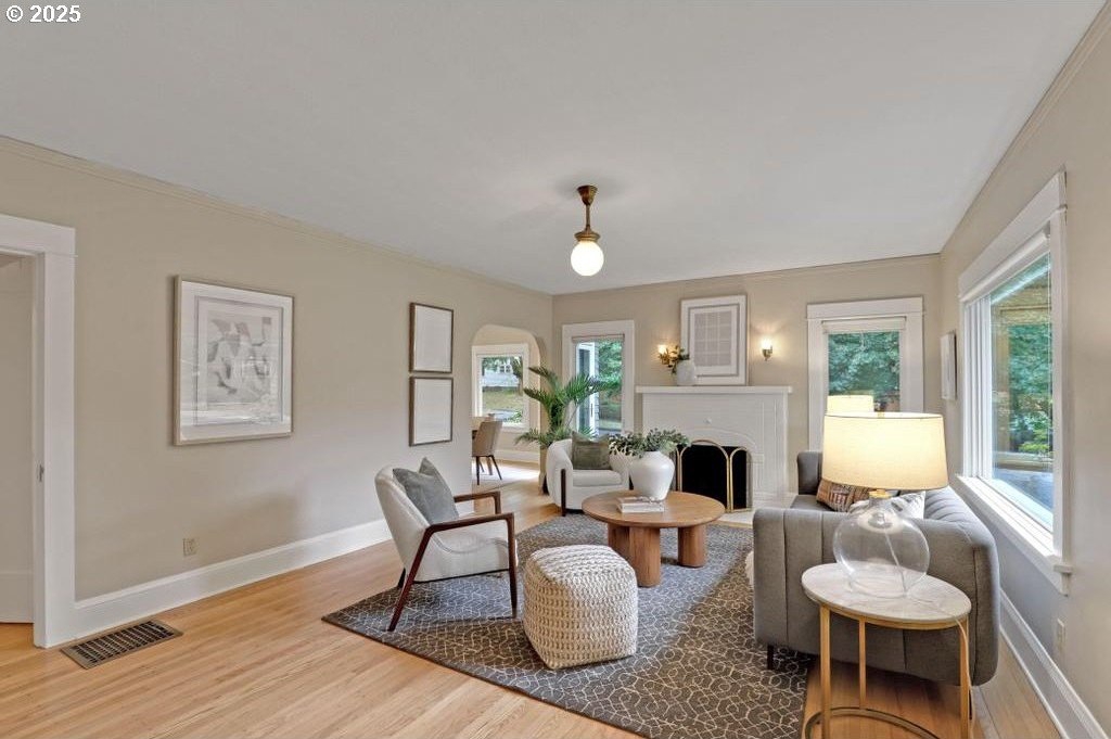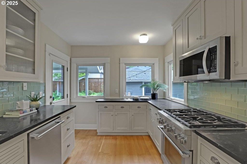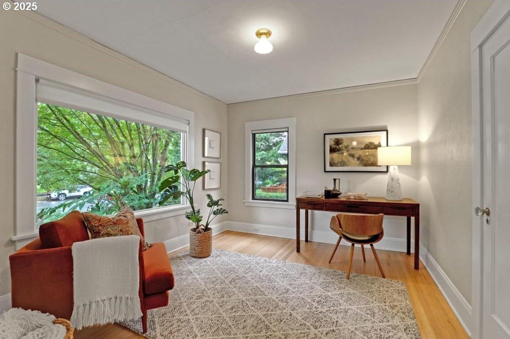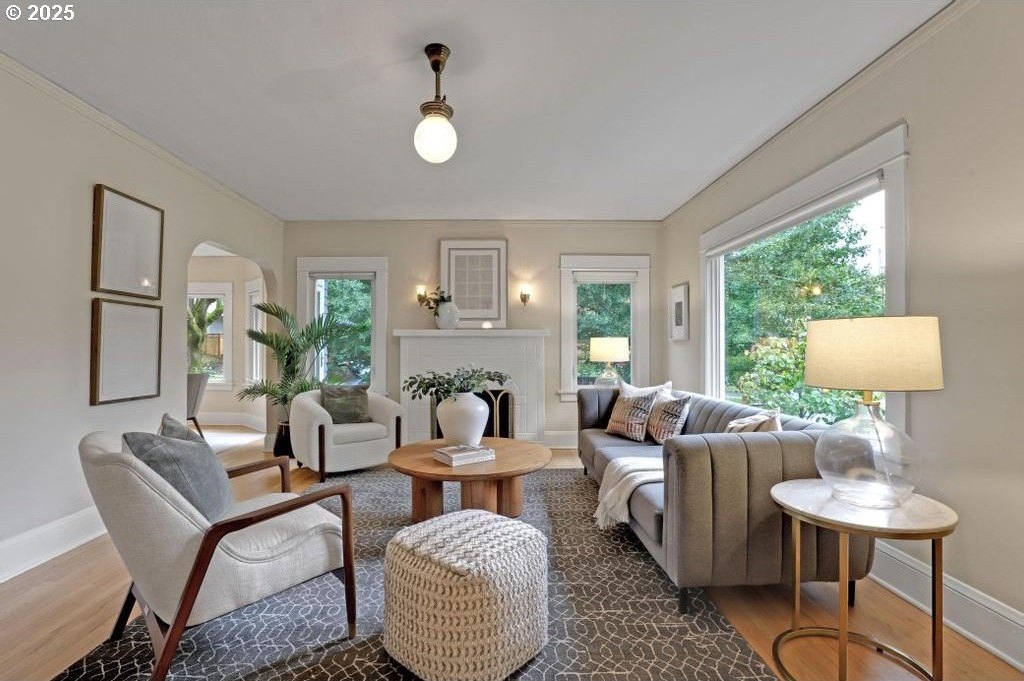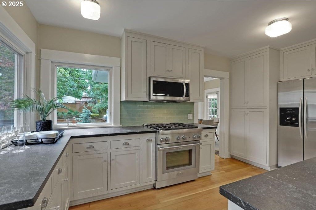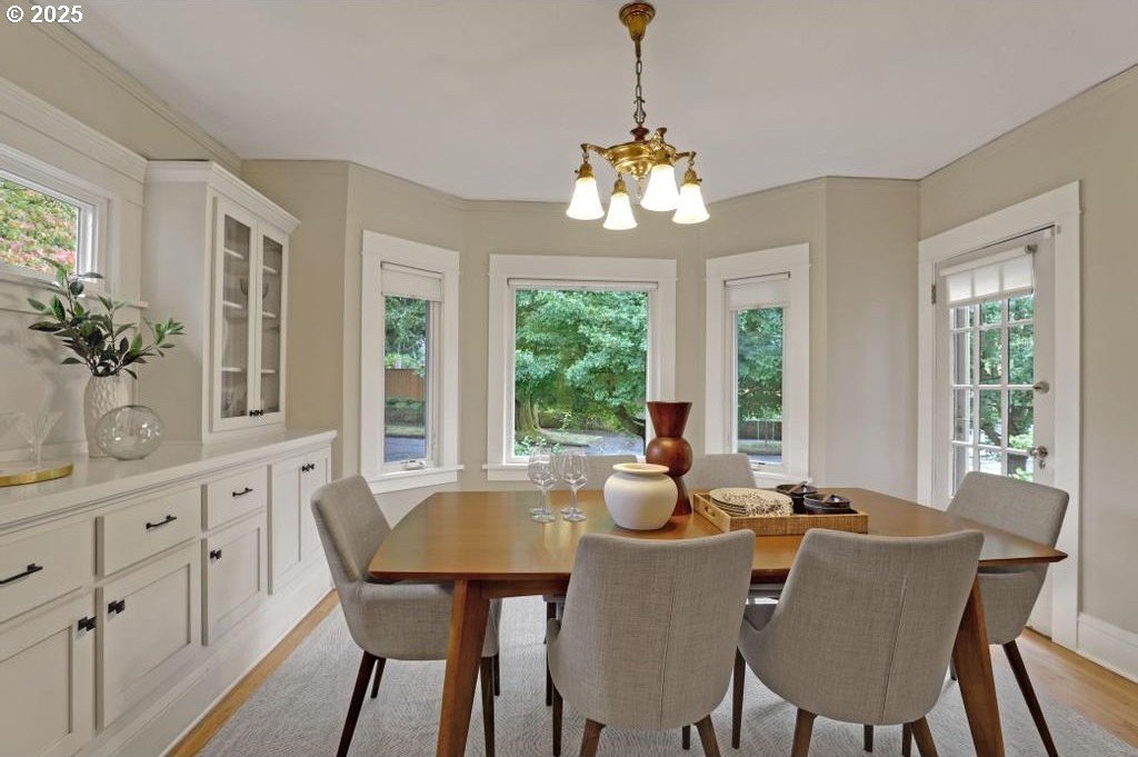Stylishly remodeled bungalow lives large and beautifully! This light-filled Laurelhurst home on a gorgeous, sunny 6,200 SF corner lot checks all the boxes. Windows and natural light everywhere. Period charm blends seamlessly with modern updates throughout. A large, flexible floorplan includes a spacious living room with fireplace, dining room with pristine built-ins, beautifully remodeled, yet period-style kitchen with Thermador stainless appliances and soapstone counters, two bedrooms and a bath - all on the main floor! Three grand-sized bedrooms and impressively large, remodeled bathroom upstairs (two sinks and the shower of your dreams), spacious hallway with skylights, adorable desk nook, and a large landing. The warm and inviting finished family room in the lower level features a full bathroom, tons of storage, and great workshop. Truly beautiful, green, and lush professionally landscaped backyard patio is ideal for entertaining all year long. Fully fenced, covered back porch and mud room from driveway and garage, makes offloading easy. Like-new hot tub is tucked away for privacy and comes with the property. Please see the impressive “Updates” list, including newly remodeled bathroom, refinished hardwood and fir floors on two levels, exterior and interior paint, new basement carpeting, all in 2025. Truly turn-key and pristine! Epicenter to over 60+ fun restaurants, cafes, parks, and shopping. Please see carefully curated list. Just 1+ block from beloved Laurelhurst K-8 school. Walk score of 90 and Bike score of 91. Open Saturday and Sunday, 1-3 pm!
