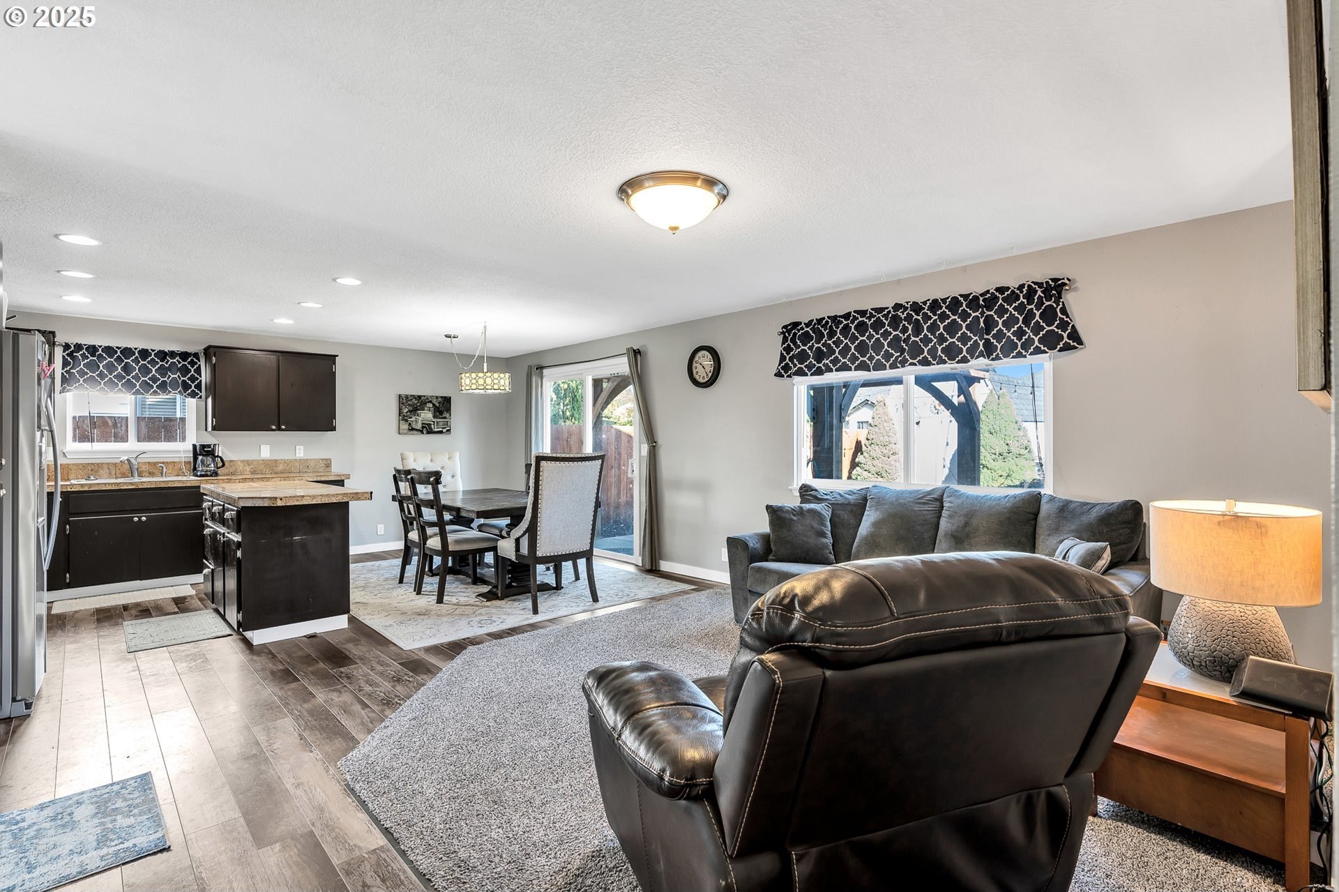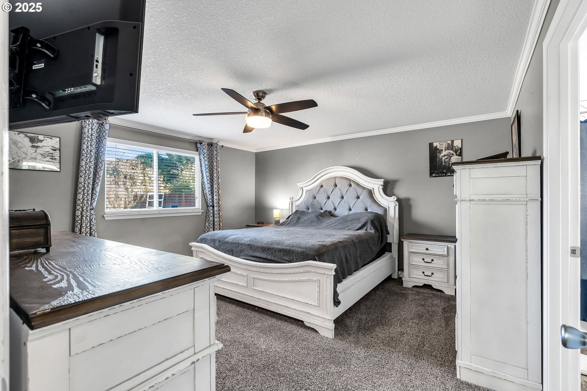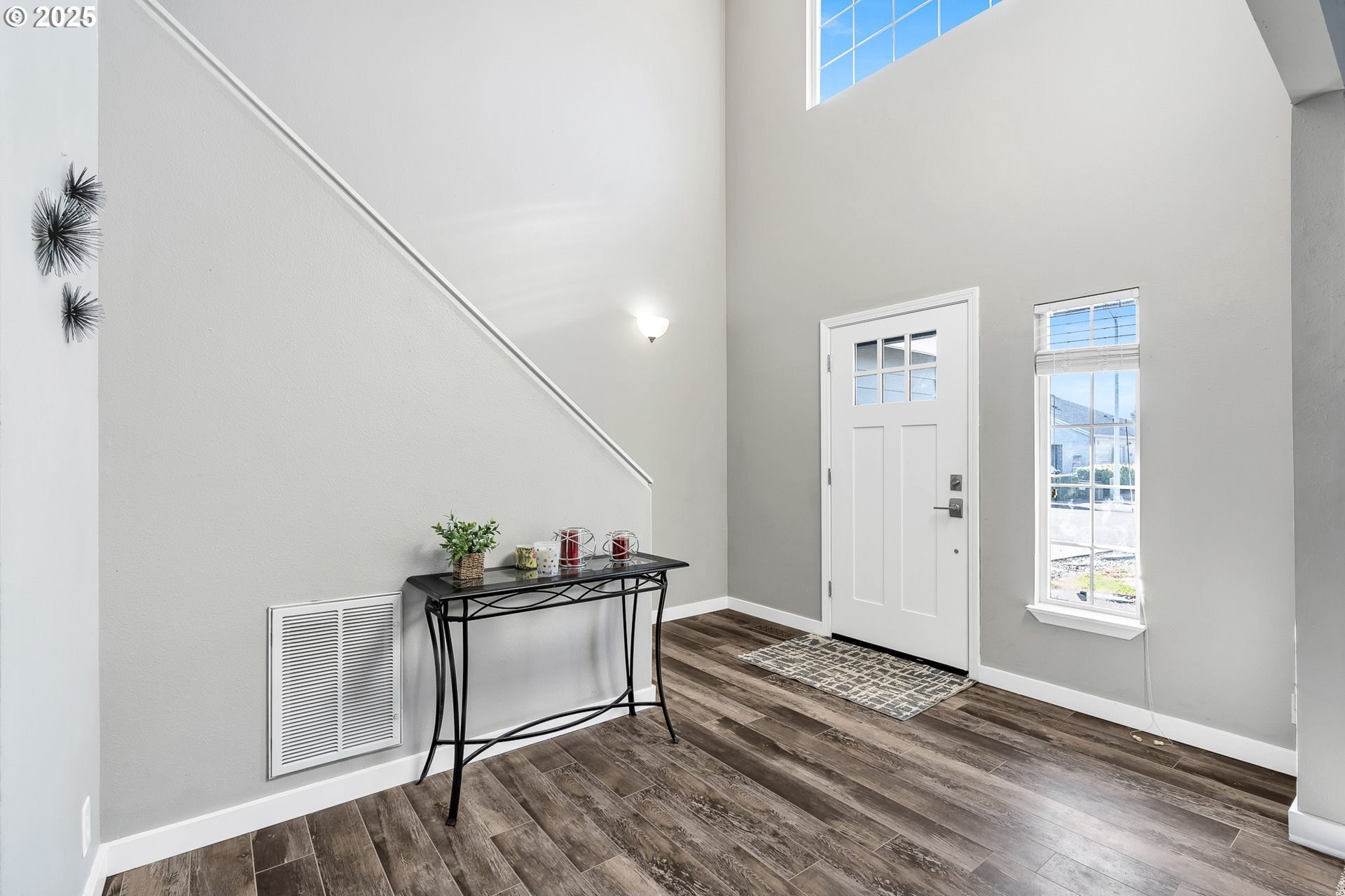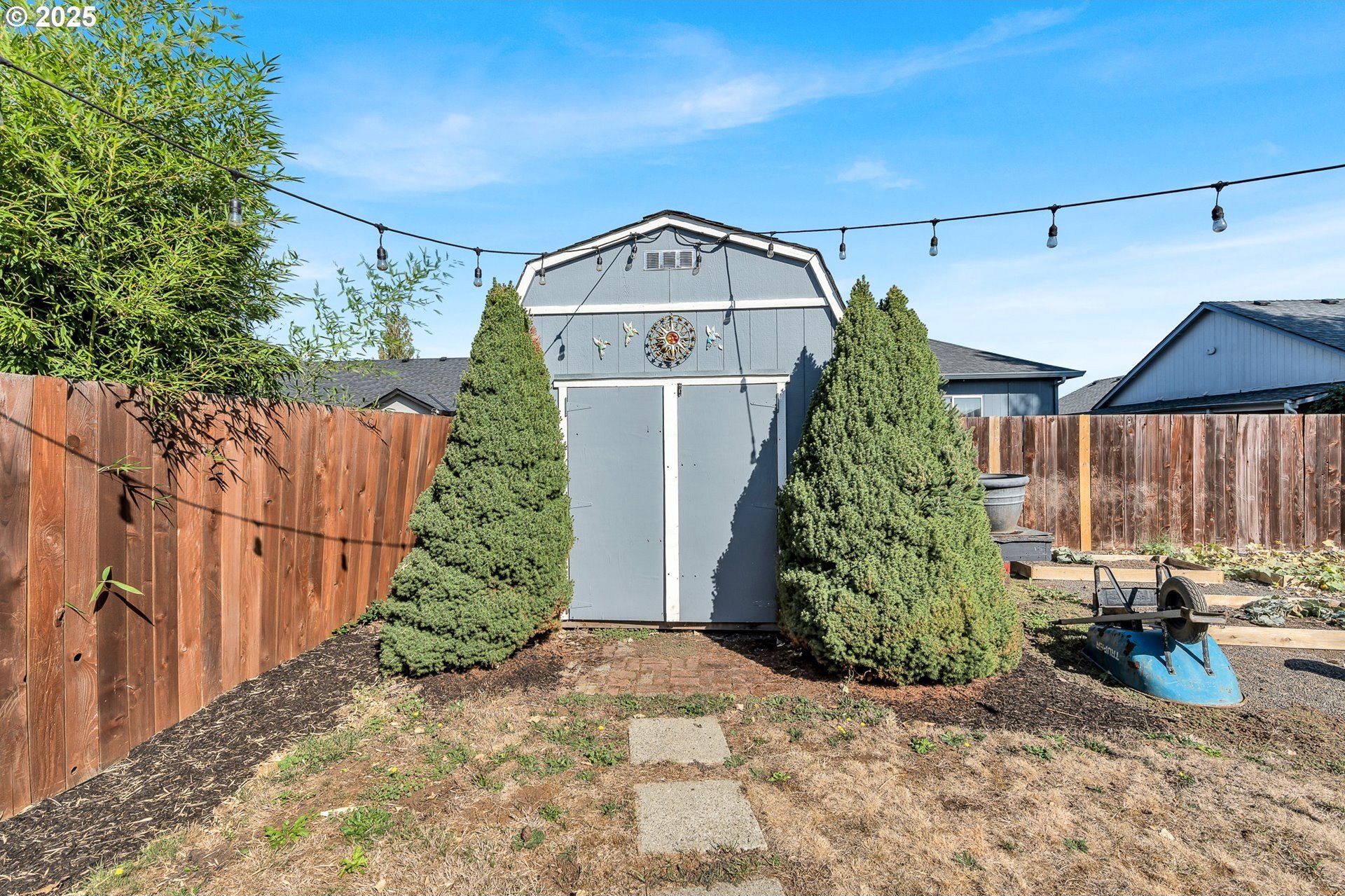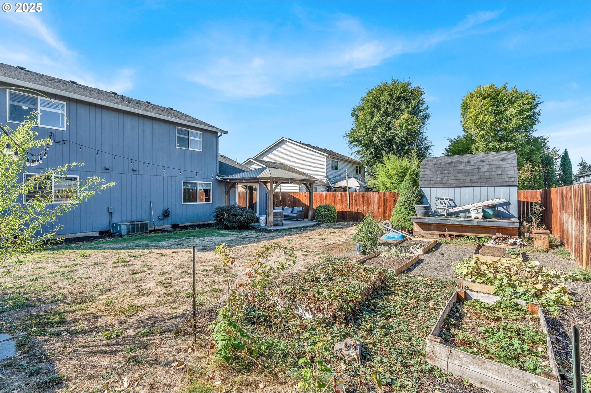 Spacious five-bedroom home featuring a main-level master suite for convenience and privacy. Enjoy two living areas and a backyard oasis designed for entertaining, complete with a pergola with lights, raised garden beds, and a 12x12 storage shed. The kitchen boasts granite countertops and hardwood floors, while all bedrooms feature wall-to-wall carpet. The master suite includes two closets and a generous bathroom with double sinks, plus crown molding for an elegant touch. Additional highlights include custom-fit blinds on all windows, extra-wide baseboards throughout, a large entryway, vaulted living room, mountain views, a Nest thermostat, and access to highly rated Hockinson schools.