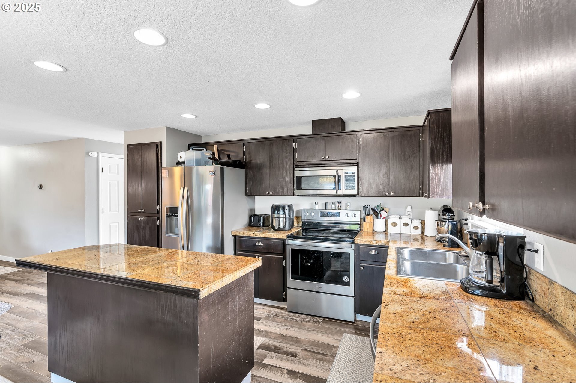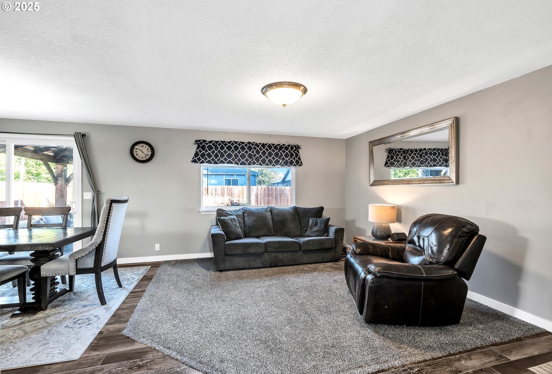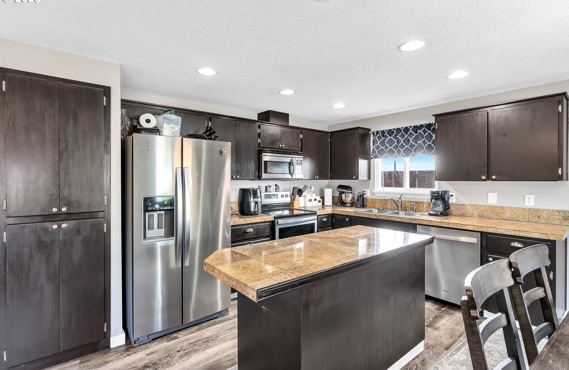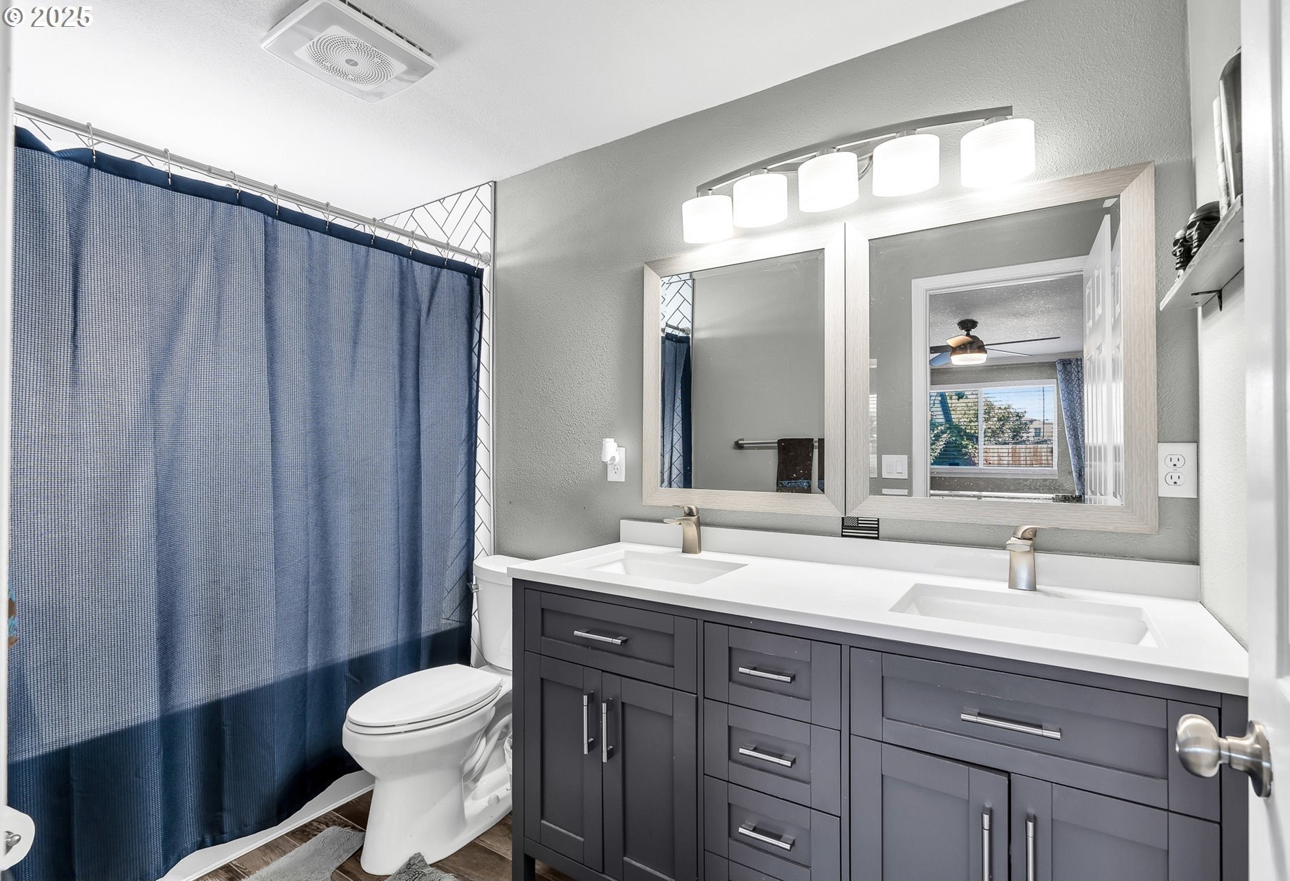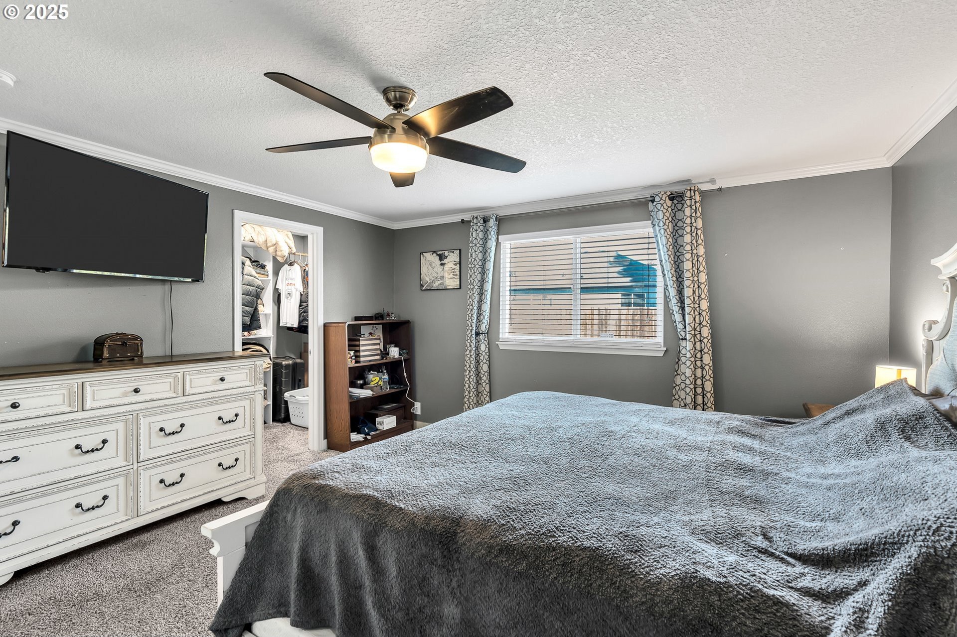 Spacious five-bedroom home featuring a main-level master suite for convenience and privacy. Enjoy two living areas and a backyard oasis designed for entertaining, complete with a pergola with lights, raised garden beds, and a 12x12 storage shed. The kitchen boasts granite countertops and hardwood floors, while all bedrooms feature wall-to-wall carpet. The master suite includes two closets and a generous bathroom with double sinks, plus crown molding for an elegant touch. Additional highlights include custom-fit blinds on all windows, extra-wide baseboards throughout, a large entryway, vaulted living room, mountain views, a Nest thermostat, and access to highly rated Hockinson schools.