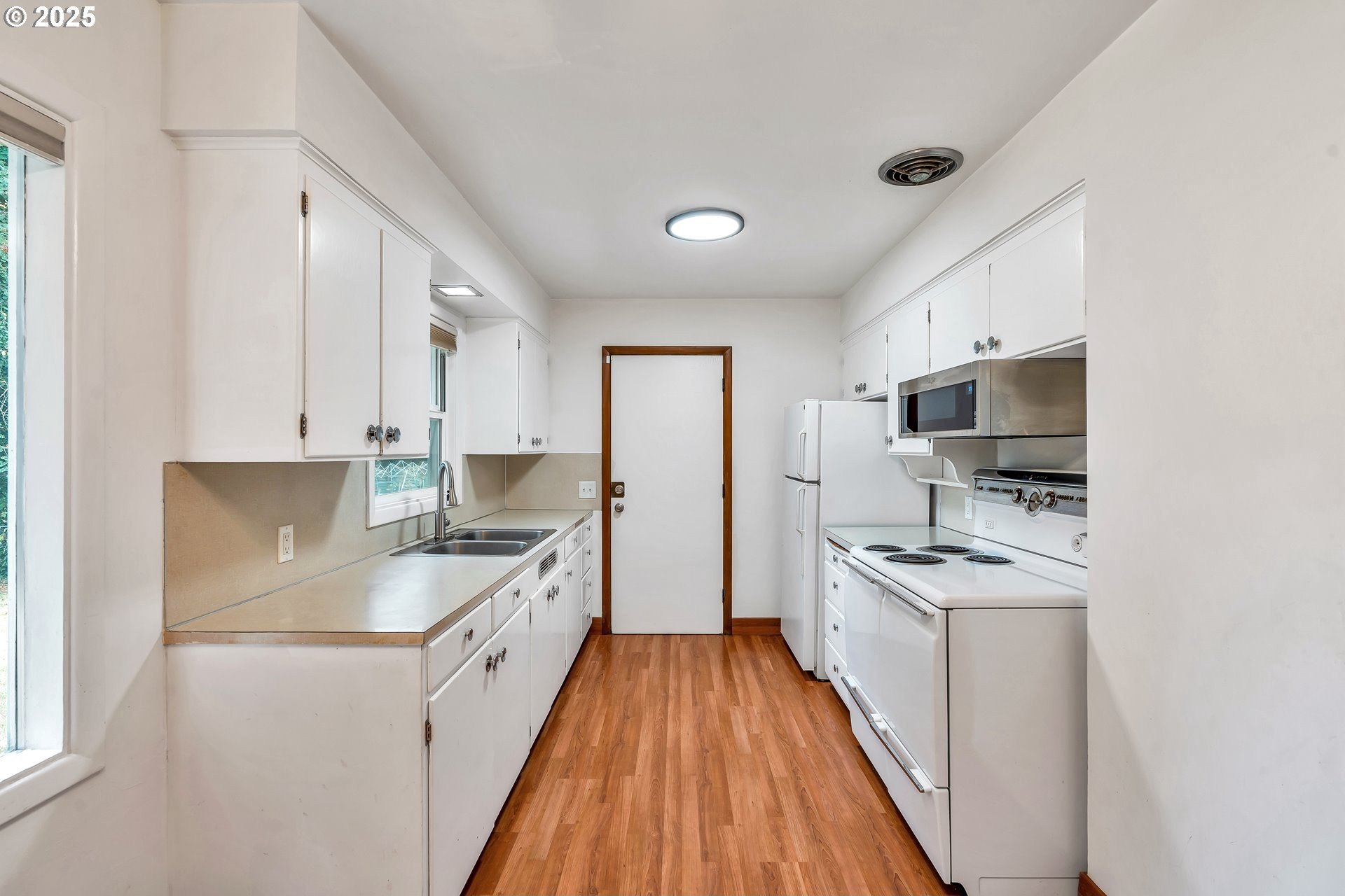 Welcome to this charming Portland bungalow, blending timeless character with modern updates. Freshly painted and move-in ready, the home showcases original hardwood floors, a cozy fireplace, and classic built-ins that add warmth throughout. Expansive picture windows fill the living spaces with natural light, creating an inviting atmosphere. The main level offers two bedrooms and a full bath, while the upper floor features a bonus room and additional bedroom, providing versatile living options. Nearly 1,000 sq ft of basement space with high ceilings offers endless potential for storage, hobbies, or future expansion. Outside, enjoy RV parking and a sprawling fenced backyard—ideal for gardening, barbecues, or simply relaxing in your private retreat. Tucked away from the road, this home provides both tranquility and convenience, close to all the amenities Portland has to offer.