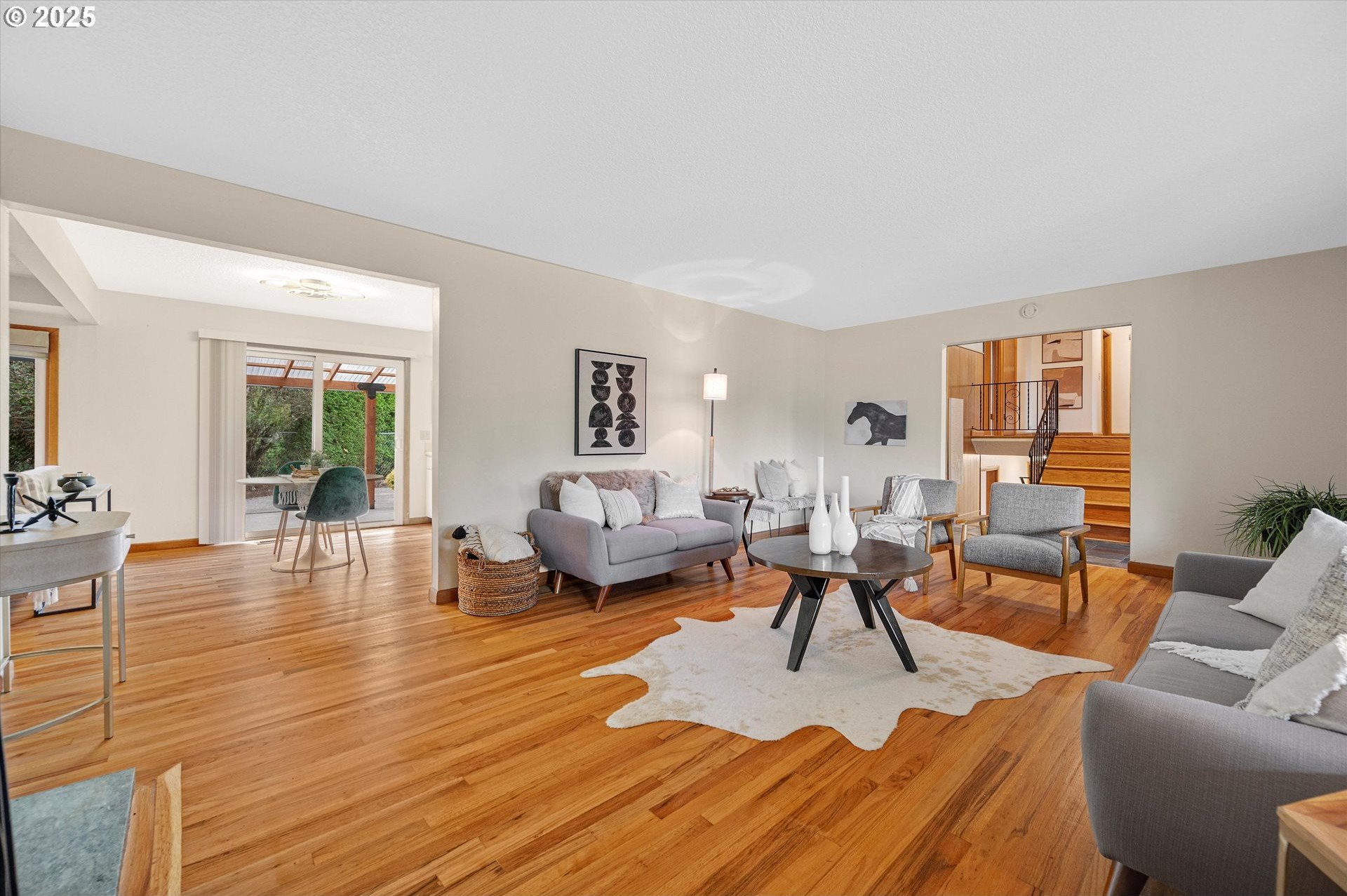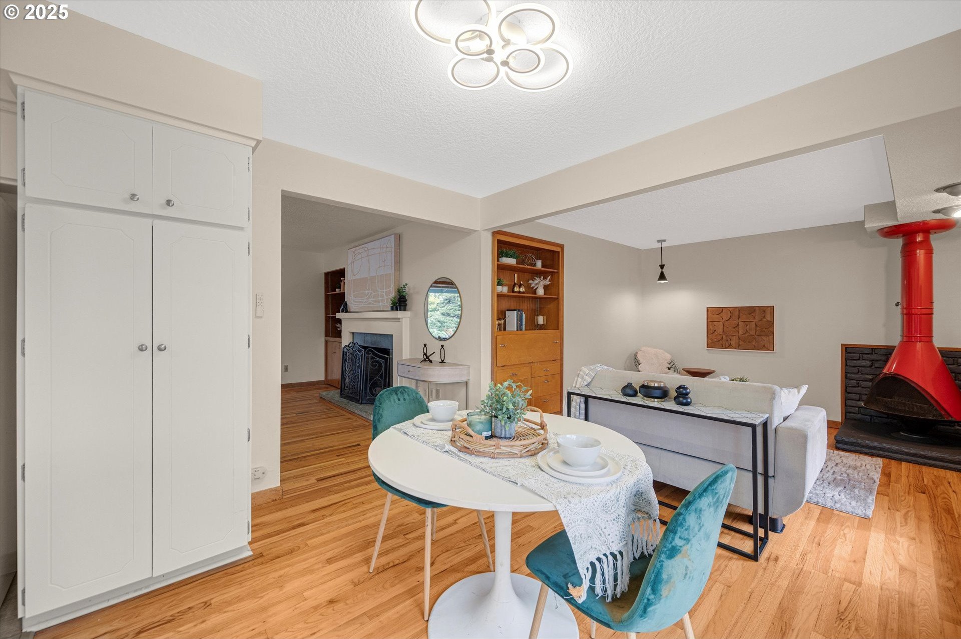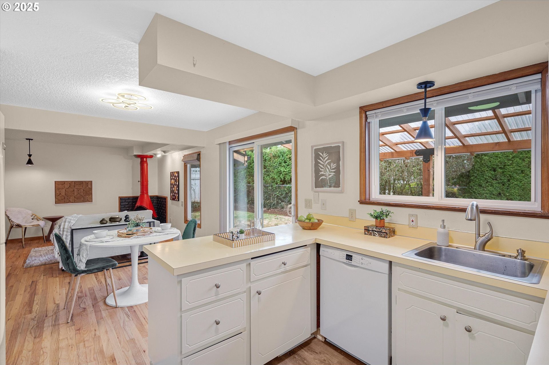Incredible Mid-century home in the heart of Reedway. This home is a real gem. Classic split level layout with formal entry and 3 generous bedrooms on the upper level including a primary suite and a guest bath. Main floor has a beautiful formal living room, formal dining plus a sweet retro kitchen that opens to a great room with a super cool bright red woodstove. Lower level has the fourth bedroom and third full bath, big laundry room, and gorgeous living area with 2nd fireplace. Think romper room, Brady Bunch style. Also perfect for work from home or guest space! Sliding doors lead out to the backyard patios. Don't miss the unfinished basement storage room. Refinished hardwoods through-out. Brand new exterior paint, newer roof and so much more. Swimming pool is covered but was just drained and cleaned. Two car garage and extra storage shed out back. Walkbable to Reed College, Gladstone restaurants and the absolute best of inner SE Portland!