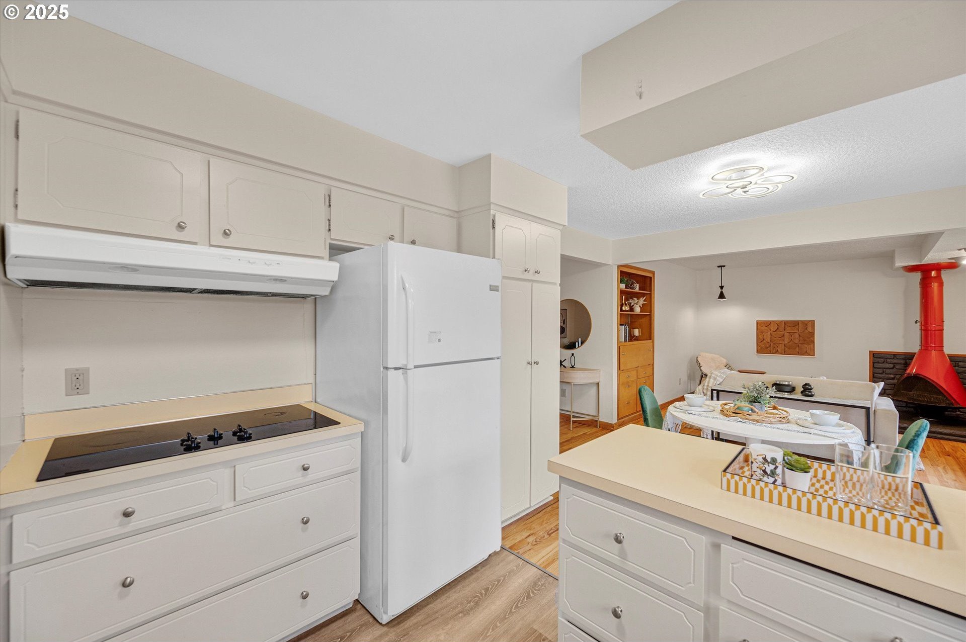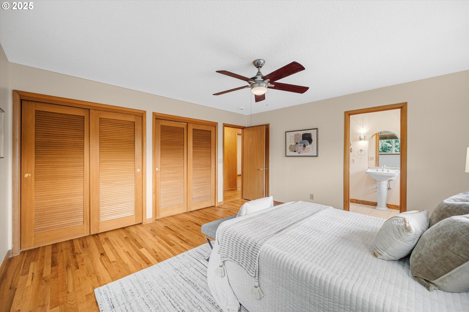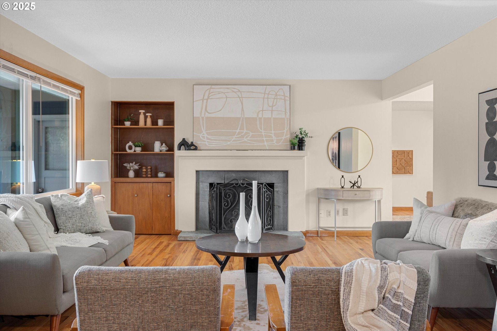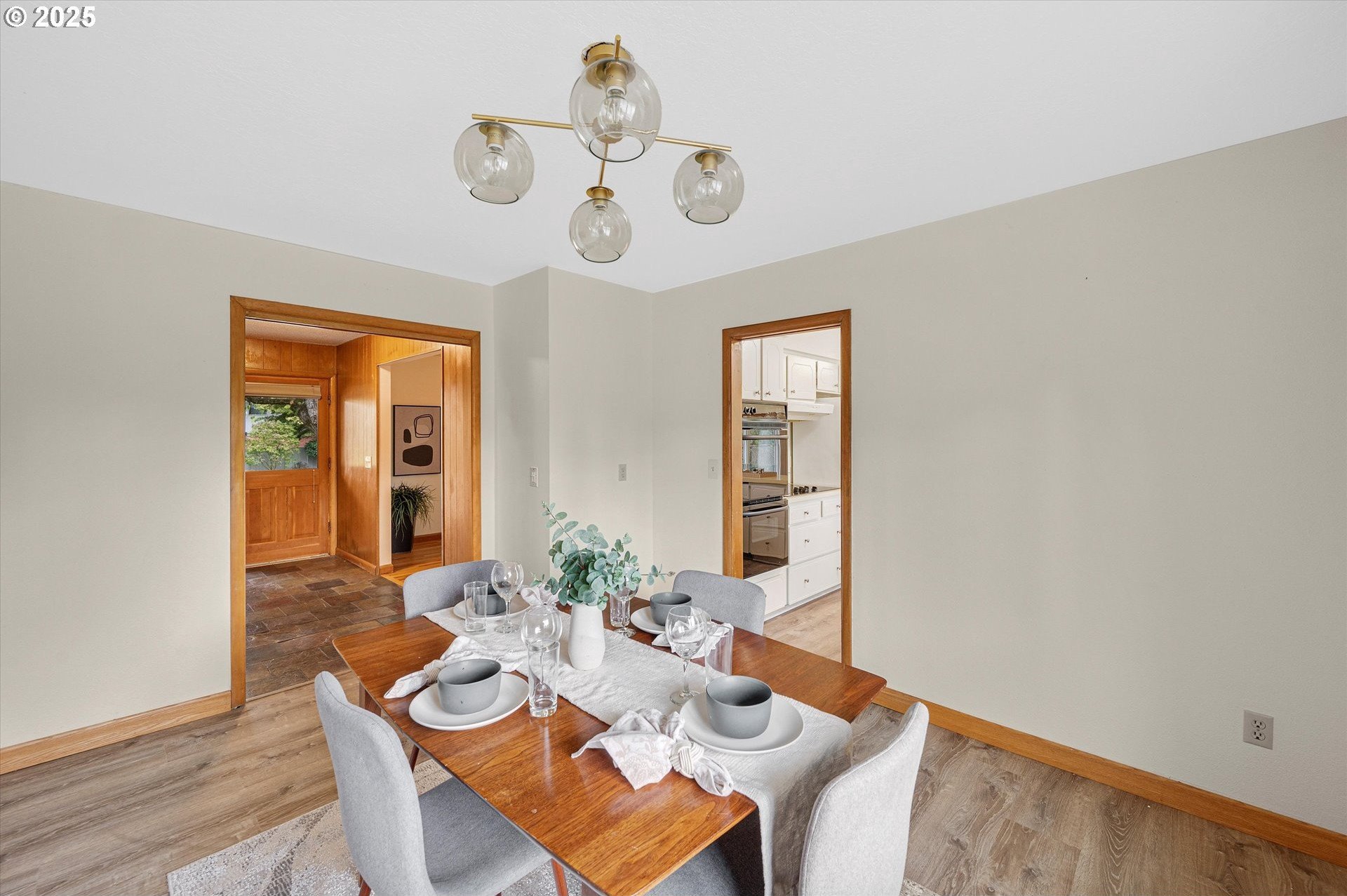 Incredible Mid-century home in the heart of Reedway. This home is a real gem. Classic split level layout with formal entry and 3 generous bedrooms on the upper level including a primary suite and a guest bath. Main floor has a beautiful formal living room, formal dining plus a sweet retro kitchen that opens to a great room with a super cool bright red woodstove. Lower level has the fourth bedroom and third full bath, big laundry room, and gorgeous living area with 2nd fireplace. Think romper room, Brady Bunch style. Also perfect for work from home or guest space! Sliding doors lead out to the backyard patios. Don't miss the unfinished basement storage room. Refinished hardwoods through-out. Brand new exterior paint, newer roof and so much more. Swimming pool is covered but was just drained and cleaned. Two car garage and extra storage shed out back. Walkbable to Reed College, Gladstone restaurants and the absolute best of inner SE Portland!