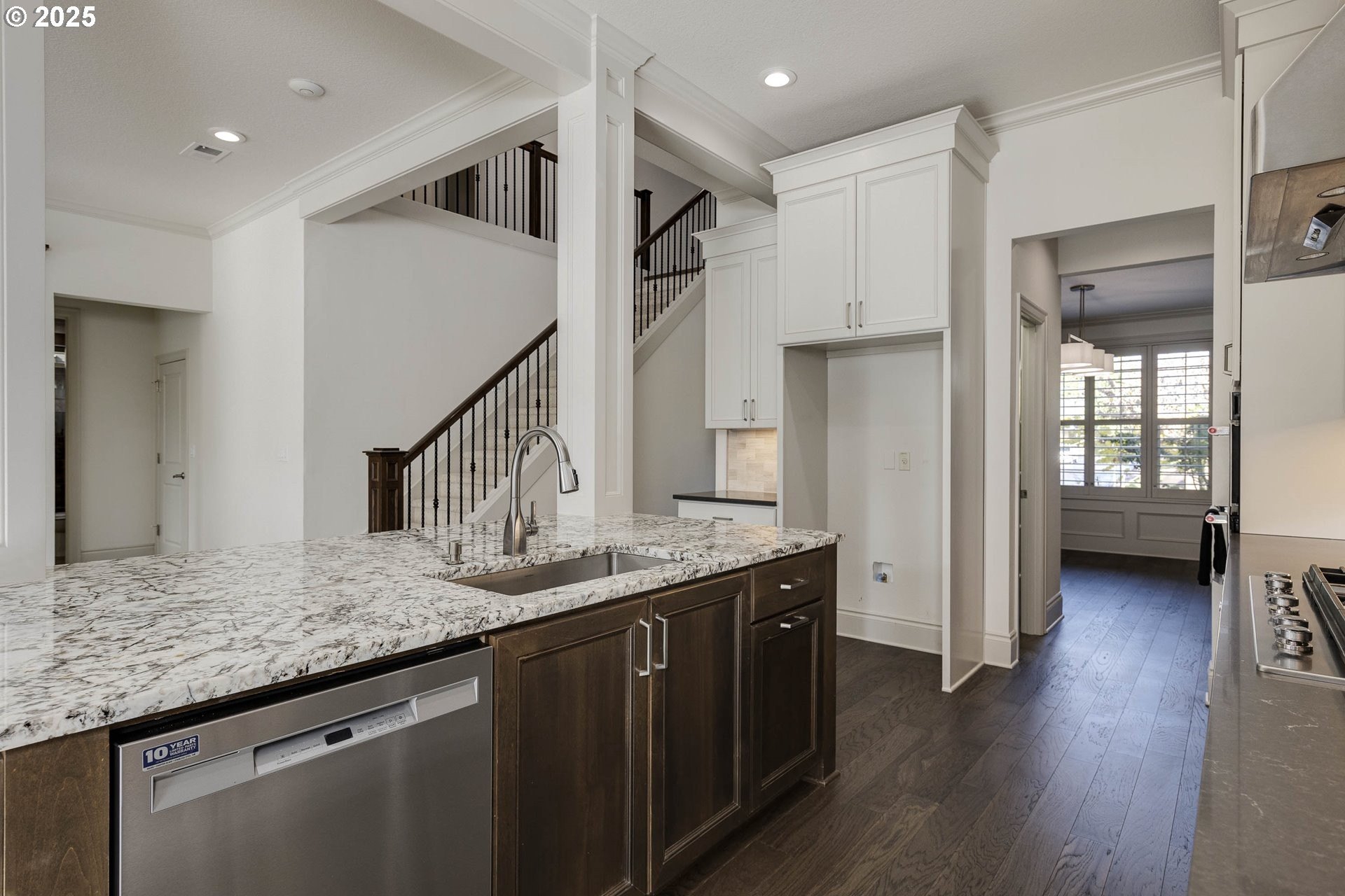Classy 2 story English style home has so many lovely features, you will be excited to come see this home. Step into the high ceiling entryway and begin exploring. High end finishes including wainscotting, Butler's pantry between formal dining room and kitchen, shutter style blinds on most windows. Gourmet kitchen with island and casual eating area leading to covered back patio. Enjoy entertaining in this open great room concept. Main level bedroom and full bath for guest or office space. Upper level with bonus room, 2 bedrooms and hall bath, laundry, nook area and 2 steps up to the spacious primary suite. Fenced back yard has the covered area for outdoor BBQ'ing and a storage shed. Be sure to check out the garage finishes with tankless hot water, built in, finished floor. Pioneer Highlands neighborhood has play area. A great neighborhood to spend time out and about!