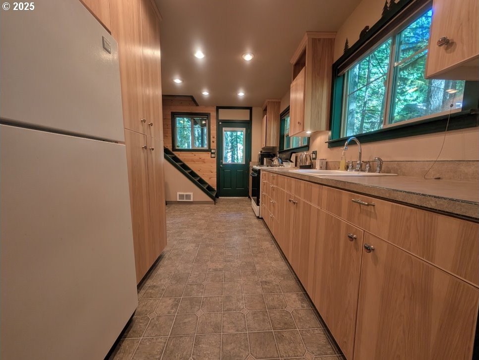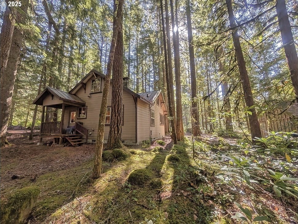 Edited RMLS Cabin Description:Mt. Hood ZigZag Riverfront knotty pine cabin just 7 minutes to the slopes! Opportunity knocks for skiers and boarders with this well-kept cabin offering plenty of room for family and friends. A gated driveway is only a short drive off Highway 26. The entry features a convenient spot to drop your skis and boots with a double door entrance. Vaulted ceilings in the living room create an open feel as you’re greeted by a stunning stone fireplace—the centerpiece of the room. The living and dining areas are perfect for evening games and gatherings.A propane fireplace warms the space after a day in the snow. The full kitchen includes a gas stove and pantry, and the cabin even has a washer and dryer—a rare mountain perk. The primary bedroom is on the main level, with a bathroom and shower just off the living area.Upstairs you’ll find another bedroom plus bonus beds in a double loft sleeping nook. Heat from the fireplace rises to keep the loft cozy. Out back, stroll to the Zig Zag River to dip your toes in summer or relax with a book as ducks fly by. Out front is a deck and nearby outbuilding for storing mountain toys, plus plenty of parking for multiple cars.Hikers and mountain bikers will love the easy access to nearby trails. Just five minutes up the hill to Ski Bowl and Summit, this is an ideal getaway for recreation and snow play without weekend traffic.The cabin comes nearly fully furnished, so you’re ready for a winter of fun! Located in the Mt. Hood National Forest on leased land.