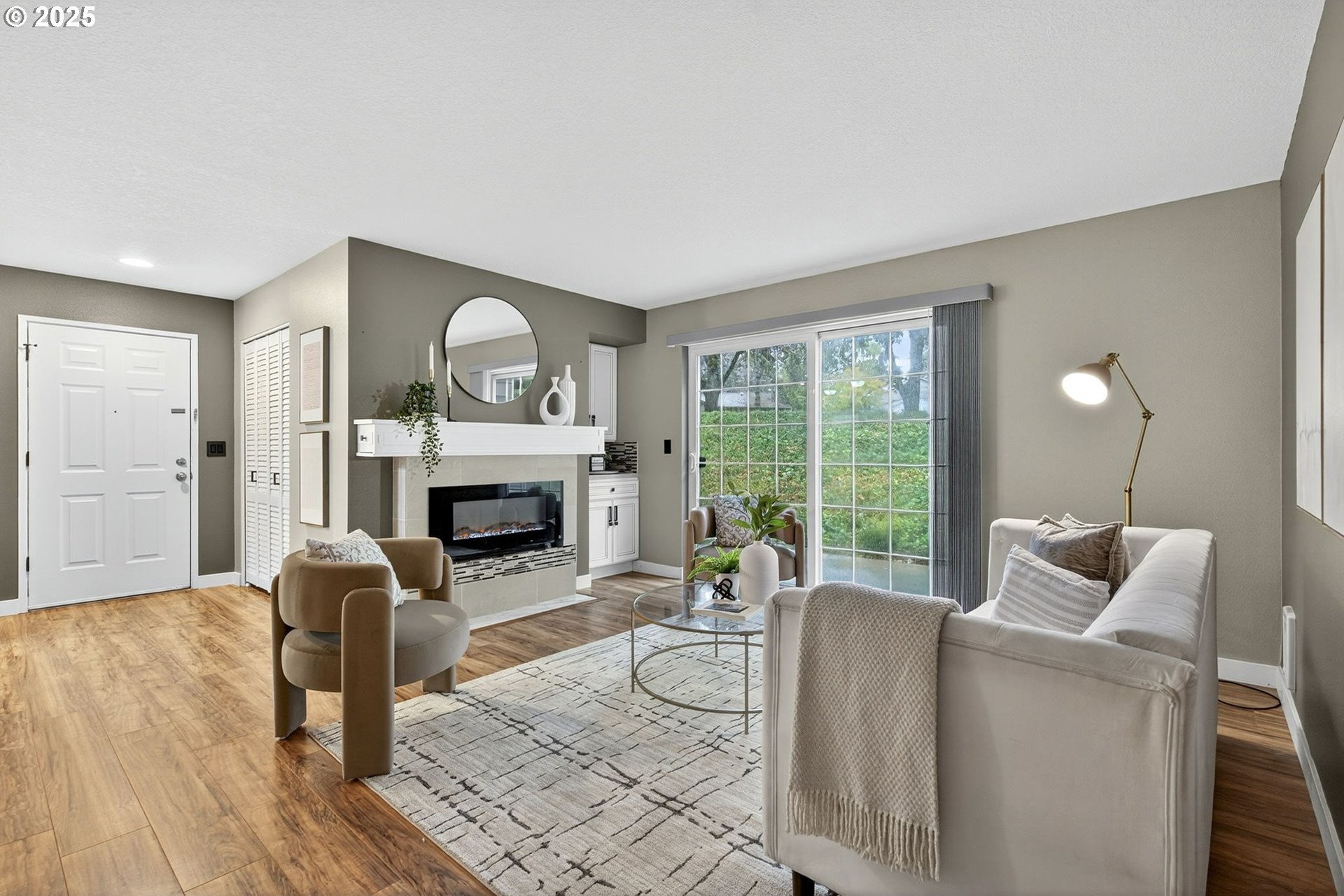 OPEN Sat 10/4 @ 12-2pm! Welcome to effortless living in the heart of Charbonneau - one of Wilsonville’s most sought-after communities! This beautifully remodeled ground-floor condo offers modern updates, serene surroundings and access to resort-style amenities that define the Charbonneau lifestyle. Step inside to an open-concept layout with luxury vinyl plank flooring, a stylishly renovated kitchen featuring quartz counters, new soft close cabinetry with pull-out shelving & SS appliances. A cozy living room with an electric fireplace leads to a private covered patio - perfect for morning coffee or evening relaxation. The spacious primary suite features a walk-in closet and a refreshed ensuite bathroom with double sinks & walk-in shower. A versatile second bedroom and updated hall bath complete the home. Enjoy tennis, swimming, walking paths and more - all included with HOA dues along with water, sewer, trash, landscaping and exterior maintenance. A reserved parking spot, storage room & a detached garage are also included. This is a prime location near dining, golf, shopping, and I-5, this home offers the best of low-maintenance living in a premier community. Don't miss the Charbonneau Village only one block away! All appliances and W/D are included.