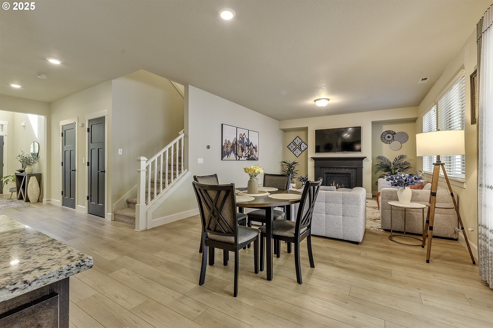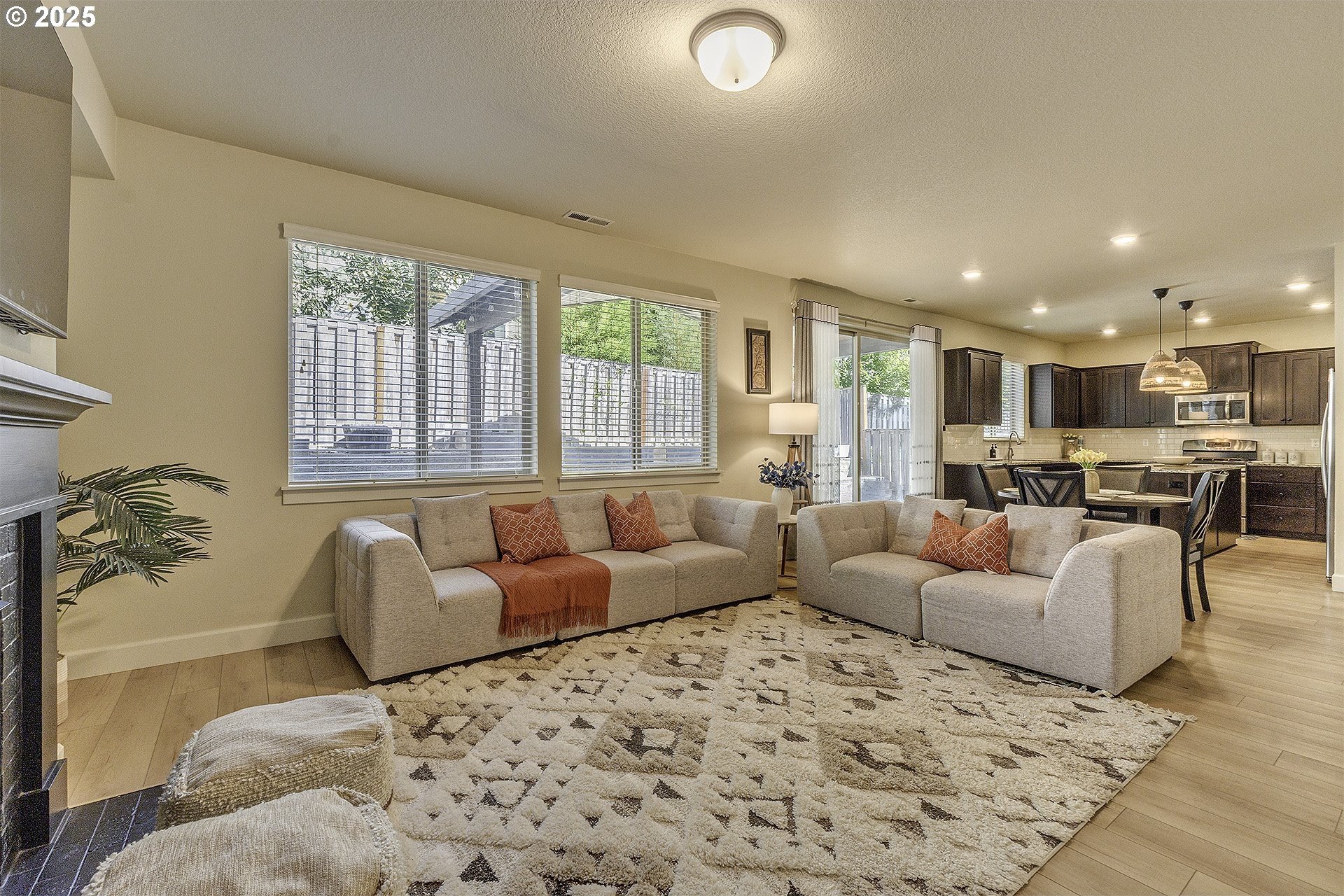 This beautifully maintained 4-bedroom, 2.5-bath home combines modern style, flexible living spaces, and unbeatable convenience in one perfect package.Step inside to a soaring two-story entryway and an open great-room floor plan, filled with natural light from oversized windows and anchored by a cozy gas fireplace. The heart of the home is the spacious kitchen with sleek granite countertops, ample prep space, and seamless flow into the casual dining area and living room. A formal dining space makes hosting holidays and gatherings a breeze, while luxury vinyl plank flooring brings both style and durability throughout the main level. A versatile main-floor den with oversized windows offers the perfect home office, reading nook, or sitting room.Upstairs, the expansive primary suite is a private retreat featuring a walk-in closet, soaking tub, and plenty of room to relax. A large bonus room adds flexibility—ideal for a media space, playroom, or second office. The dedicated laundry room with cabinetry and utility sink makes everyday chores a little easier.Out back, a professionally built covered patio creates the perfect space for year-round entertaining, while the private, low-maintenance yard offers room for kids, pets, or gardening.Just steps from Alberta Rider Elementary and minutes to shops, dining, and community amenities, this home blends comfort, functionality, and location—everything today’s buyers are looking for. Don’t miss the chance to own this move-in-ready gem, thoughtfully designed with comfort and flexibility in mind!