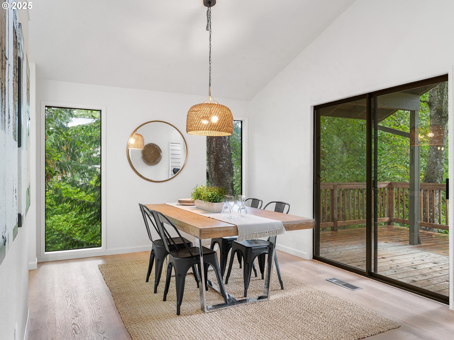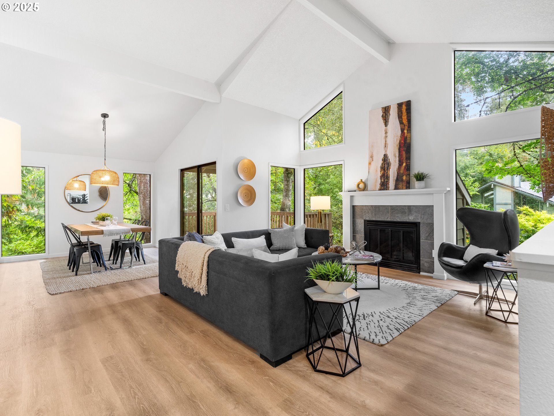 Hi there! I’m 9723 SW Quail Post Rd, a beautifully remodeled two-level home nestled in the lovely Quail Park neighborhood. Step inside and you’ll find me bright and welcoming, with natural light pouring through my open floor plan and highlighting all my fresh updates. My main floor is where the magic happens — a spacious living room with soaring vaulted ceilings and a cozy gas fireplace, perfect for relaxing or entertaining. Right beside me is the dining area and my remodeled kitchen, where shaker cabinets, solid surface countertops, and updated stainless steel appliances make cooking a real pleasure. I’ve got numerous sliding glass doors that open up to decks overlooking lush green forestry. It’s an amazing spot to enjoy fresh air, unwind, or host friends. My primary suite sits on the main floor, giving you easy access to a full bathroom, a big walk-in closet, and your own private balcony with peaceful views. I also have a handy half bathroom nearby, plus a laundry chute that sends clothes downstairs for your convenience. Downstairs, you’ll find a flexible family room where you can make movie nights or hobbies happen, along with two bedrooms and another full bathroom. I also come with an attached two-car garage that has built-in storage and a workbench that's perfect for projects or extra organization. I’m in a great location too, just minutes to some name-drop worthy locations like Johns Landing, Hillsdale and Lake Oswego. Heart Coffee, Keeper Coffee Co, and St. Honoré Boulangerie have you covered for your daily caffeine fix; and when hunger strikes, The Old Spaghetti Factory and The Farm Cafe are close by. If you love the outdoors, then you'll love the ease of access to the nearby Marshall Park with their trails and green spaces. With 3 bedrooms, 2 full baths, and a half bath, plus plenty of thoughtful upgrades and access to local amenities, I’m ready to welcome you home. Come see what life’s like living here!