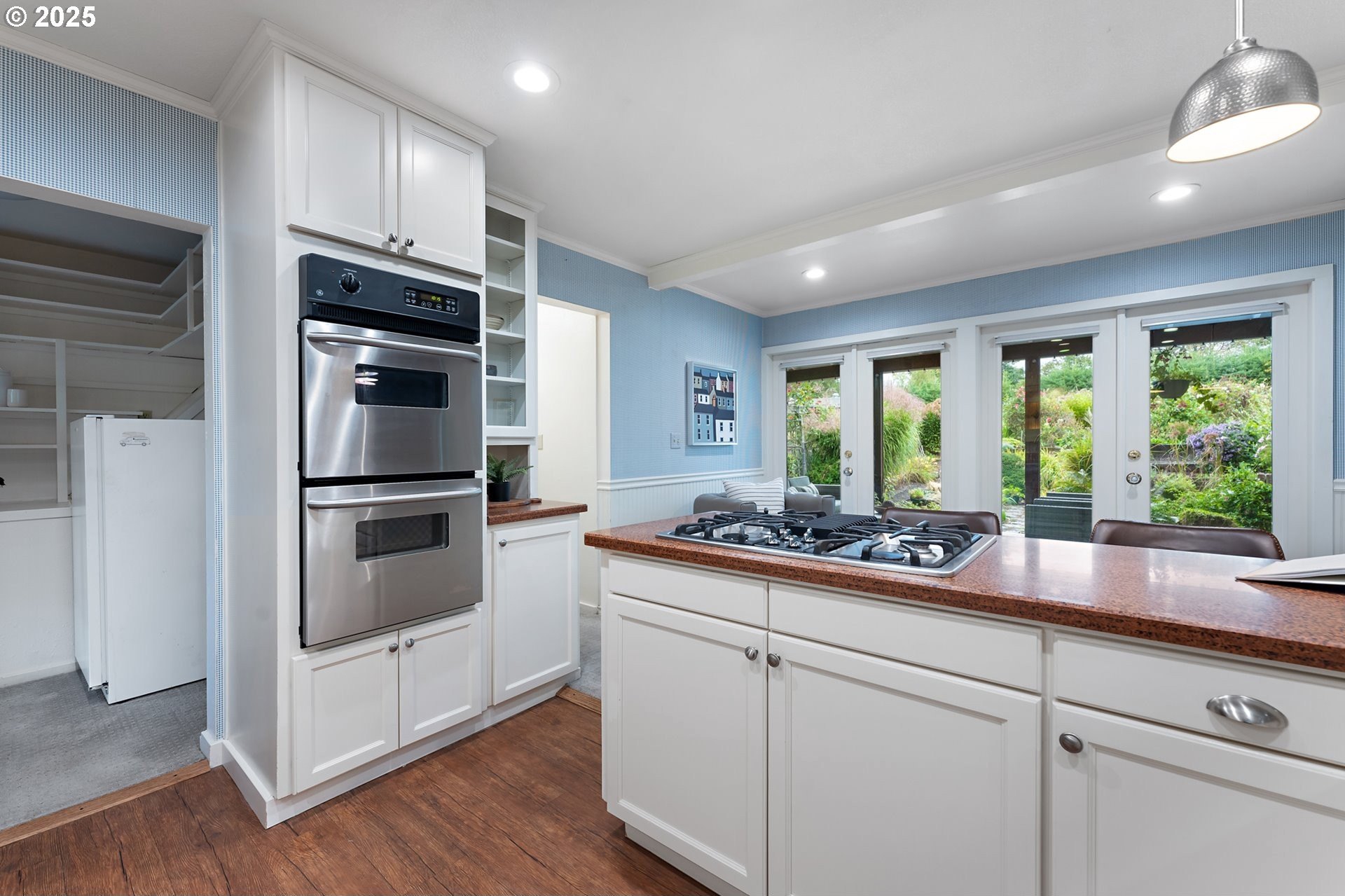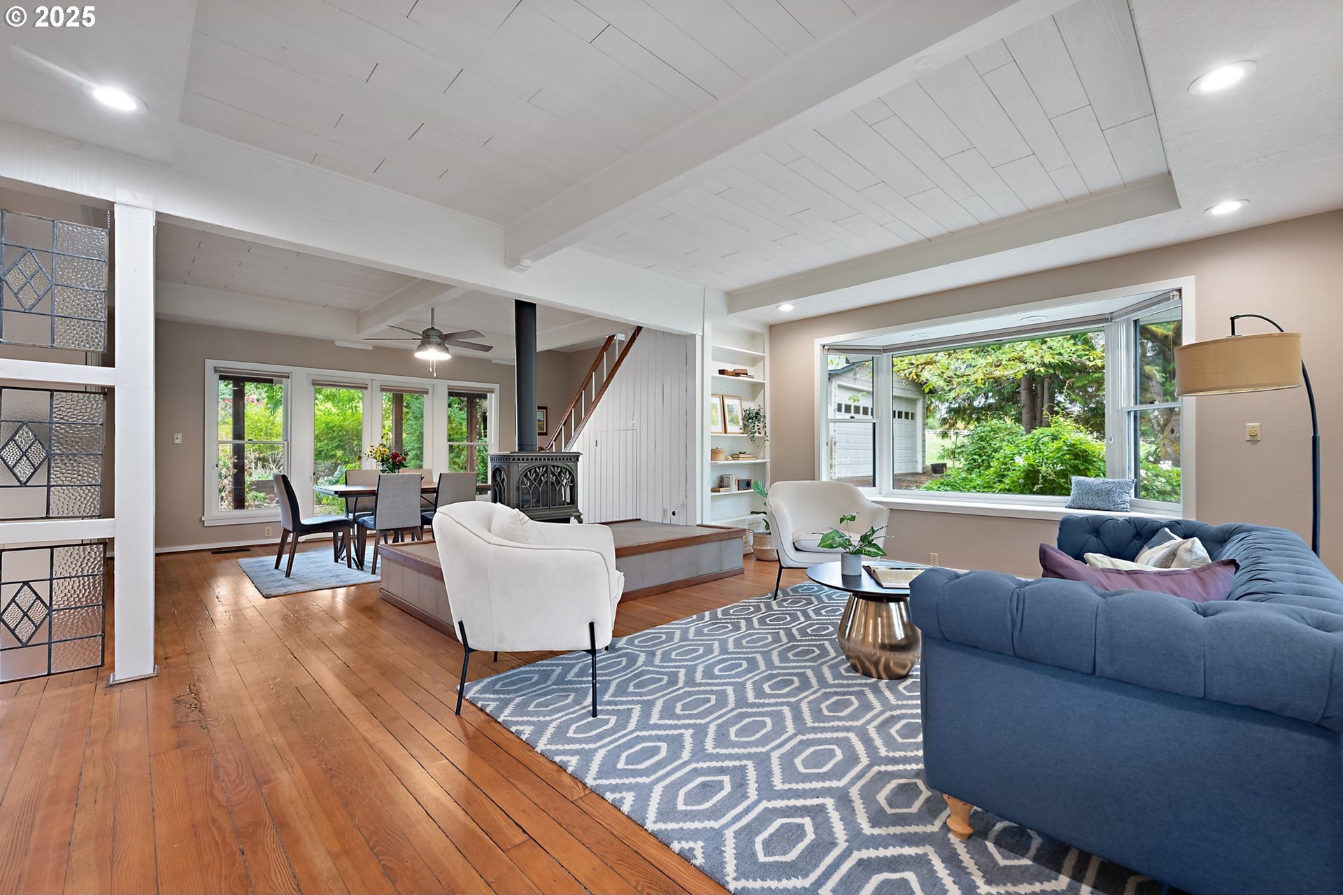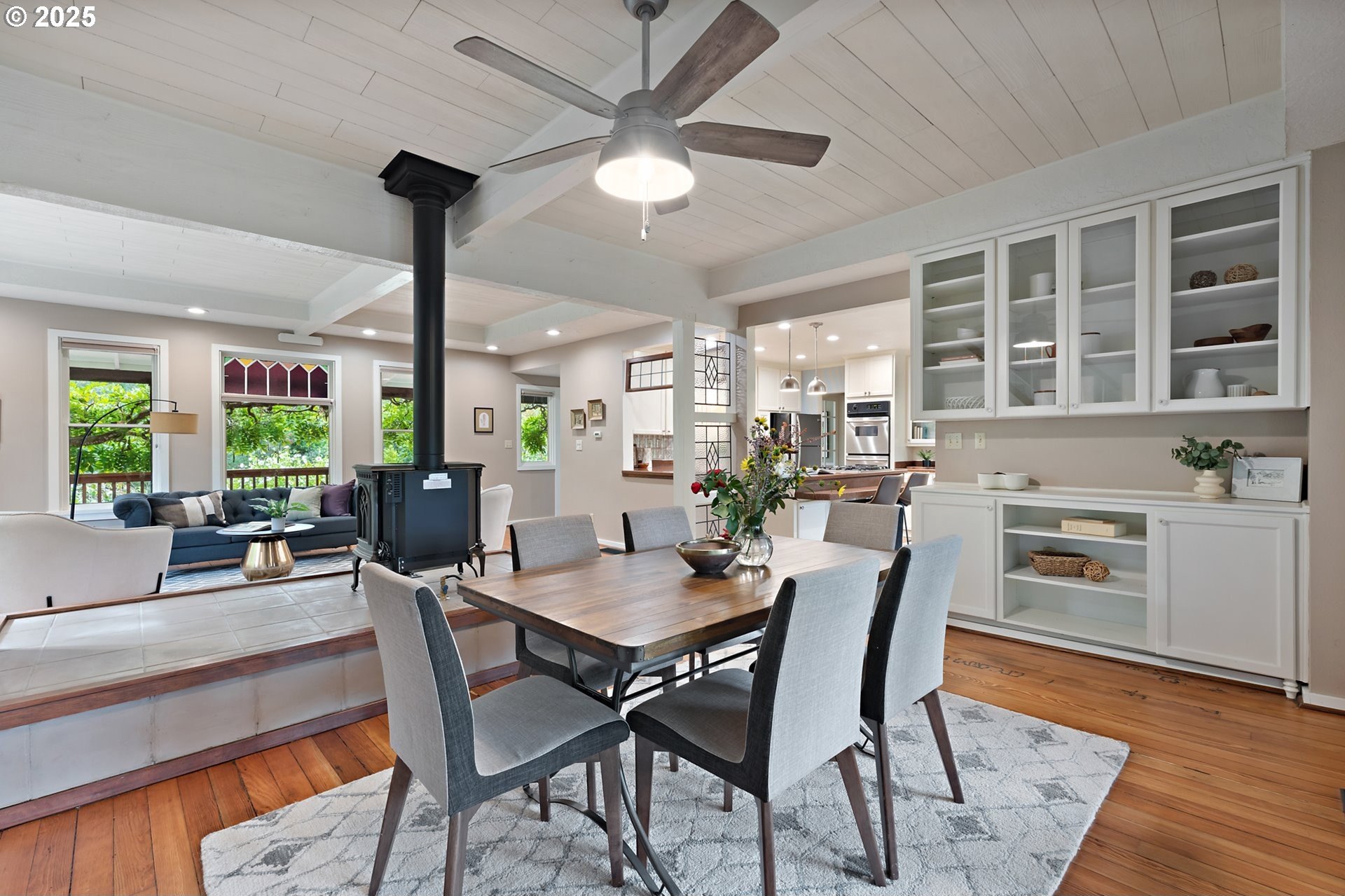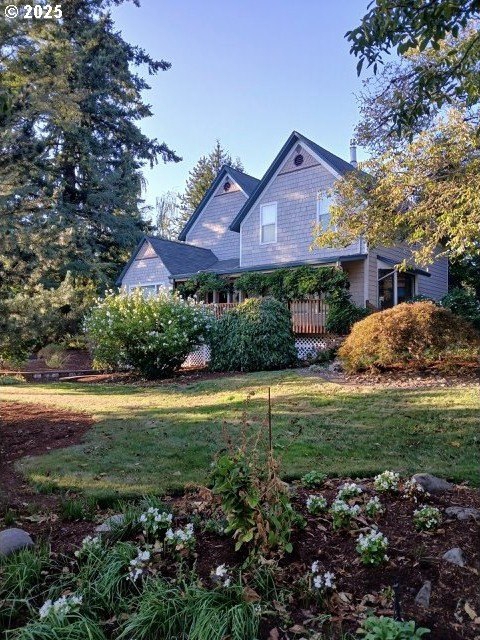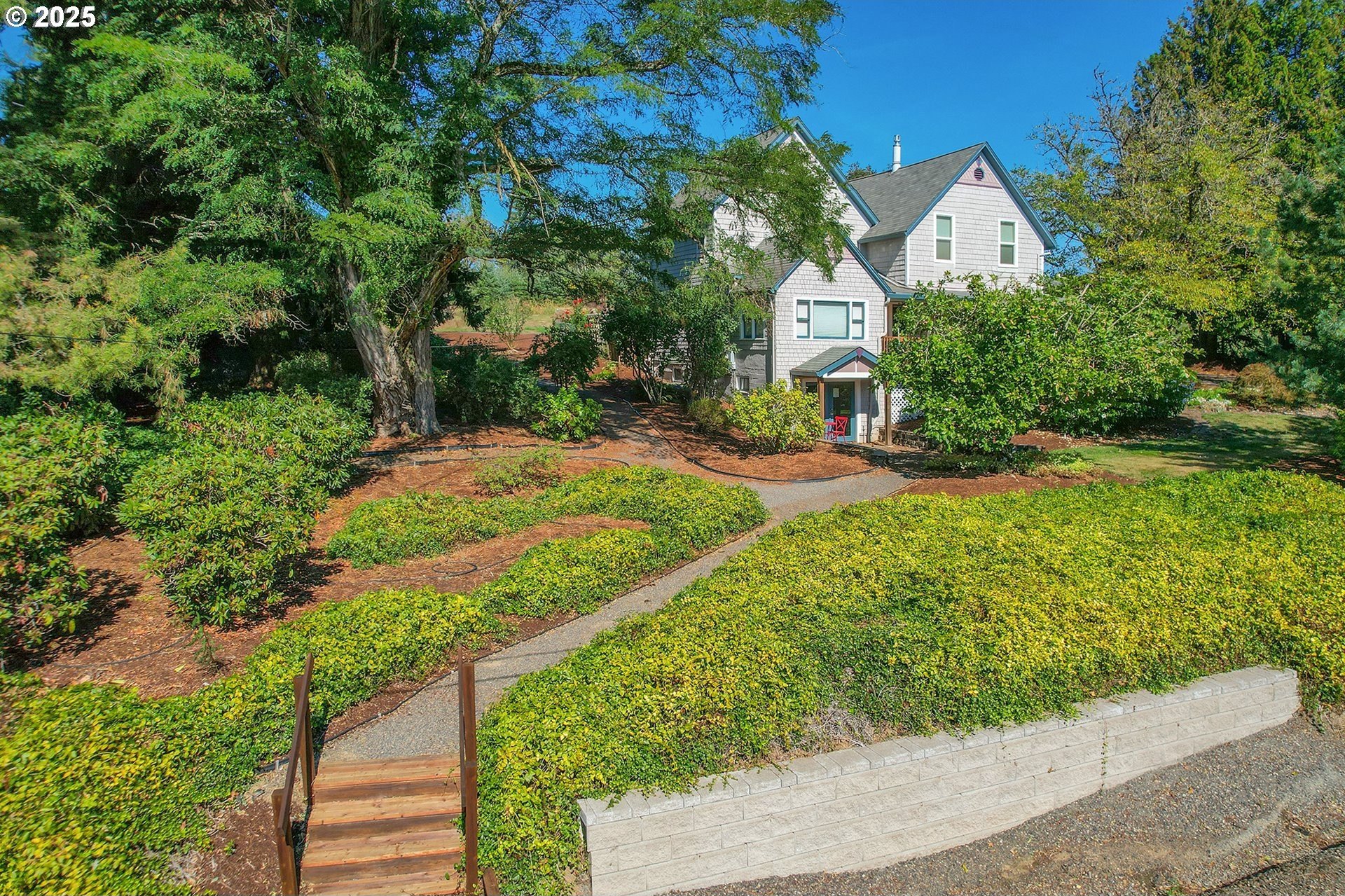Turn of the Century Farmhouse on Over an Acre – One of a KindStep into timeless charm with this beautifully updated turn-of-the-century farmhouse, perfectly situated on more than an acre. The inviting front porch veranda sets the tone, welcoming you into a home that blends classic character with modern comforts.Inside, the open-concept main floor features wood floors, a cozy gas fireplace, and a bay window with views of the lush side garden. A formal dining room with built-ins and French doors flows into a sitting area that opens to an expansive deck—perfect for entertaining while enjoying the landscaped grounds.The kitchen is a chef’s delight with stainless steel appliances, double ovens, refrigerator, and a gas range with downdraft. A butler’s pantry adds extra storage, while a private main-level office with built-ins provides a perfect work-from-home space. A full bath and laundry complete the main level.Upstairs, the spacious primary suite offers garden views and an en-suite bath. Three additional bedrooms, all with wall-to-wall carpet, provide ample space for family or guests. The lower level features a large family room with French doors leading to a patio and the gardens beyond.Outdoors, discover a detached studio with water and electricity—ideal for creative pursuits or hobbies. Gardeners will love the mature landscaping and thoughtfully designed grounds. A double garage and long driveway ensure plenty of parking.This farmhouse is truly one of a kind—combining historic charm, modern updates, and a property that’s as functional as it is beautiful.