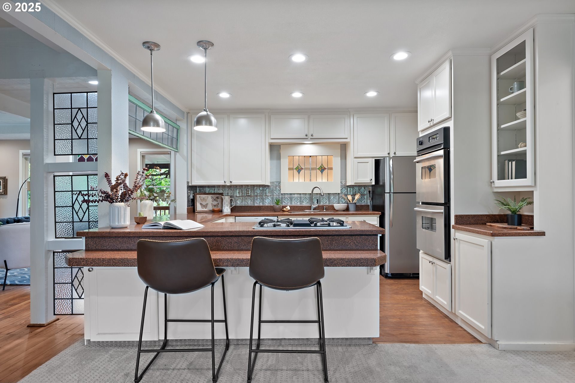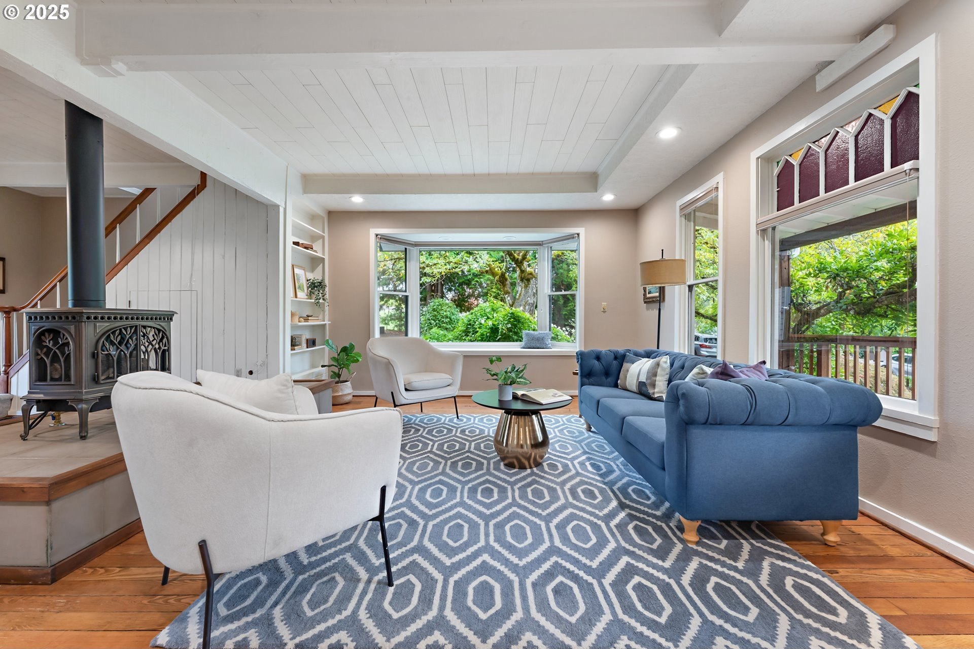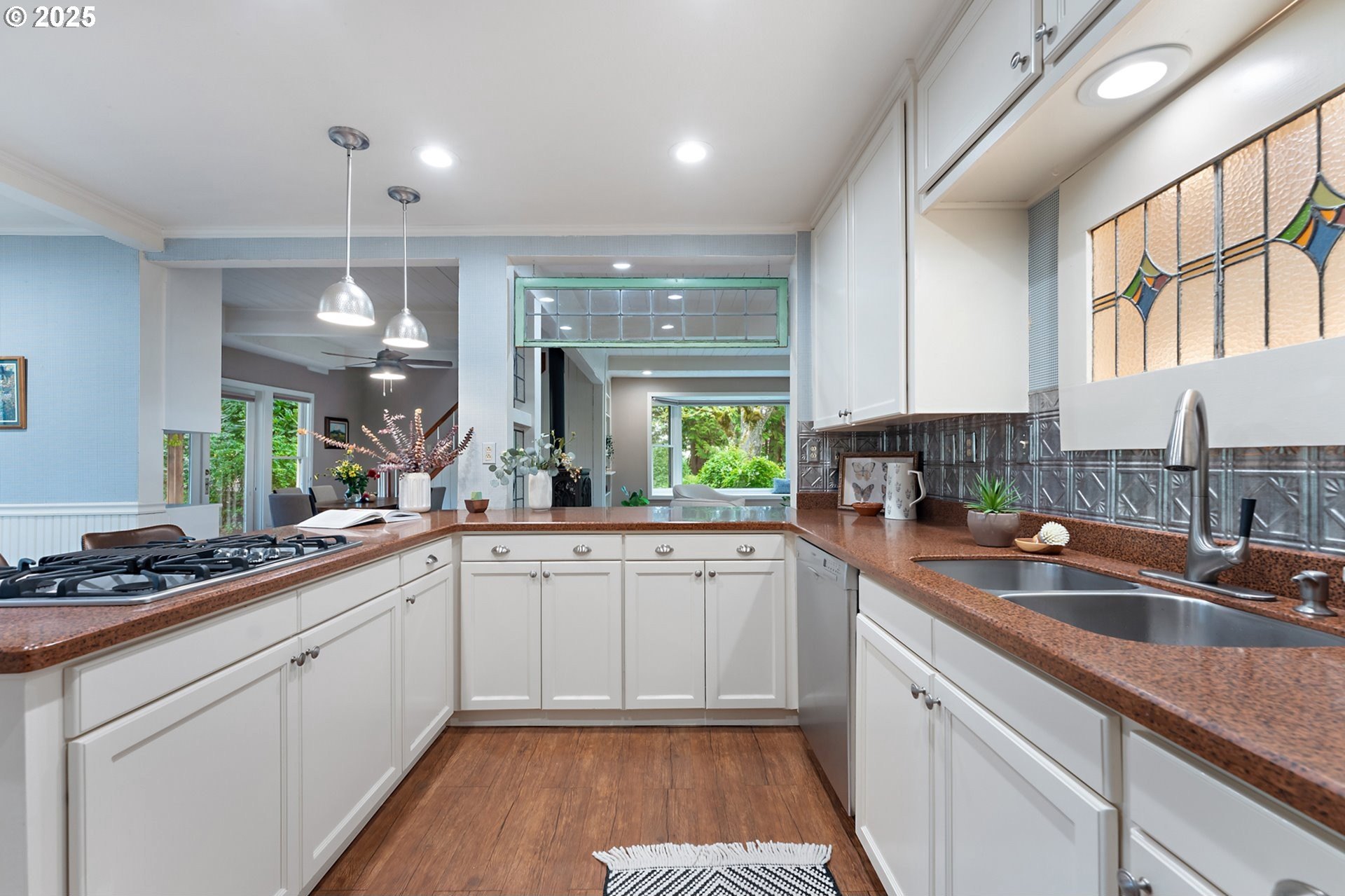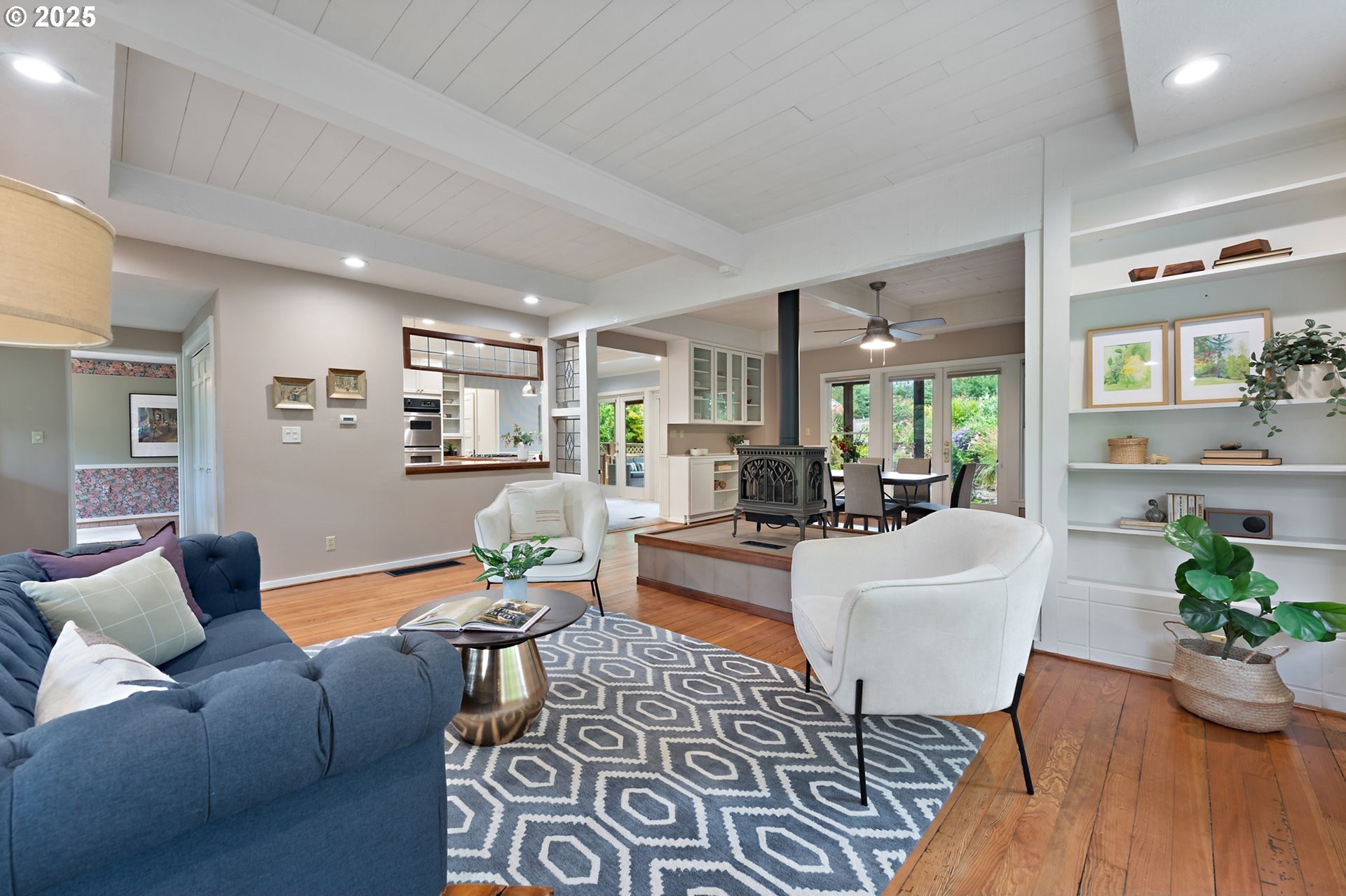 Turn of the Century Farmhouse on Over an Acre – One of a KindStep into timeless charm with this beautifully updated turn-of-the-century farmhouse, perfectly situated on more than an acre. The inviting front porch veranda sets the tone, welcoming you into a home that blends classic character with modern comforts.Inside, the open-concept main floor features wood floors, a cozy gas fireplace, and a bay window with views of the lush side garden. A formal dining room with built-ins and French doors flows into a sitting area that opens to an expansive deck—perfect for entertaining while enjoying the landscaped grounds.The kitchen is a chef’s delight with stainless steel appliances, double ovens, refrigerator, and a gas range with downdraft. A butler’s pantry adds extra storage, while a private main-level office with built-ins provides a perfect work-from-home space. A full bath and laundry complete the main level.Upstairs, the spacious primary suite offers garden views and an en-suite bath. Three additional bedrooms, all with wall-to-wall carpet, provide ample space for family or guests. The lower level features a large family room with French doors leading to a patio and the gardens beyond.Outdoors, discover a detached studio with water and electricity—ideal for creative pursuits or hobbies. Gardeners will love the mature landscaping and thoughtfully designed grounds. A double garage and long driveway ensure plenty of parking.This farmhouse is truly one of a kind—combining historic charm, modern updates, and a property that’s as functional as it is beautiful.