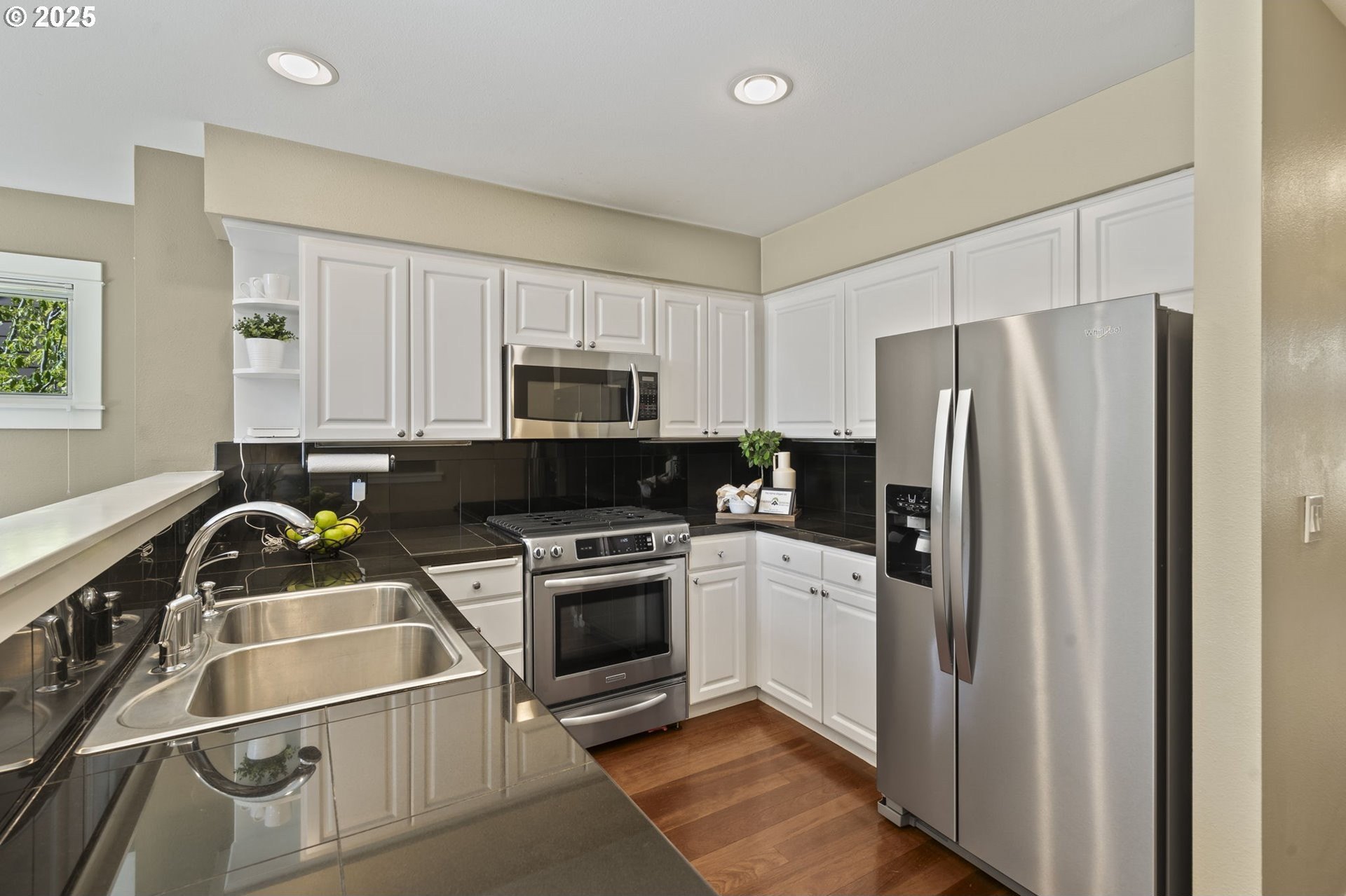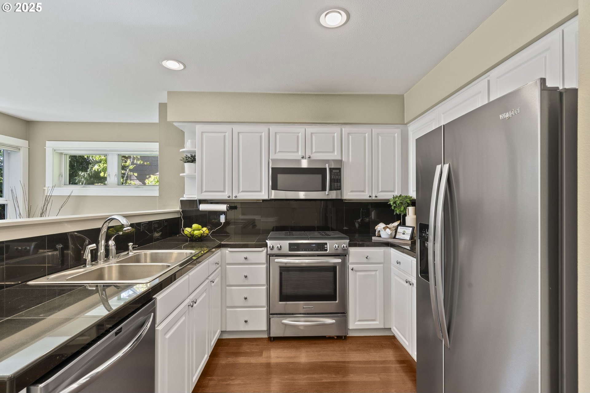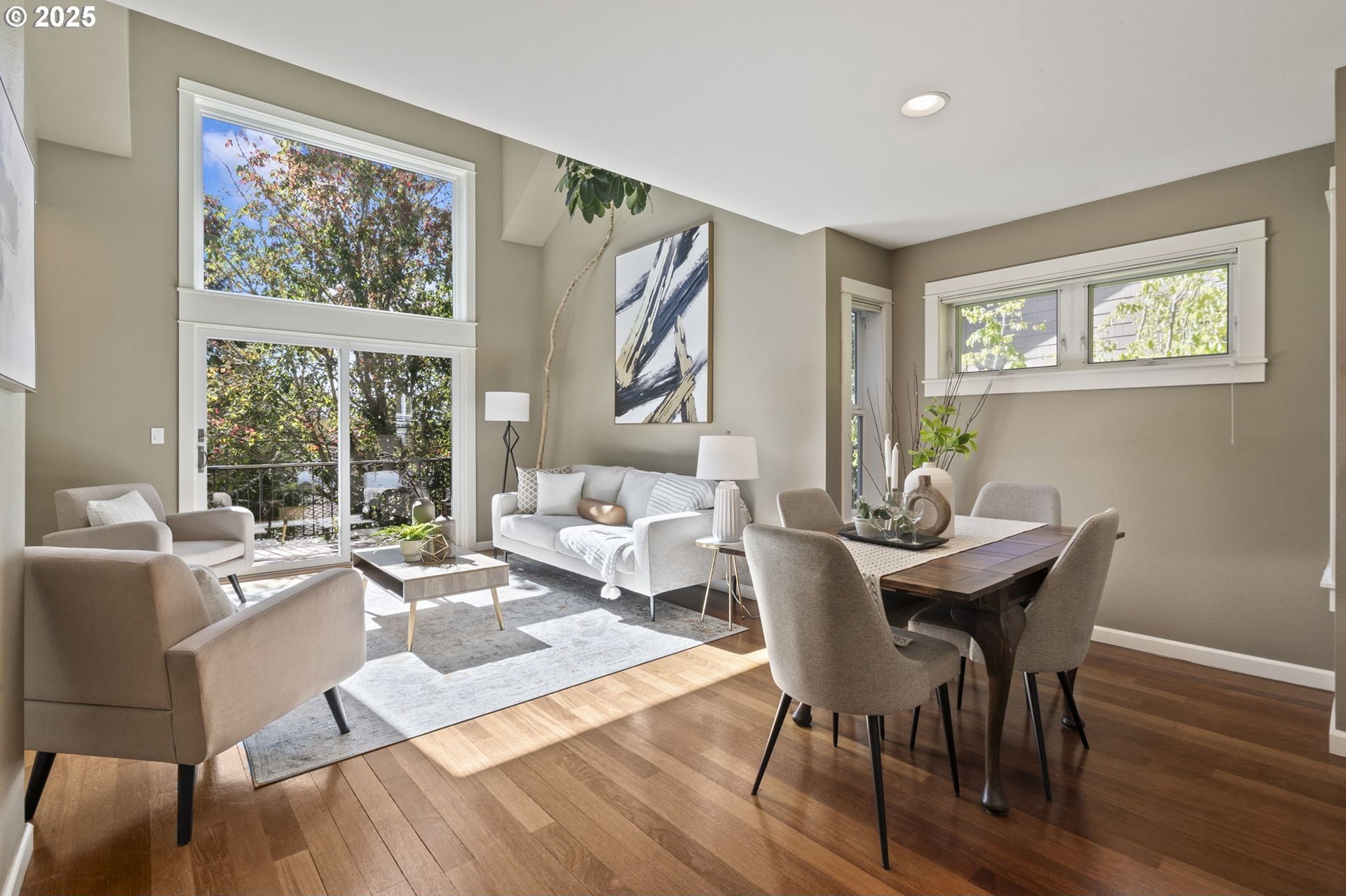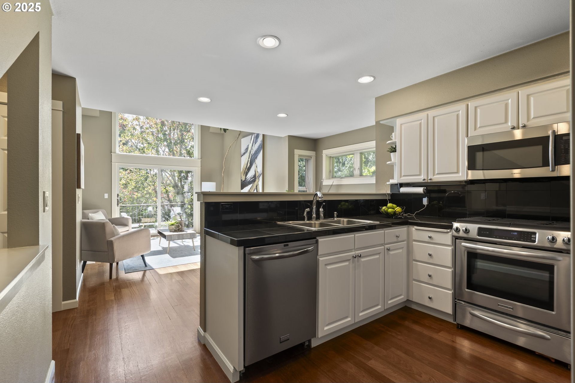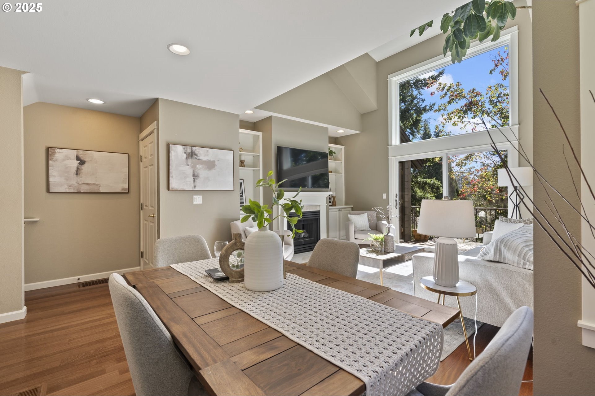 Discover the perfect balance of comfort and convenience in this beautifully maintained end unit townhome on Alder Grove Lane, tucked within the highly sought after Village at Forest Heights community. Natural light floods the interior through skylights and oversized windows, highlighting the vaulted ceilings and warm hardwood floors that welcome you inside.The open and airy main level features a cozy living area with a gas fireplace and custom built-ins, ideal for relaxing or entertaining. Just off the living room, the composite deck provides a peaceful spot surrounded by trees and greenspace, perfect for morning coffee or unwinding at the end of the day. The adjacent kitchen is well equipped with stainless steel appliances, including a gas range, and offers plenty of counter space for everyday cooking.A full bedroom and bathroom on the main floor add flexibility, great for guests, a home office, or multigenerational living. Upstairs, the spacious primary suite includes a walk-in closet, a dedicated laundry area, and a versatile office nook. The ensuite bath is designed with comfort in mind, featuring a soaking tub, walk-in shower, and private water closet.Additional space can be found in the third bedroom or bonus room, thoughtfully added behind the garage and complete with a generous walk-in closet. The garage itself is finished with epoxy flooring and built-in cabinetry for even more organization.As part of the Forest Heights community, enjoy access to 6 miles of walking trails, 200 acres of preserved common area, and close proximity to top-rated schools, Forest Park Trails, Nike, Intel, and more.This is the one you’ve been waiting for, move in and start enjoying all that Forest Heights has to offer! [Home Energy Score = 9. HES Report at https://rpt.greenbuildingregistry.com/hes/OR10236607]