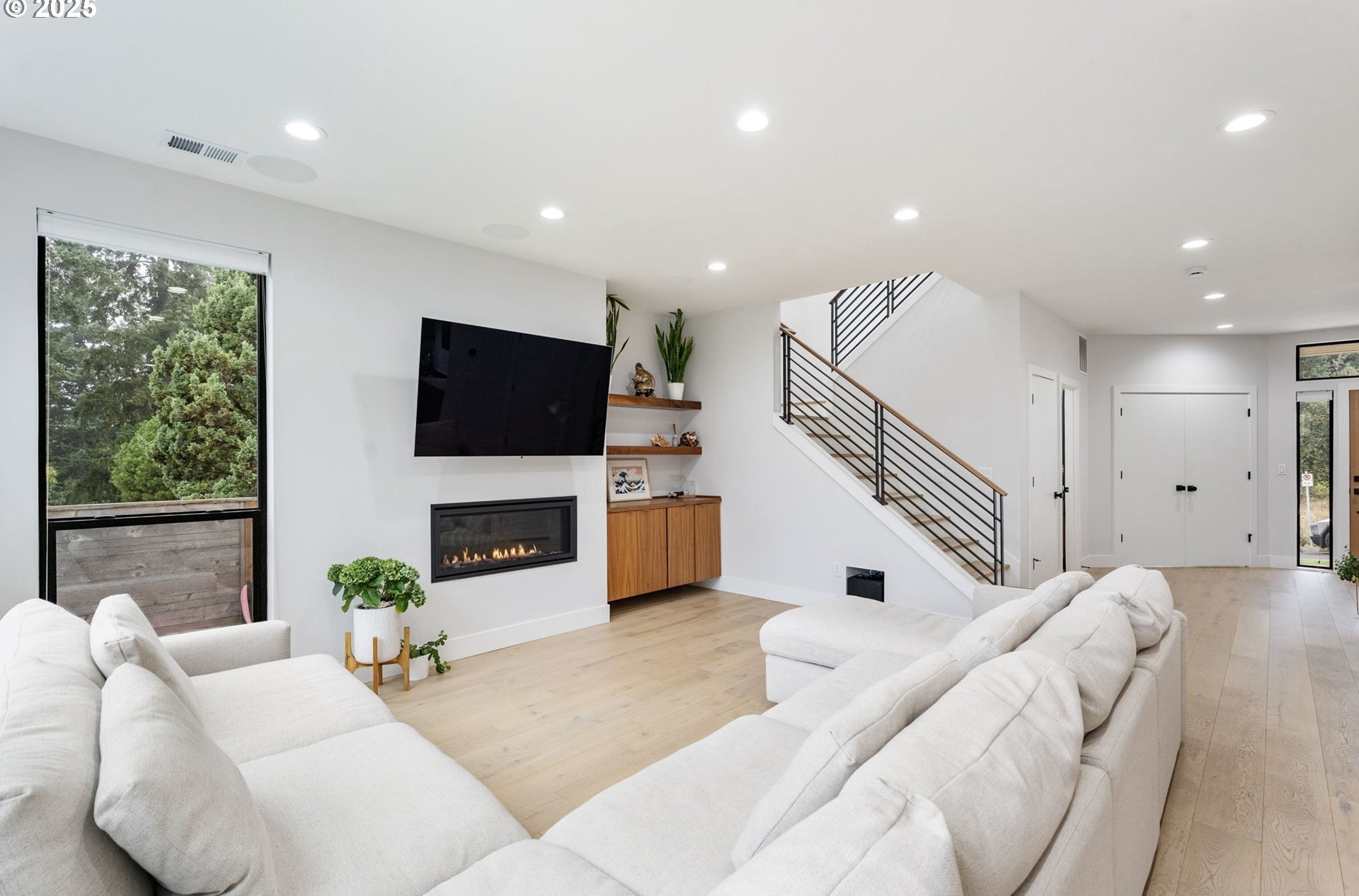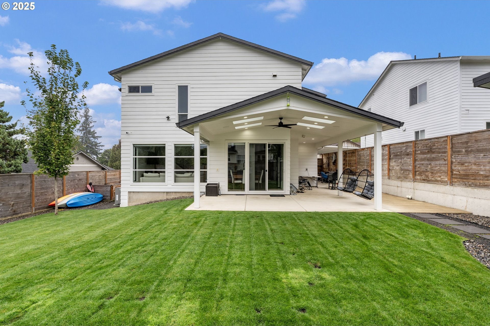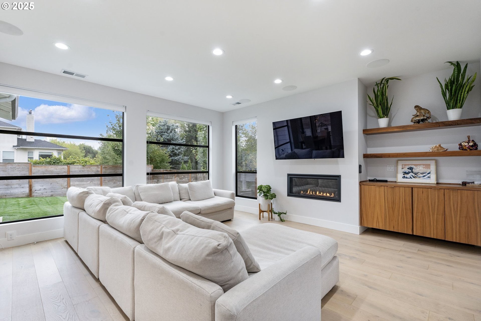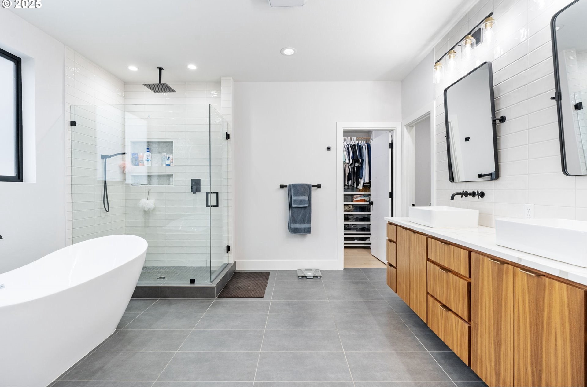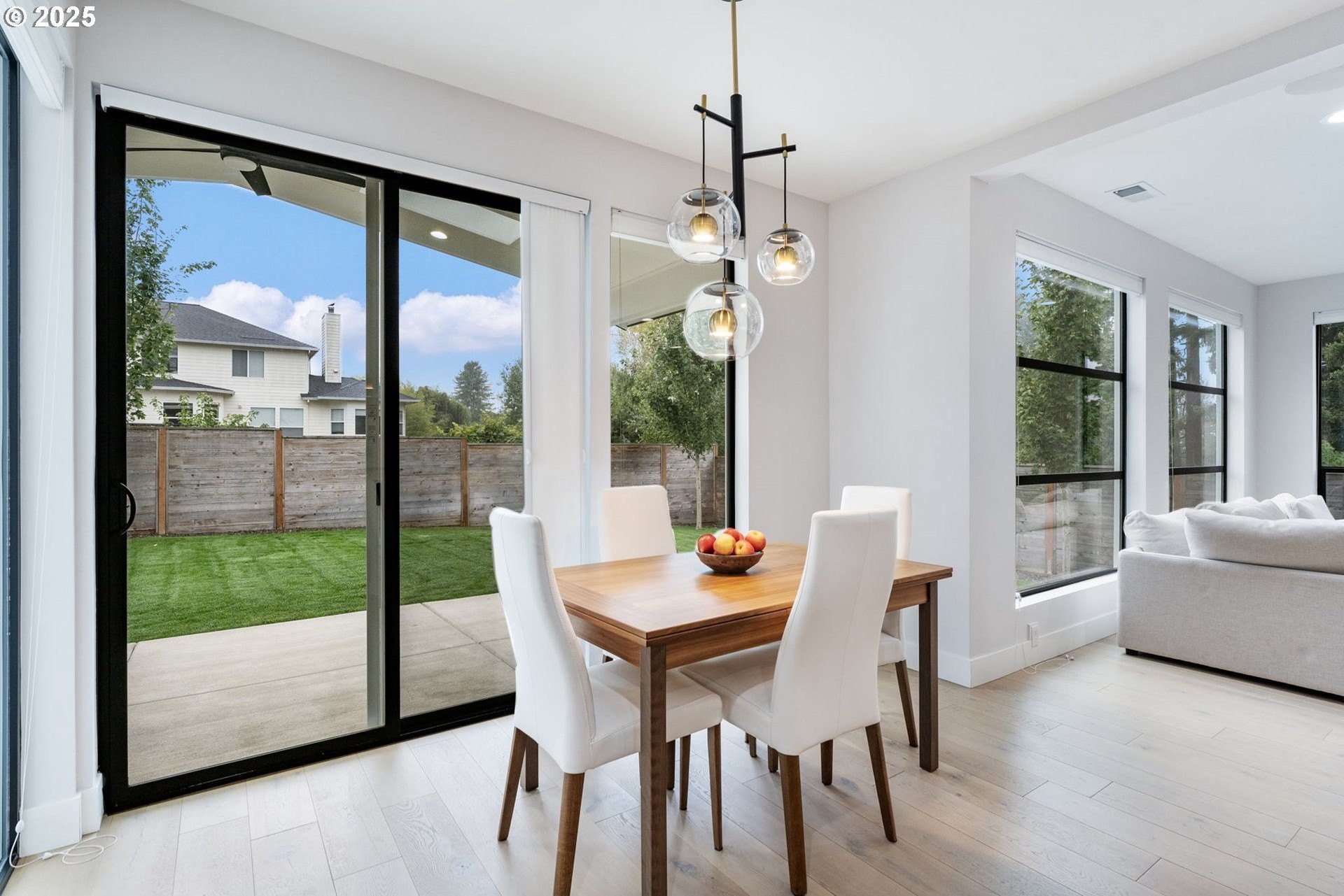 Must see! High end modern custom newer construction home on a quiet street. With many upgrades and custom touches throughout including heated tile floors in main and hall bathroom, custom cabinets, built-ins, engineered hardwood floors throughout, GE Cafe appliances, large walk-in pantry, 9ft ceilings upstairs and downstairs including vaulted main, metal railings, high efficiency 96%+ gas furnace, tankless gas water heater, electric car charger, and covered patio with skylights. Excellent open floorplan with office/bedroom on main floor and 4 bedrooms upstairs. Large fenced yard with sprinkler system and room for boat parking on the side of the garage. [Home Energy Score = 6. HES Report at https://rpt.greenbuildingregistry.com/hes/OR10242200]