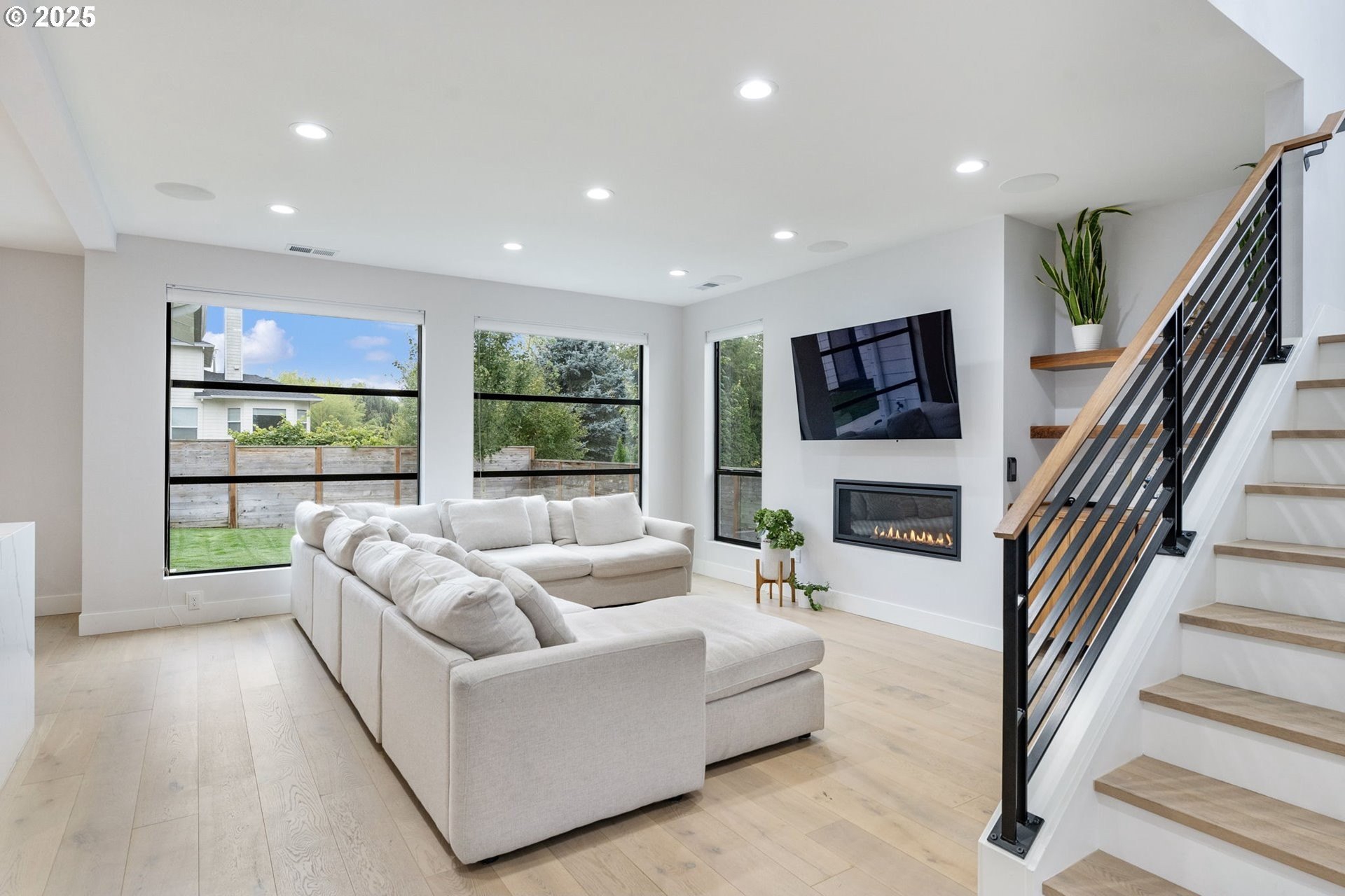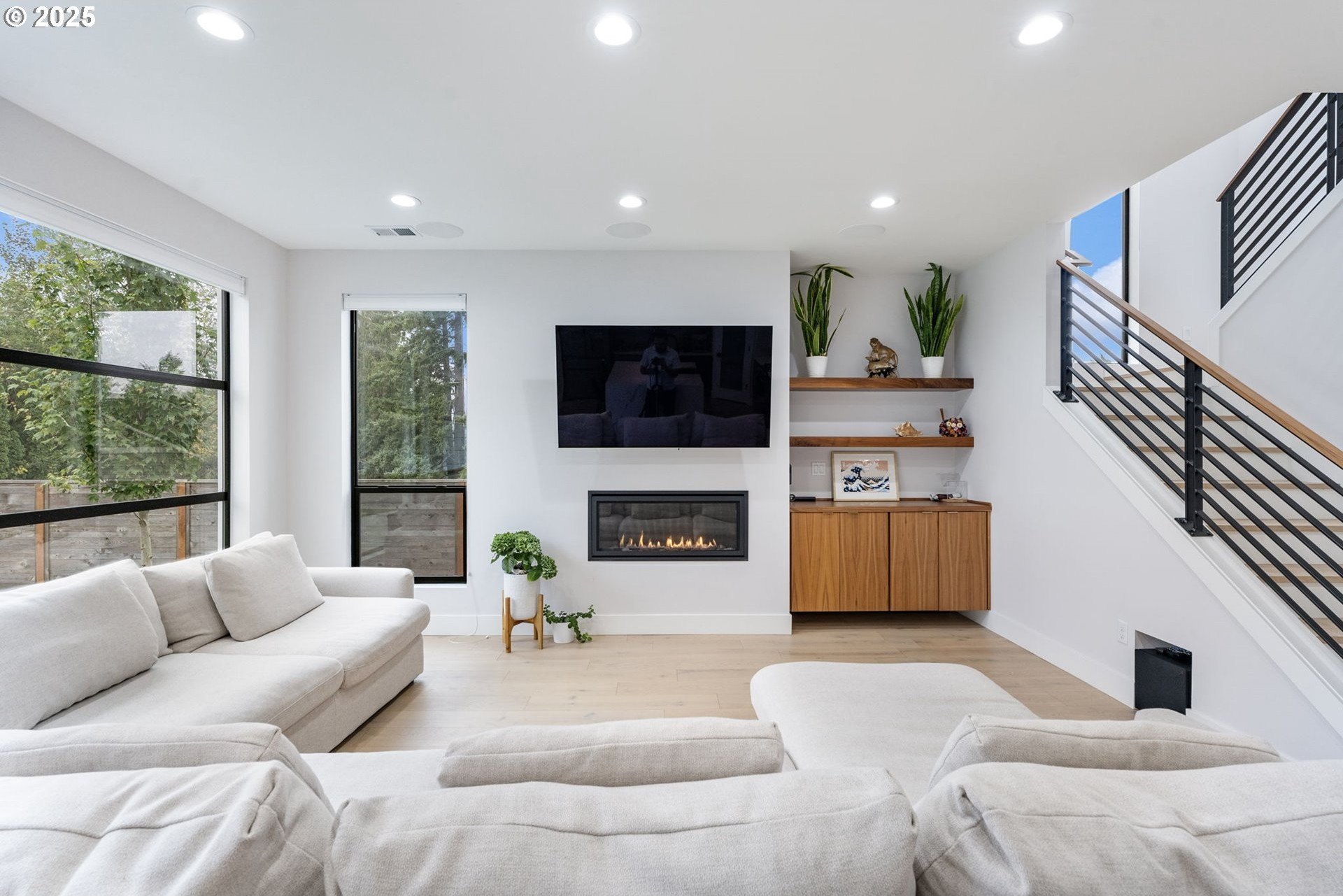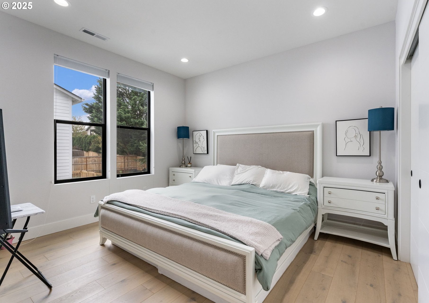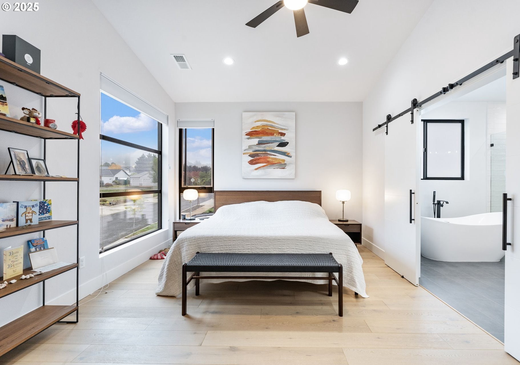 Must see! High end modern custom newer construction home on a quiet street. With many upgrades and custom touches throughout including heated tile floors in main and hall bathroom, custom cabinets, built-ins, engineered hardwood floors throughout, GE Cafe appliances, large walk-in pantry, 9ft ceilings upstairs and downstairs including vaulted main, metal railings, high efficiency 96%+ gas furnace, tankless gas water heater, electric car charger, and covered patio with skylights. Excellent open floorplan with office/bedroom on main floor and 4 bedrooms upstairs. Large fenced yard with sprinkler system and room for boat parking on the side of the garage. [Home Energy Score = 6. HES Report at https://rpt.greenbuildingregistry.com/hes/OR10242200]
