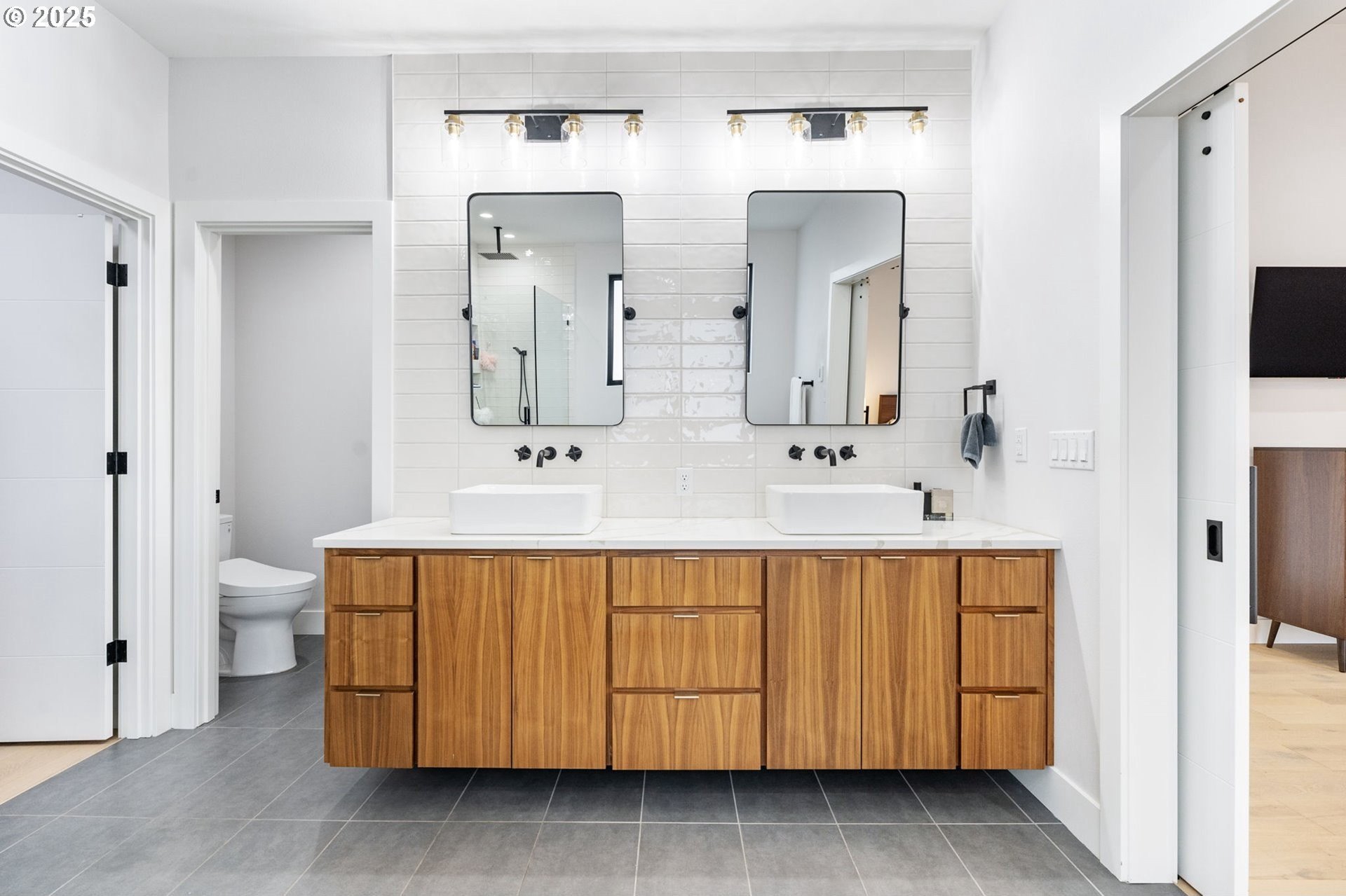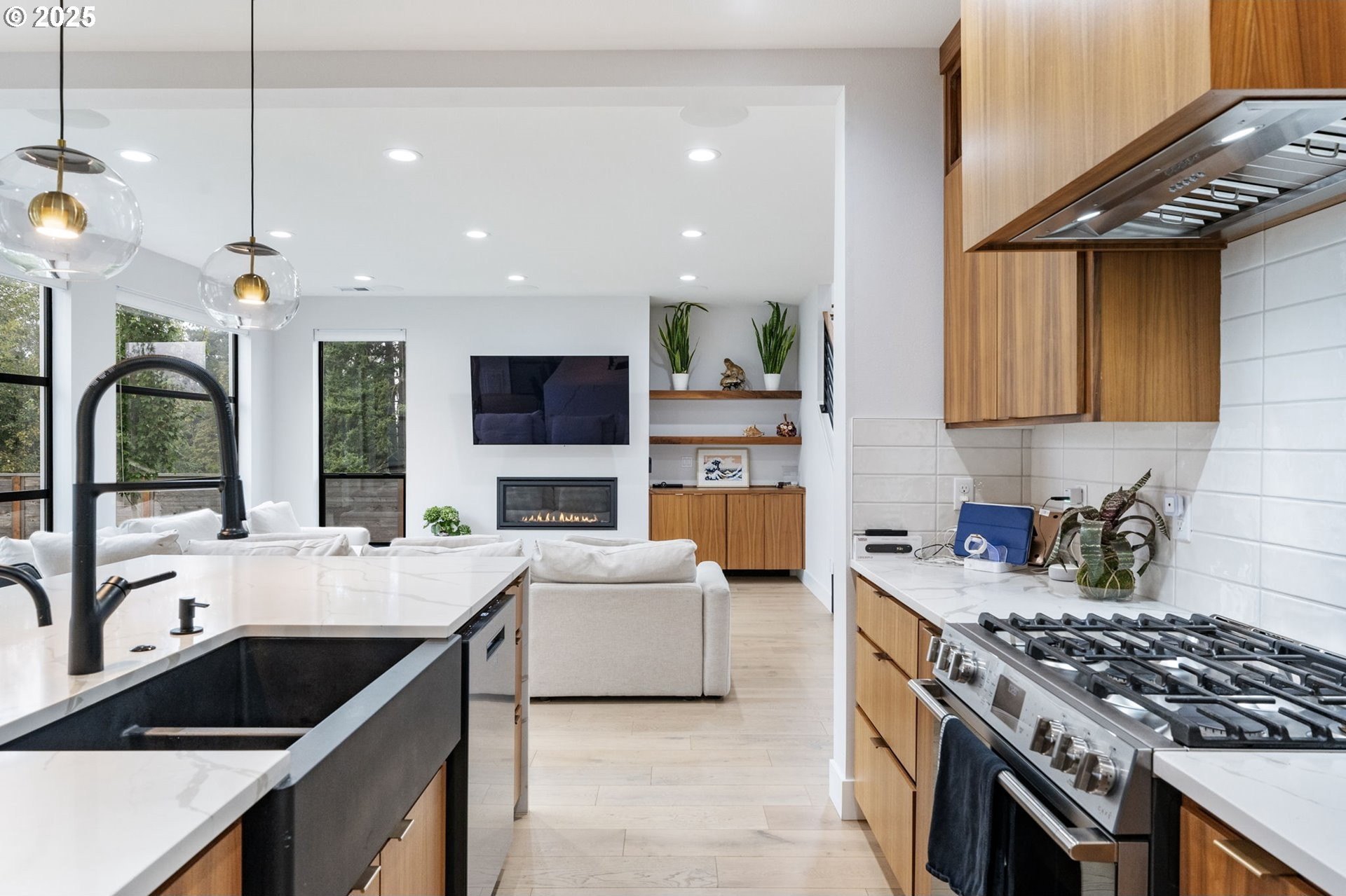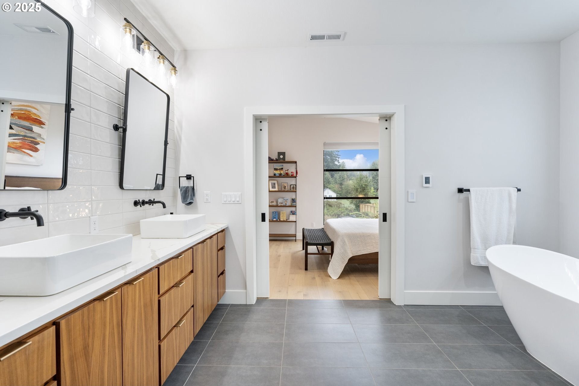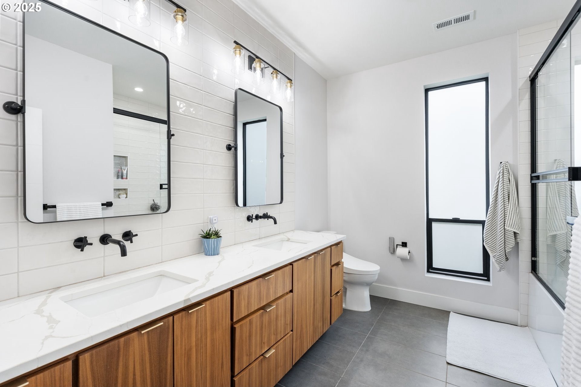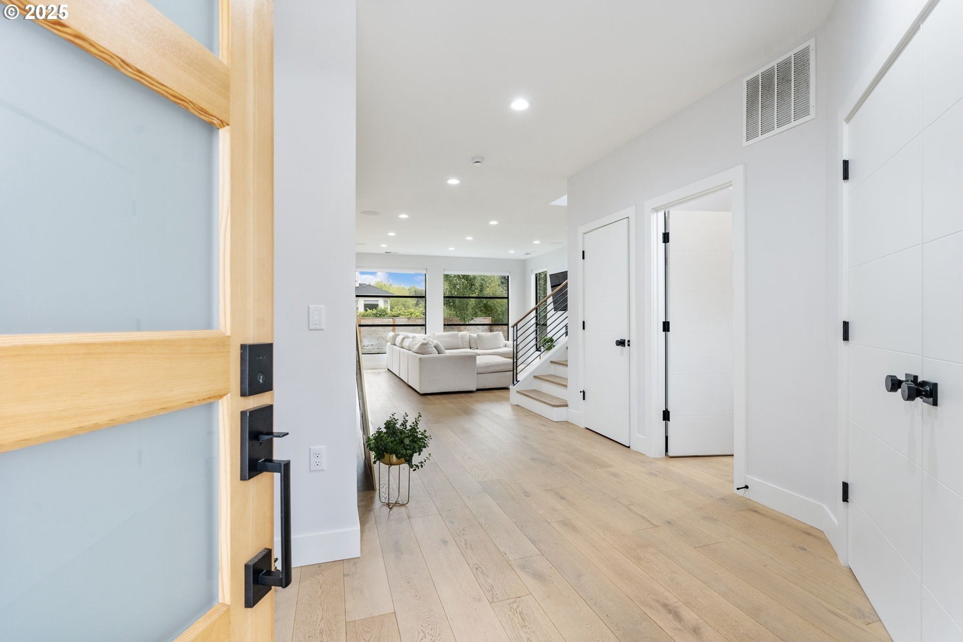 Must see! High end modern custom newer construction home on a quiet street. With many upgrades and custom touches throughout including heated tile floors in main and hall bathroom, custom cabinets, built-ins, engineered hardwood floors throughout, GE Cafe appliances, large walk-in pantry, 9ft ceilings upstairs and downstairs including vaulted main, metal railings, high efficiency 96%+ gas furnace, tankless gas water heater, electric car charger, and covered patio with skylights. Excellent open floorplan with office/bedroom on main floor and 4 bedrooms upstairs. Large fenced yard with sprinkler system and room for boat parking on the side of the garage. [Home Energy Score = 6. HES Report at https://rpt.greenbuildingregistry.com/hes/OR10242200]