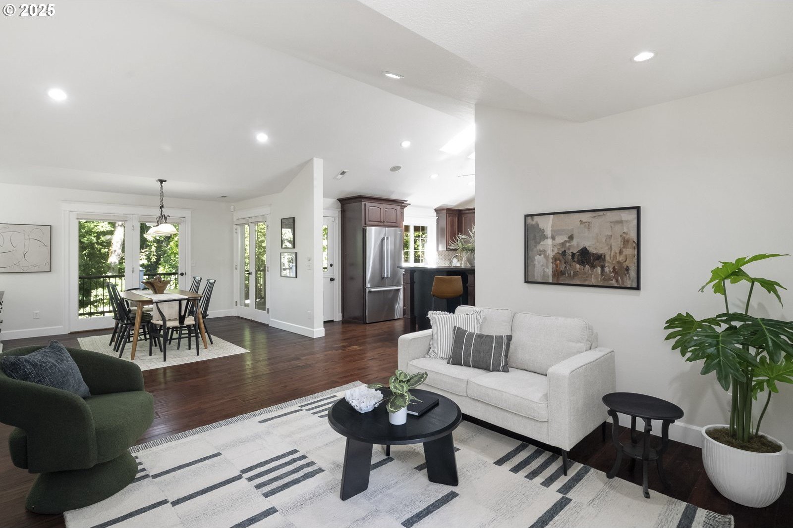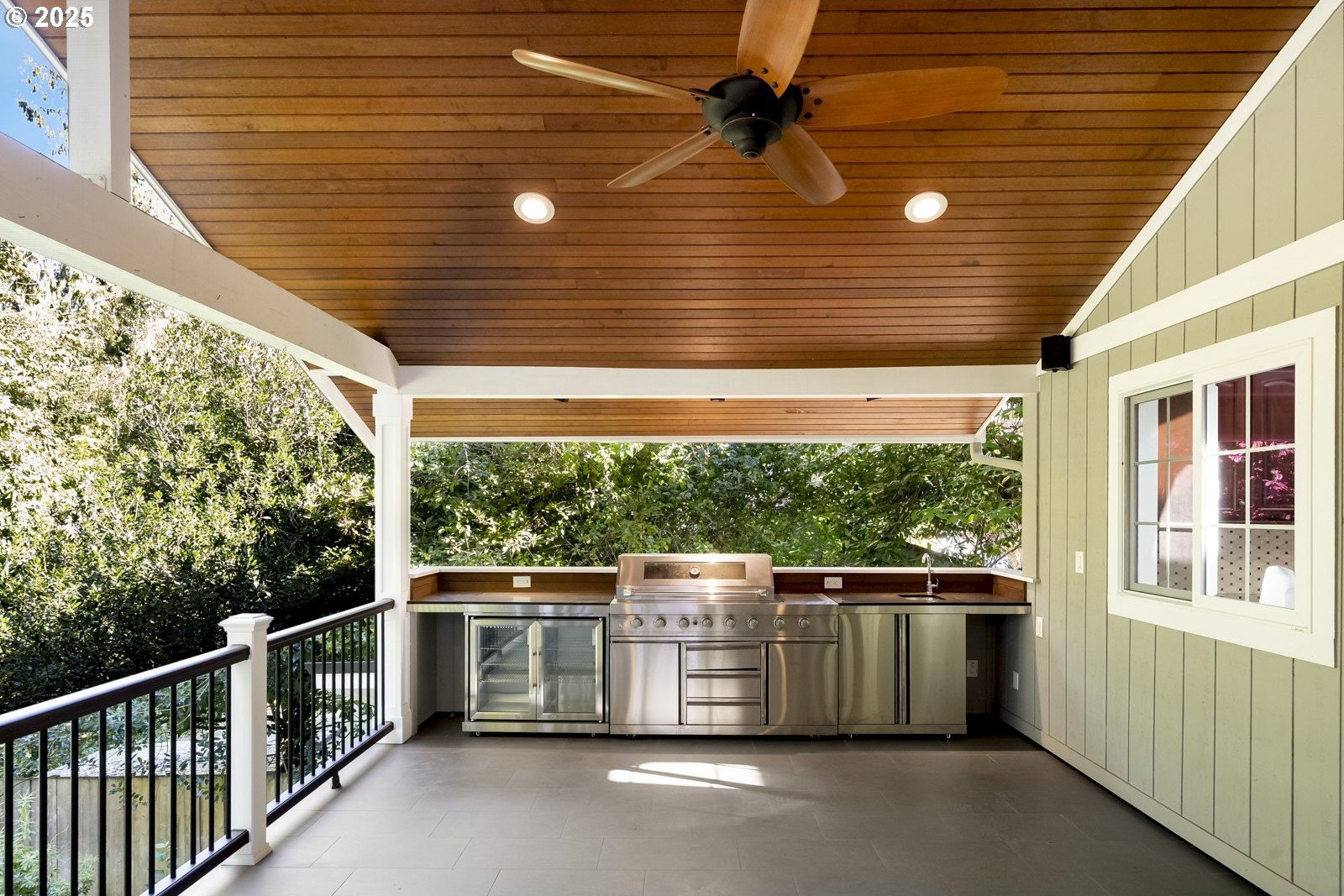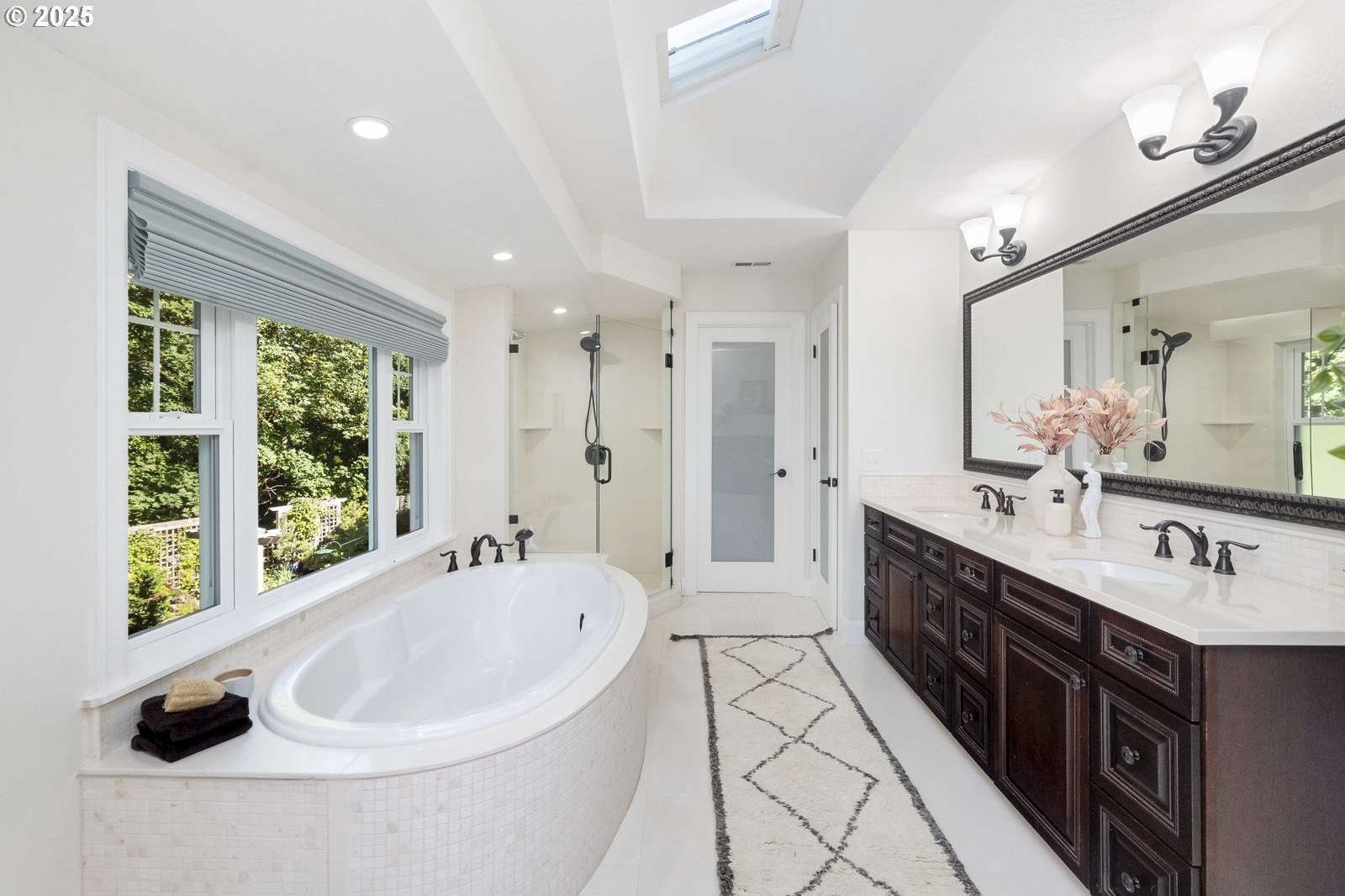 In the heart of First Addition, this home feels both connected and tucked away. Stroll to coffee, the market, or dinner in town—then return to a private backyard that borders Tryon Creek State Park.The open kitchen with vaulted ceilings and treetop views extends to a covered, four-season deck with its own grill and prep area—an outdoor kitchen perfect for year-round dining and entertaining.Upstairs, the primary suite offers a true retreat with a soaking tub, fireplace, walk-in closet, and peaceful views.The lower level adds flexibility with fresh wool carpet, two bedrooms with courtyard access, a second kitchen, and a cozy living room with its own fireplace—ideal for guests, multigenerational living, or movie nights. A dedicated office and separate-entry laundry make everyday life convenient.Outside, the thoughtfully designed landscaping creates spaces to gather or pause and reflect, with calming water features, a fire pit, saltwater hot tub, and a serene woodland backdrop.Well maintained and thoughtfully designed, this First Addition home pairs a prime location with a restorative connection to nature.