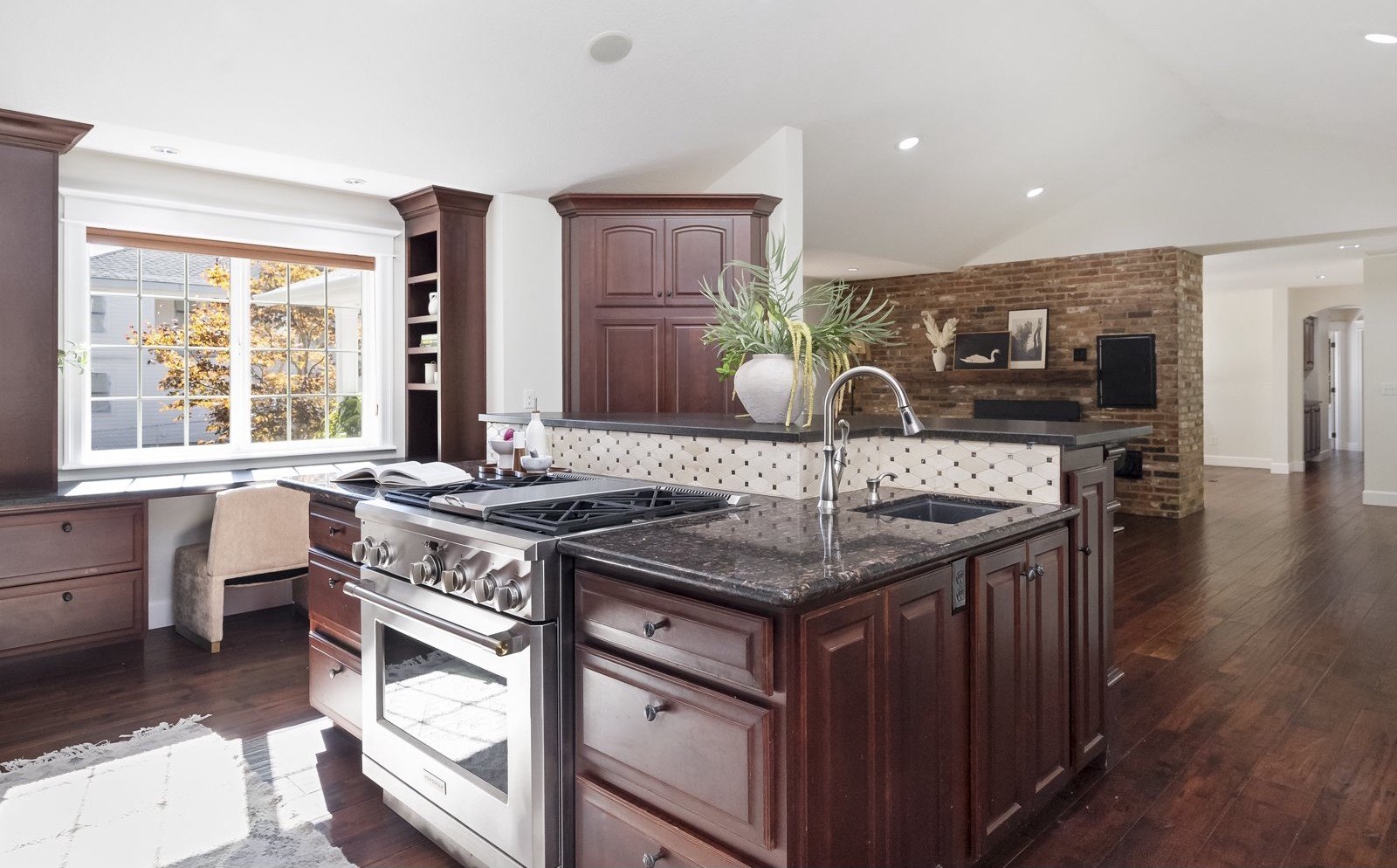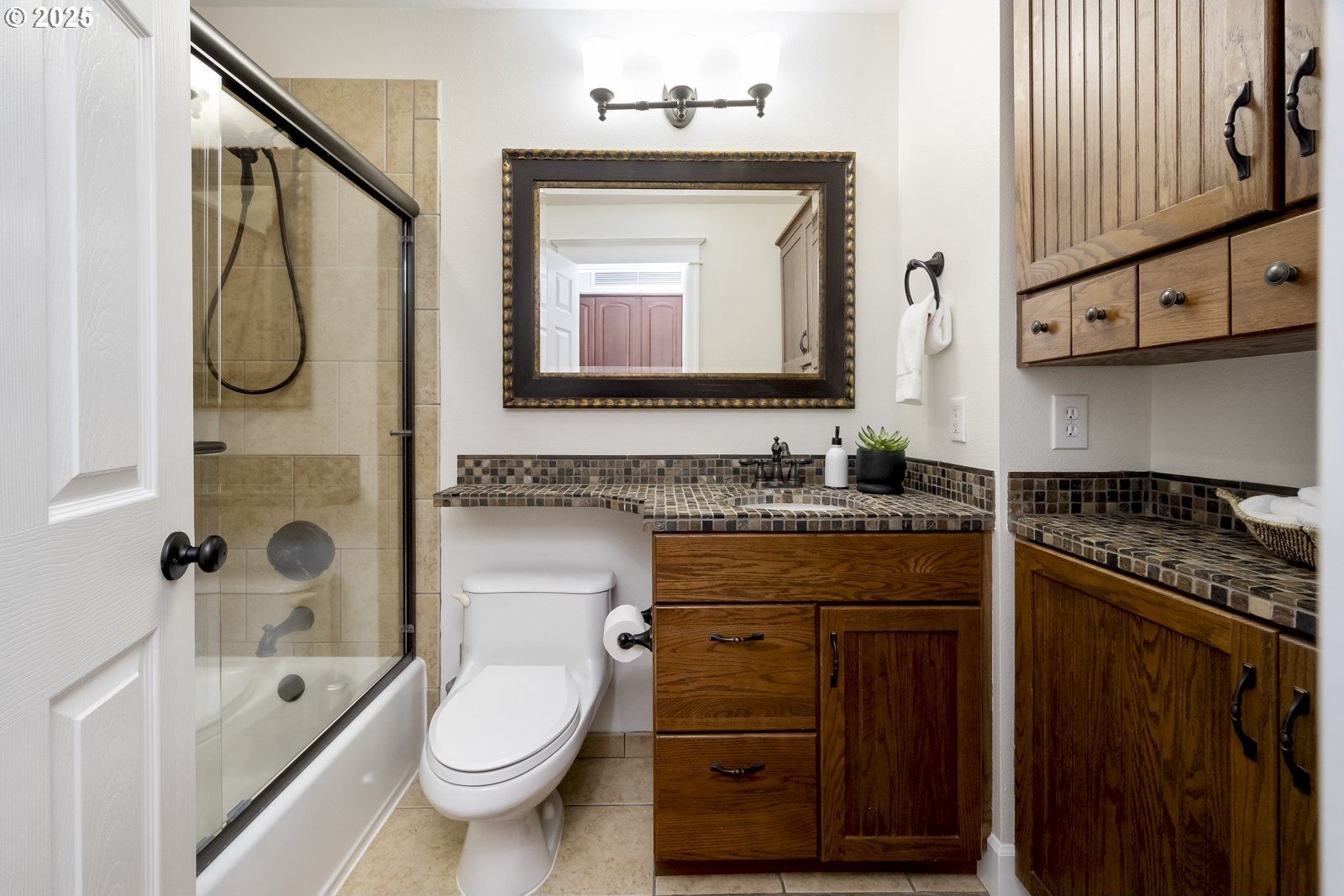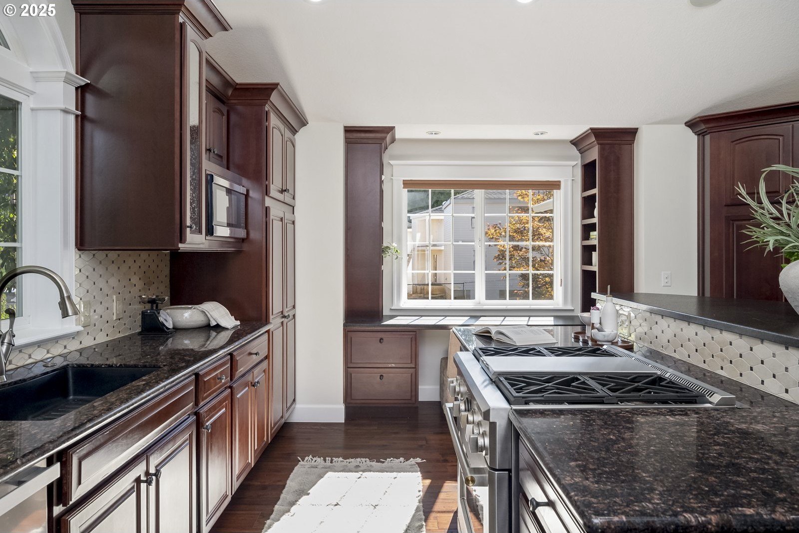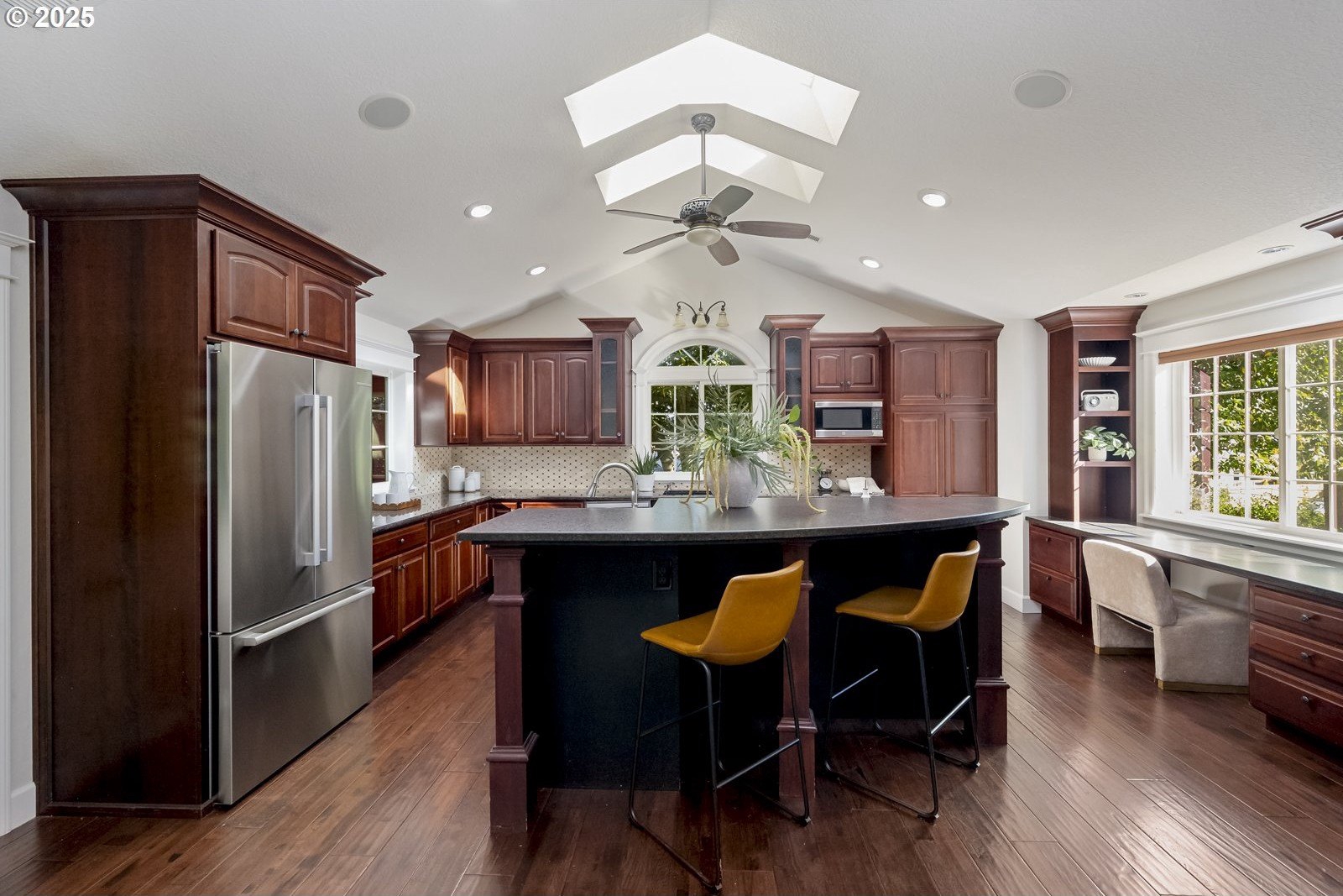 In the heart of First Addition, this home feels both connected and tucked away. Stroll to coffee, the market, or dinner in town—then return to a private backyard that borders Tryon Creek State Park.The open kitchen with vaulted ceilings and treetop views extends to a covered, four-season deck with its own grill and prep area—an outdoor kitchen perfect for year-round dining and entertaining.Upstairs, the primary suite offers a true retreat with a soaking tub, fireplace, walk-in closet, and peaceful views.The lower level adds flexibility with fresh wool carpet, two bedrooms with courtyard access, a second kitchen, and a cozy living room with its own fireplace—ideal for guests, multigenerational living, or movie nights. A dedicated office and separate-entry laundry make everyday life convenient.Outside, the thoughtfully designed landscaping creates spaces to gather or pause and reflect, with calming water features, a fire pit, saltwater hot tub, and a serene woodland backdrop.Well maintained and thoughtfully designed, this First Addition home pairs a prime location with a restorative connection to nature.