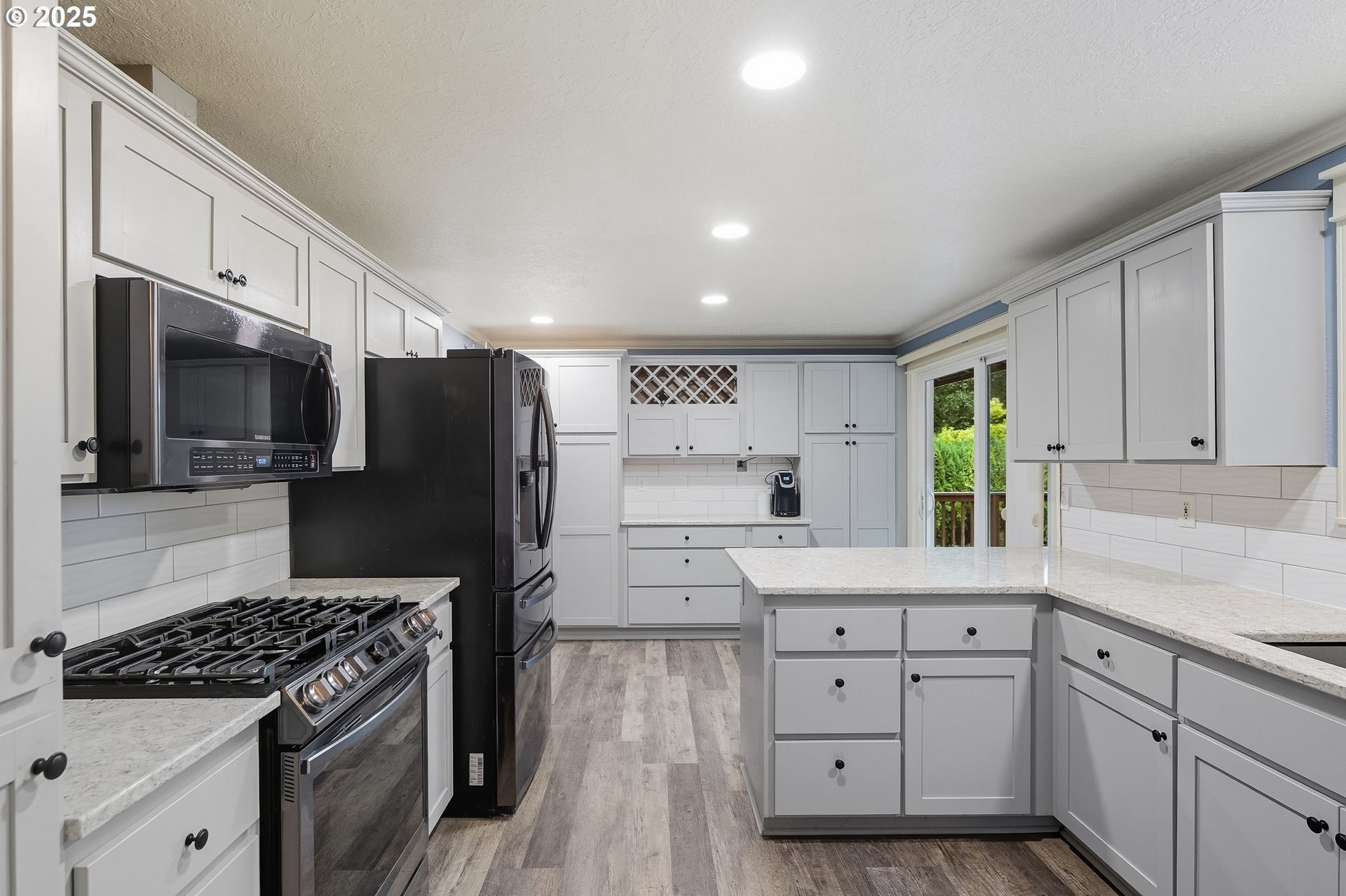 Tucked away at the end of a quiet cul-de-sac, this versatile home offers flexible living with an additional downstairs living area complete with a bedroom, cozy fireplace, and a second kitchen—ideal for multi-generational living, an ADU, or rental income potential (buyer to do due diligence). Thoughtful updates include a new roof, siding stain/paint, and a power-saving smart water heater (2017), plus a new HVAC and A/C system in 2021 for peace of mind. The remodeled upstairs kitchen is a true highlight, featuring quartz counters, updated cabinetry, a full-height tile backsplash, undermount sink, and sleek black stainless steel appliances. Storage is abundant throughout, and the layout provides both comfort and flexibility for a variety of lifestyles. Outdoors, enjoy a spacious 22’ x 14’ deck, water feature, greenhouse, chicken coop, raised garden beds, and multiple fishponds. The property backs to greenspace with a fully usable field, offering a private, natural buffer and space to spread out. Conveniently located near George Fox University, Chehalem Aquatic Center, schools, and parks, this home blends modern updates, unique amenities, and endless possibilities in a peaceful neighborhood setting.