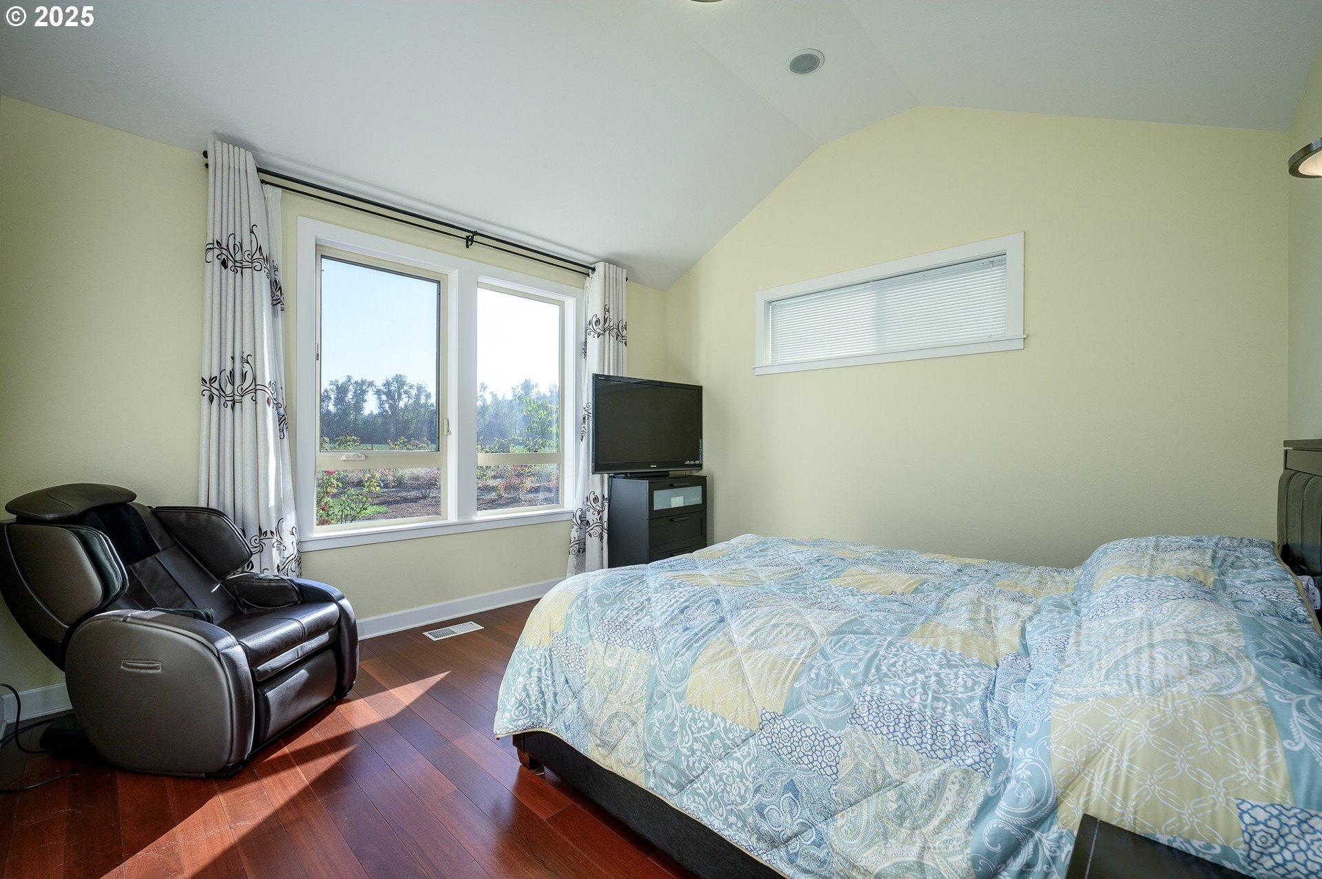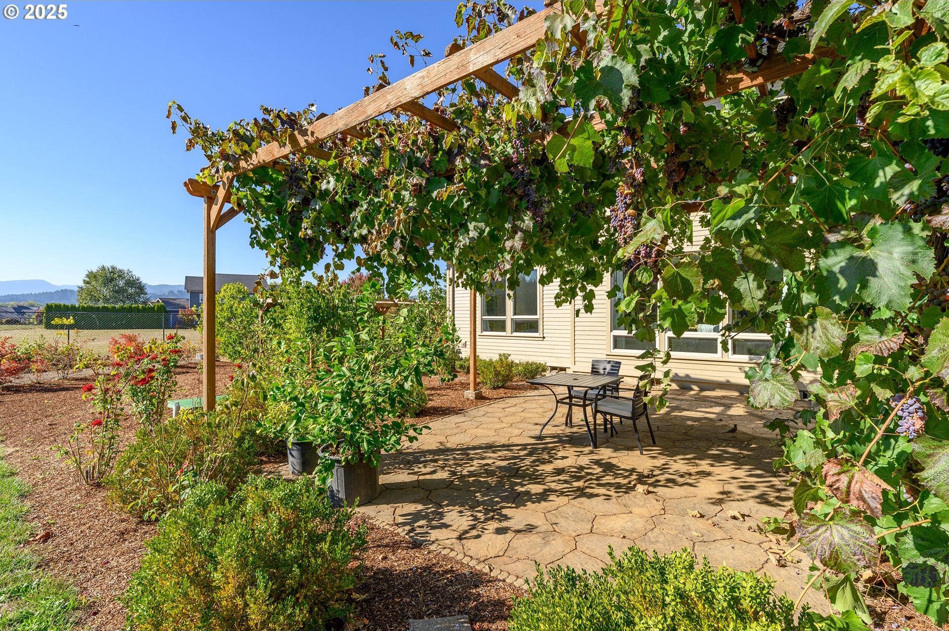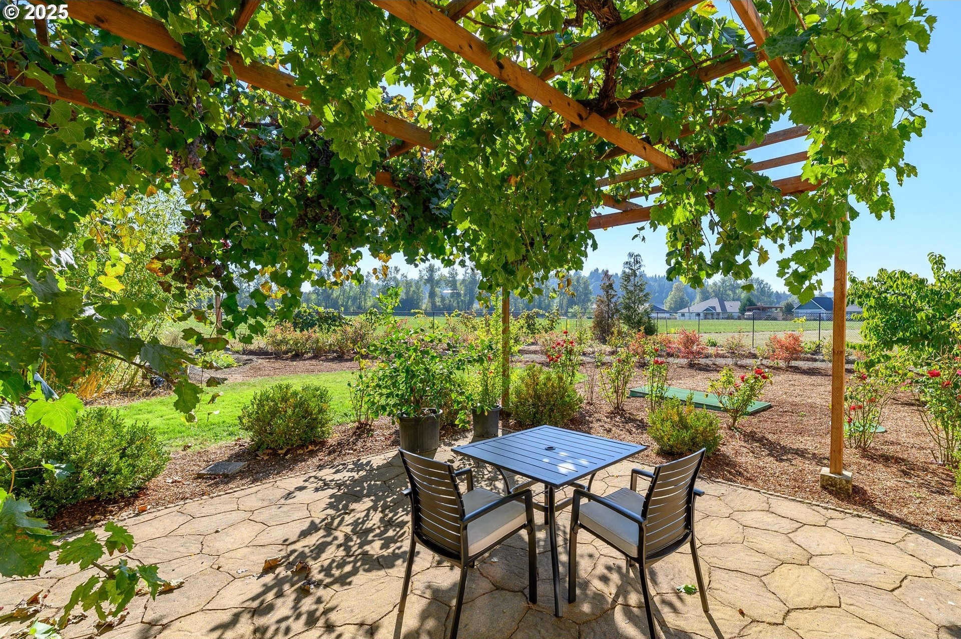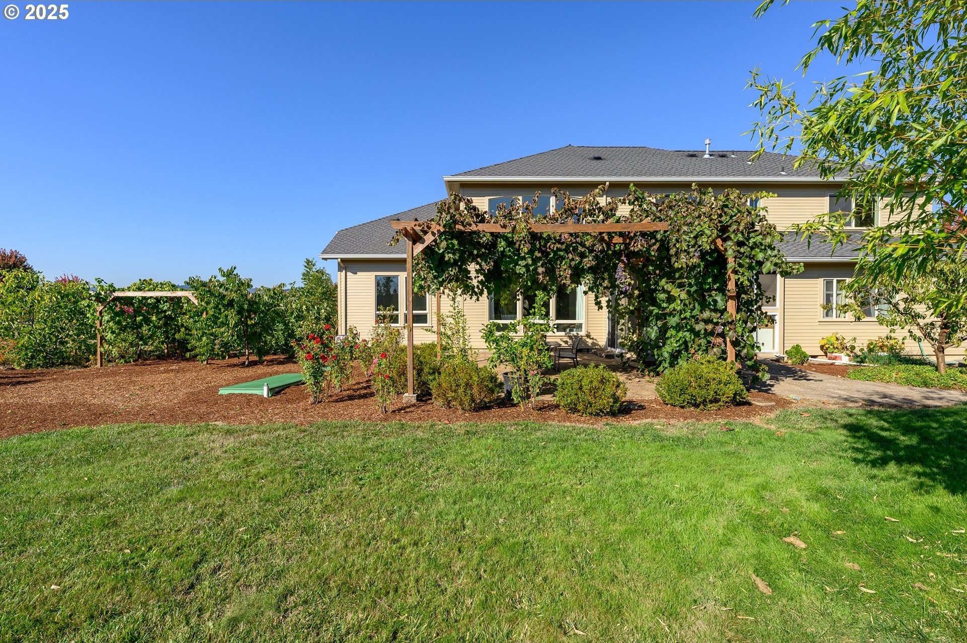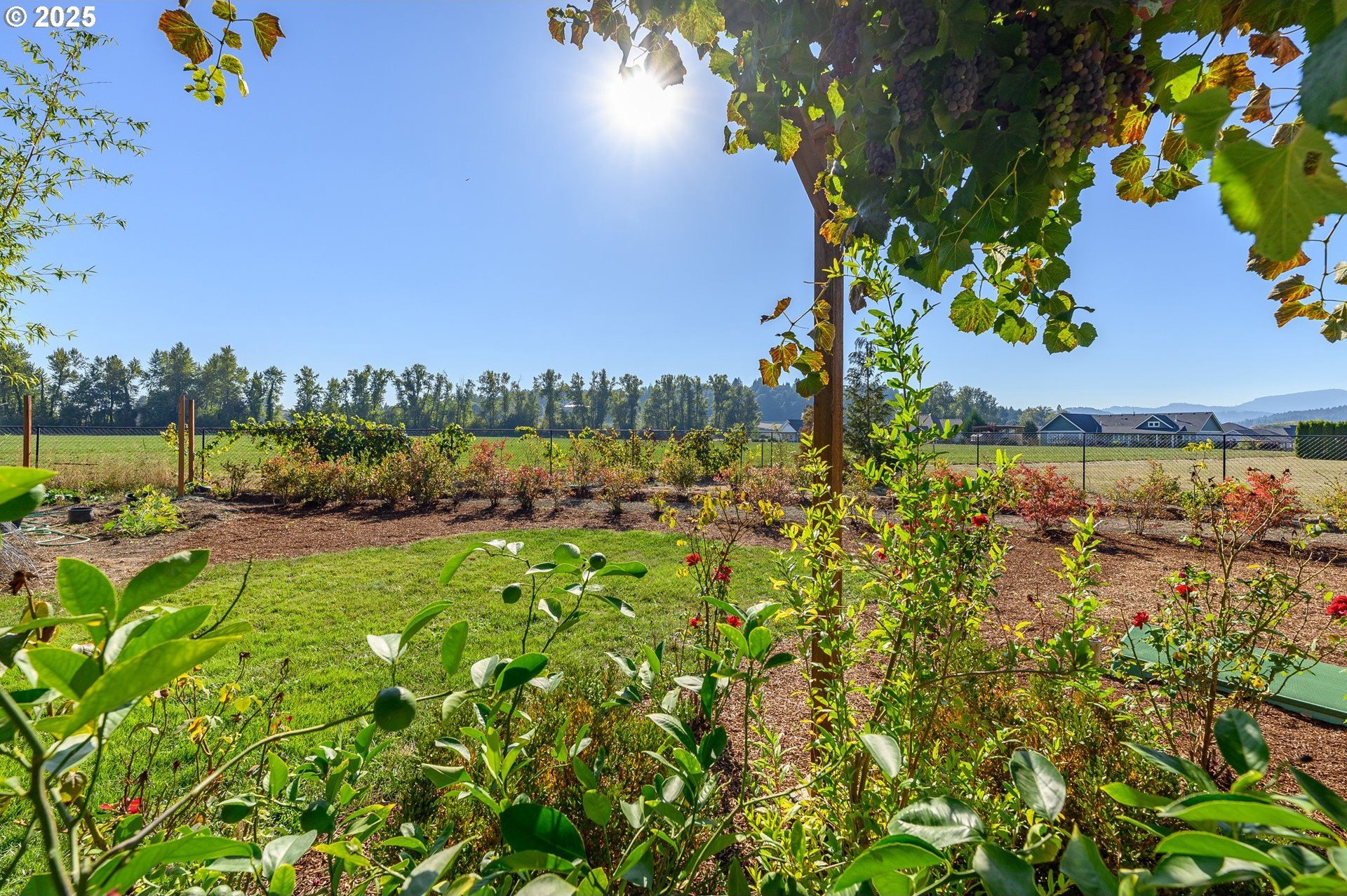 OPEN HOUSE SUNDAY OCTOBER 5TH FROM 12 TO 2 PM. An elegant and stately home is located in the exclusive West Wind Country Estates. The home sits on a large half-acre lot which overlooks farm fields and has views and the foothills of the Coastal Range. The home was built using top-end materials and finishes, including stunning solid Brazilian hardwood floors on the main level and double insulated walls. The large living room has 18 ft high ceilings, an impressive, cultured stone gas fireplace and a wall of windows with views of the back yard and fields. The kitchen, as part of the great room, features a cooking island with "prep" sink and eating bar. It includes top-of-the-line stainless-steel appliances and a new highly efficient oven. The main suite is on the 1st floor and features an attached bathroom with heated granite tiled flooring, a tiled walk-in shower, double sinks and a jetted tub for a spa like experience. A stunning staircase with elegant banisters leads to the 2nd level with a large landing. Upstairs there are two spacious guest bedrooms, each with an attached bathroom, an additional flex room or office which could be a 4th bedroom with an added closet. A large family or media room is ideal for games, movie night or a game of Ping Pong. There is space for your cars in the large, oversized 3-car garage with an EV-charger and additional parking in the wide driveway. Dreaming of growing your own fruits and vegetables?... Look no further... the fenced, backyard has among others, various fruit trees, blueberries, 7 grape varieties and a large greenhouse for all weather gardening.