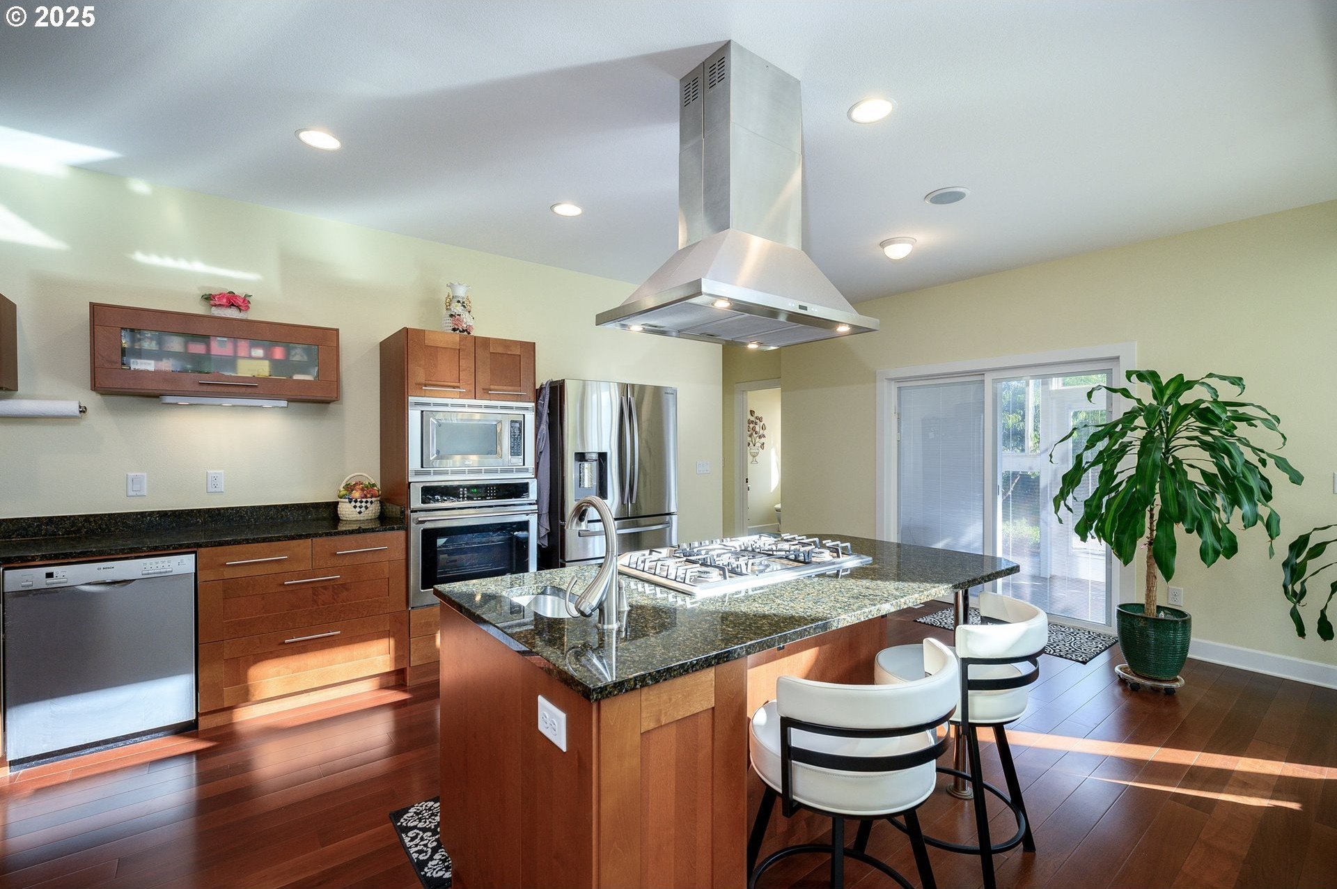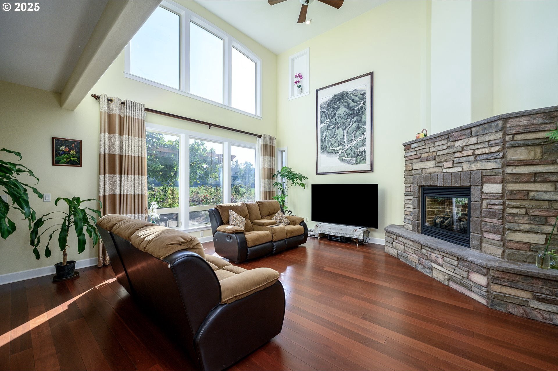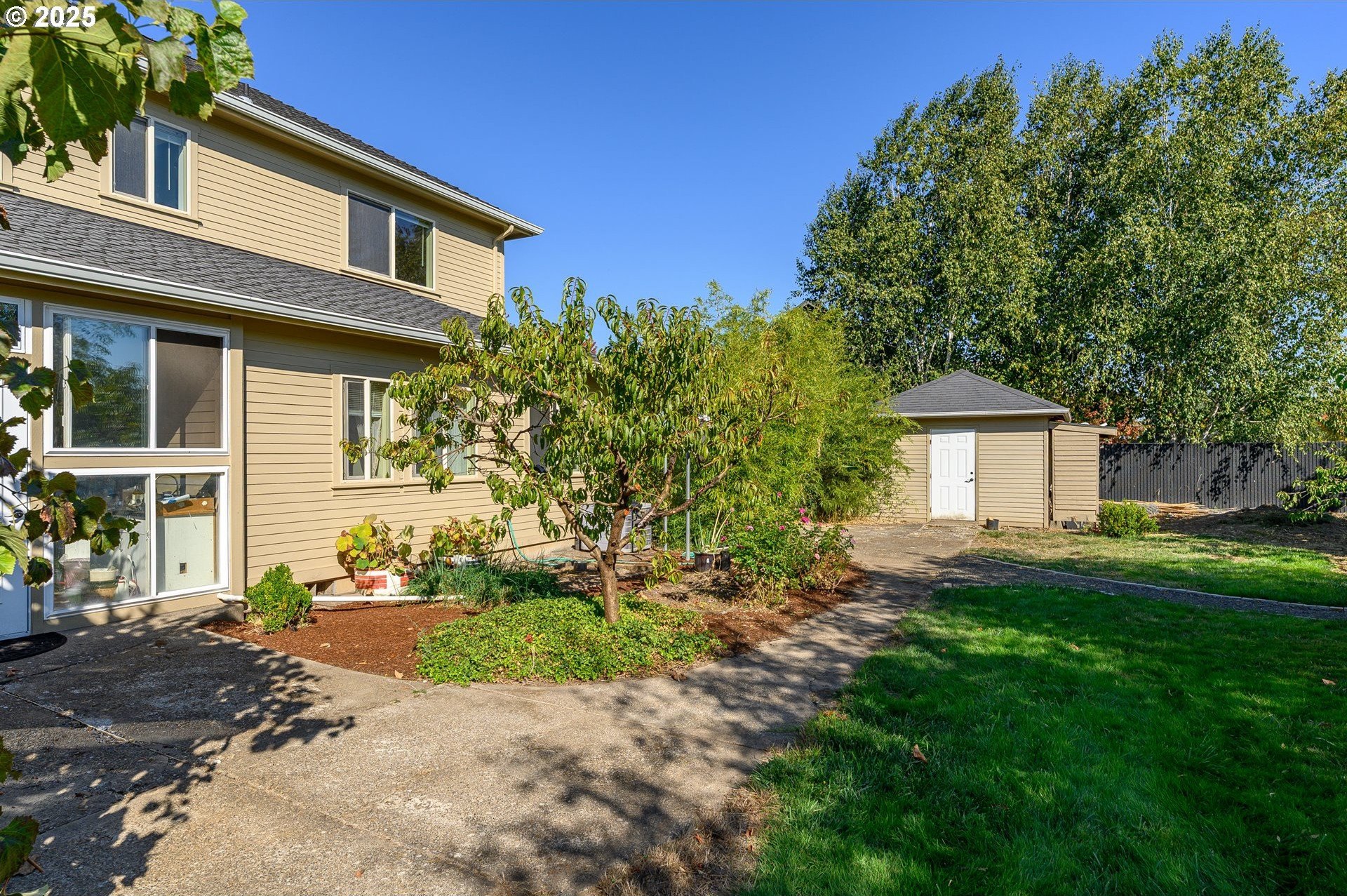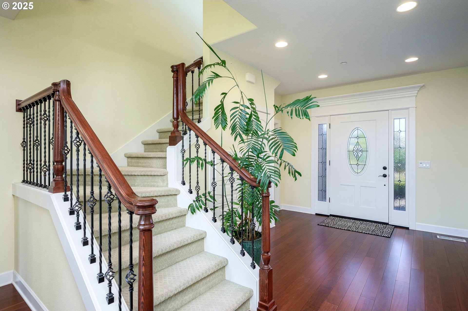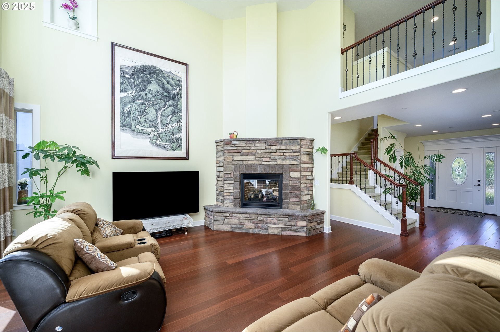 OPEN HOUSE SUNDAY OCTOBER 5TH FROM 12 TO 2 PM. An elegant and stately home is located in the exclusive West Wind Country Estates. The home sits on a large half-acre lot which overlooks farm fields and has views and the foothills of the Coastal Range. The home was built using top-end materials and finishes, including stunning solid Brazilian hardwood floors on the main level and double insulated walls. The large living room has 18 ft high ceilings, an impressive, cultured stone gas fireplace and a wall of windows with views of the back yard and fields. The kitchen, as part of the great room, features a cooking island with "prep" sink and eating bar. It includes top-of-the-line stainless-steel appliances and a new highly efficient oven. The main suite is on the 1st floor and features an attached bathroom with heated granite tiled flooring, a tiled walk-in shower, double sinks and a jetted tub for a spa like experience. A stunning staircase with elegant banisters leads to the 2nd level with a large landing. Upstairs there are two spacious guest bedrooms, each with an attached bathroom, an additional flex room or office which could be a 4th bedroom with an added closet. A large family or media room is ideal for games, movie night or a game of Ping Pong. There is space for your cars in the large, oversized 3-car garage with an EV-charger and additional parking in the wide driveway. Dreaming of growing your own fruits and vegetables?... Look no further... the fenced, backyard has among others, various fruit trees, blueberries, 7 grape varieties and a large greenhouse for all weather gardening.