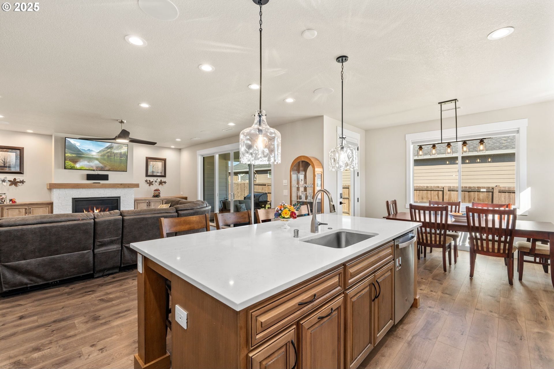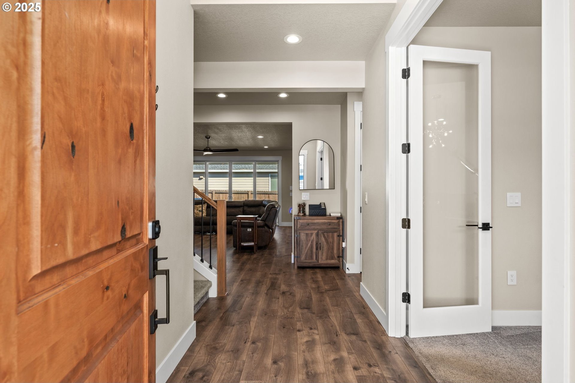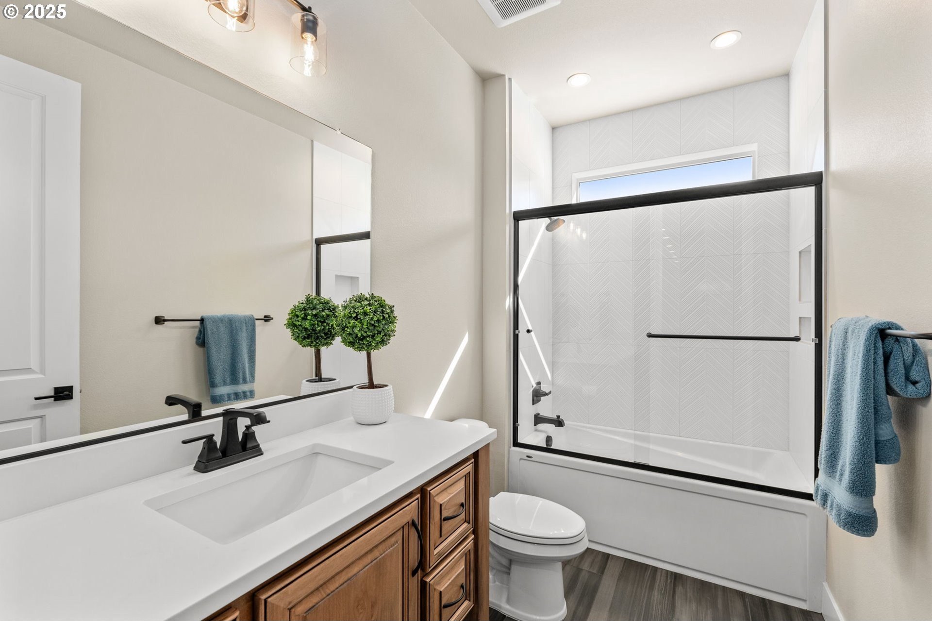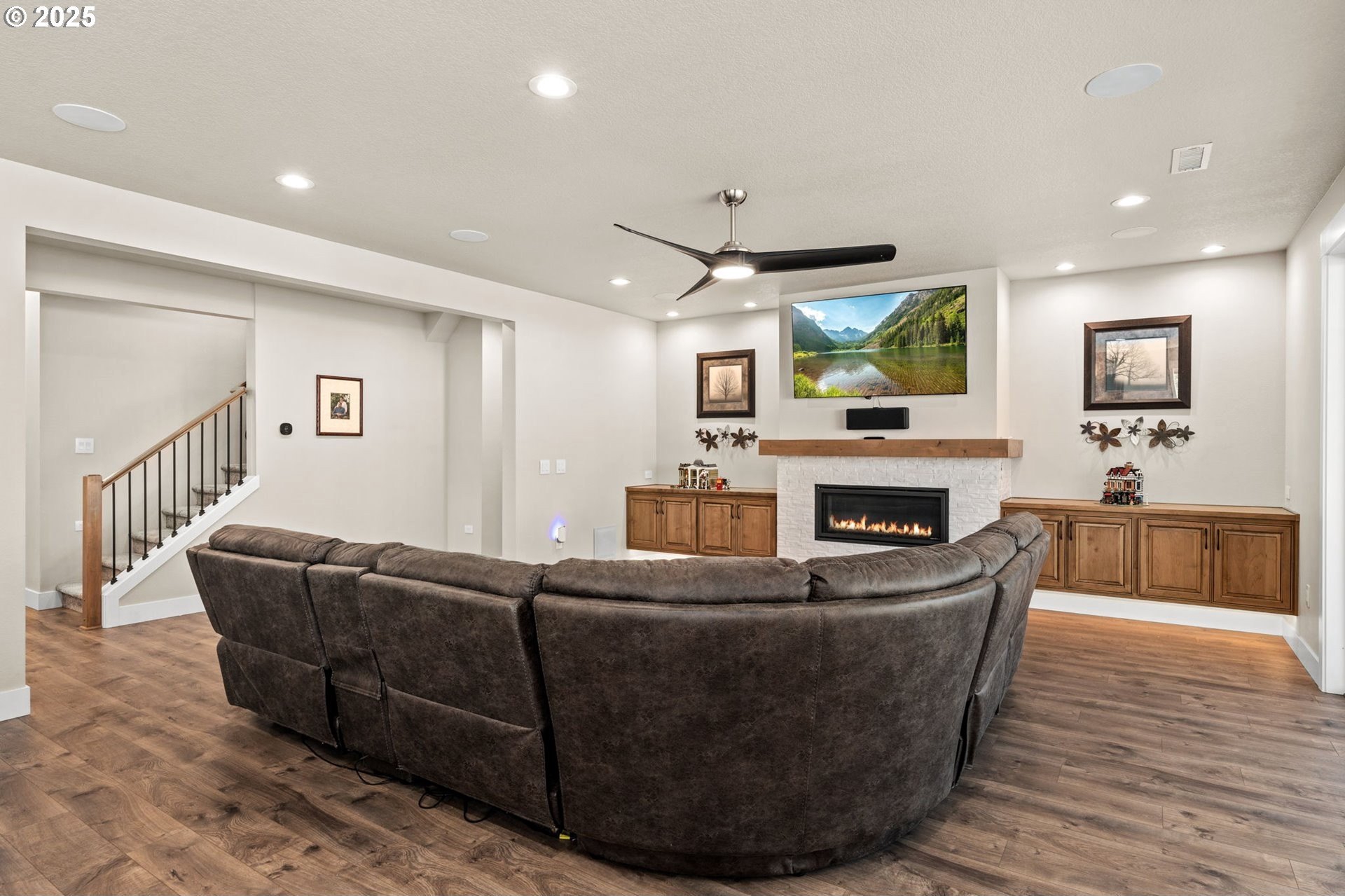 OPEN SATURDAY 10/4 11:00 AM TO 1:00 PM AND SUNDAY 10/5 1:00 TO 3:00 PM. Well-appointed home with primary suite on the main level in the wonderful Cedars Landing in Battle Ground, Washington. Office / 4th bedroom, additional full bath, and laundry room are all on the main level of the home. Open concept floor plan with great room with gas fireplace, dining area, and stylish kitchen with gas cooktop and double oven. Upstairs are two additional bedrooms, another full bath, and a bonus room. Built-in speakers are in the downstairs great room, kitchen, back patio, primary bath, and upstairs bonus room. Three car garage; and backyard is fully fenced and sprinkler system in both front and back yards. This corner lot home location within the community can't be beat - as you are moments from neighborhood playground and the trails at Gordy Jolma Family Natural Area.
