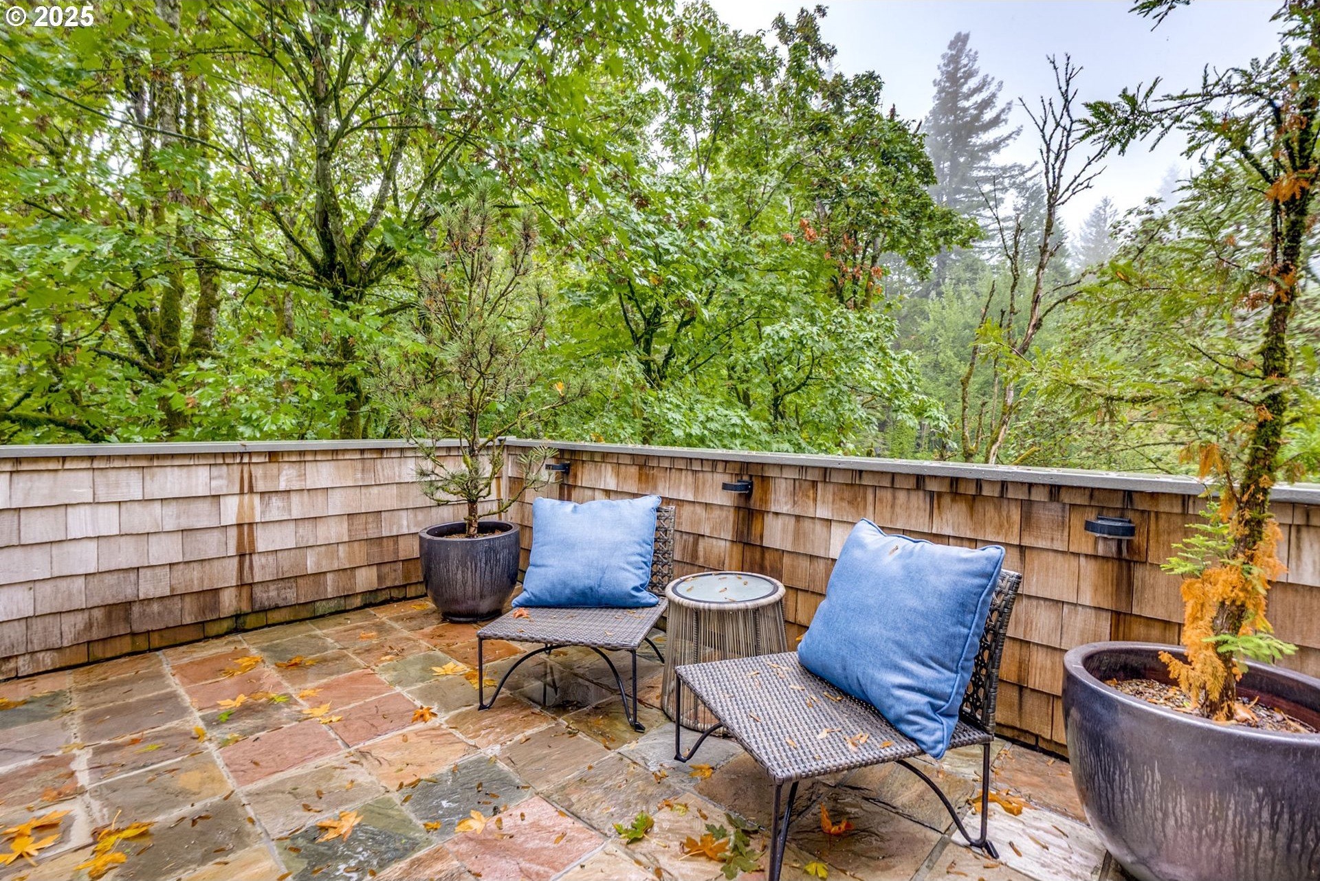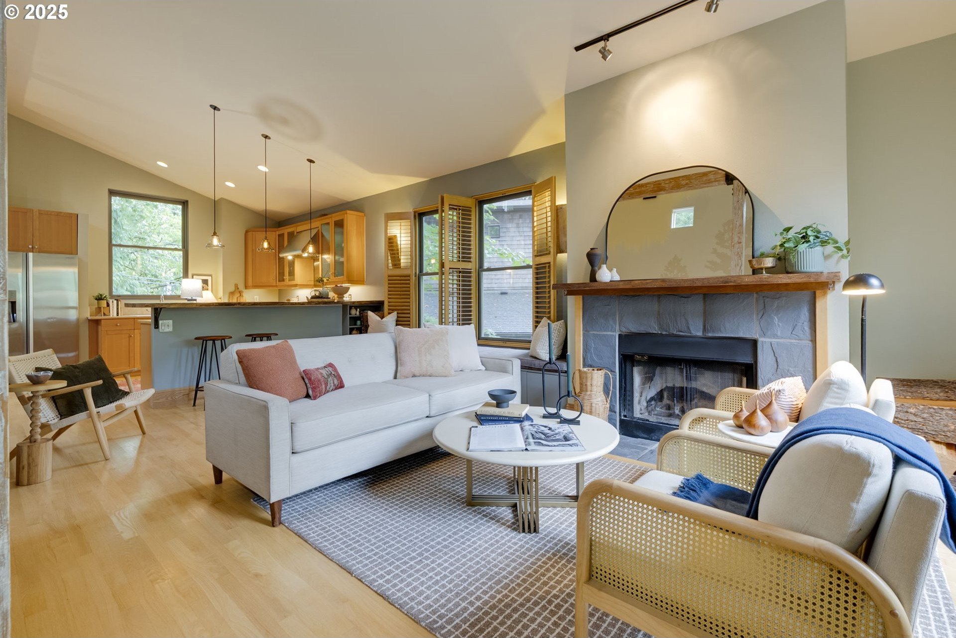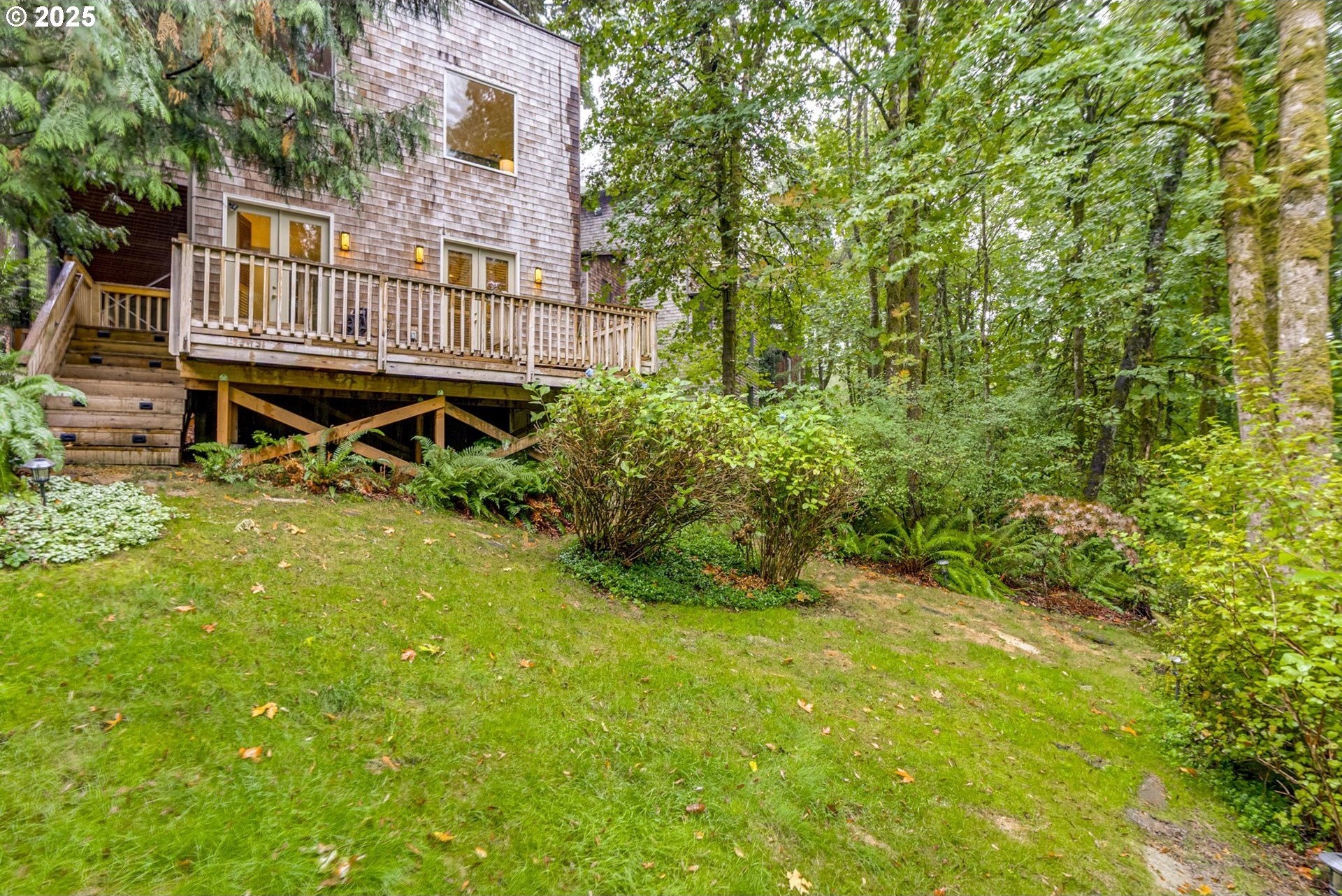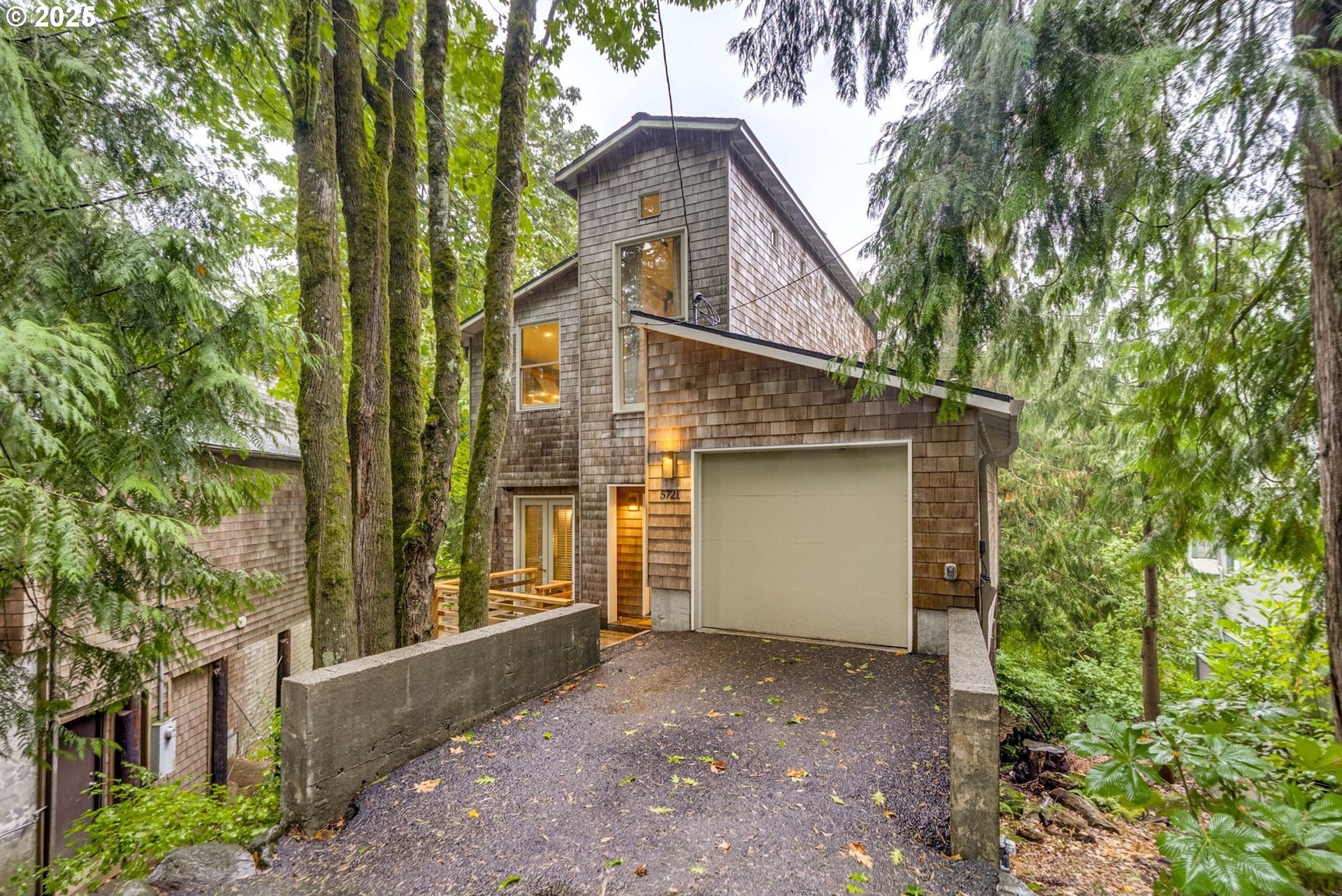 Modern Treehouse Living in Sylvan Heights! Perched above the street and nestled among the trees, this custom-built 1998 NW contemporary home offers a rare blend of architectural charm, natural beauty, and urban convenience. Designed to feel like a luxury treehouse, the home features soaring windows, vaulted ceilings, and clean modern lines that bring in abundant natural light and serene, wooded views from every room. The open concept invites both entertaining and everyday living, with a spacious kitchen equipped with modern cabinetry, stainless steel appliances, and ample storage. A cozy wood-burning fireplace anchors the living room, while expansive outdoor decks offer seamless indoor-outdoor living. Expansive living on three levels. The flexible floor plan includes a generous primary suite, a lower-level guest suite, a dedicated home office, and a versatile bonus room—ideal for gathering or finding a quiet retreat. Tucked into a peaceful residential loop just minutes from Washington Park, Forest Park, the Oregon Zoo, and NW 23rd Avenue, this home offers the best of Portland living. Enjoy easy access to downtown, top-rated schools, and miles of nearby trails. Whether you're sipping coffee among the treetops or hosting dinner with friends, this home offers a unique opportunity to live in nature—without leaving the city. [Home Energy Score = 4. HES Report at https://rpt.greenbuildingregistry.com/hes/OR10242157]